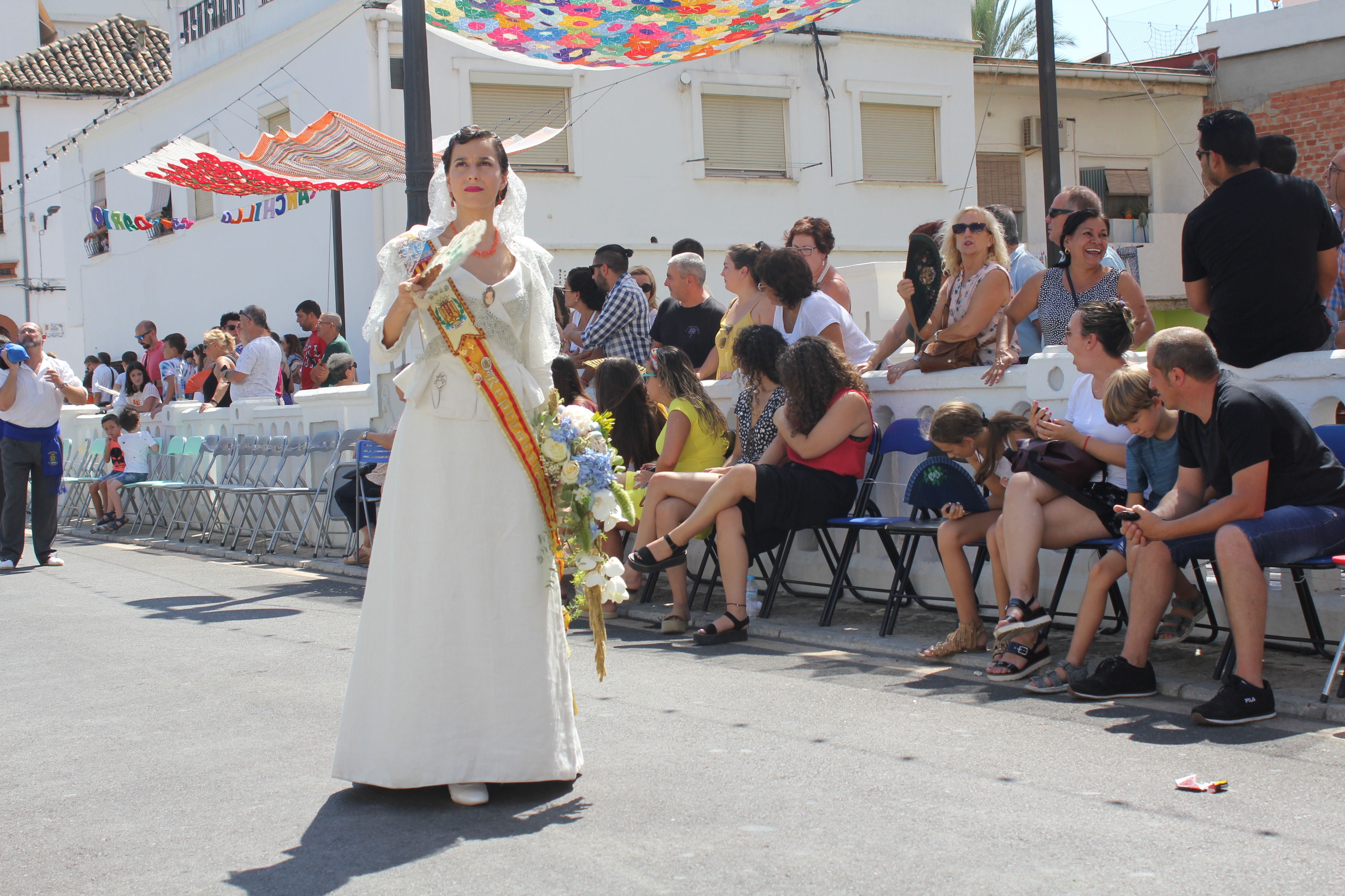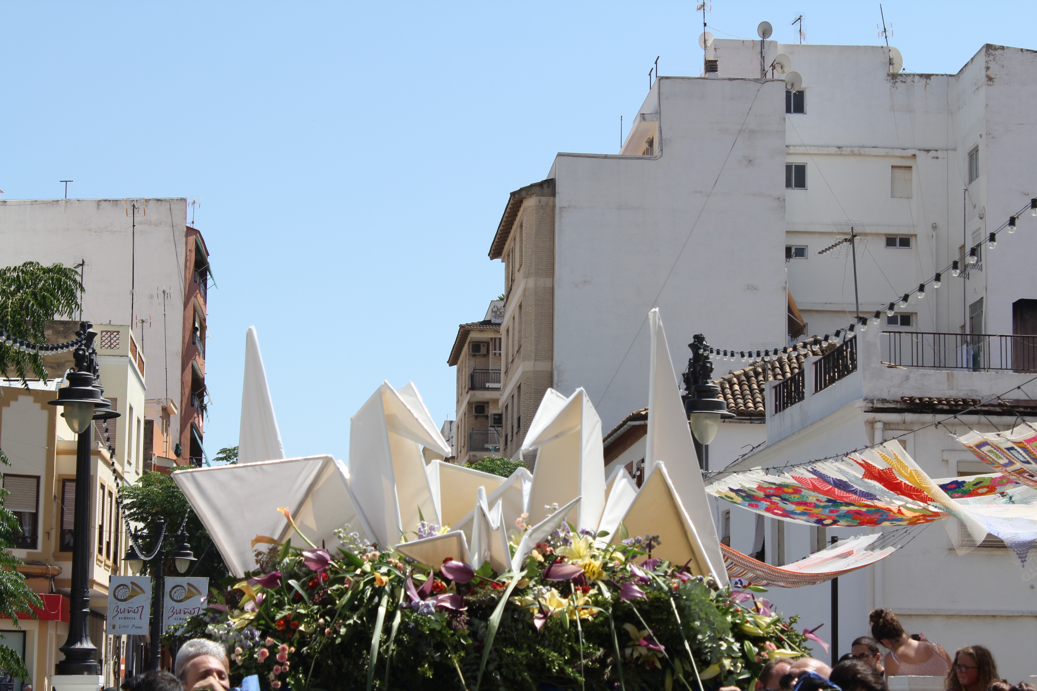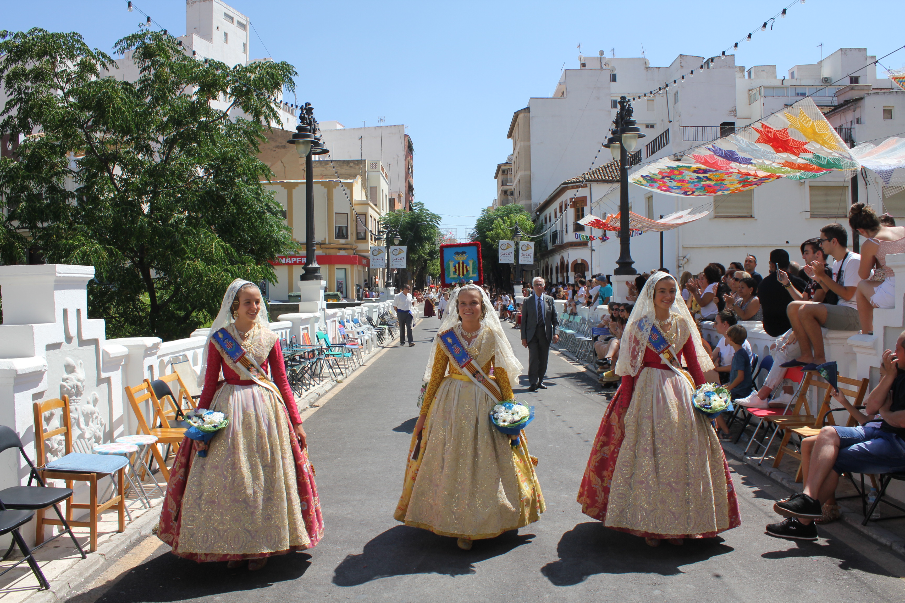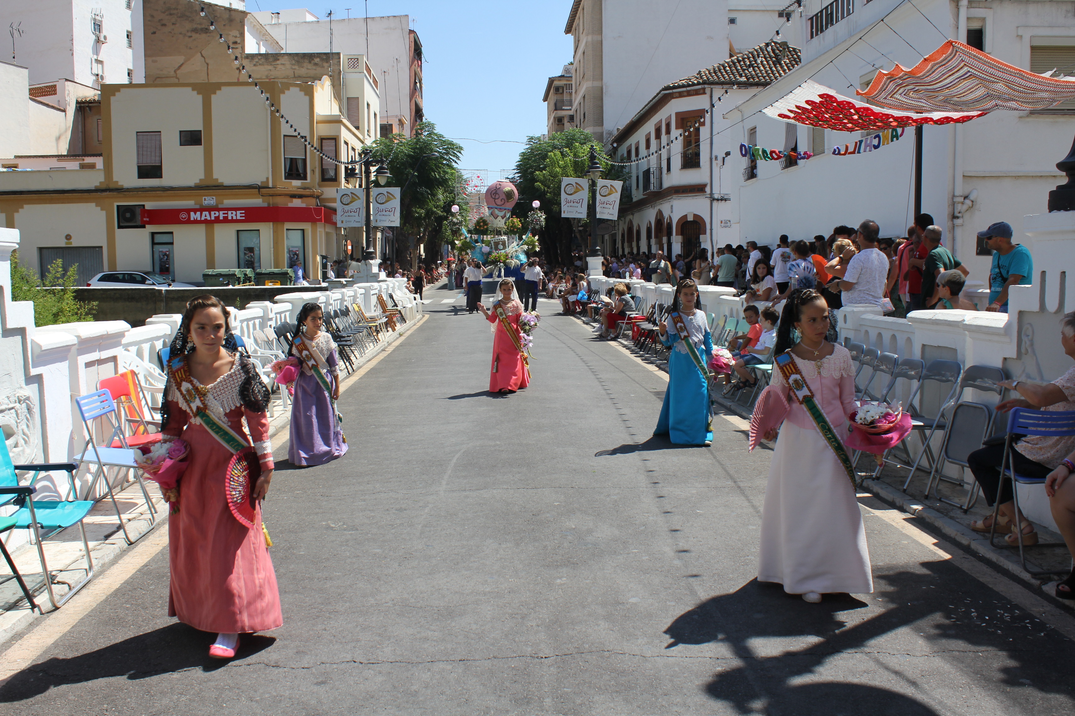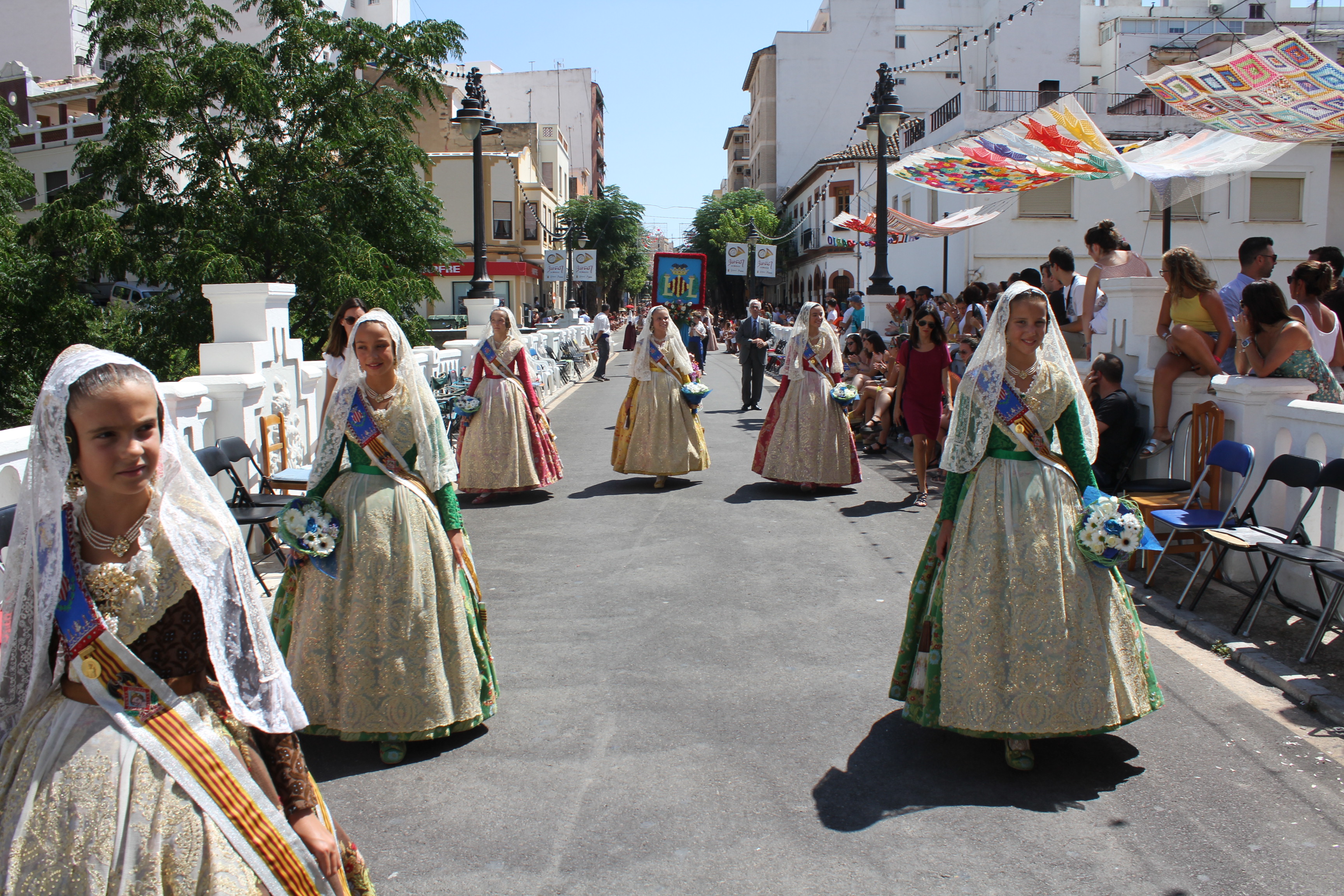 Las últimas andas iban acompañando a las protagonistas del día a las Misses y Representante, Esther Furriol Ochea, Gema Clemente Agustina y Paula Ramón Martínez. Las tres entraron a la Plaza del Pueblo emocionadas ante el aplauso del público y de los simpatizantes «lietreros» que se agolparon a uno y otro lado de su local social. También los vítores fueron en aumento cada vez que cada cuadrilla de «anderos» daba las tradicionales vueltas a los monumentos florales que salieron en la Ofrenda.