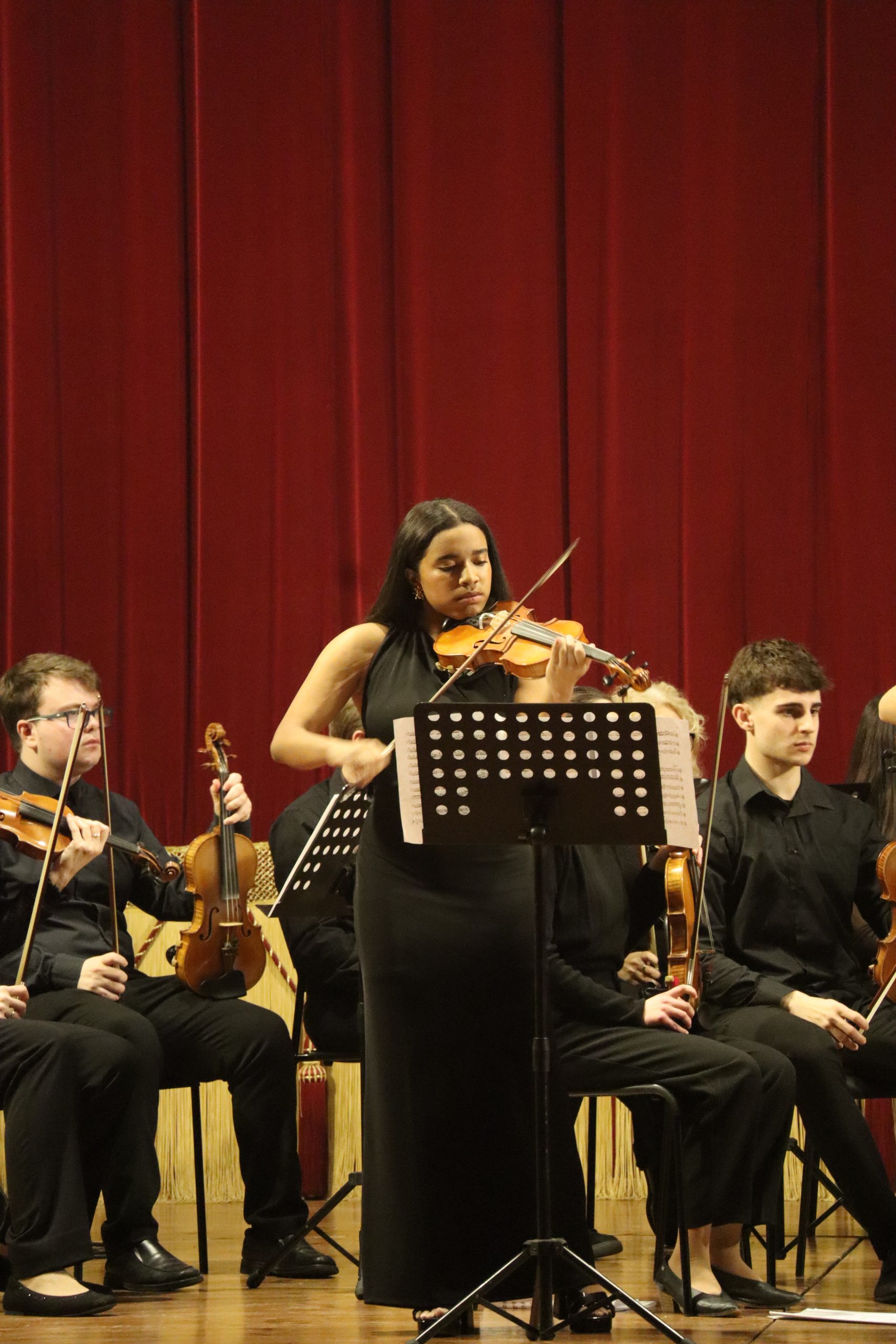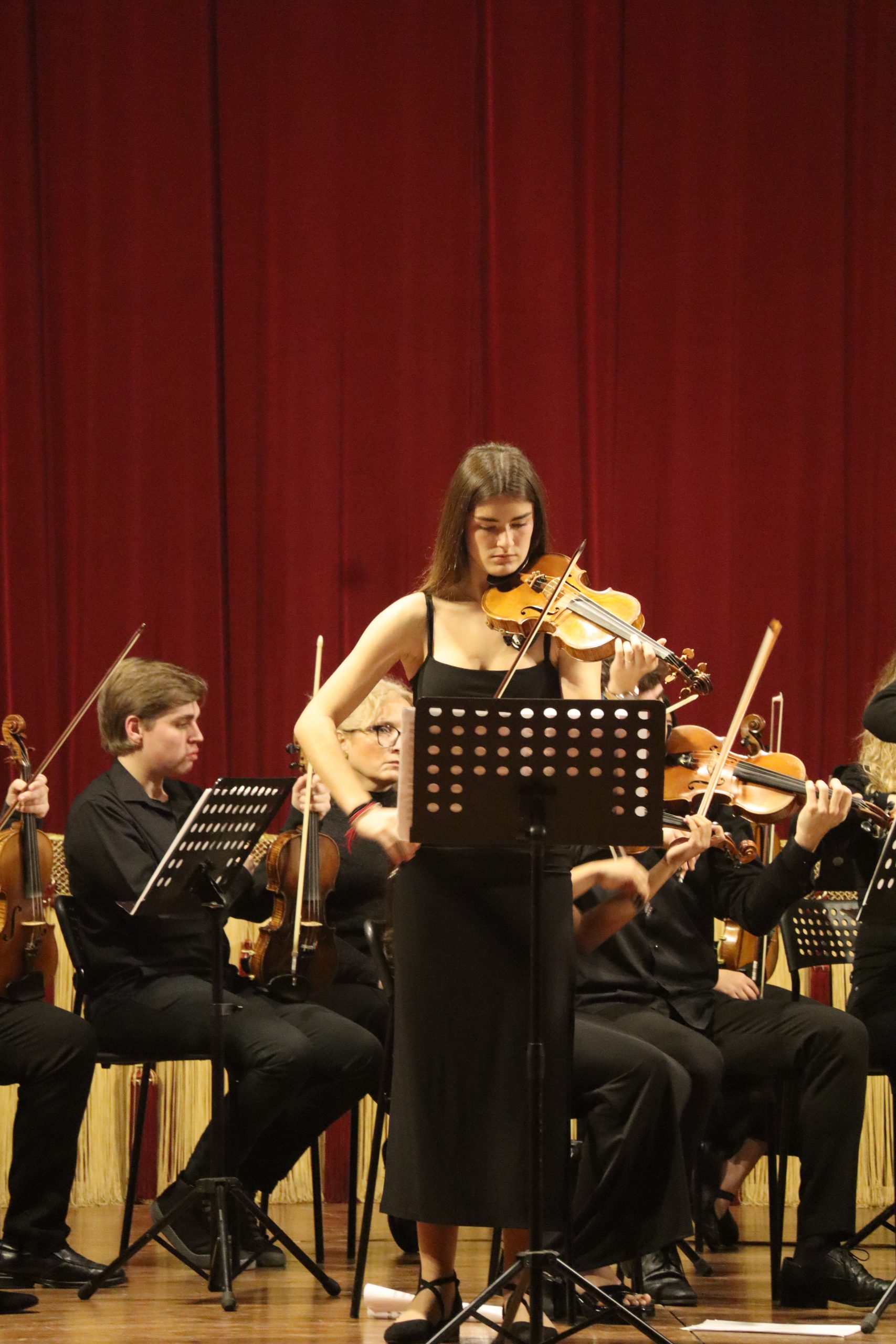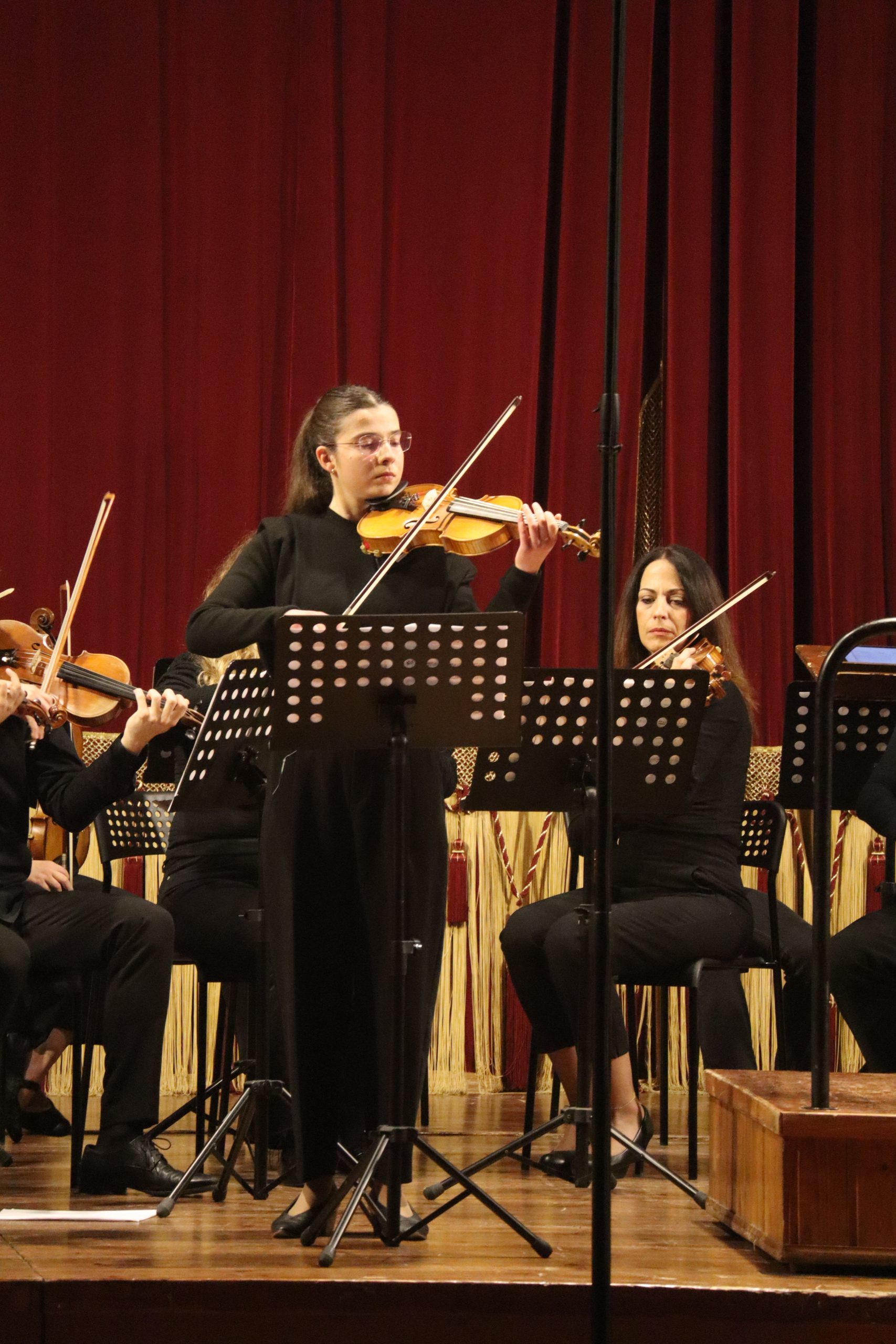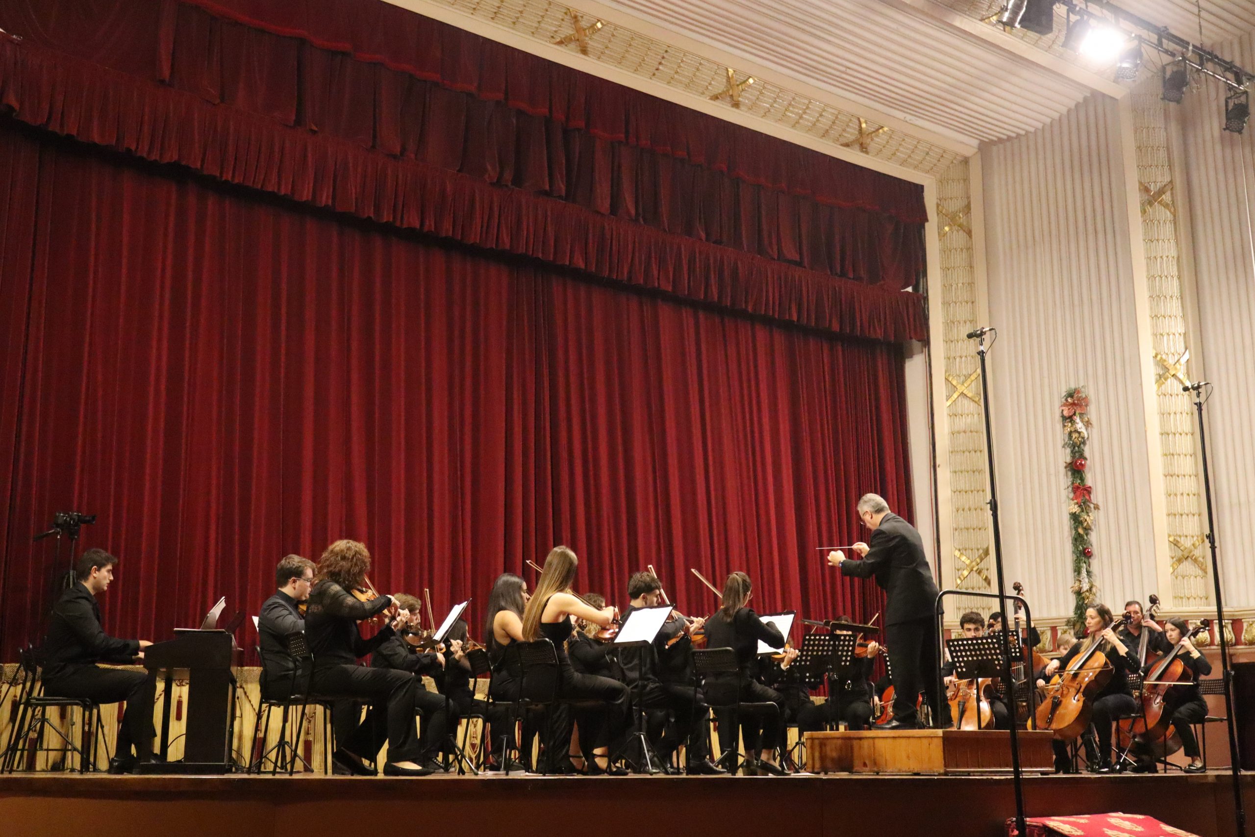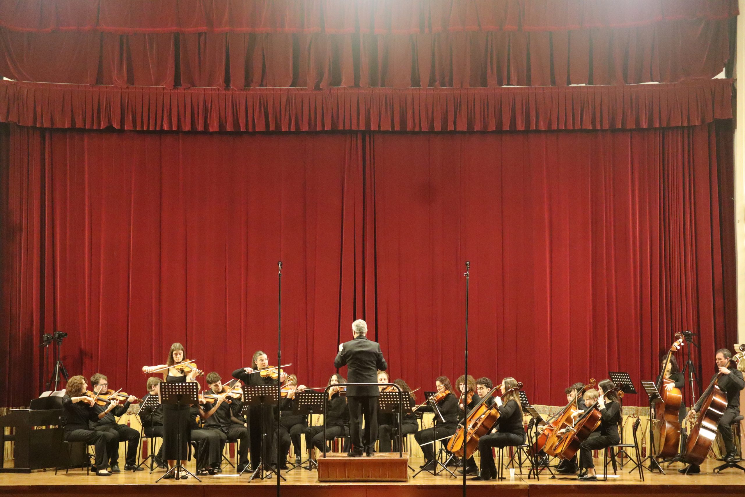 La primera parte, bajo la dirección de Jaime Aldás Ruiz, ofreció un cuidado programa con obras de grandes compositores. Sonaron el Concierto para cuerda en Do Mayor RV 109 y el Concierto para dos violines Op. 3 nº 2 RV 522 de Antonio Vivaldi, interpretado por las solistas Paula Díaz Galarza, Ivanna Camila Concepción Stefani y Claudia Arranz Segura. El repertorio se completó con Fantasía on a theme from Thailand de R. Meyer y el Vals nº 2 de D. Shostakovich.