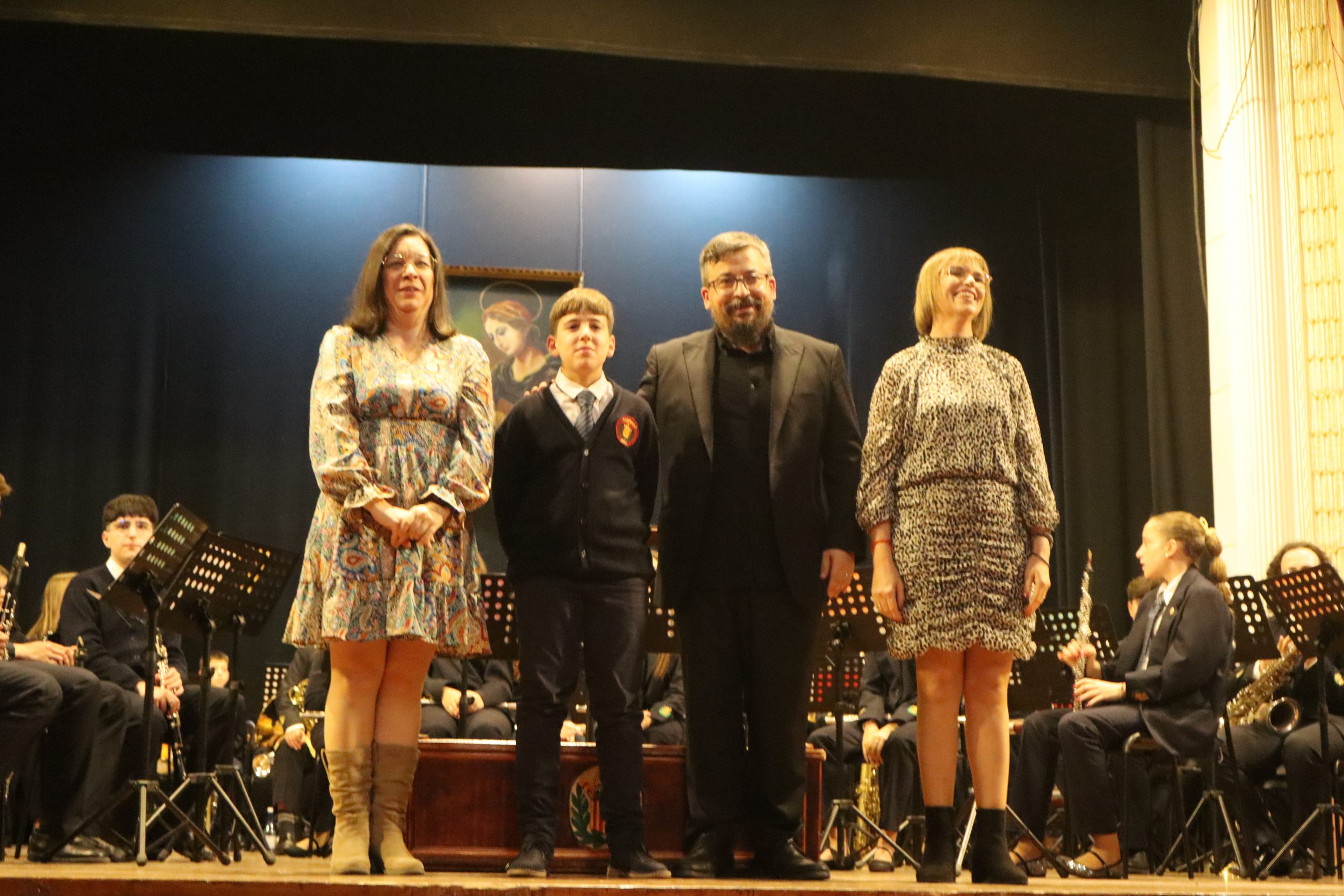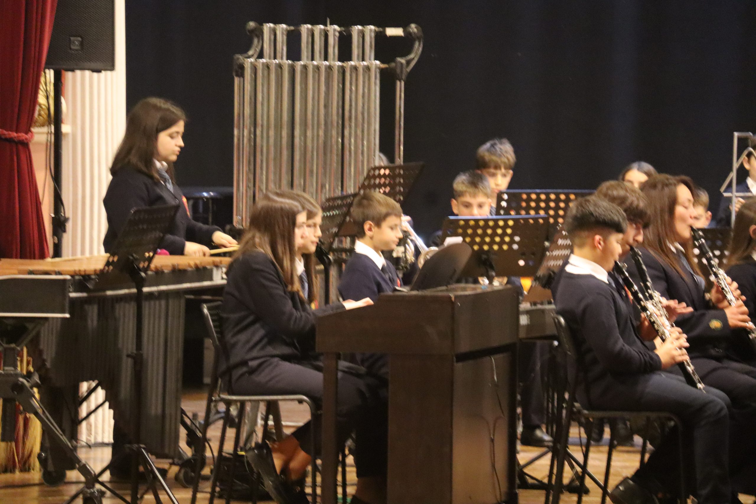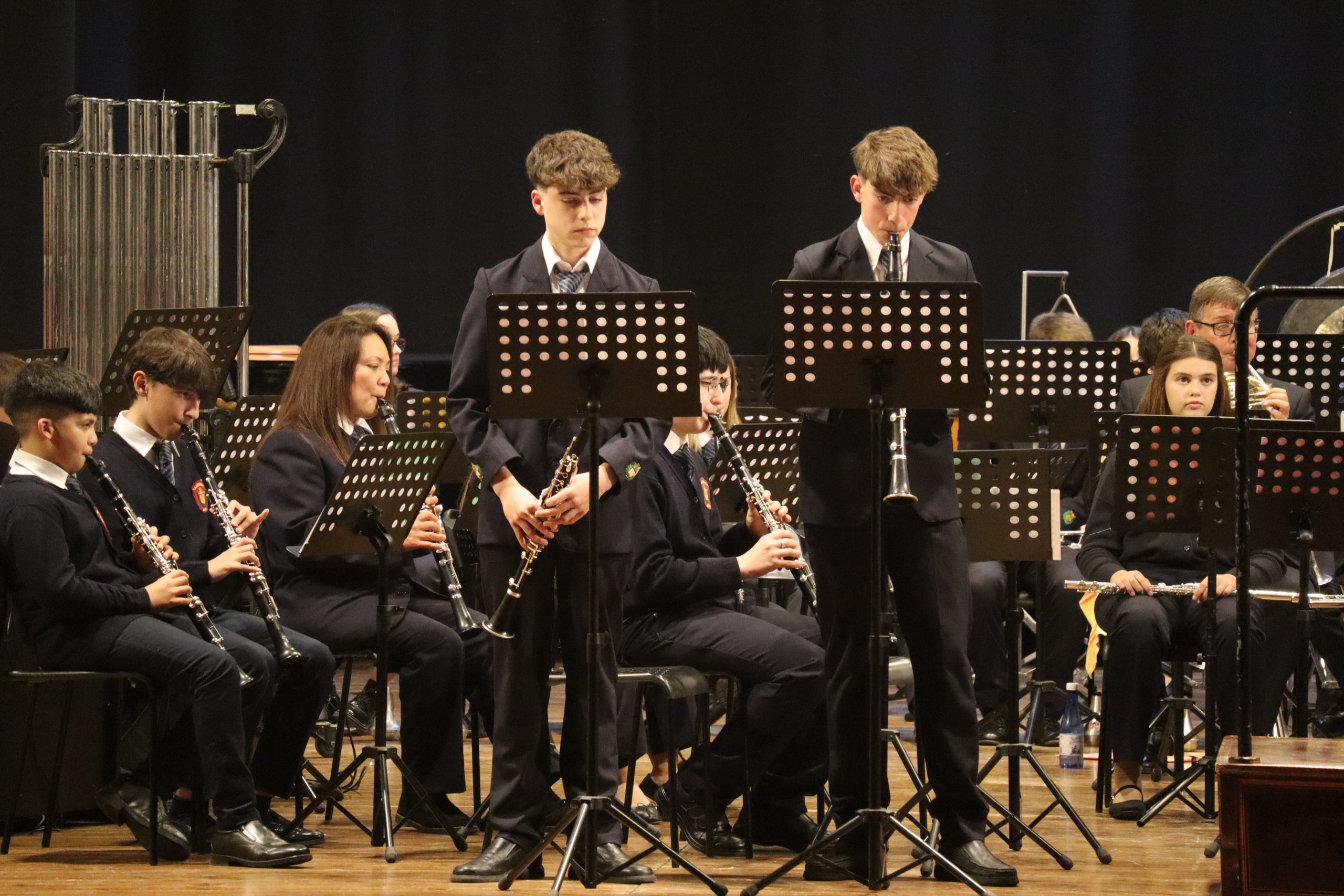 El acto comenzó con la bienvenida del director Jaime Aldás Ruiz y el coordinador Domingo Arranz Blasco, quien dirigió la primera parte del concierto, compuesta por “Palladio”, “Cinema Paradiso” y “Tomorrow” del musical Annie, con la voz de Andrea Tarín Clemente.