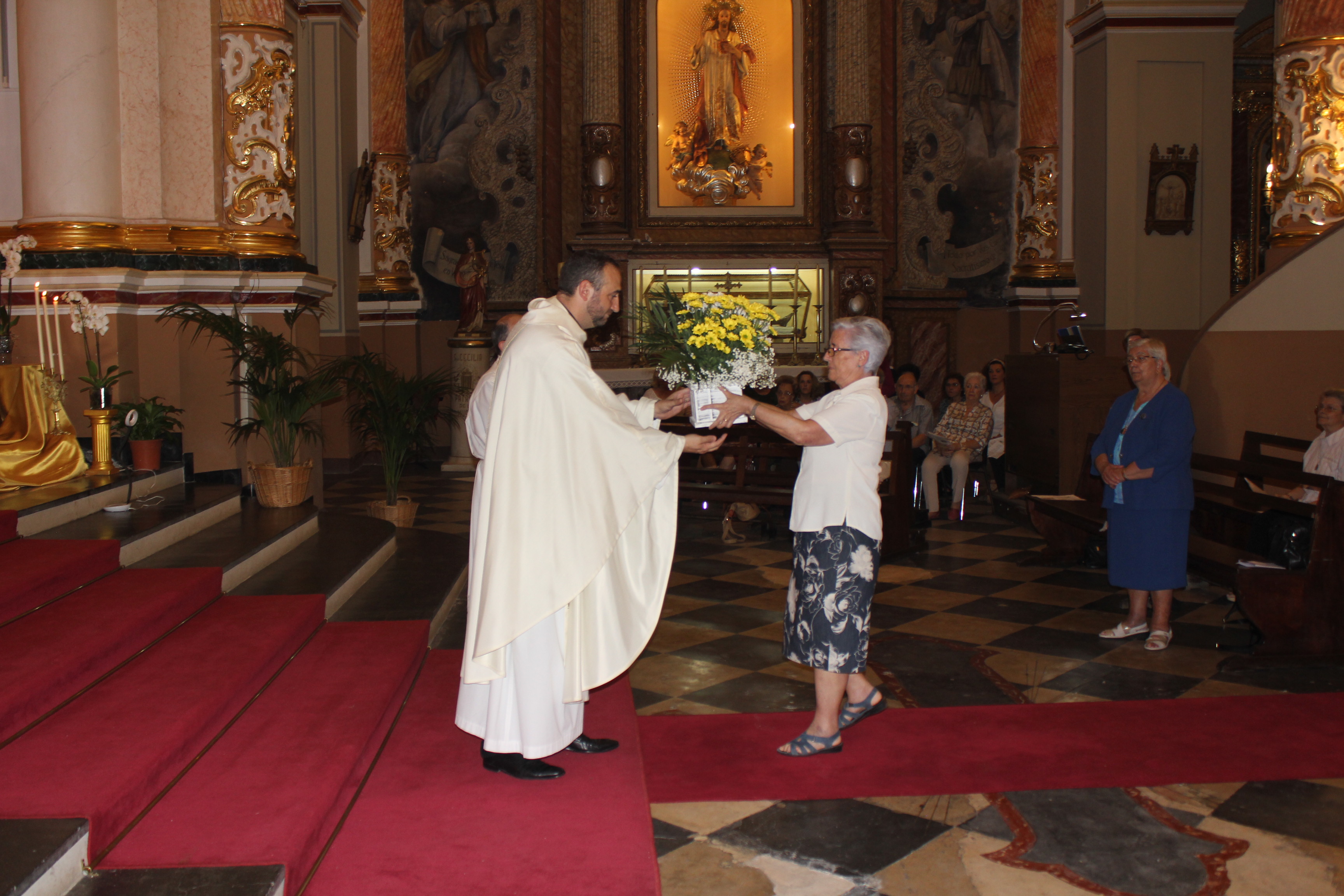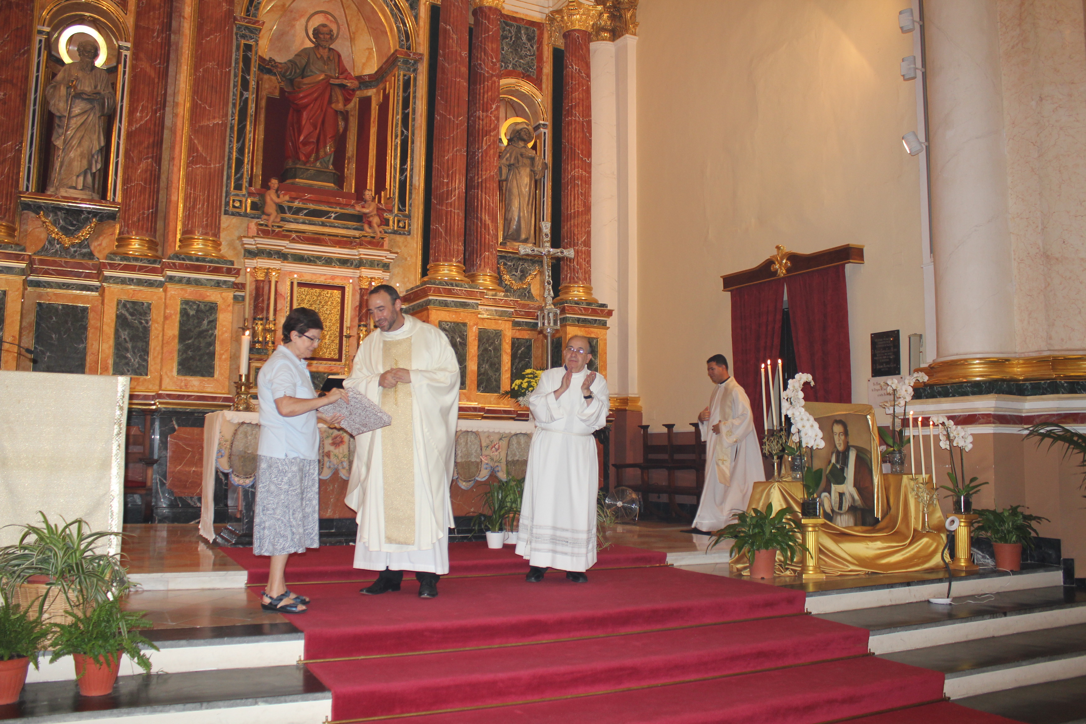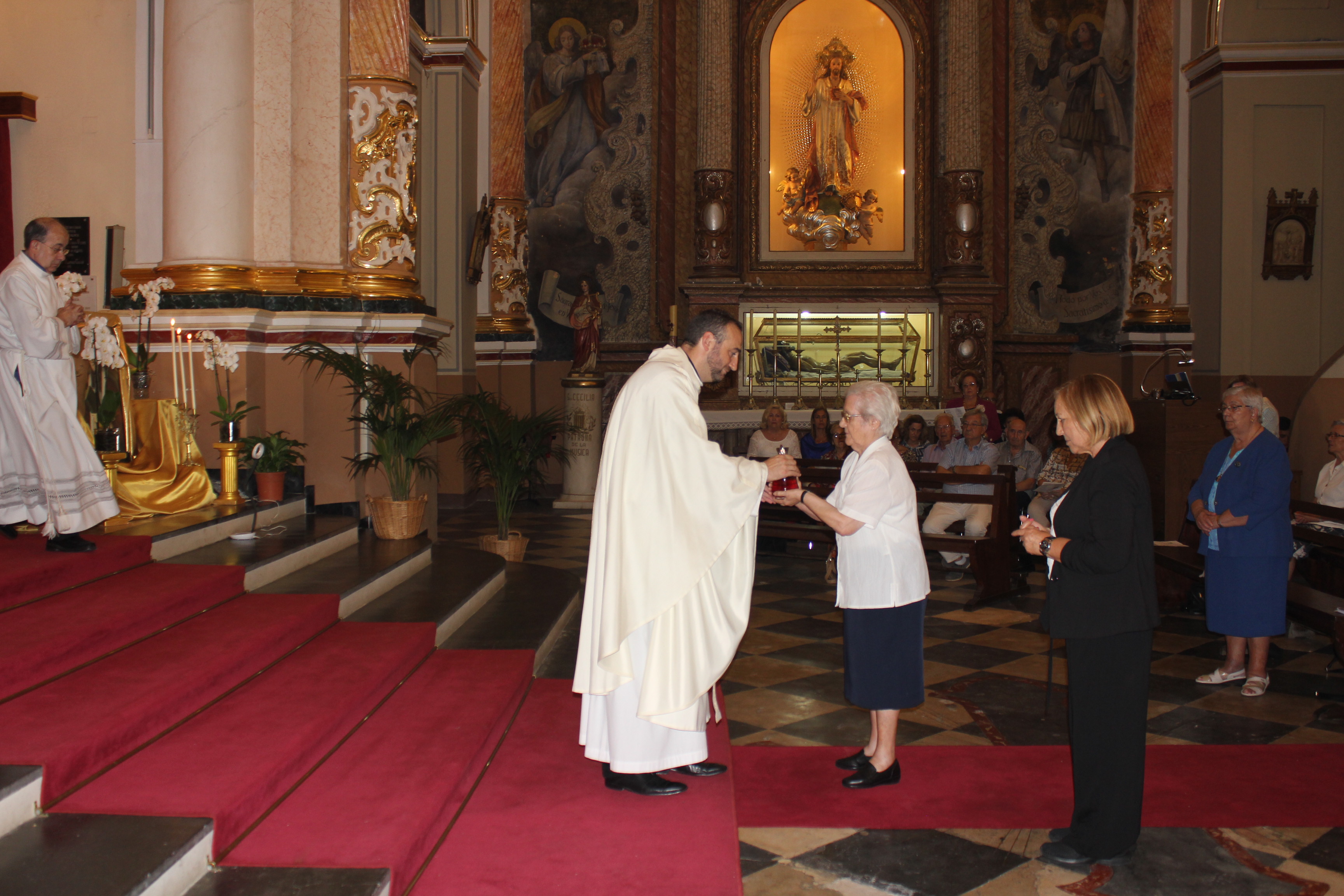 La Eucaristía fue presidida por el párroco de localidad, Enrique Boronat Albors, y por Flàunei Alves. En la celebración hubo palabras de agradecimiento y anécdotas del sacristán de este templo, Luis Carrascosa, que desde niño colaboró con las hermanas de la orden. Al finalizar la Eucaristía se entregó una placa conmemorativa de la mano del párroco de localidad a la superiora de la Sagrada Familia de Burdeos.