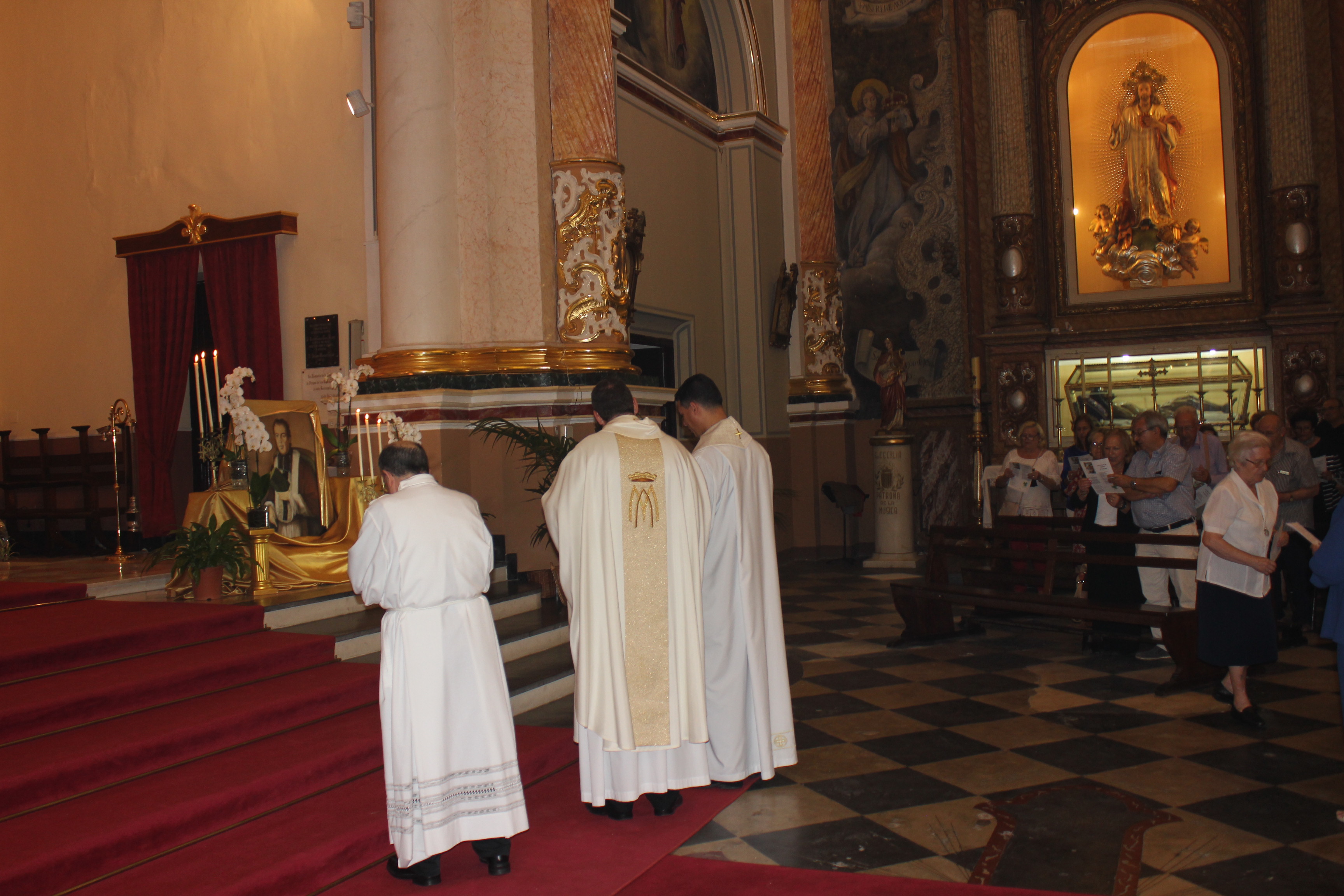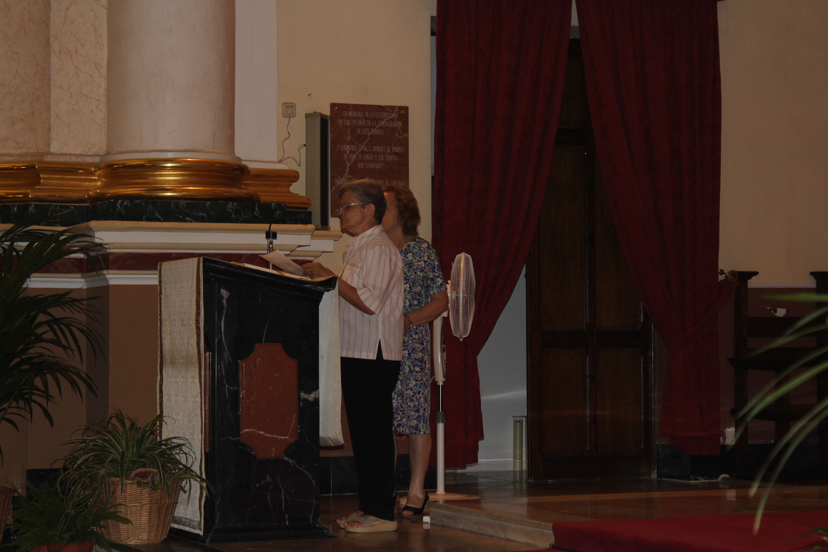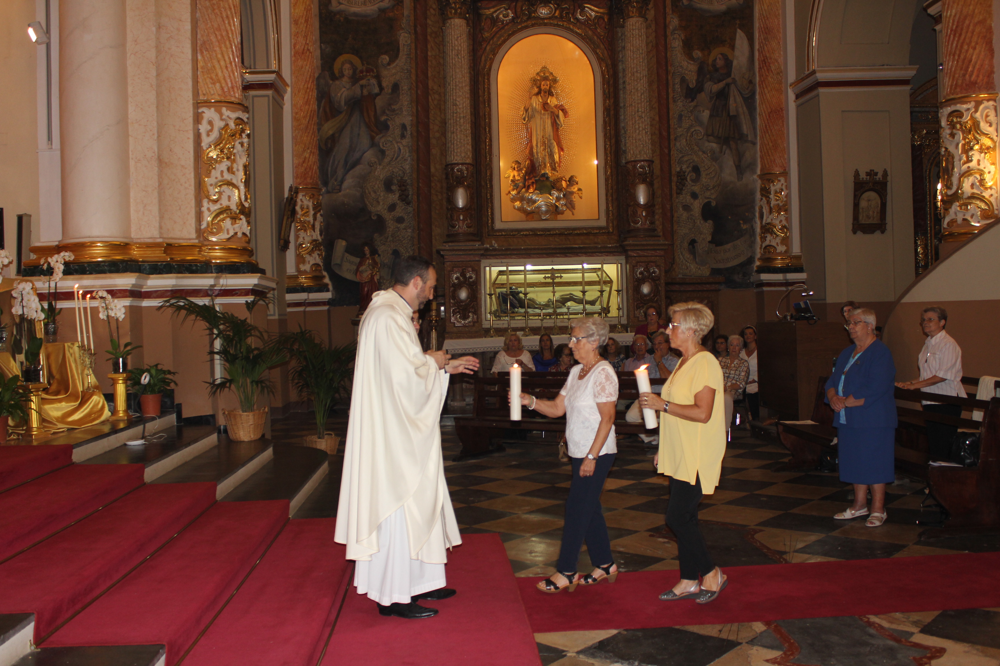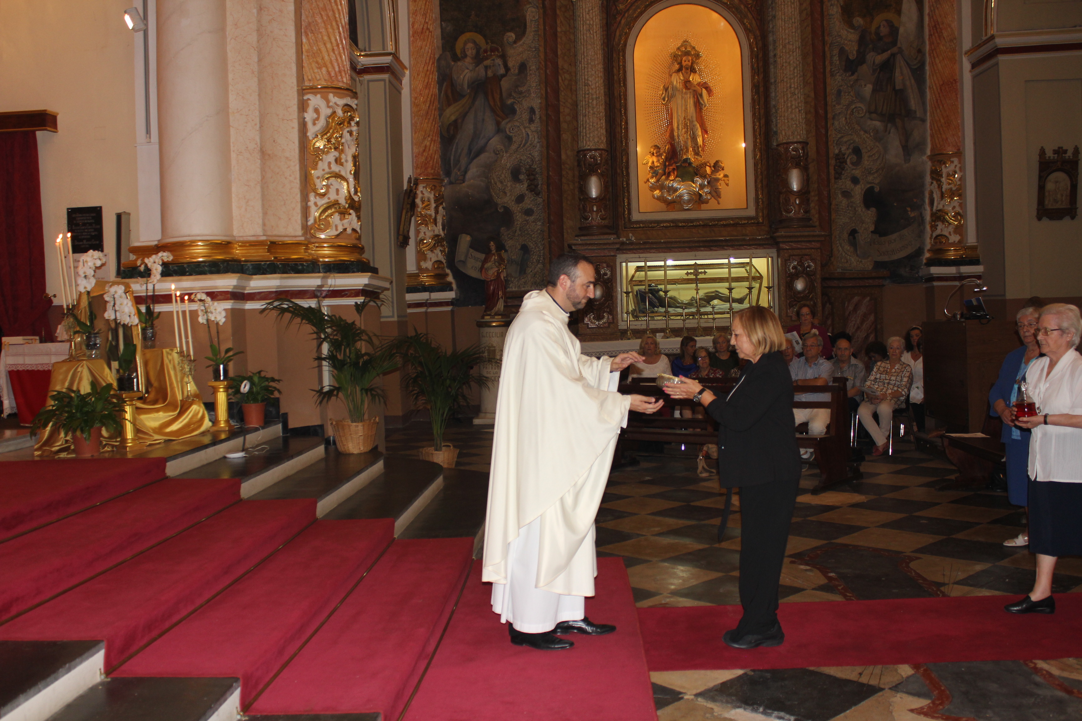La Eucaristía fue presidida por el párroco de localidad, Enrique Boronat Albors, y por Flàunei Alves. En la celebración hubo palabras de agradecimiento y anécdotas del sacristán de este templo, Luis Carrascosa, que desde niño colaboró con las hermanas de la orden. Al finalizar la Eucaristía se entregó una placa conmemorativa de la mano del párroco de localidad a la superiora de la Sagrada Familia de Burdeos.