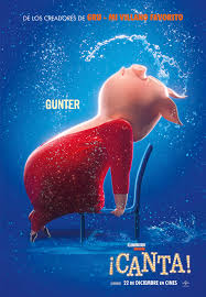Sinopsis: Buster Moon es un elegante koala que regenta un teatro que conoció tiempos mejores. Es un optimista nato, lo que está muy bien si no fuera un poco caradura, pero ama a su teatro con pasión y es capaz de cualquier cosa para salvarlo. Sabe que el sueño de su vida está a punto de desaparecer, y sólo tiene una oportunidad para mantenerlo a flote: organizar un concurso de canto y conseguir que sea un gran éxito. Entre los muchos candidatos aparecerán una cerdita ama de casa y otro cerdo muy animoso, una puercoespín rockera, un gorila bondadoso, un ratón presumido y una elefante muy tímida. (FILMAFFINITY)