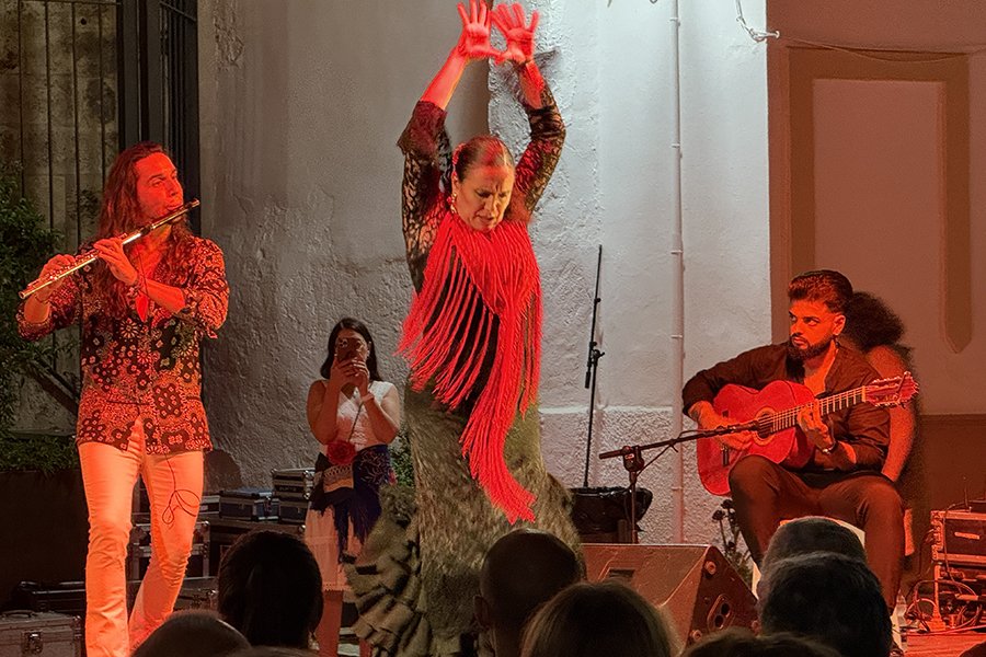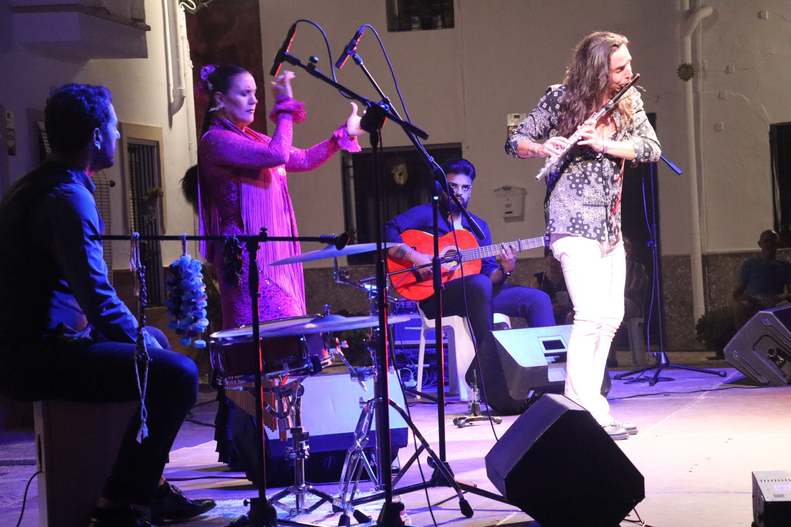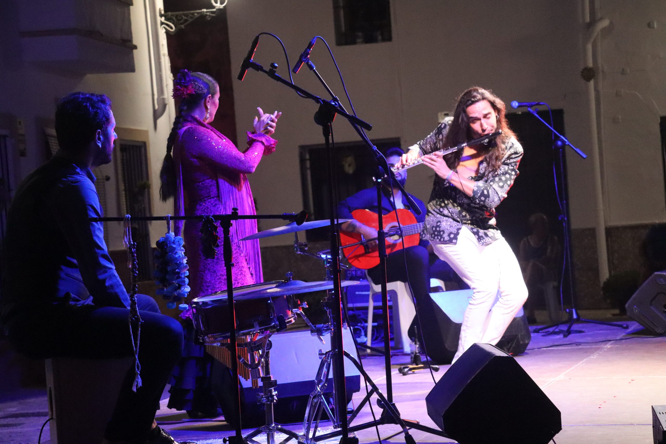 Sobre el escenario le acompañaron María Márquez “La Chusa” al baile, Áaron Jiménez “El Cherry” a la flauta y Alfonso Bautista a la percusión, en una propuesta multidisciplinar donde cada intervención aportó emoción, fuerza y sensibilidad.