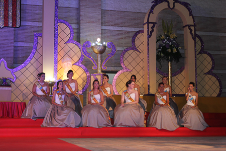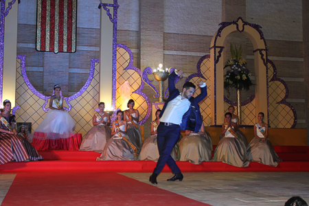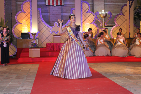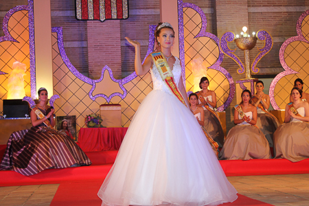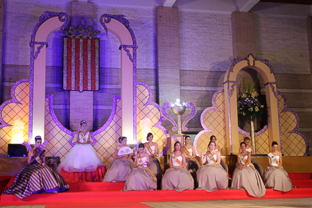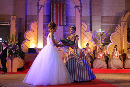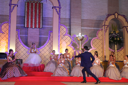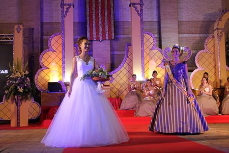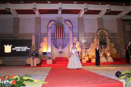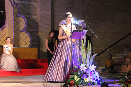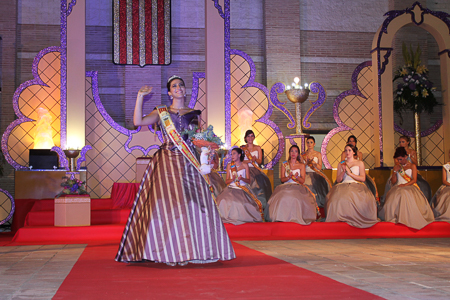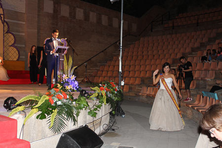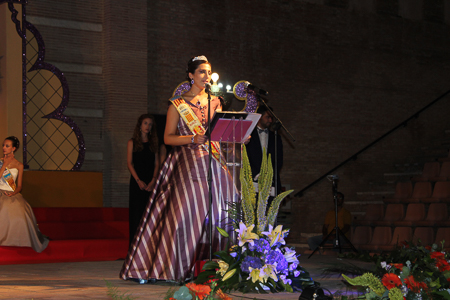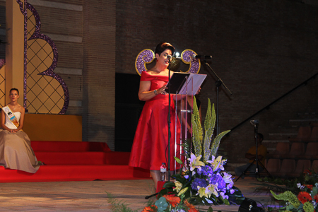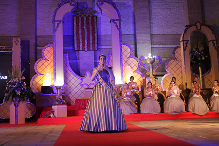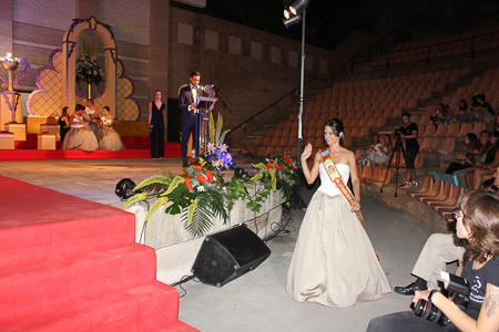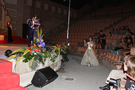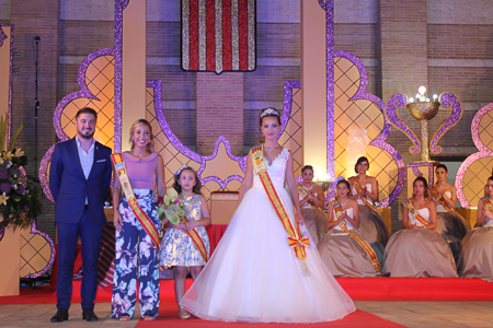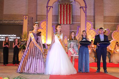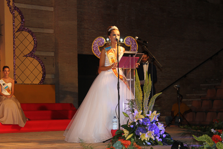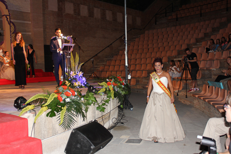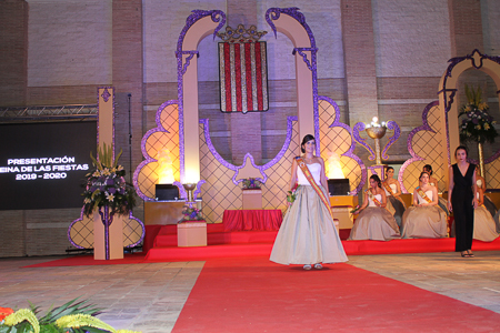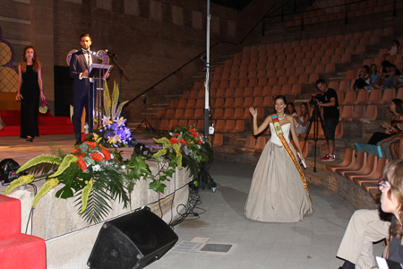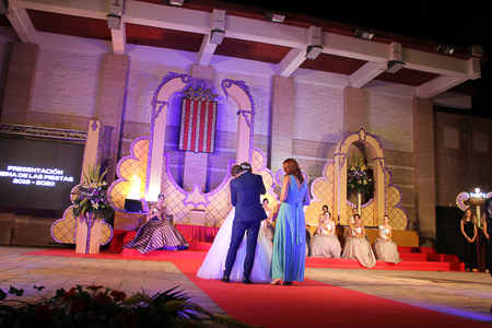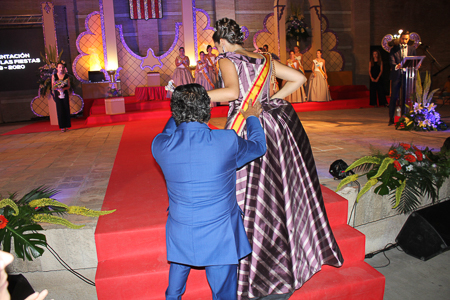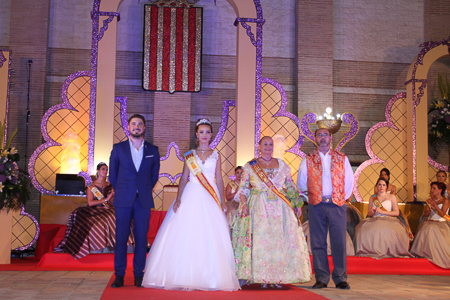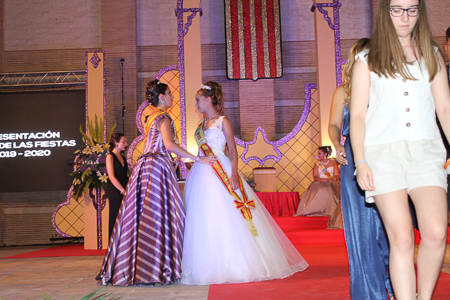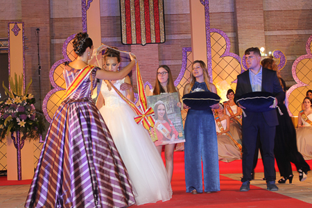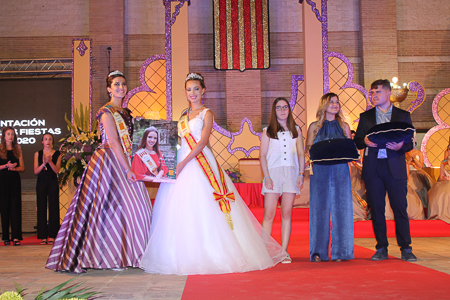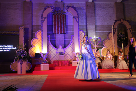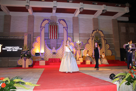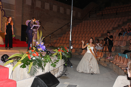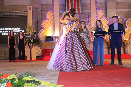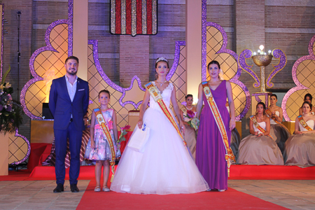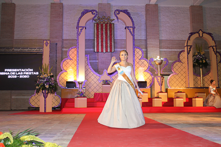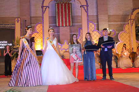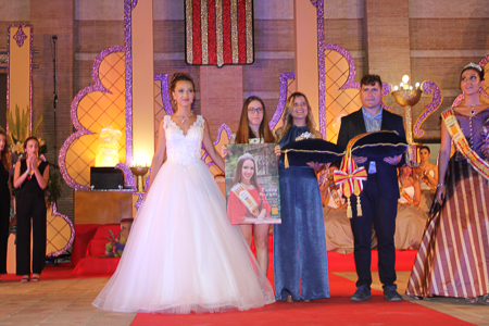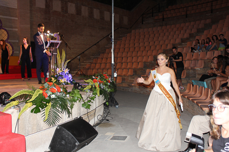 Toda presentación tiene una despedida, esa fue la de Pepa Sierra después de un intenso año. Con unas emotivas palabras cedió el testigo a Carmen Marzo, que bajó las escaleras del Auditorio resplandeciente, con un vestido blanco maravilloso. Una vez llegó al escenario, entre el aplauso de los asistentes, le fue impuesta la banda, la corona y se le hizo entrega de un pergamino. Previamente a ella, fue su Corte de Honor la que apareció en el escenario. Unas jovencitas que van a ser sus compañeras de batallas durante este Feria y Fiestas.