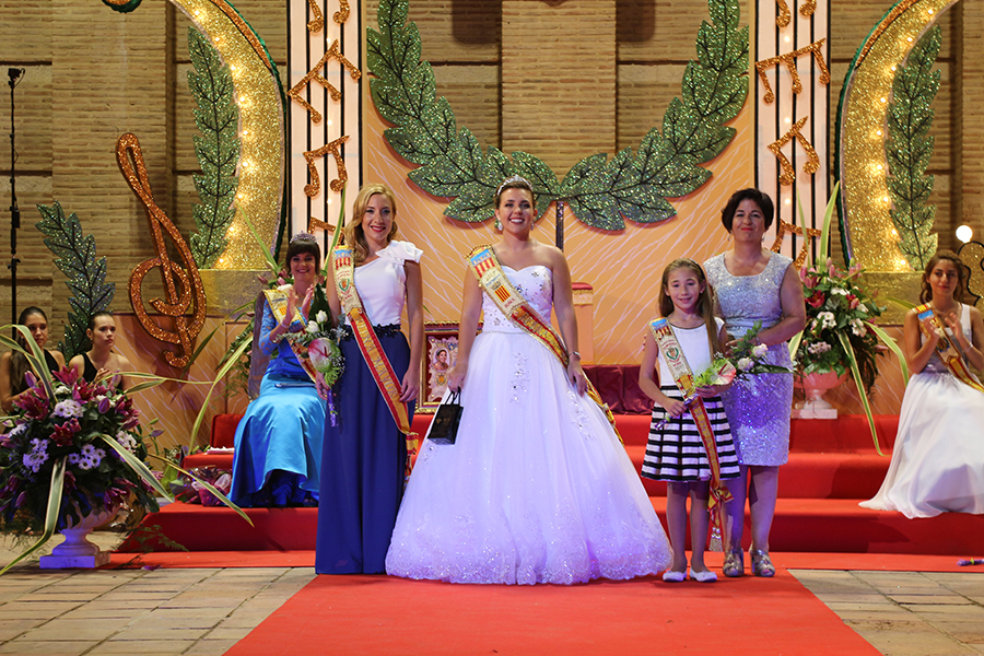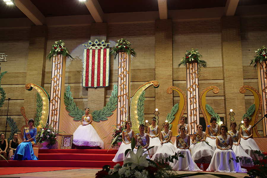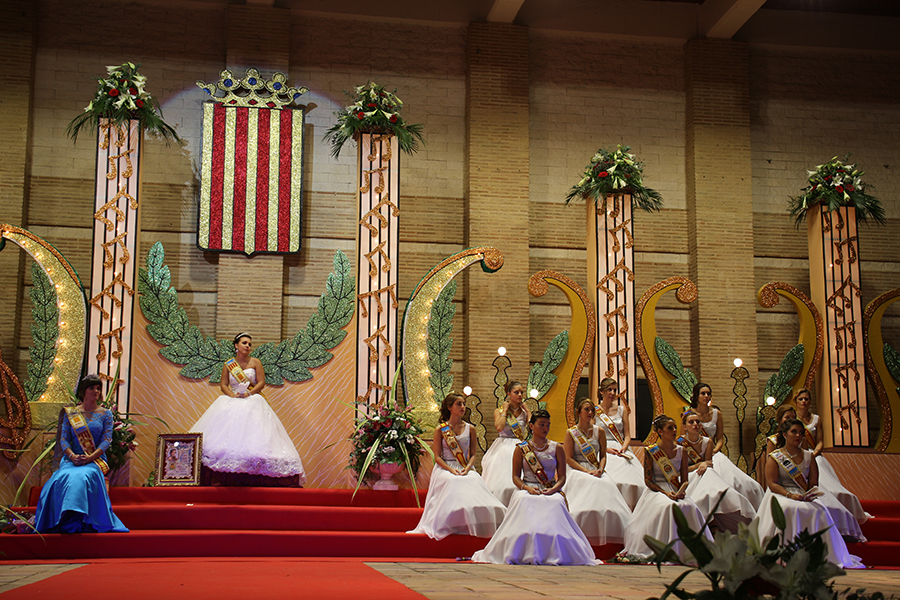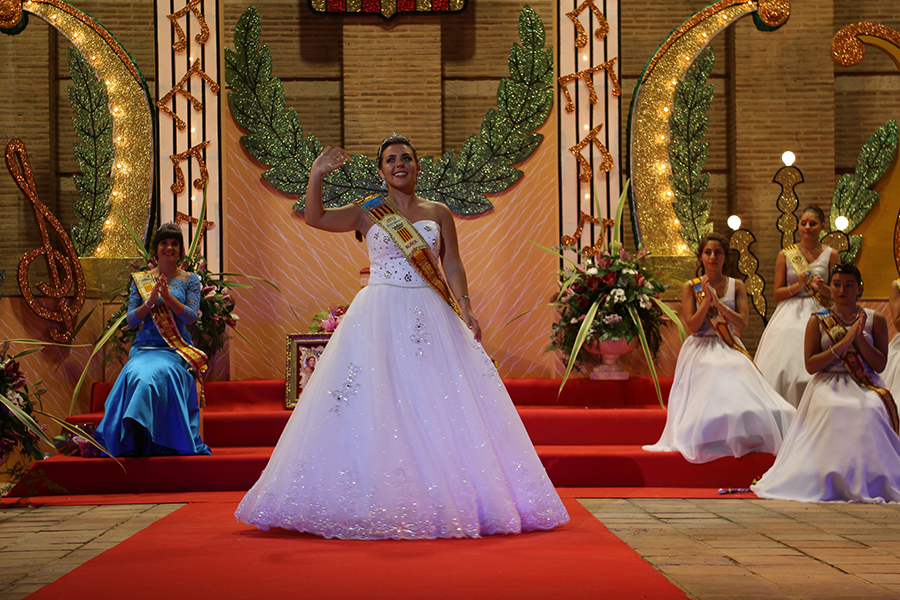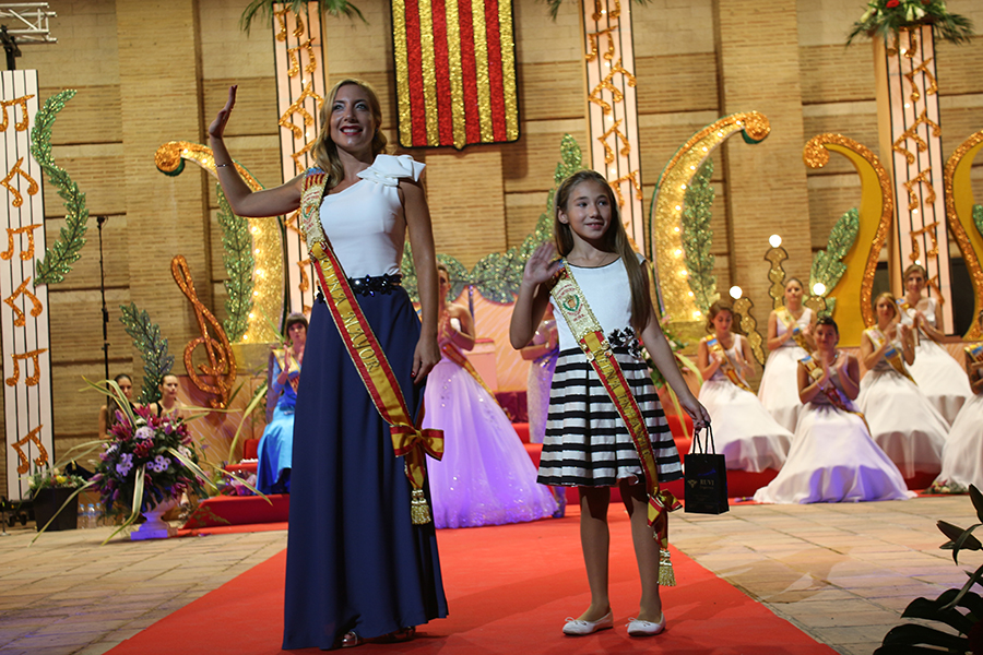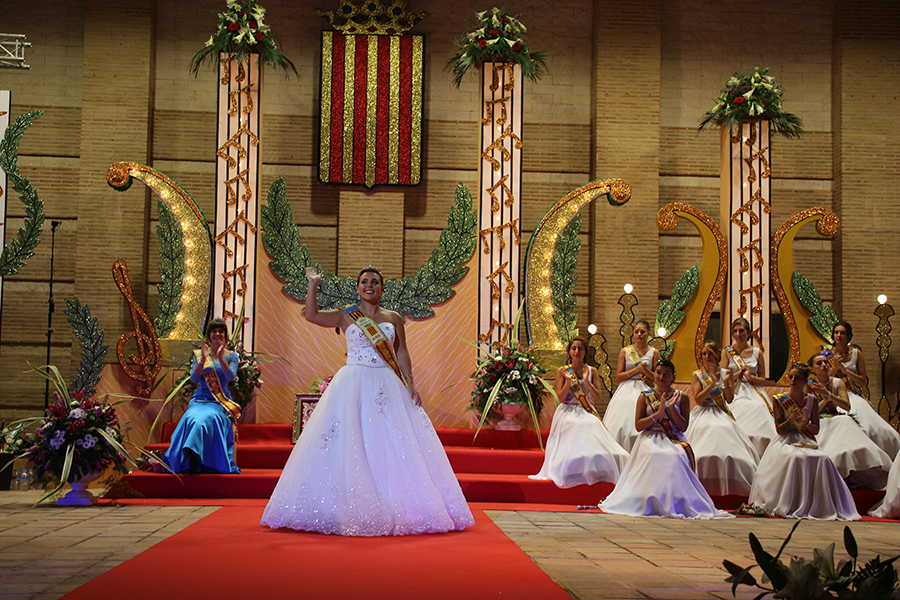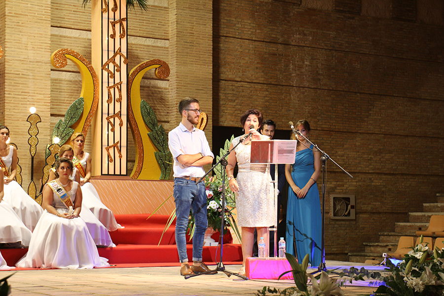 Toda presentación tiene una despedida, esa fue la de Mireia Pastor después de un intenso año. Con unas emotivas palabras cedió el testigo a Sara Palmer, que bajó las escaleras del Auditorio resplandeciente, con un vestido blanco maravilloso. Una vez llegó al escenario, entre el aplauso de los asistentes, le fue impuesta la banda, la corona y se le hizo entrega de un pergamino. Previamente a ella, fue su Corte de Honor la que apareció en el escenario. Unas jovencitas que van a ser sus compañeras de batallas durante este Feria y Fiestas.