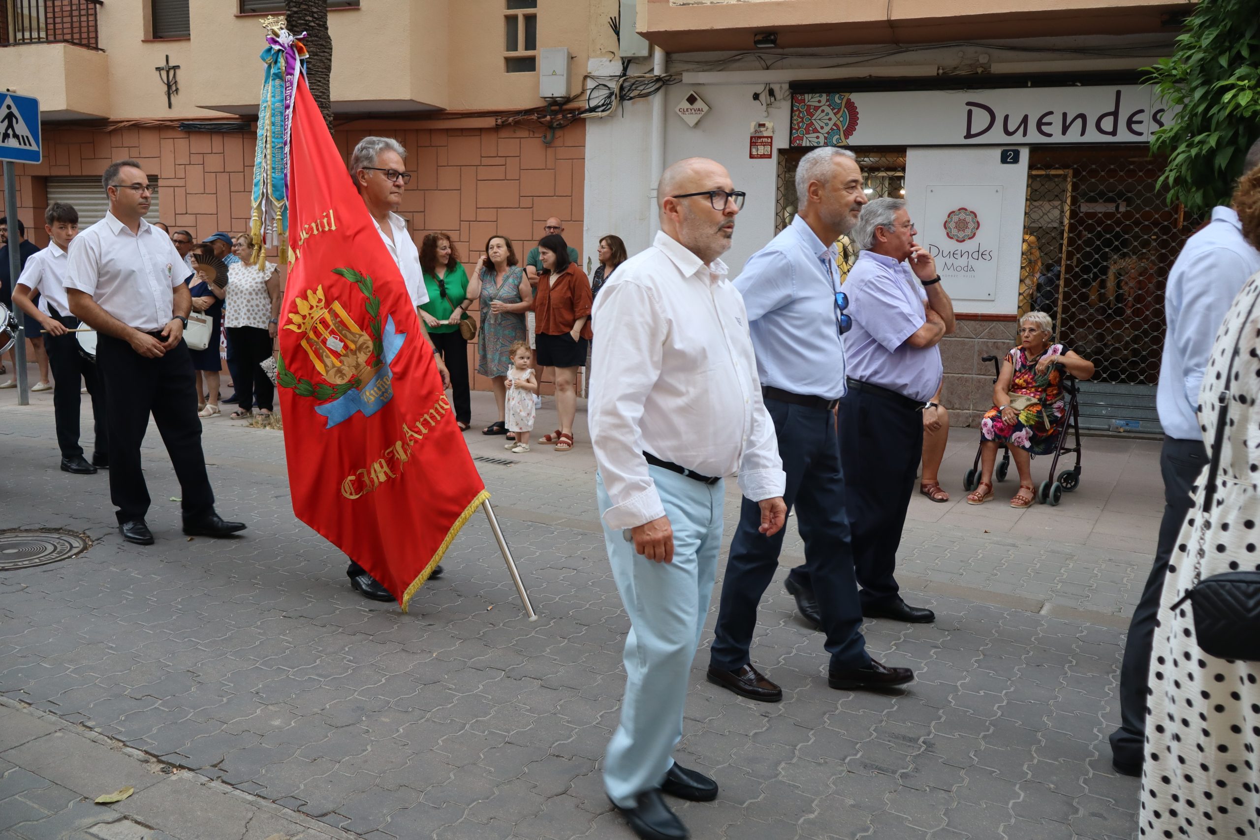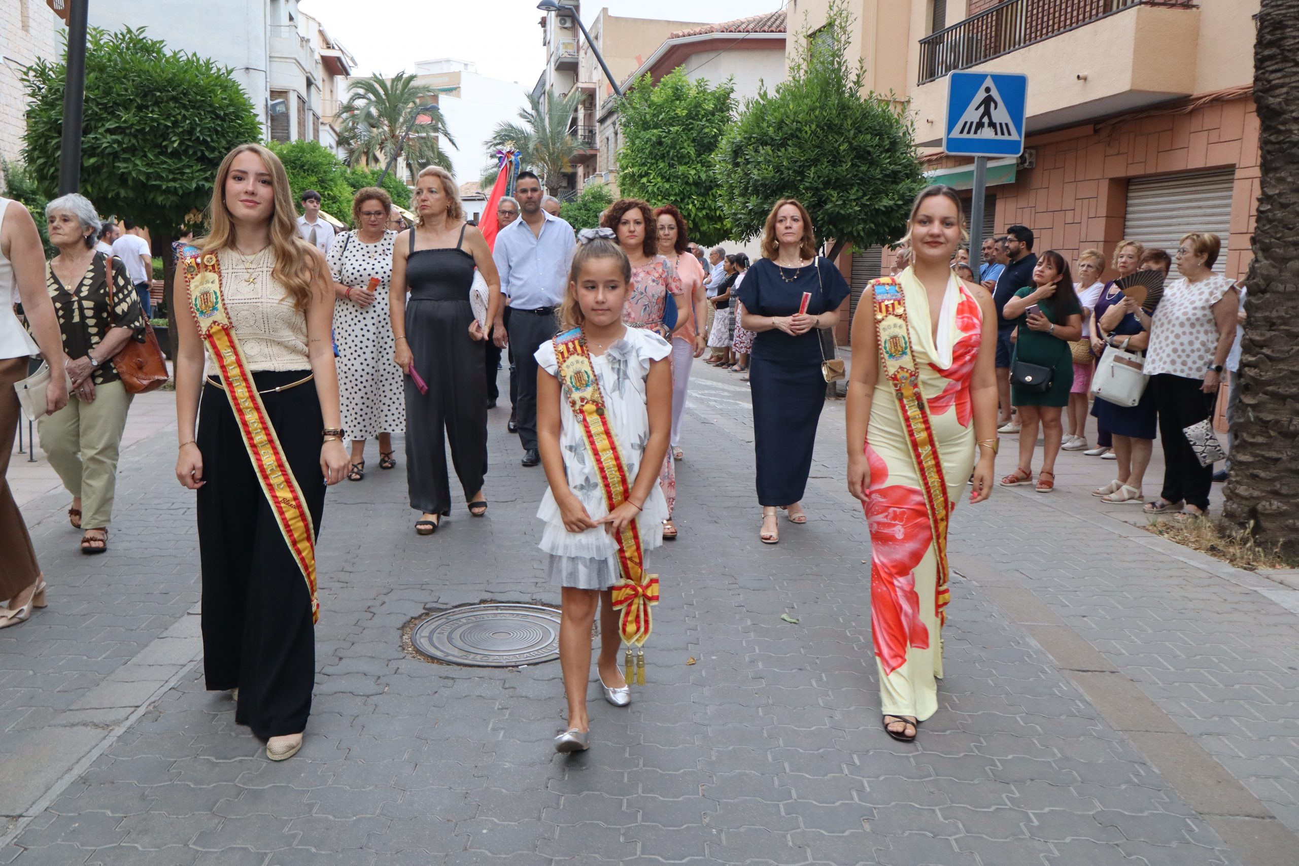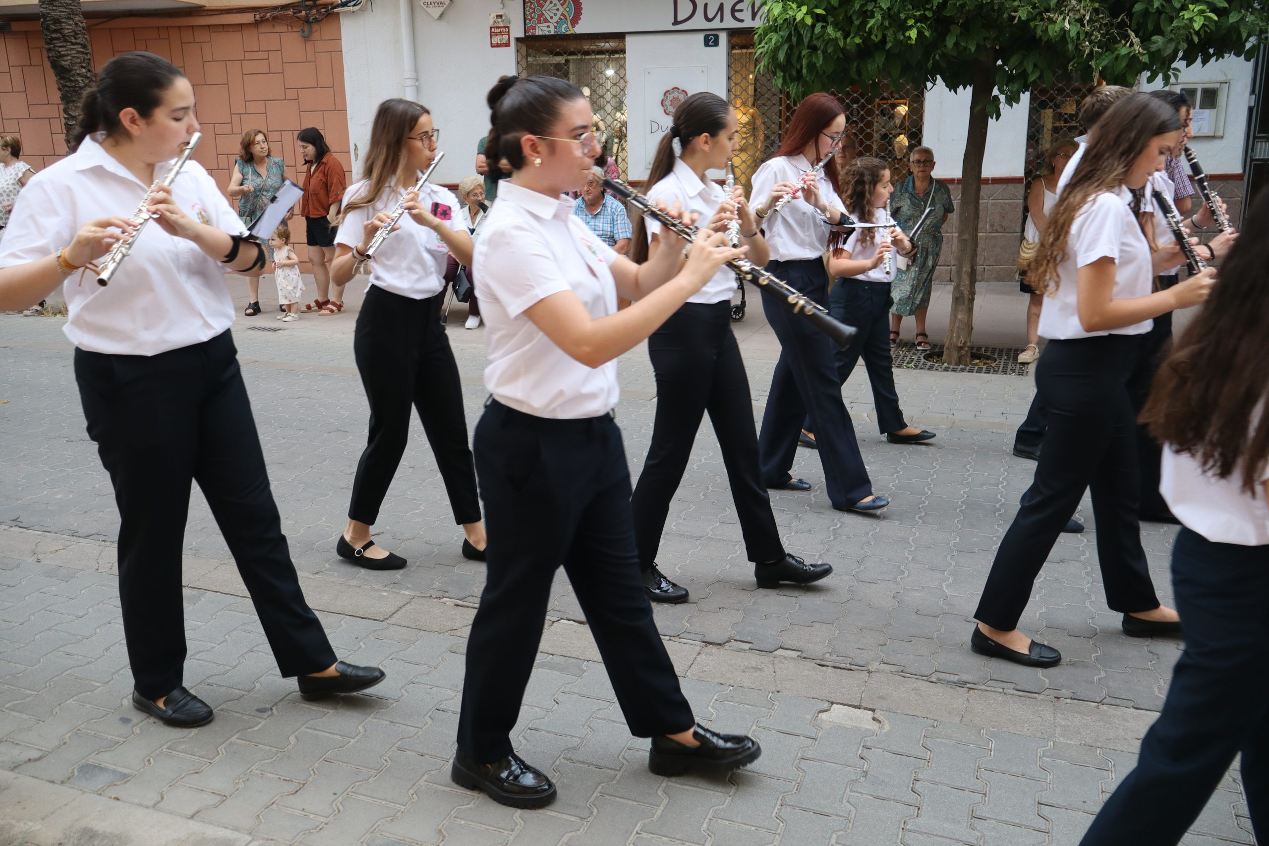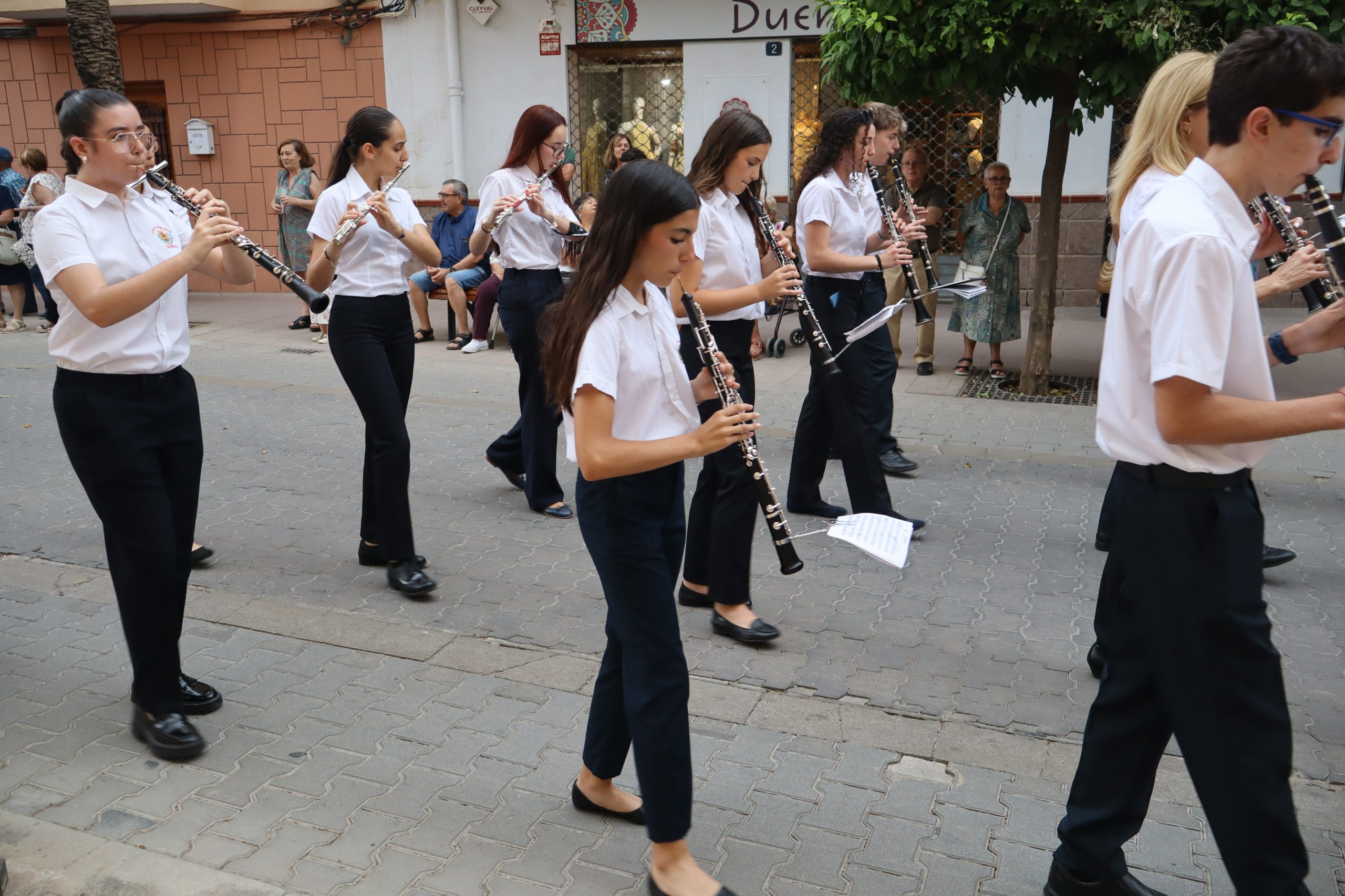 El cortejo lo cerraban los concejales Carlos Aviñó y Lucía Villar, así como las misses, representantes festeras y miembros de la directiva, seguidos por la banda juvenil del Centro Instructivo Musical La Armónica, que puso el acompañamiento musical a la jornada.