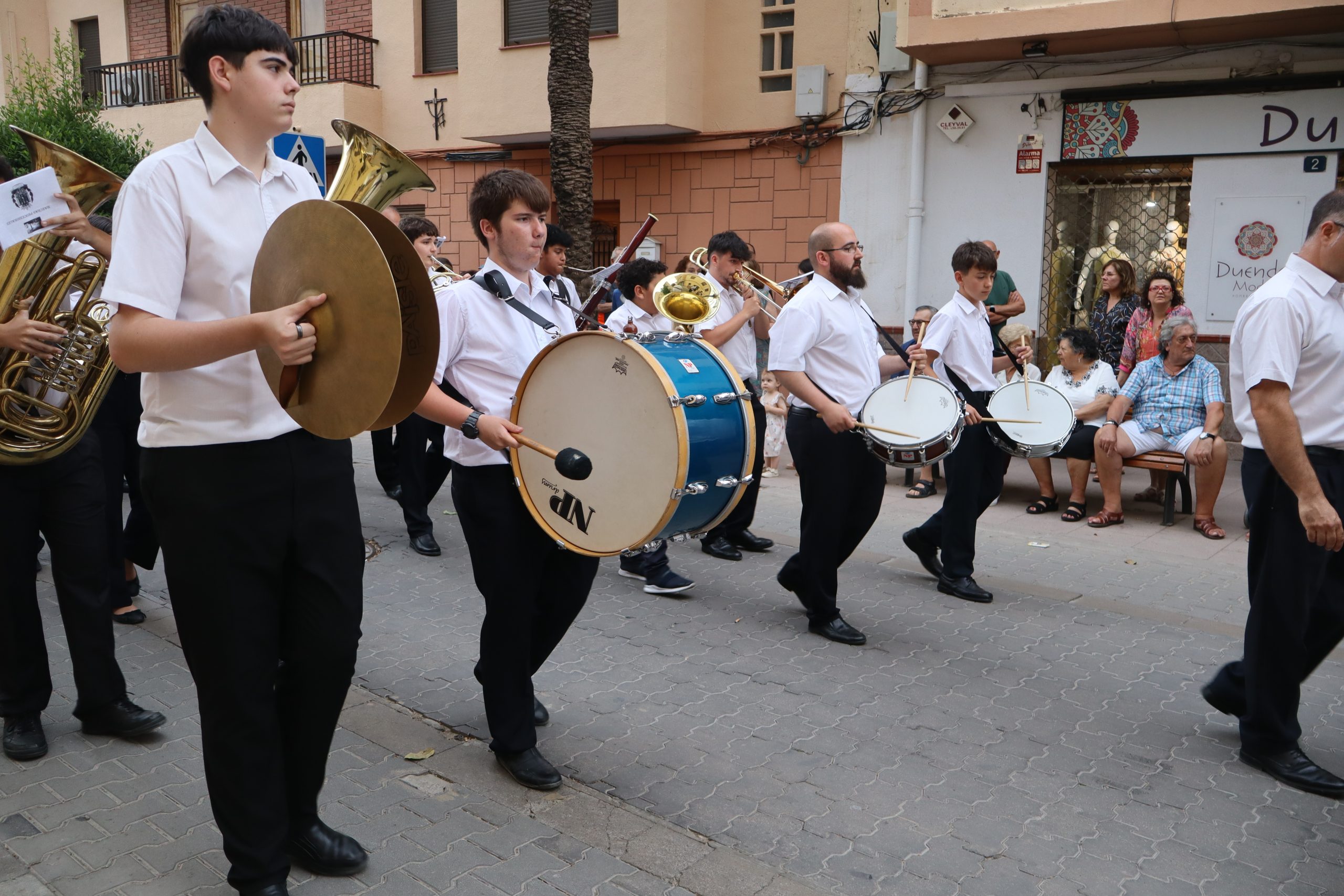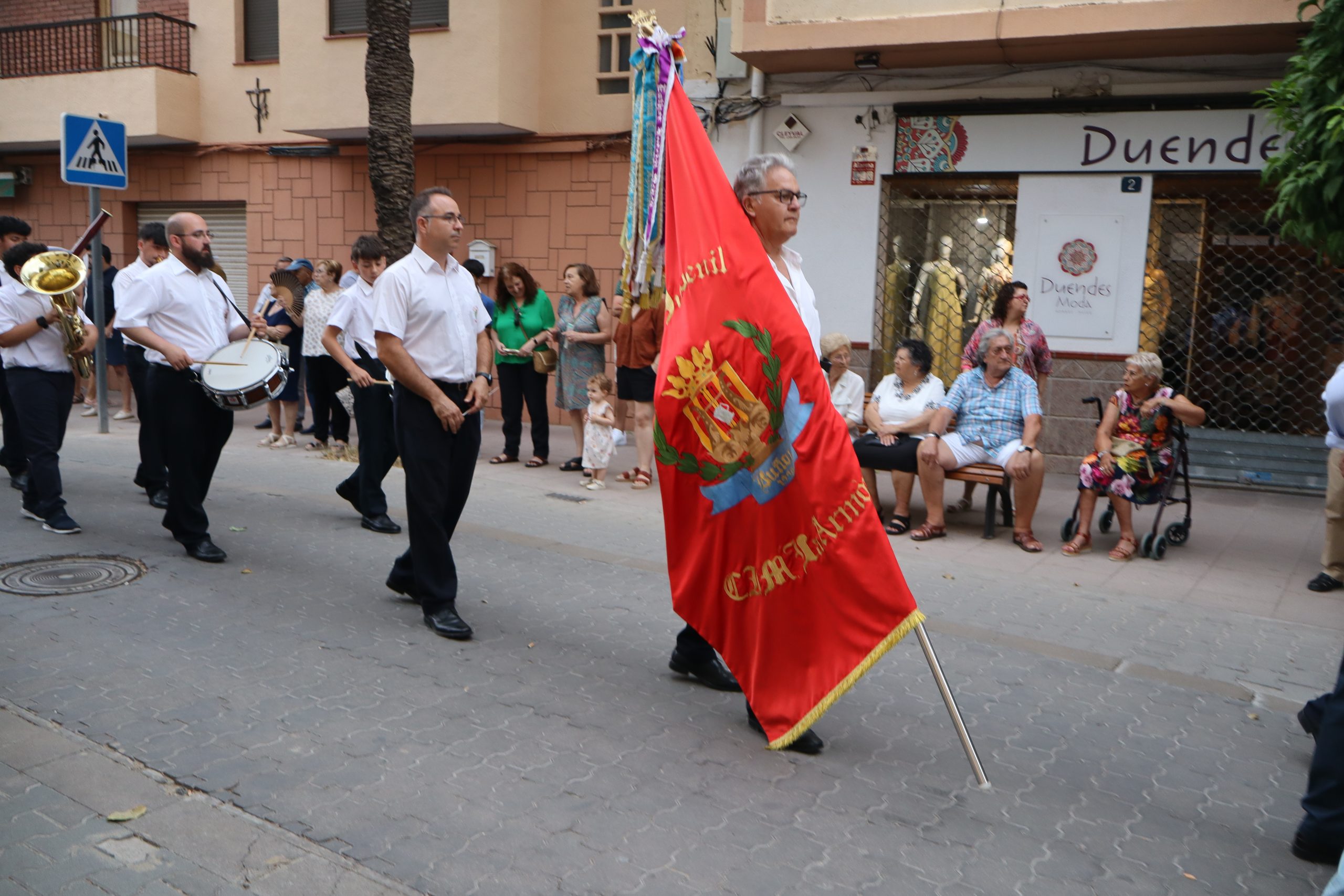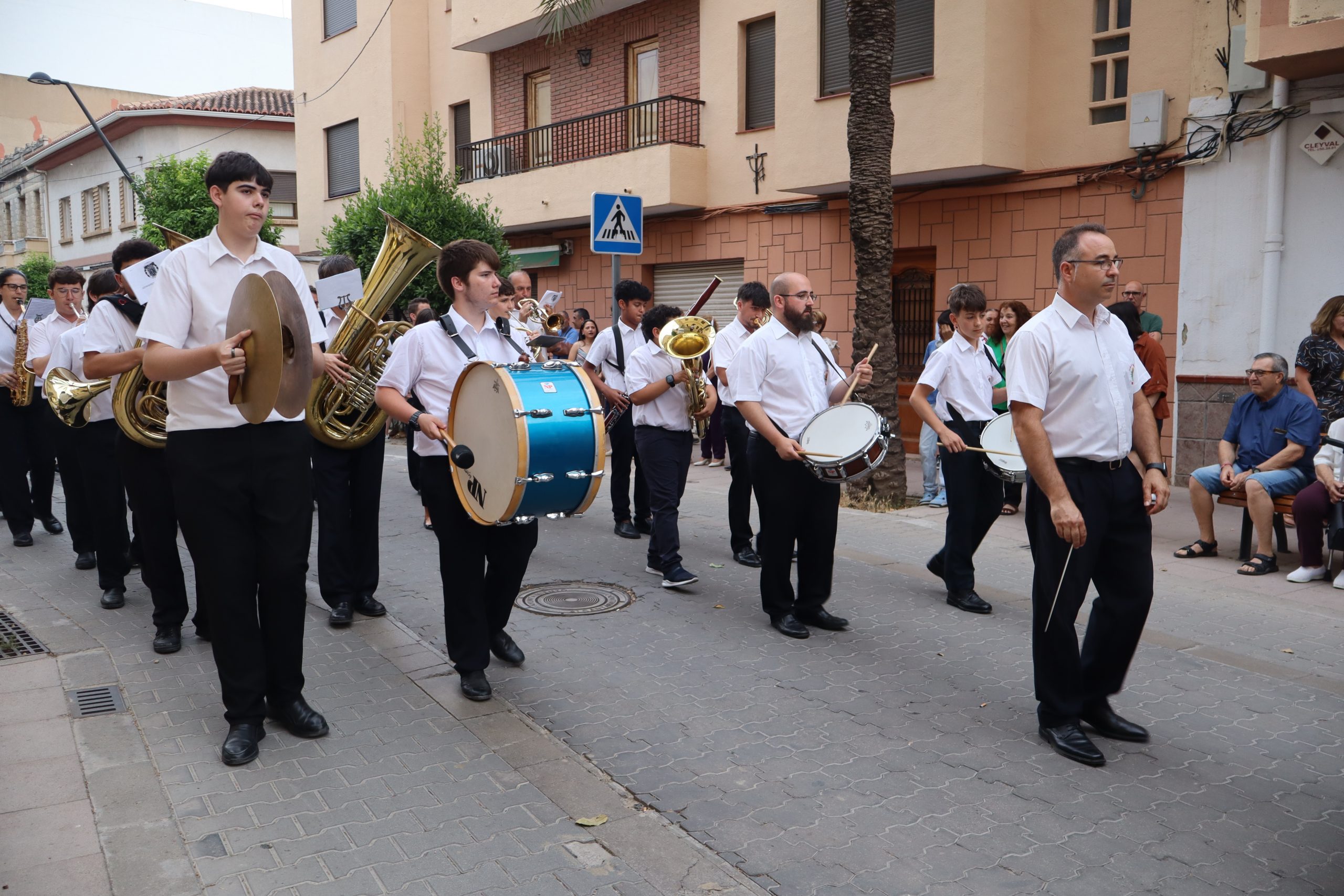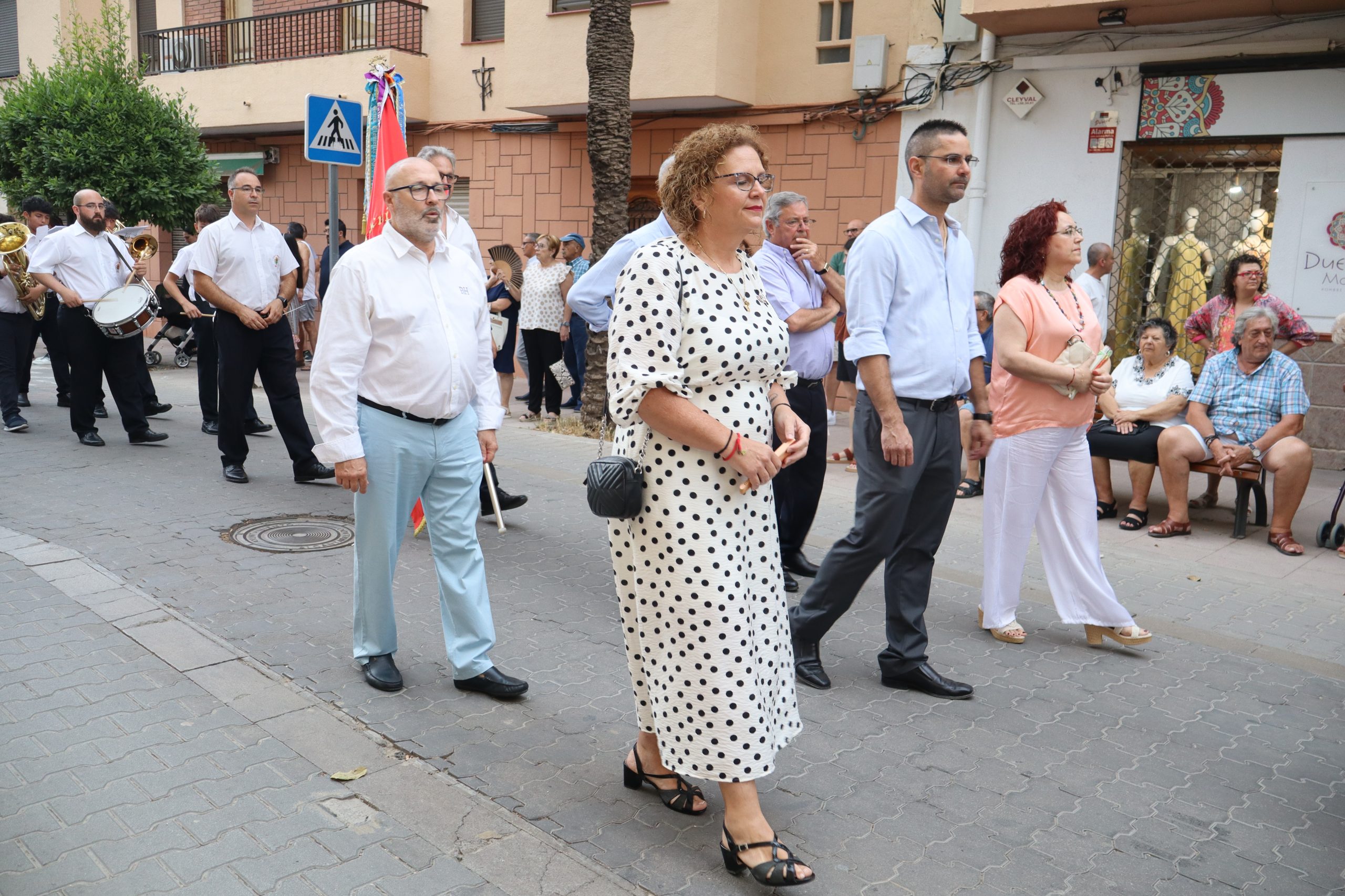 El cortejo lo cerraban los concejales Carlos Aviñó y Lucía Villar, así como las misses, representantes festeras y miembros de la directiva, seguidos por la banda juvenil del Centro Instructivo Musical La Armónica, que puso el acompañamiento musical a la jornada.