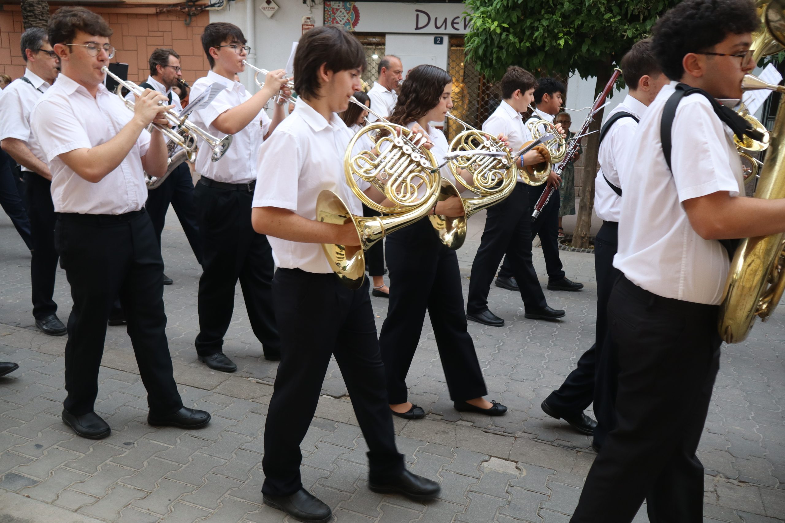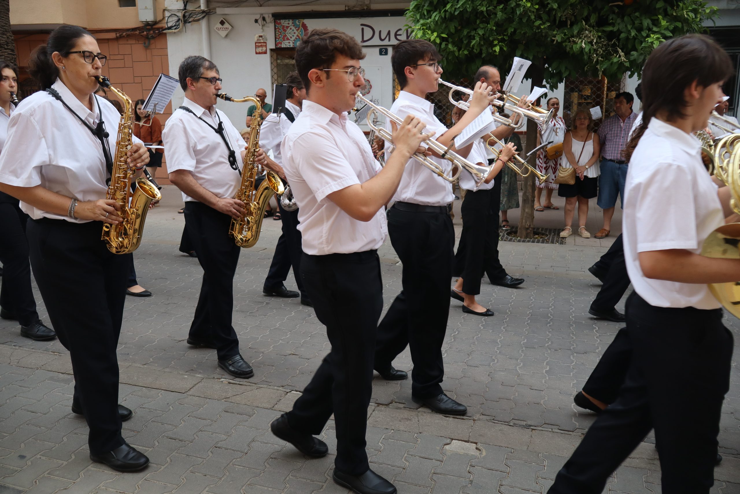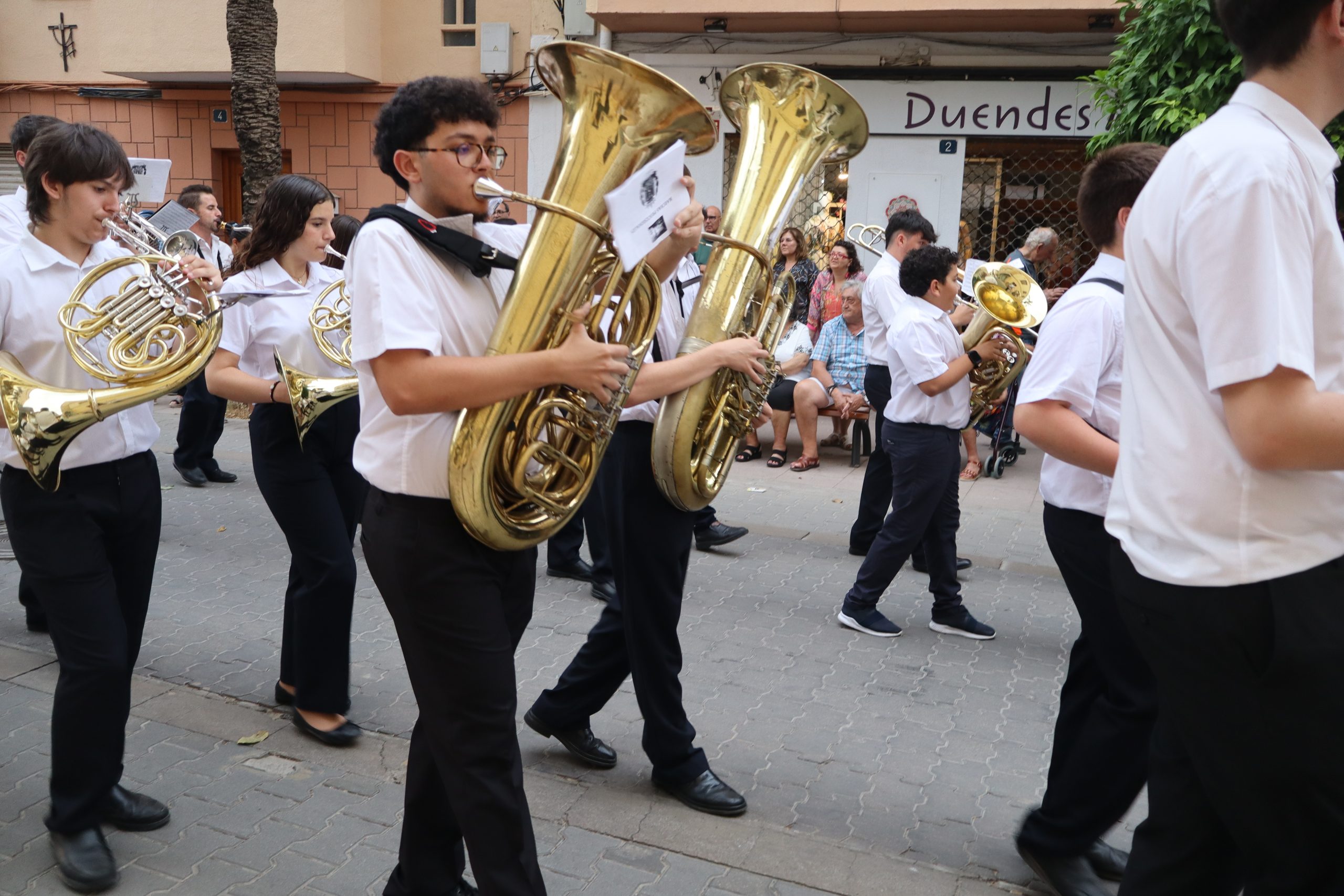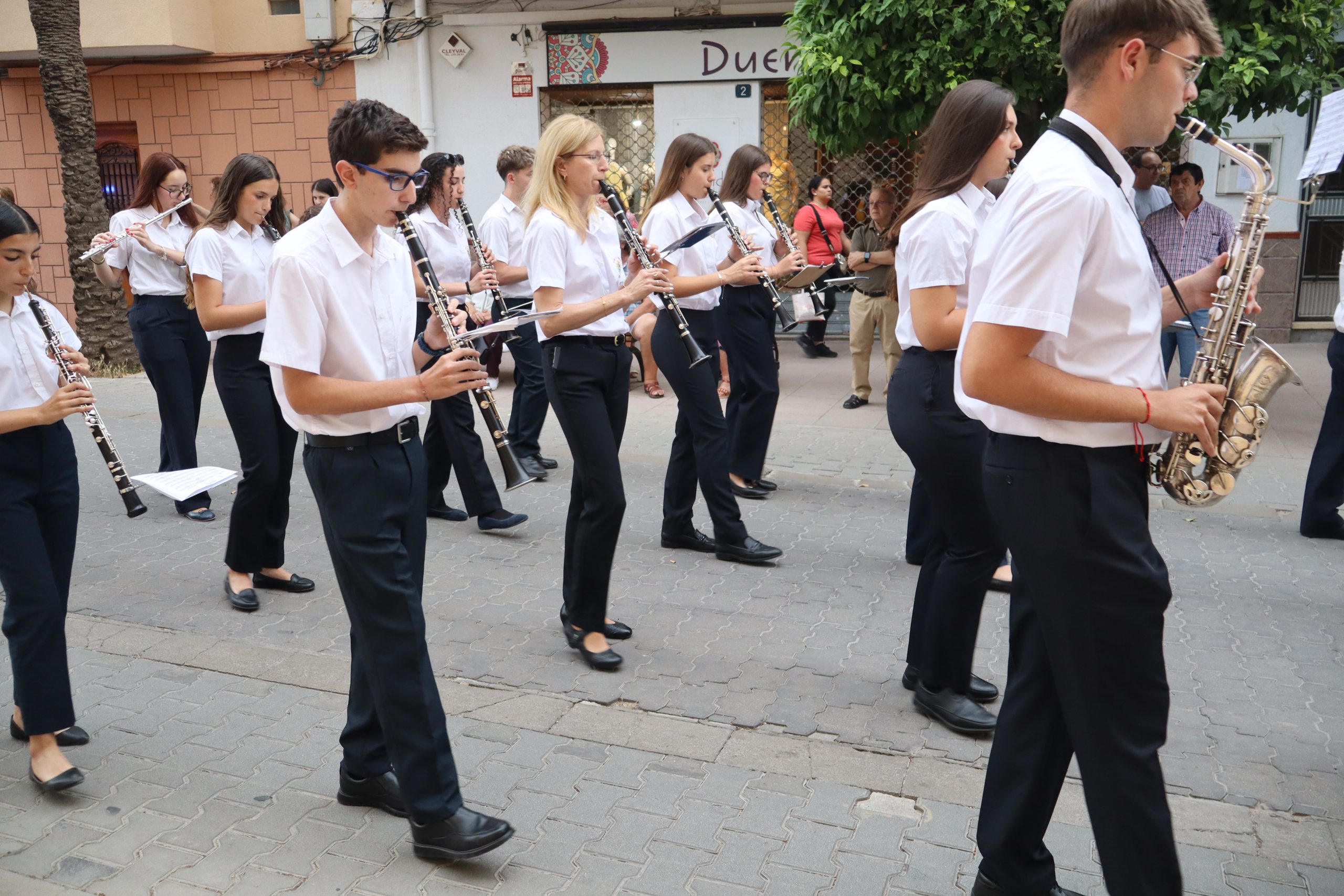 El cortejo lo cerraban los concejales Carlos Aviñó y Lucía Villar, así como las misses, representantes festeras y miembros de la directiva, seguidos por la banda juvenil del Centro Instructivo Musical La Armónica, que puso el acompañamiento musical a la jornada.