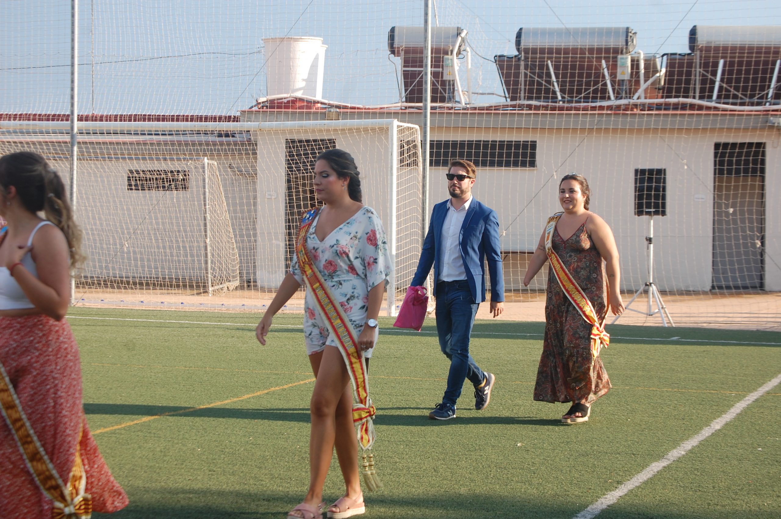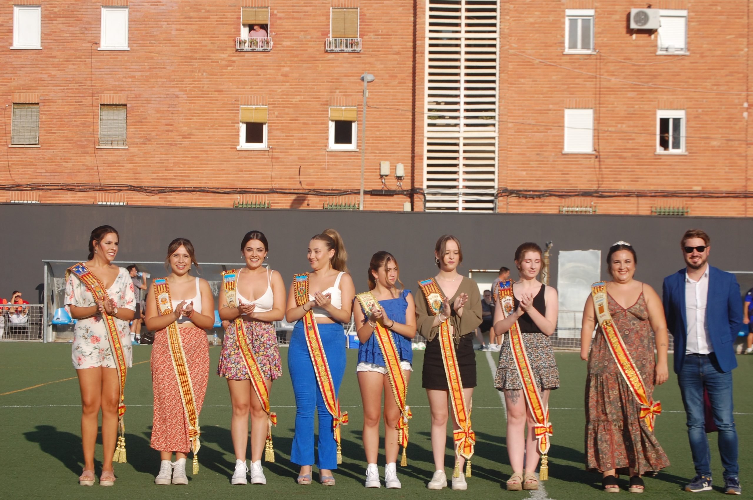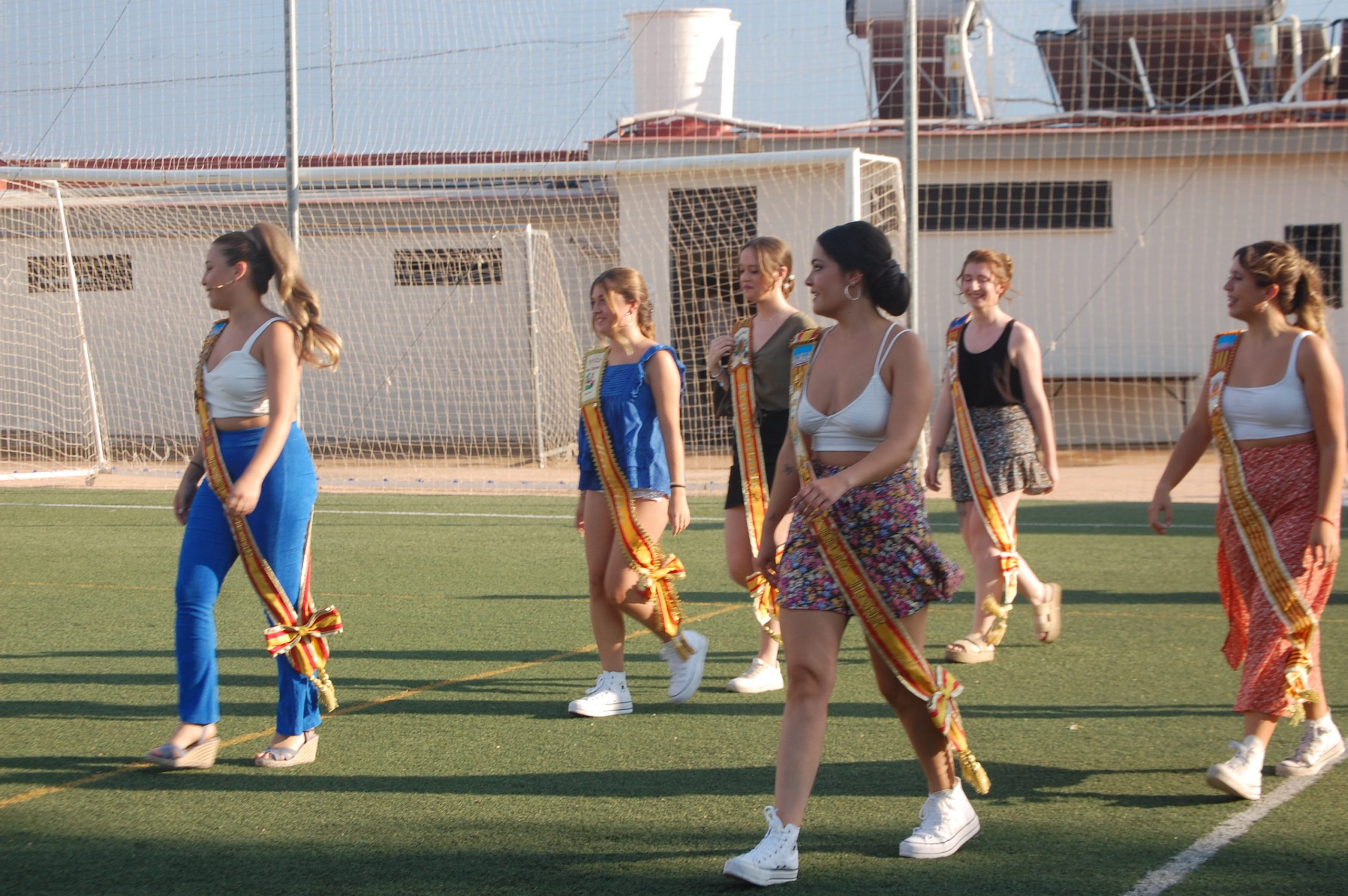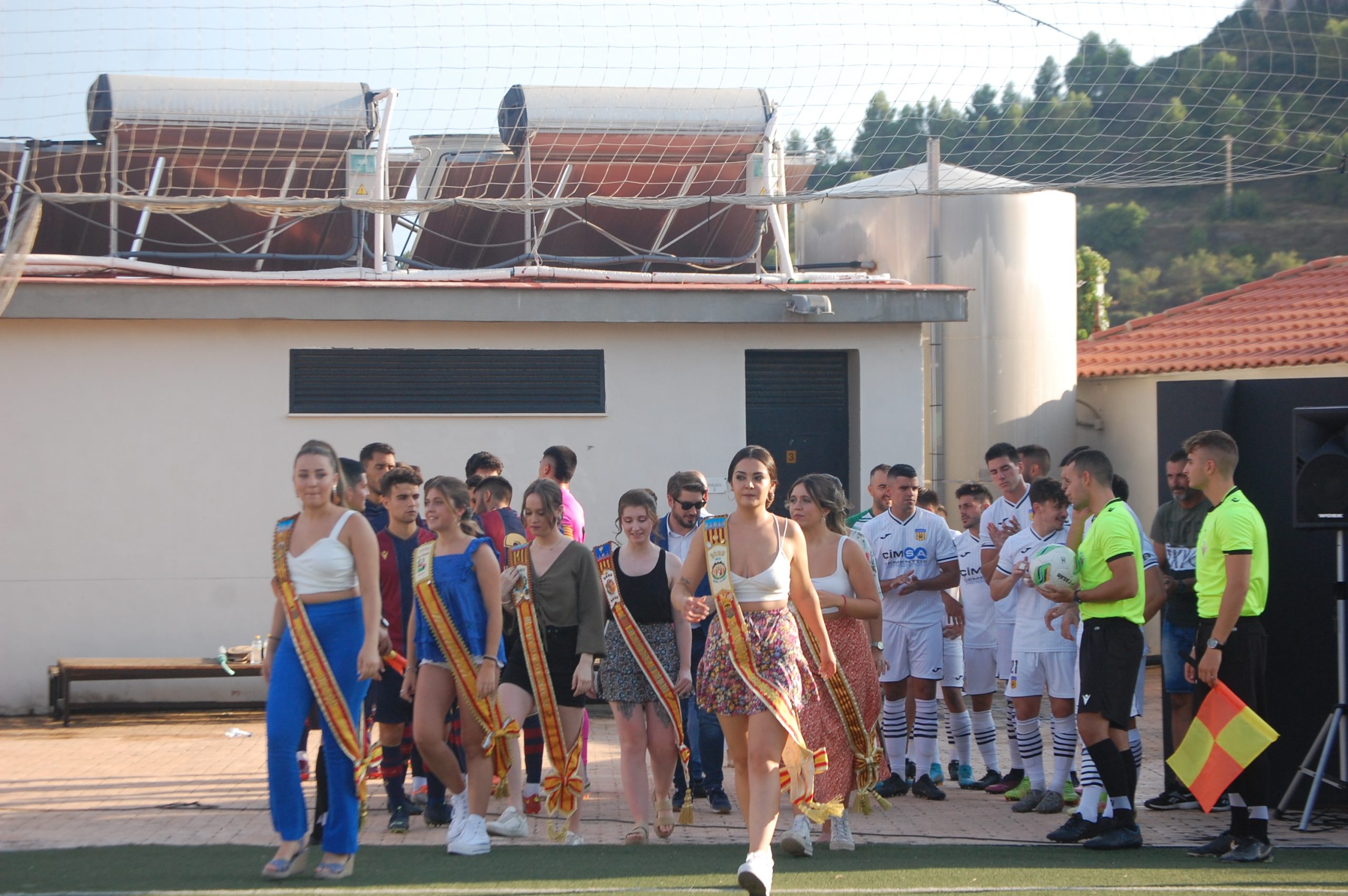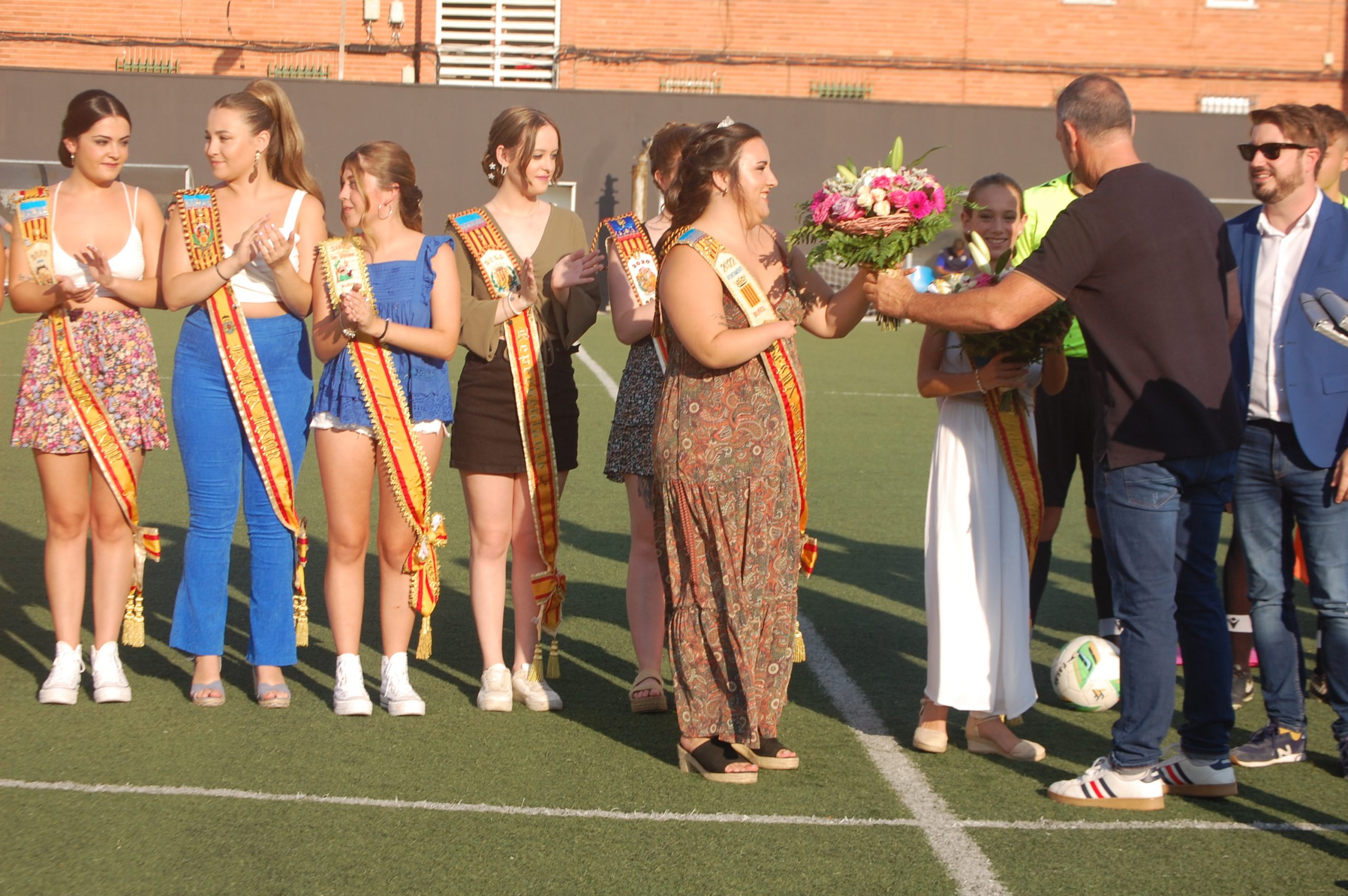 Redacción.- La Reina de la Feria y Fiestas de Buñol, Regina Martínez, ha realizado el saque de honor en la previa del partido que ha enfrentado al Club Deportivo Buñol ante el Atlético Levante. Este choque tenía que haber sido el de la presentación del club blanco, pero la entidad ha decidido -debido a la pequeña tormenta que cayó- aplazarla hasta el próximo choque que el primer equipo dispute en el Beltrán Báguena. Lo que sí ha aprovechado la primera plantilla es para hacerse la foto de familia junto a la Reina de las Fiestas, su Corte de Honor y parte de la corporación municipal. Además, la representante del CD Buñol y compañera de corte, le ha hecho entrega de un ramo de flores a Regina.