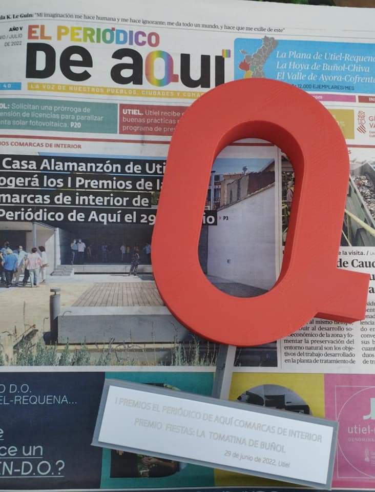 Redacción.- Juncal Carrascosa, Alcaldesa de Buñol, y María Vallés, concejala de Turismo y Tomatina del Consistorio, asistieron en el día de ayer a la I Edición de los Premios El Periódico de Aquí Comarcas de Interior para recibir el premio en la categoría Fiestas para La Tomatina.