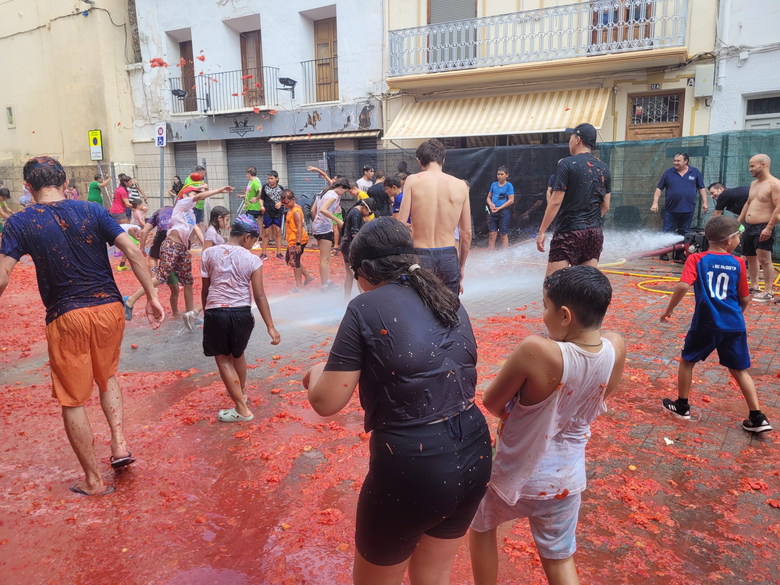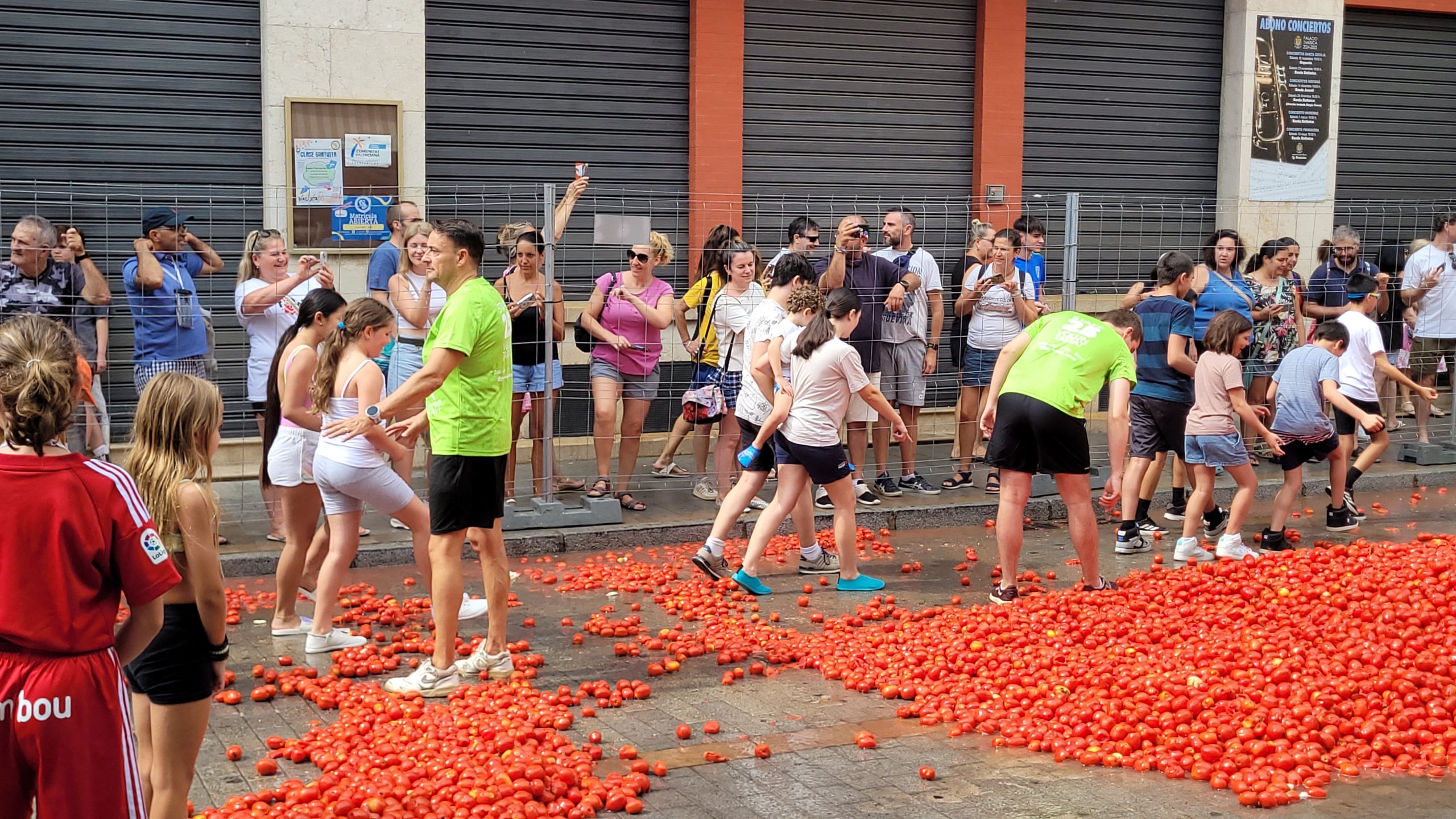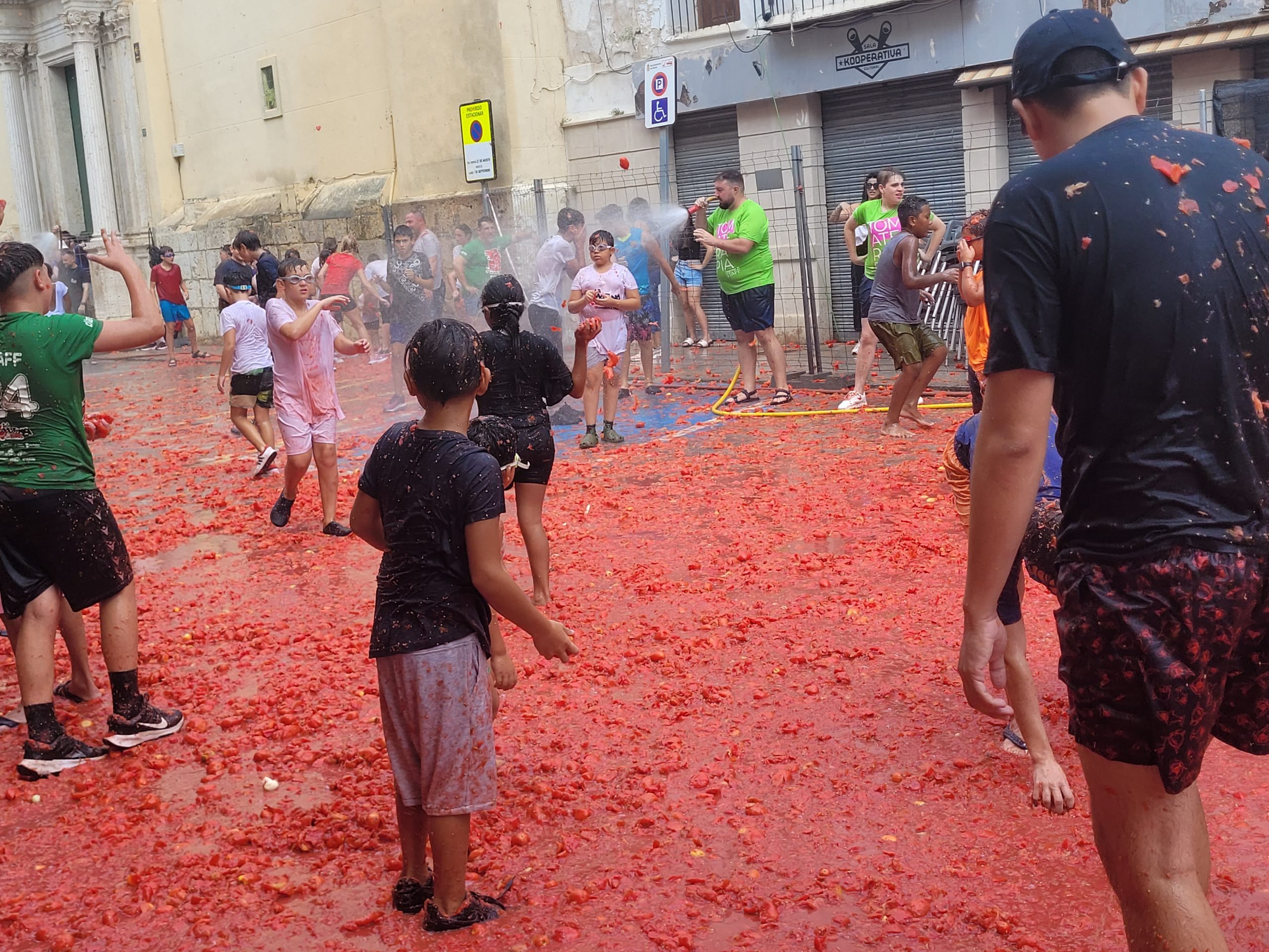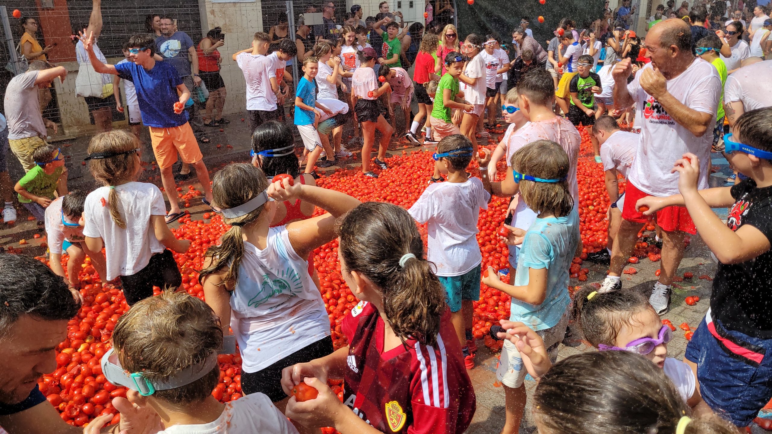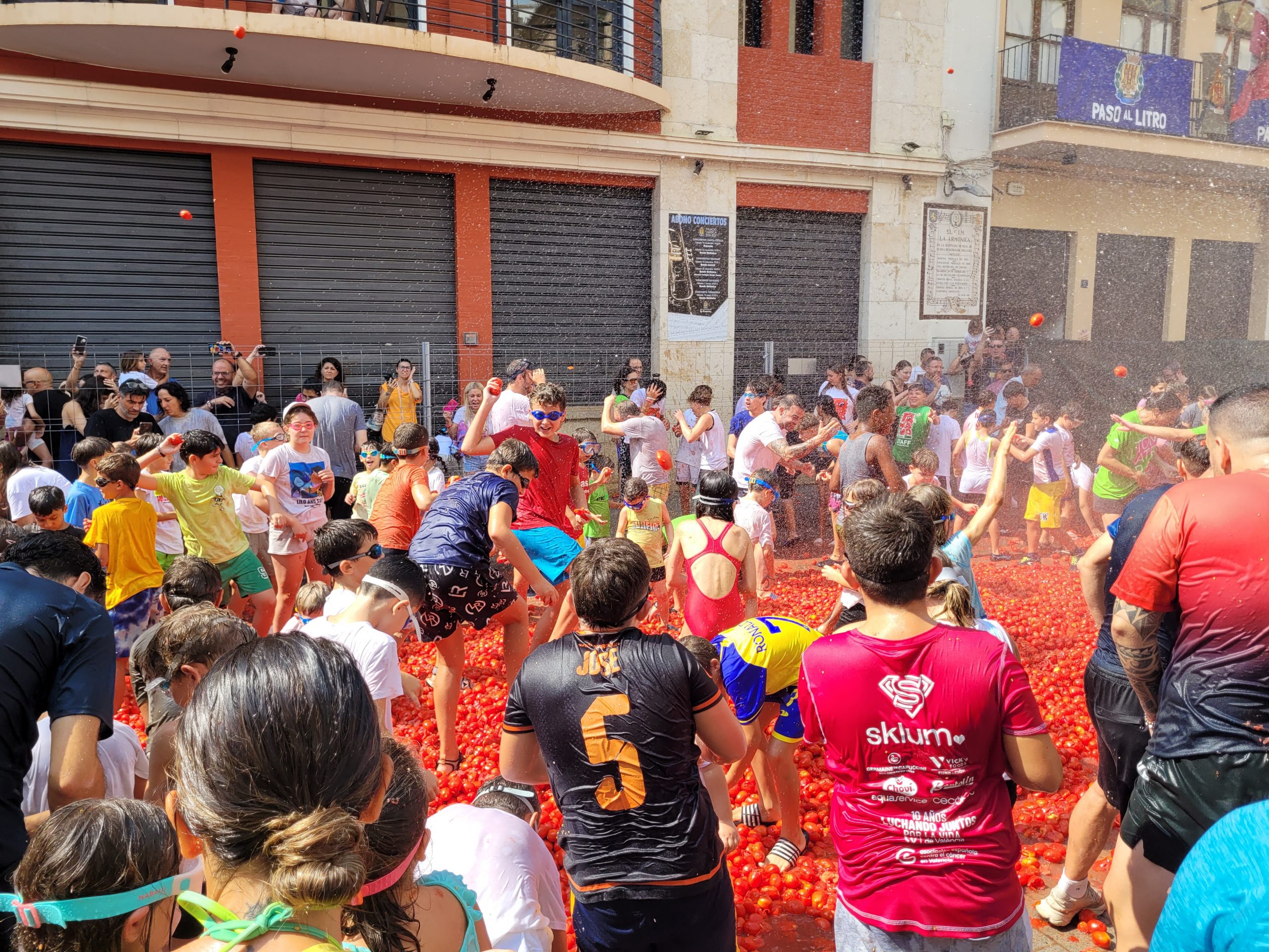 La Plaza del Pueblo de Buñol acogió a gran cantidad de niños y niñas que vivieron momentos de felicidad rodeados de más de 10.000 kilos de tomates. Eso sí, muchas y muchos estuvieron acompañados de sus padres, que en todo momento velaron por que se lo pasaran en grande. La Comisión de Fiestas y los trabajadores del Ayuntamiento de Buñol se encargaron de que todo transcurriera de la mejor manera. Hubo emoción, batalla y mucha diversión entre unos pequeños que se lo pasaron genial y se van introduciendo en la fiesta más popular de la localidad