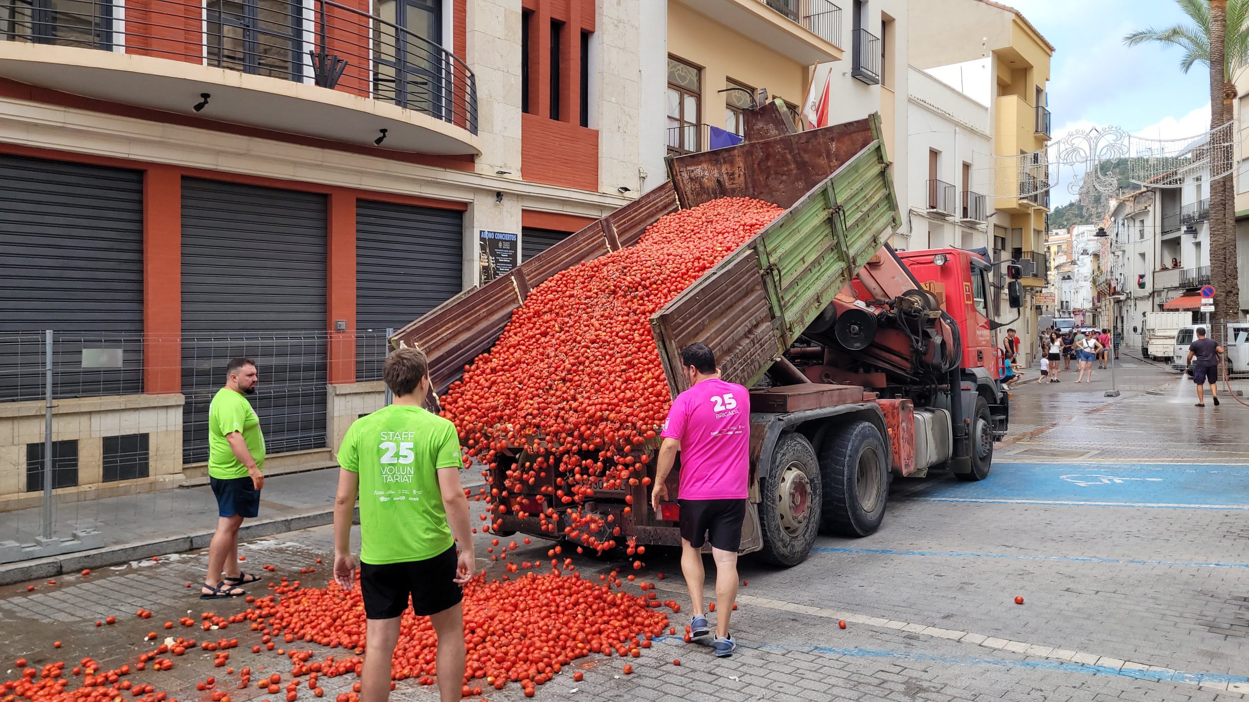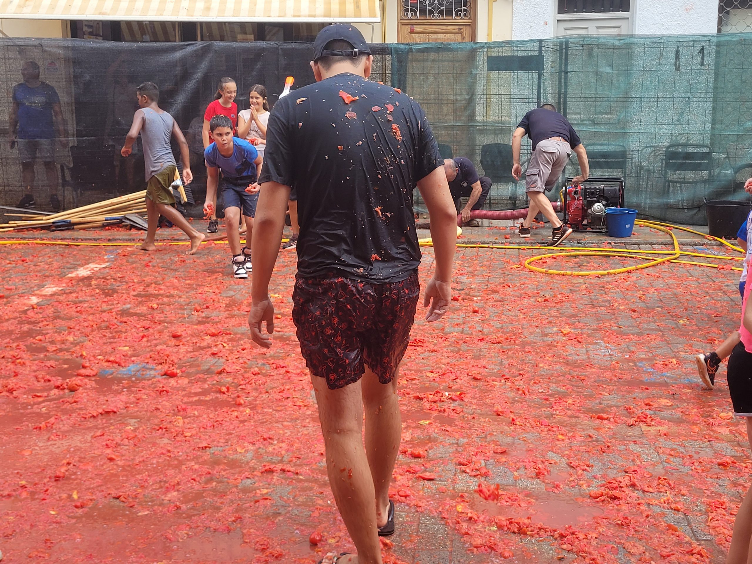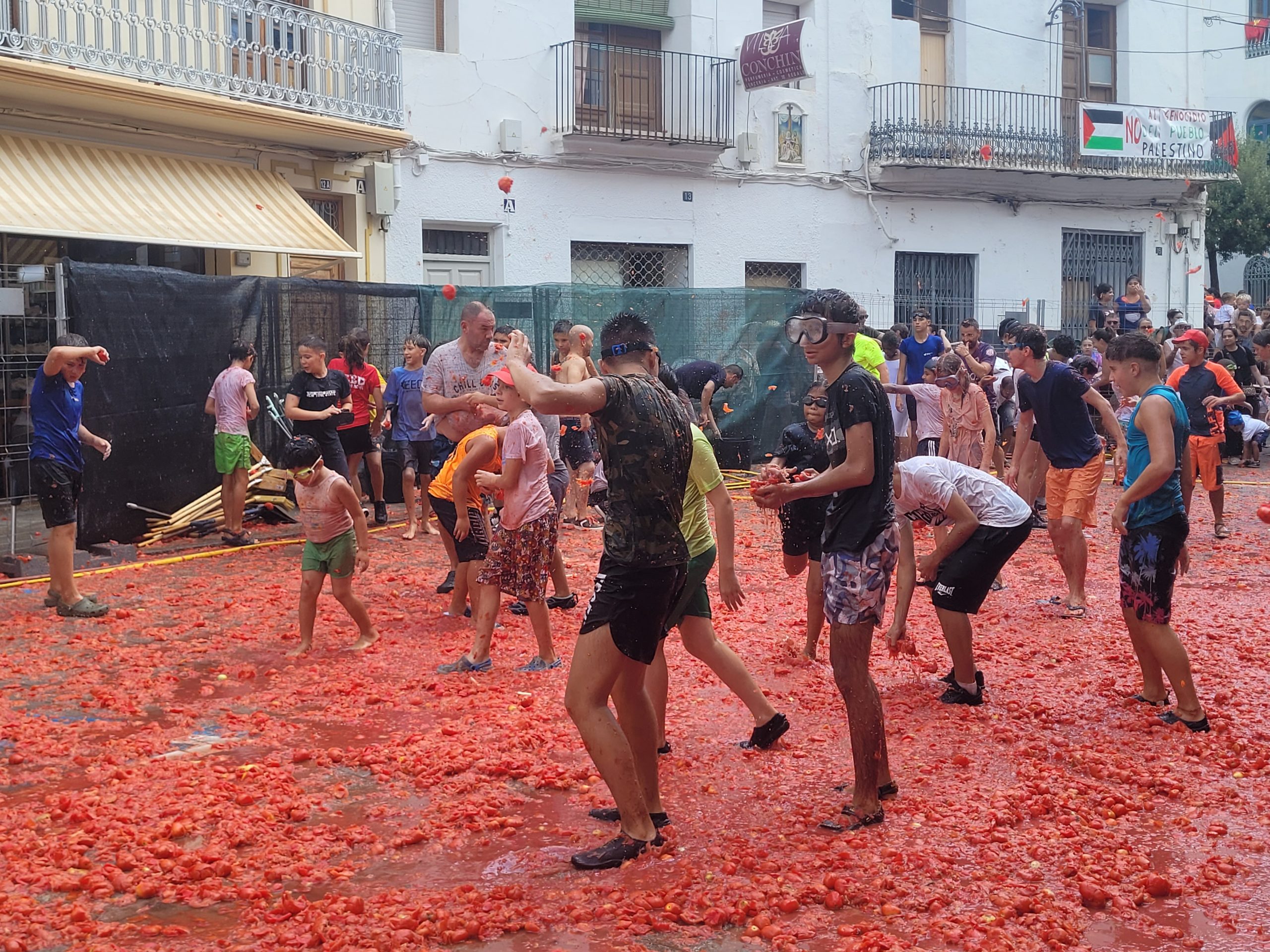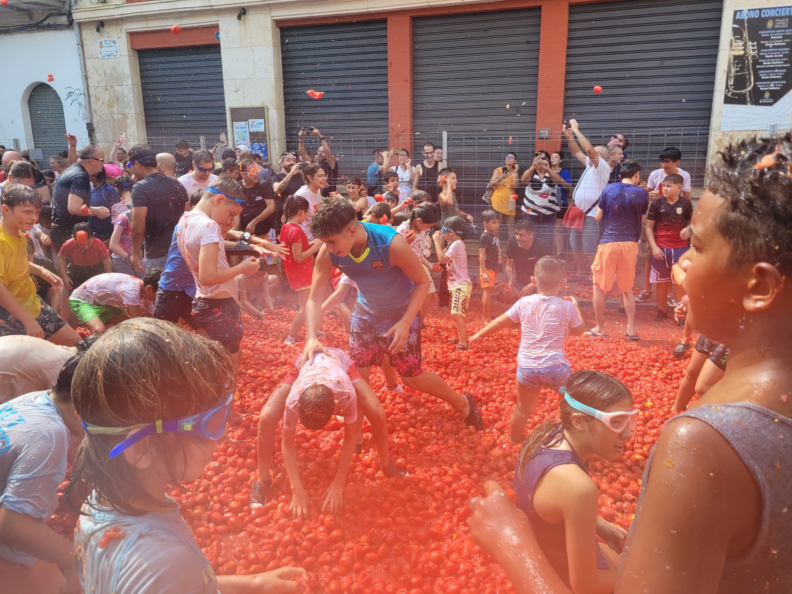 La Plaza del Pueblo de Buñol acogió a gran cantidad de niños y niñas que vivieron momentos de felicidad rodeados de más de 10.000 kilos de tomates. Eso sí, muchas y muchos estuvieron acompañados de sus padres, que en todo momento velaron por que se lo pasaran en grande. La Comisión de Fiestas y los trabajadores del Ayuntamiento de Buñol se encargaron de que todo transcurriera de la mejor manera. Hubo emoción, batalla y mucha diversión entre unos pequeños que se lo pasaron genial y se van introduciendo en la fiesta más popular de la localidad