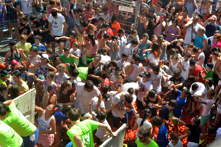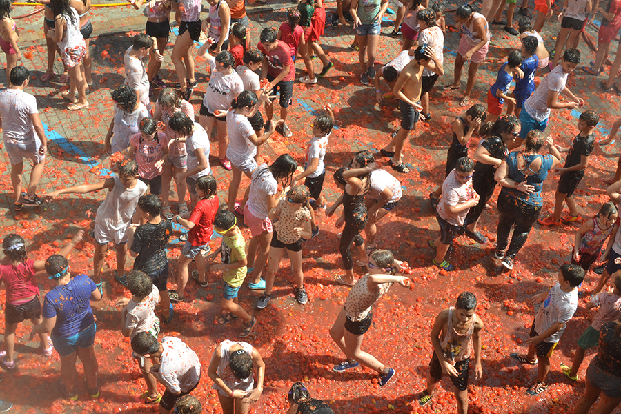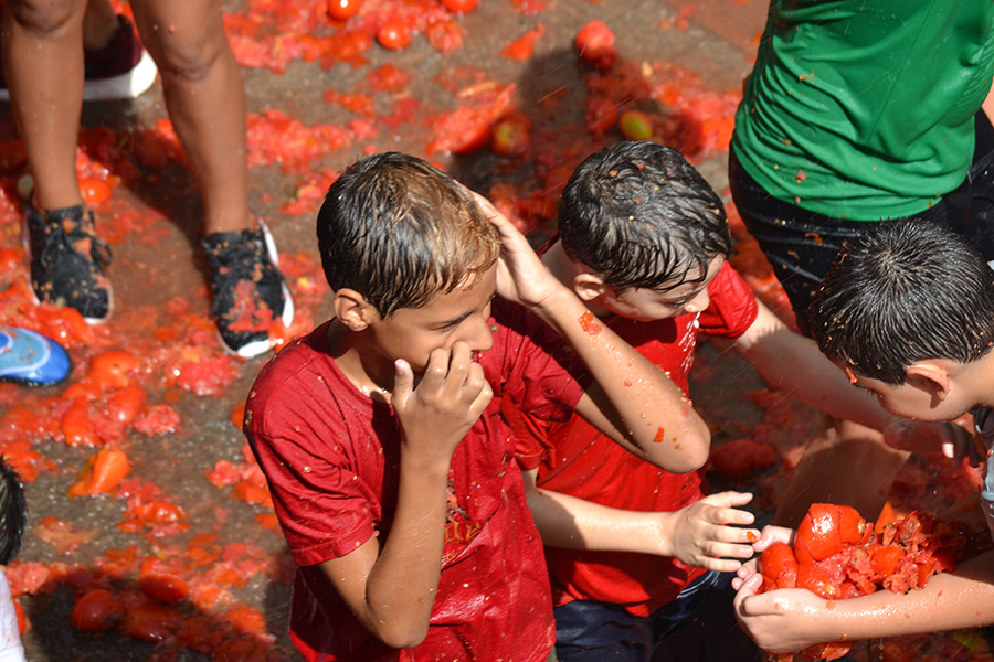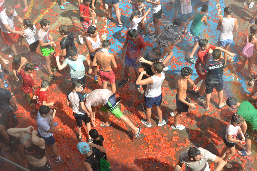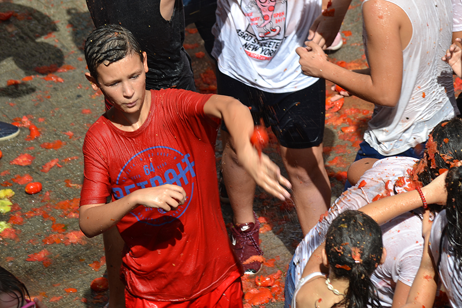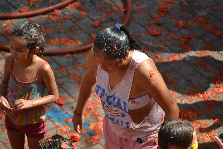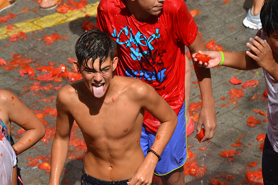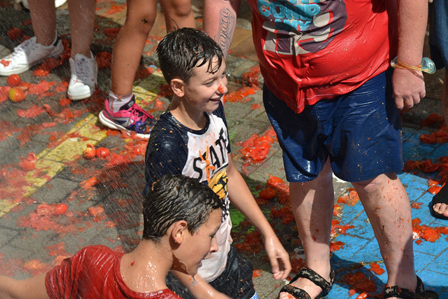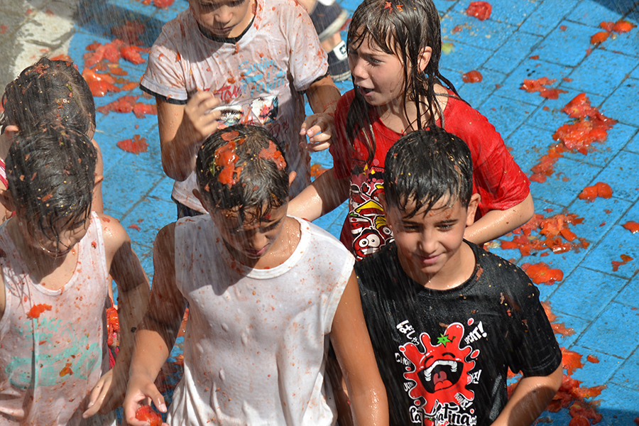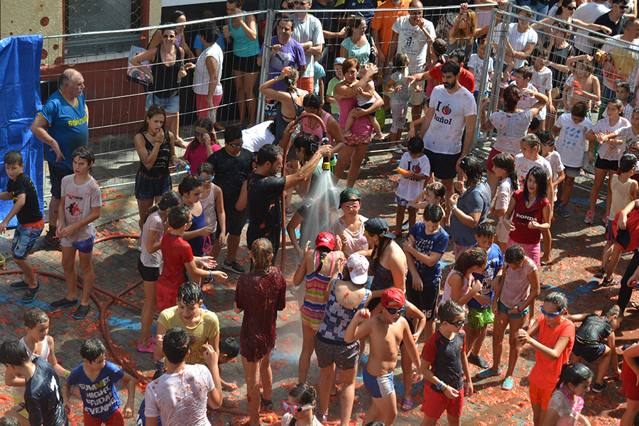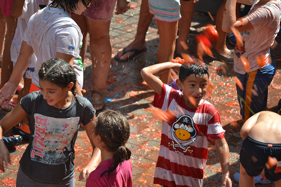 Esta mañana de sábado 26 de agosto se ha celebrado en Buñol la quinta edición de la Tomatina Infantil. Con cientos de menores de 14 años lanzándose tomates en la plaza del pueblo, se ha demostrado que esta pequeña Tomatina está ya más que consolidada en nuestra localidad, a pesar de que la noche del viernes es larga. A las 12 horas un pequeño camión ha atravesado el lugar de la batalla, depositando gran cantidad de tomate, hasta 2.500 kg., para delicia de los pequeños y no tan pequeños durante algo más de media hora. Aquí os dejamos con una galería fotográfica del evento.