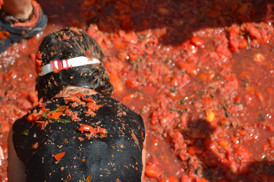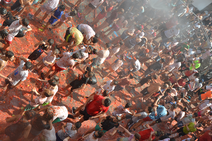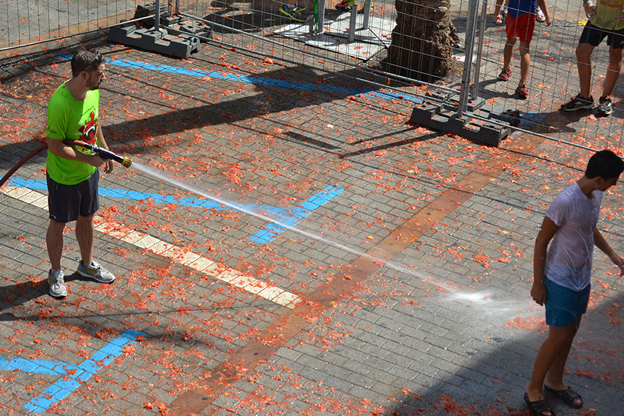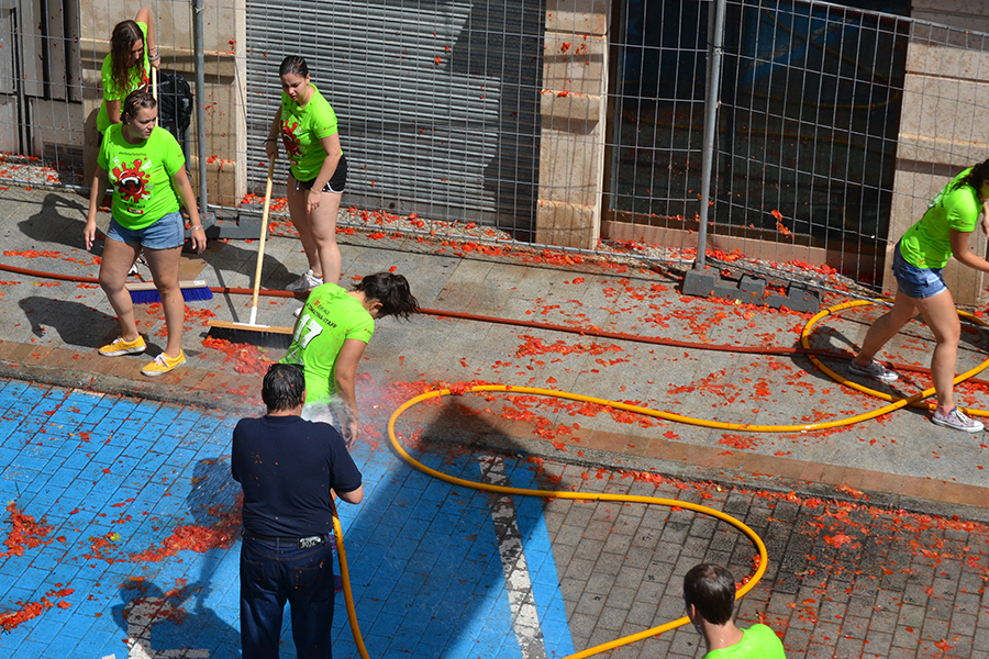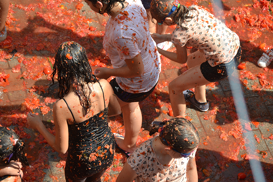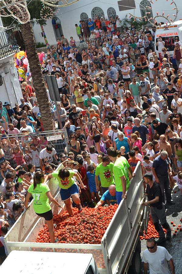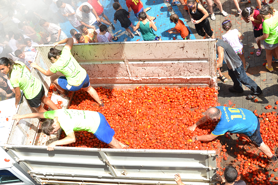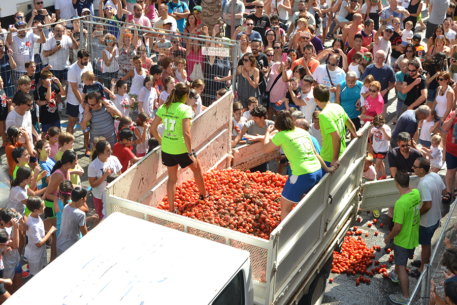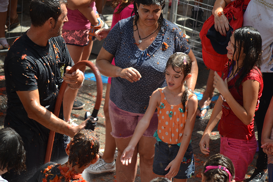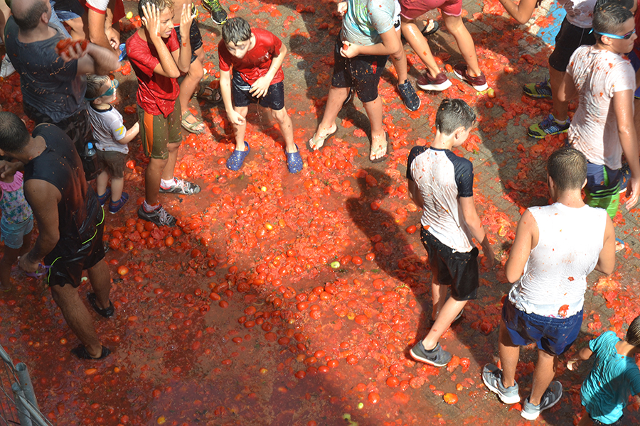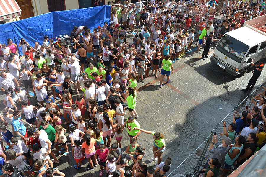Esta mañana de sábado 26 de agosto se ha celebrado en Buñol la quinta edición de la Tomatina Infantil. Con cientos de menores de 14 años lanzándose tomates en la plaza del pueblo, se ha demostrado que esta pequeña Tomatina está ya más que consolidada en nuestra localidad, a pesar de que la noche del viernes es larga. A las 12 horas un pequeño camión ha atravesado el lugar de la batalla, depositando gran cantidad de tomate, hasta 2.500 kg., para delicia de los pequeños y no tan pequeños durante algo más de media hora. Aquí os dejamos con una galería fotográfica del evento.