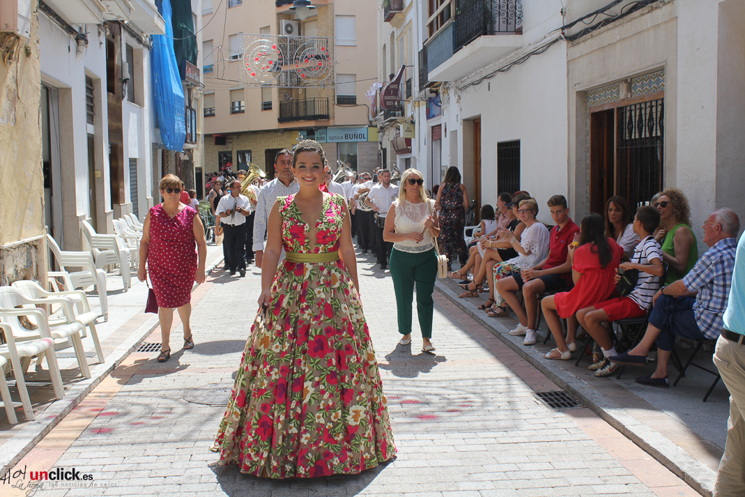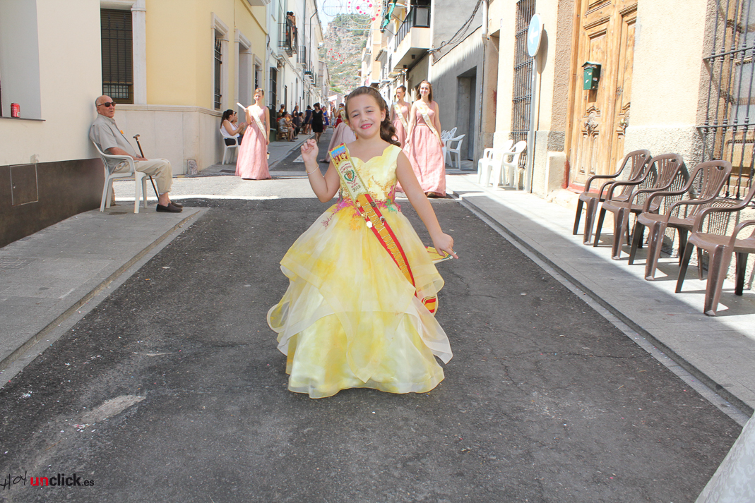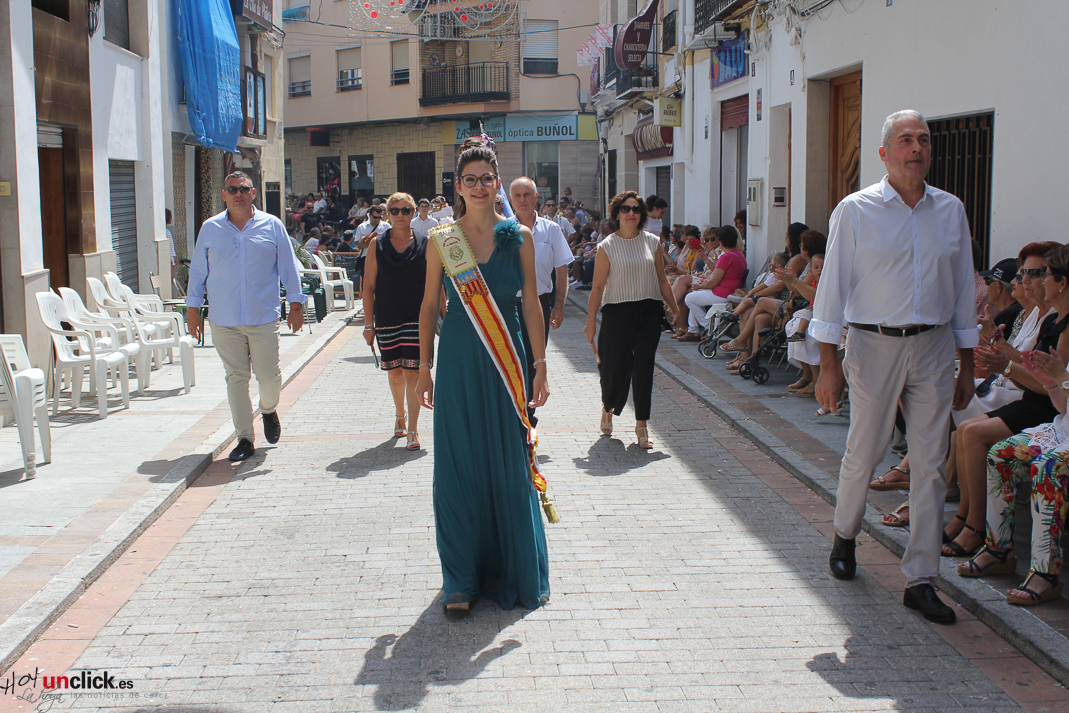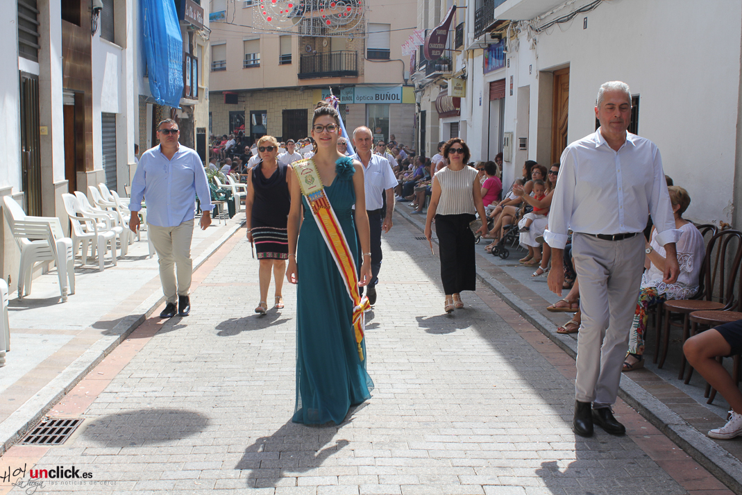 Posteriormente la comitiva, presidida por la Reina de la Feria y Fiestas de Buñol, Carmen Marzo Belda, regresó hasta la Plaza del Pueblo, donde terminó el desfile de la mañana.
