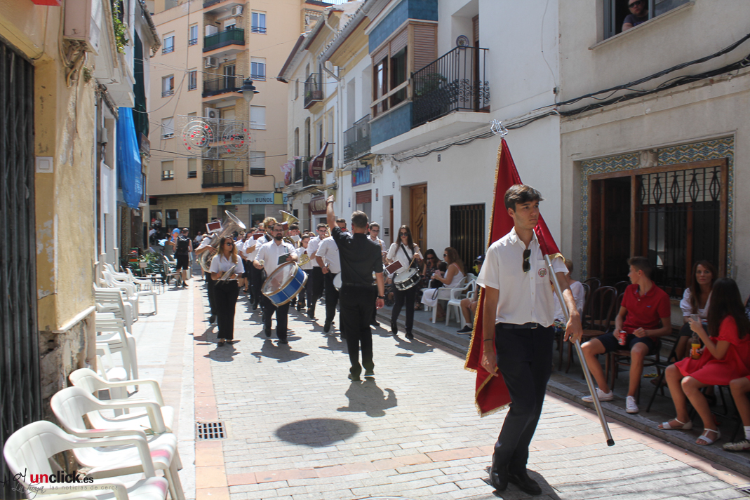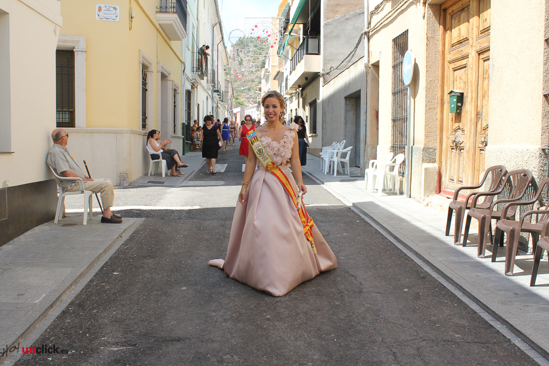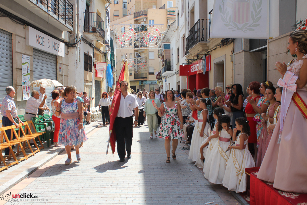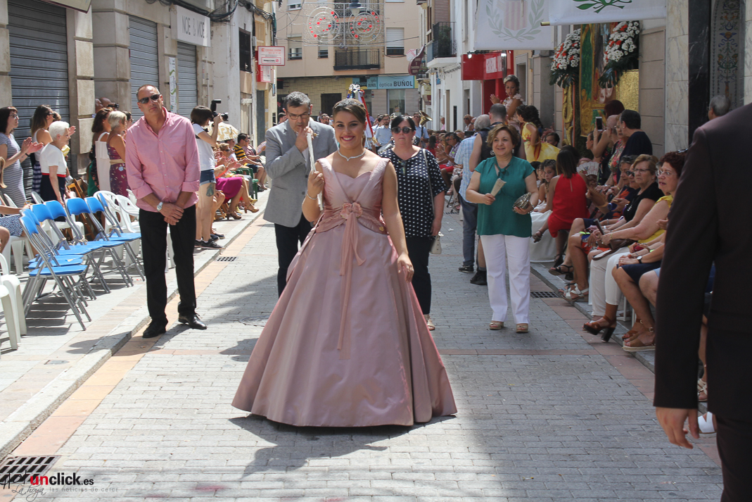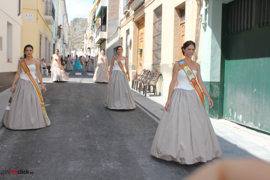 Posteriormente la comitiva, presidida por la Reina de la Feria y Fiestas de Buñol, Carmen Marzo Belda, regresó hasta la Plaza del Pueblo, donde terminó el desfile de la mañana.