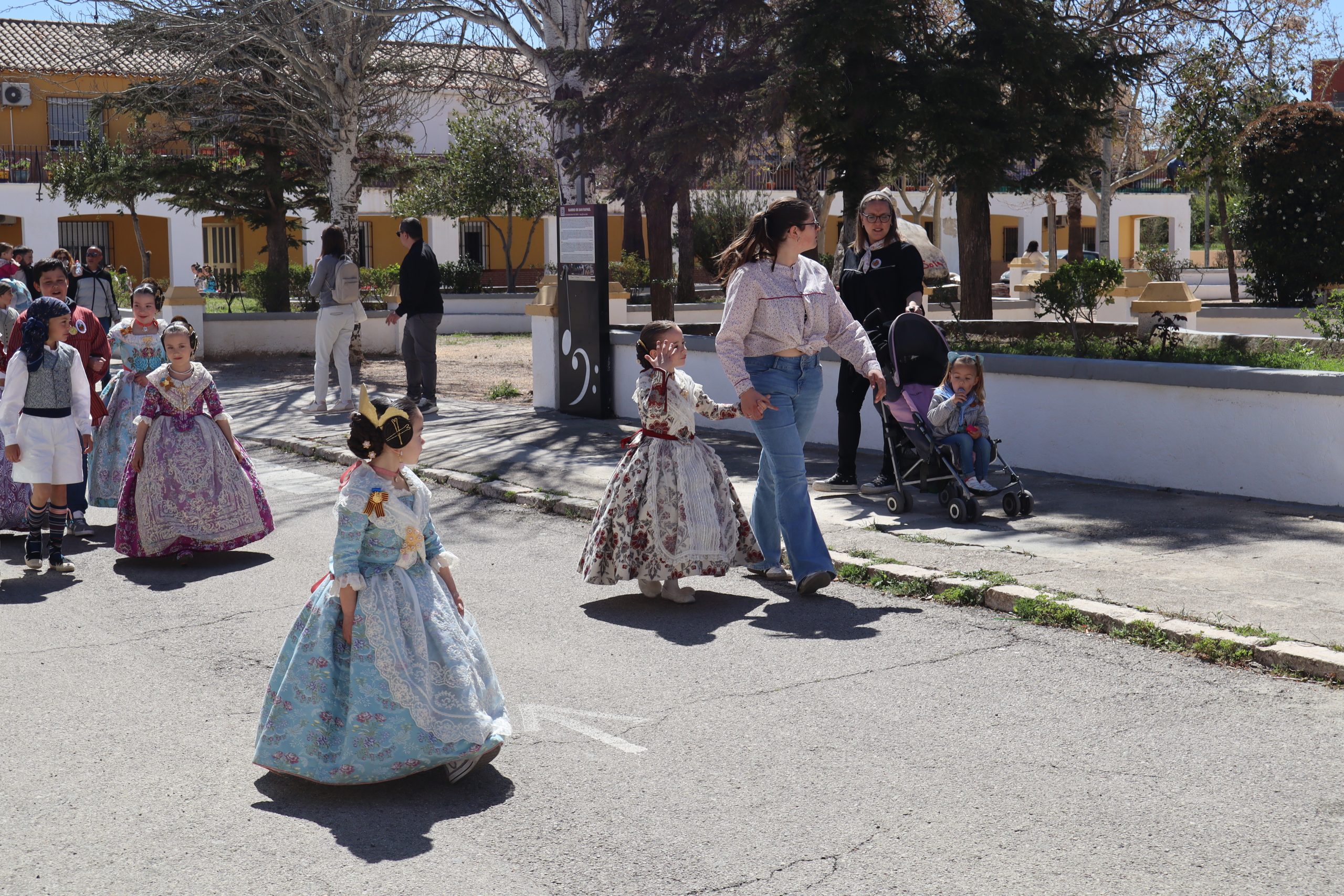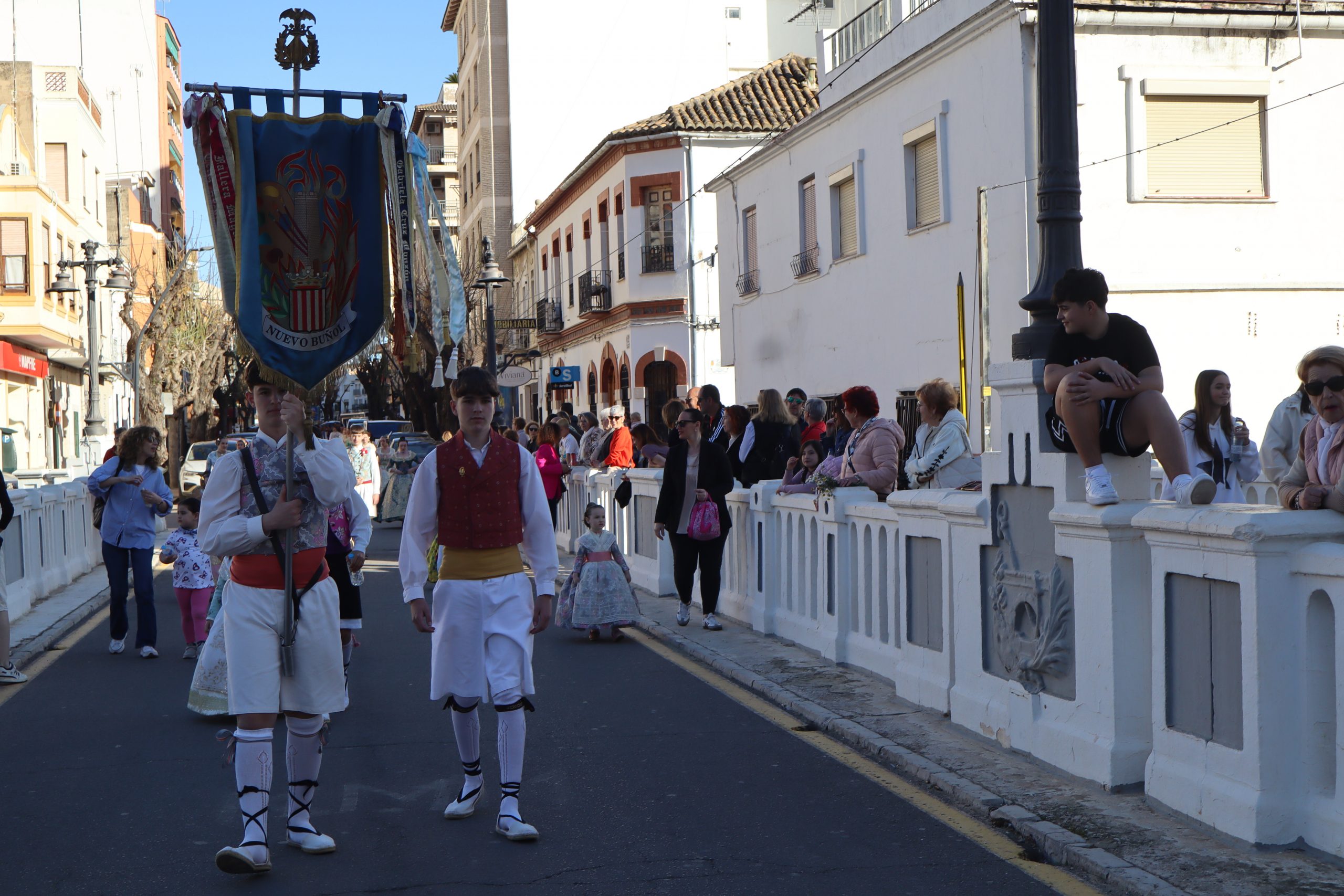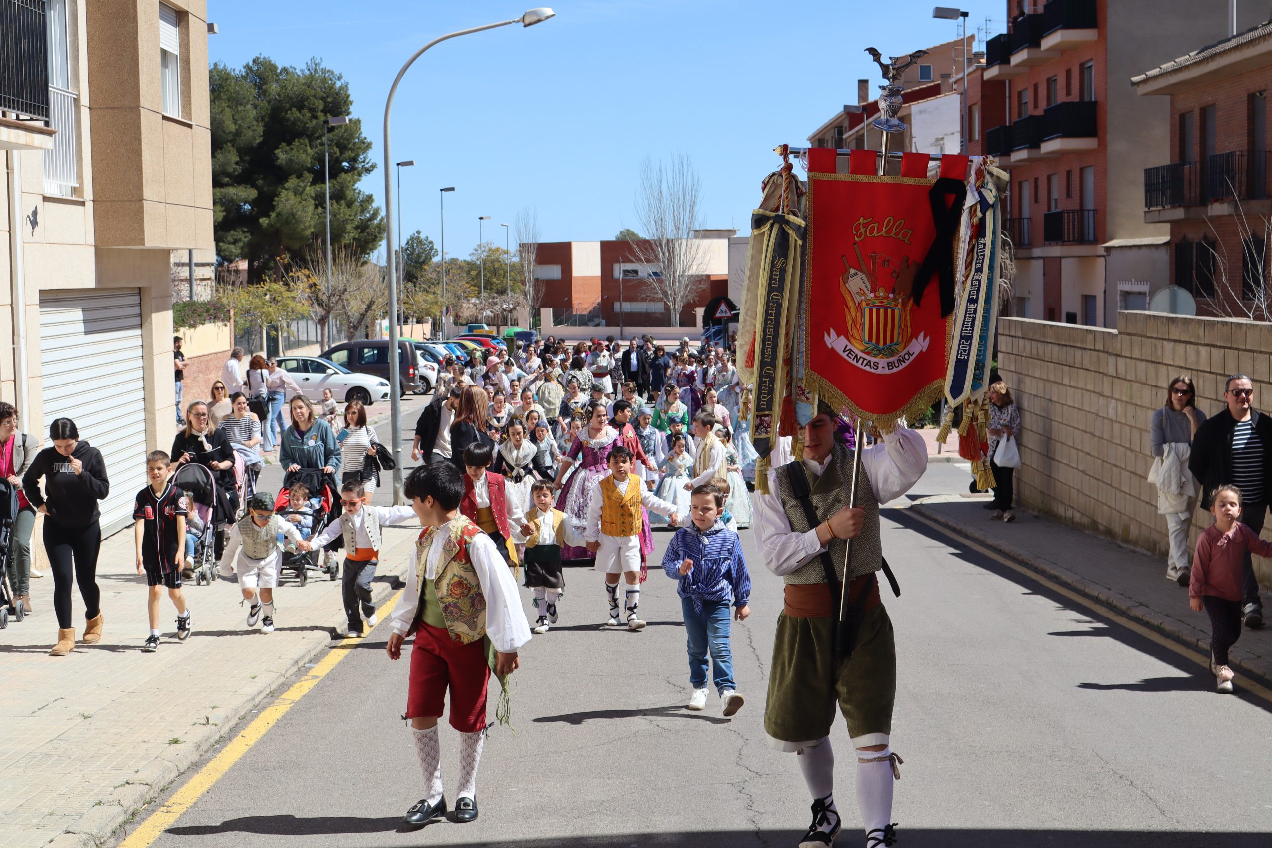 Por otro lado, la Falla Nuevo Buñol, puso castillos hinchables por la mañana para los más pequeños. Luego hubo comida de hermandad en su casal, y por la tarde, recogida de sus falleras mayores y participación en la romería con las otras dos comisiones.