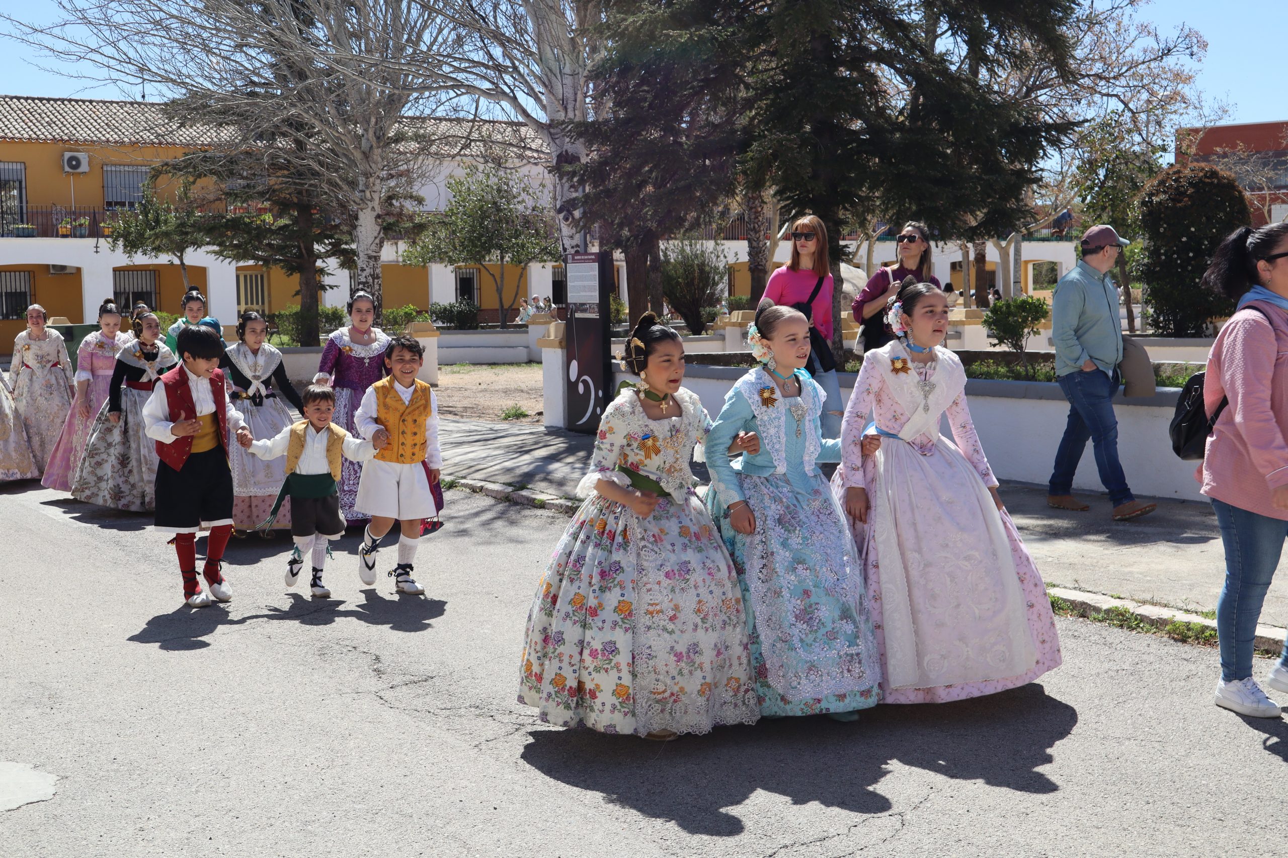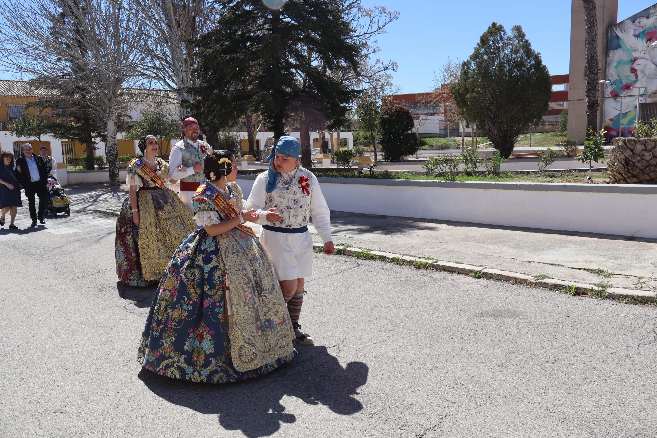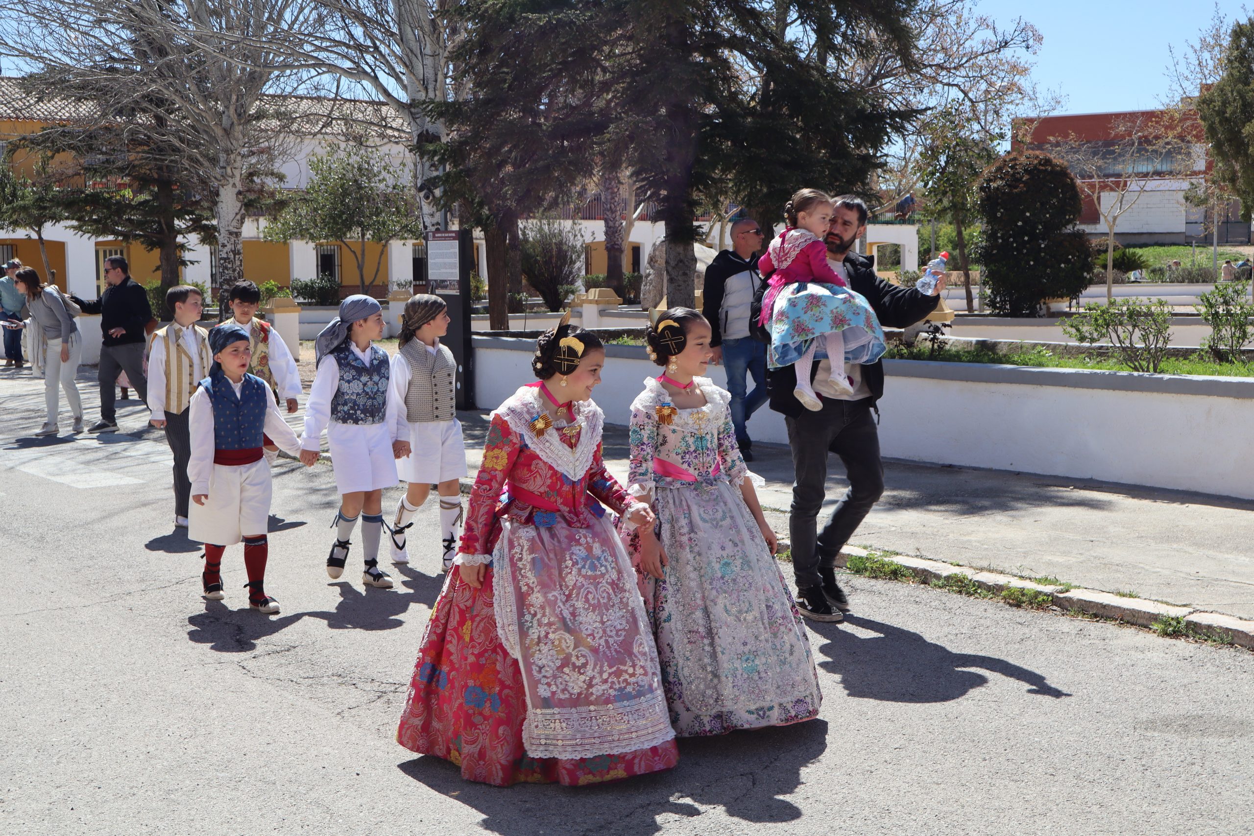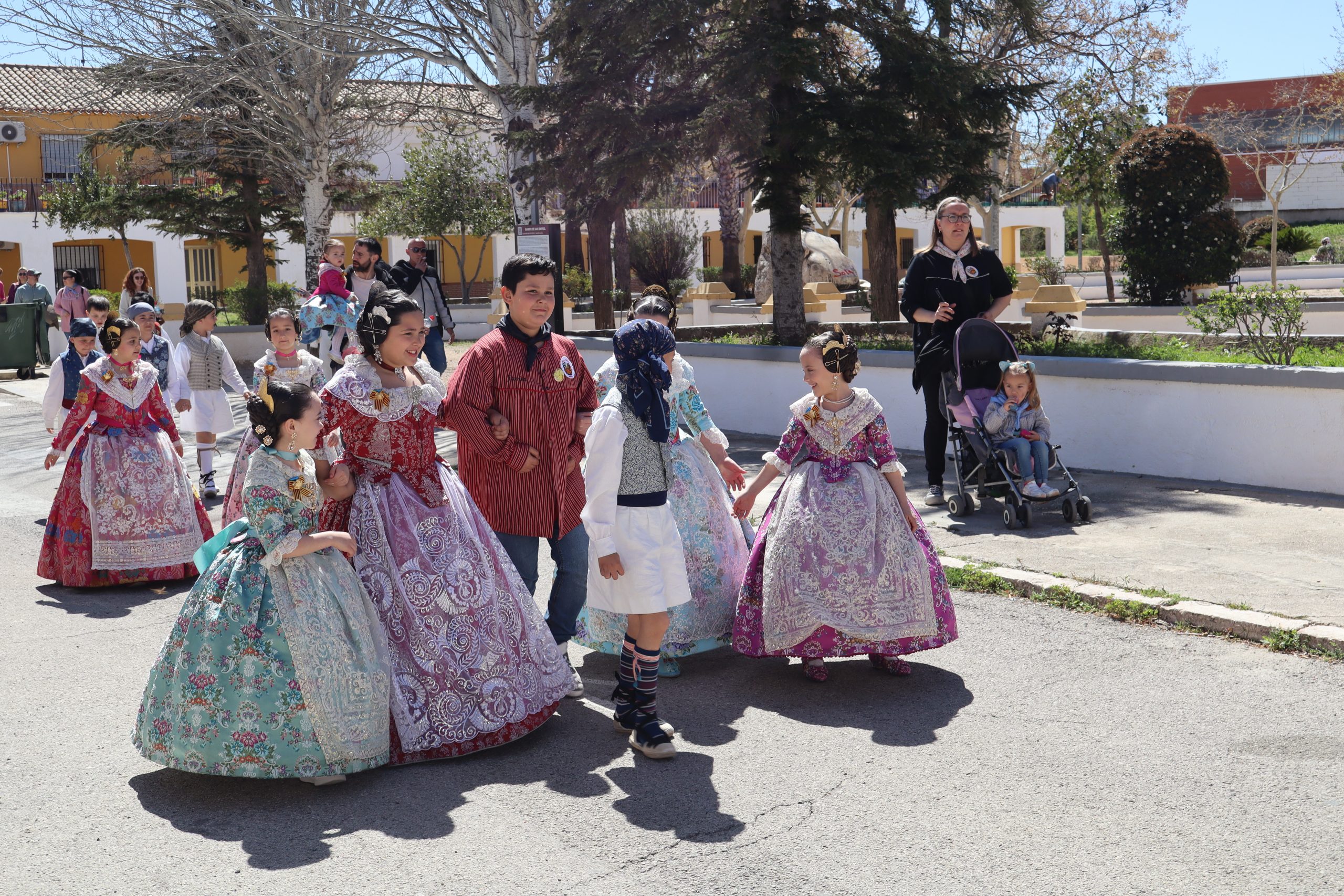 Por otro lado, la Falla Nuevo Buñol, puso castillos hinchables por la mañana para los más pequeños. Luego hubo comida de hermandad en su casal, y por la tarde, recogida de sus falleras mayores y participación en la romería con las otras dos comisiones.