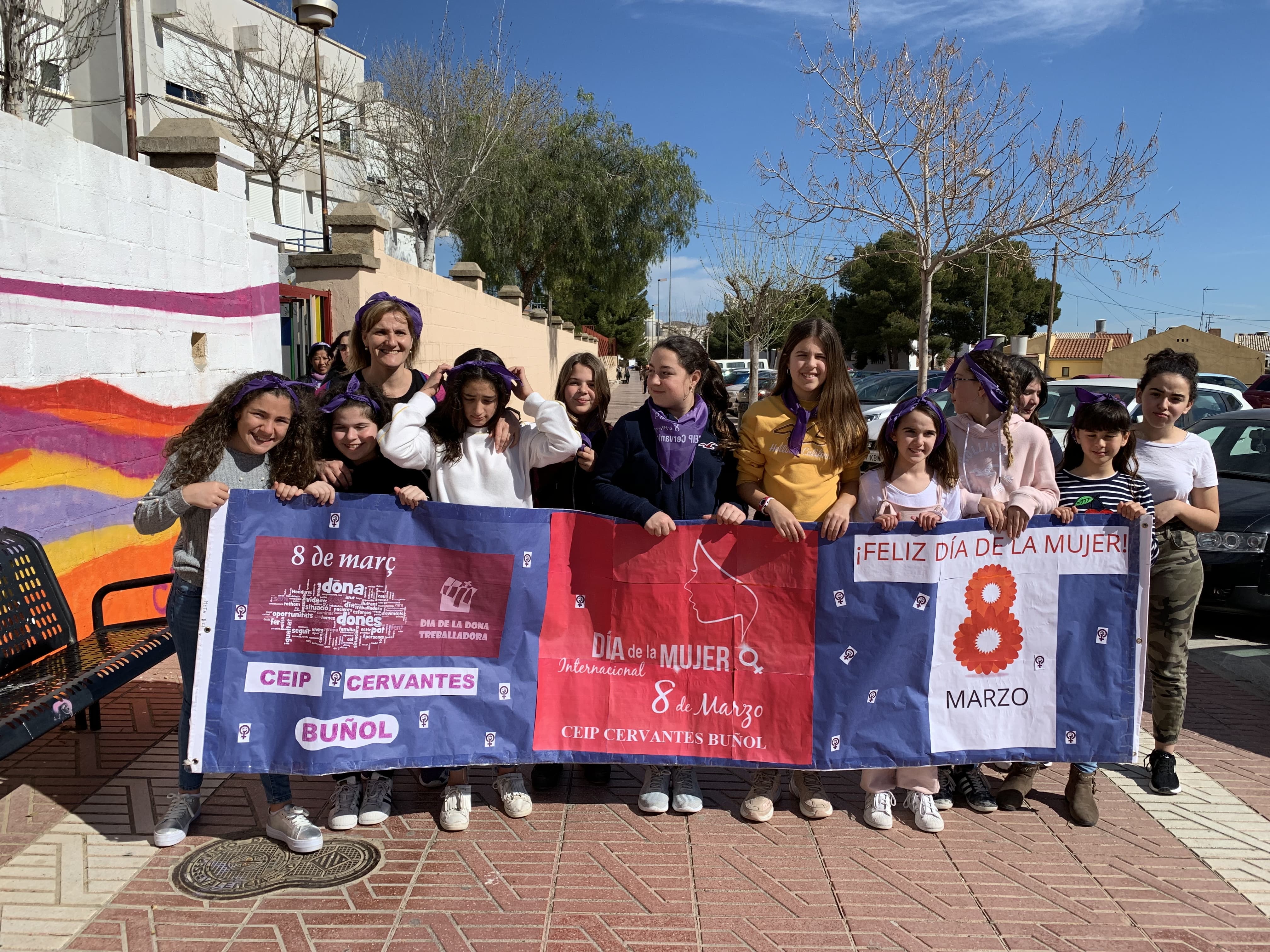 Redacción.- Las alumnas y alumnos del Colegio Público Cervantes de Buñol celebraron el pasado viernes una «marcha por la igualdad» desde las puertas del centro hasta la Plaza de las Ventas. Esto supuso el colofón a las actividades realizadas por el colegio durante la semana de la mujer, en la que participó todo el alumnado.