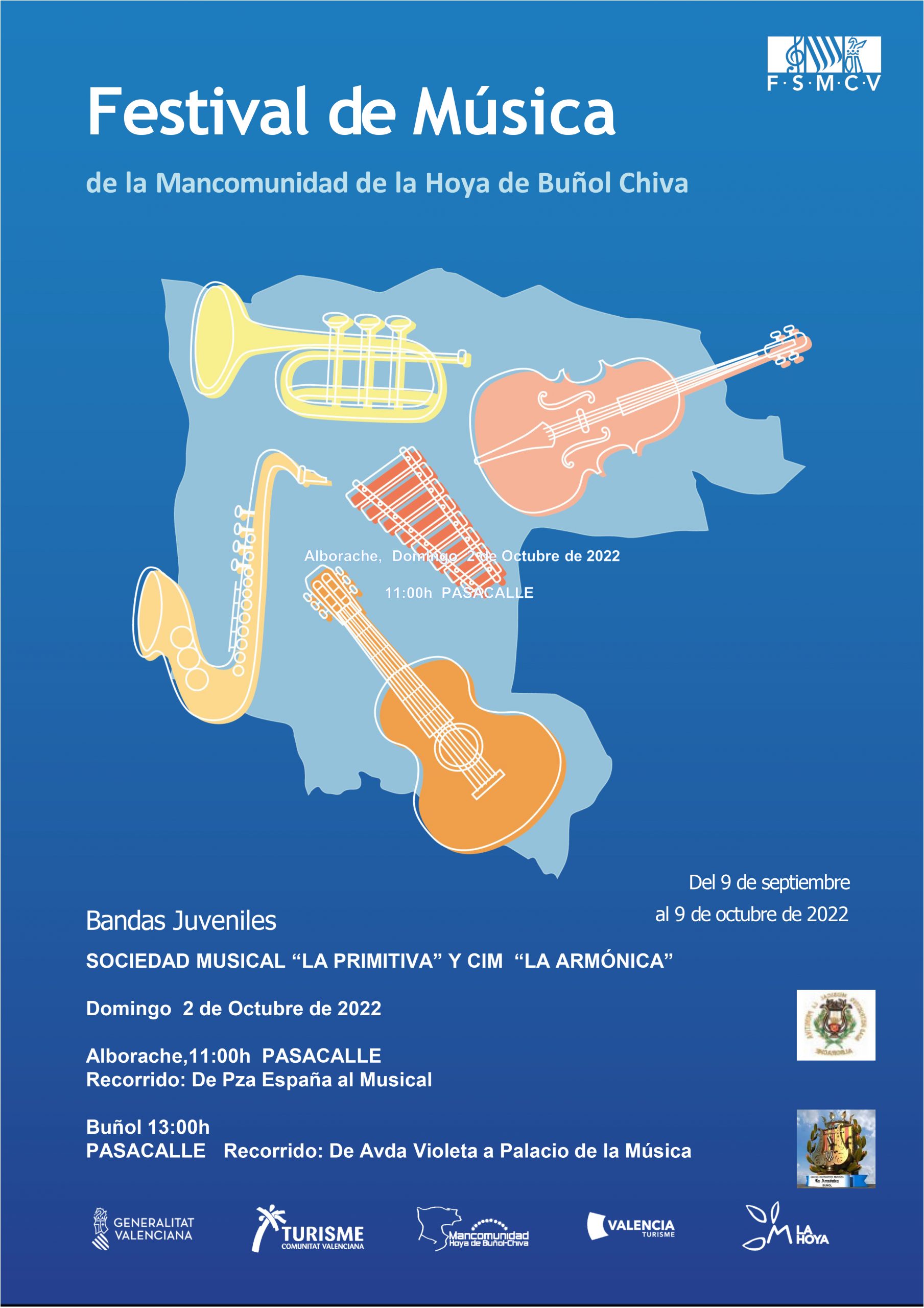 Hasta este domingo, 12 bandas juveniles procedentes de las sociedades musicales federadas habrán llenado de música plazas, calles y auditorios de Dos Aguas, Millares, Chiva, Cheste, Turís, Yátova, Siete Aguas, Buñol, Godelleta y Alborache, los diez municipios integrados en el Plan de Dinamización y Gobernanza de la Mancomunidad La Hoya de Buñol-Chiva. Este plan cuenta con tres patas: Generalitat Valenciana, Diputación de Valencia y Mancomunidad (donde los ayuntamientos son piedra angular de esta institución).