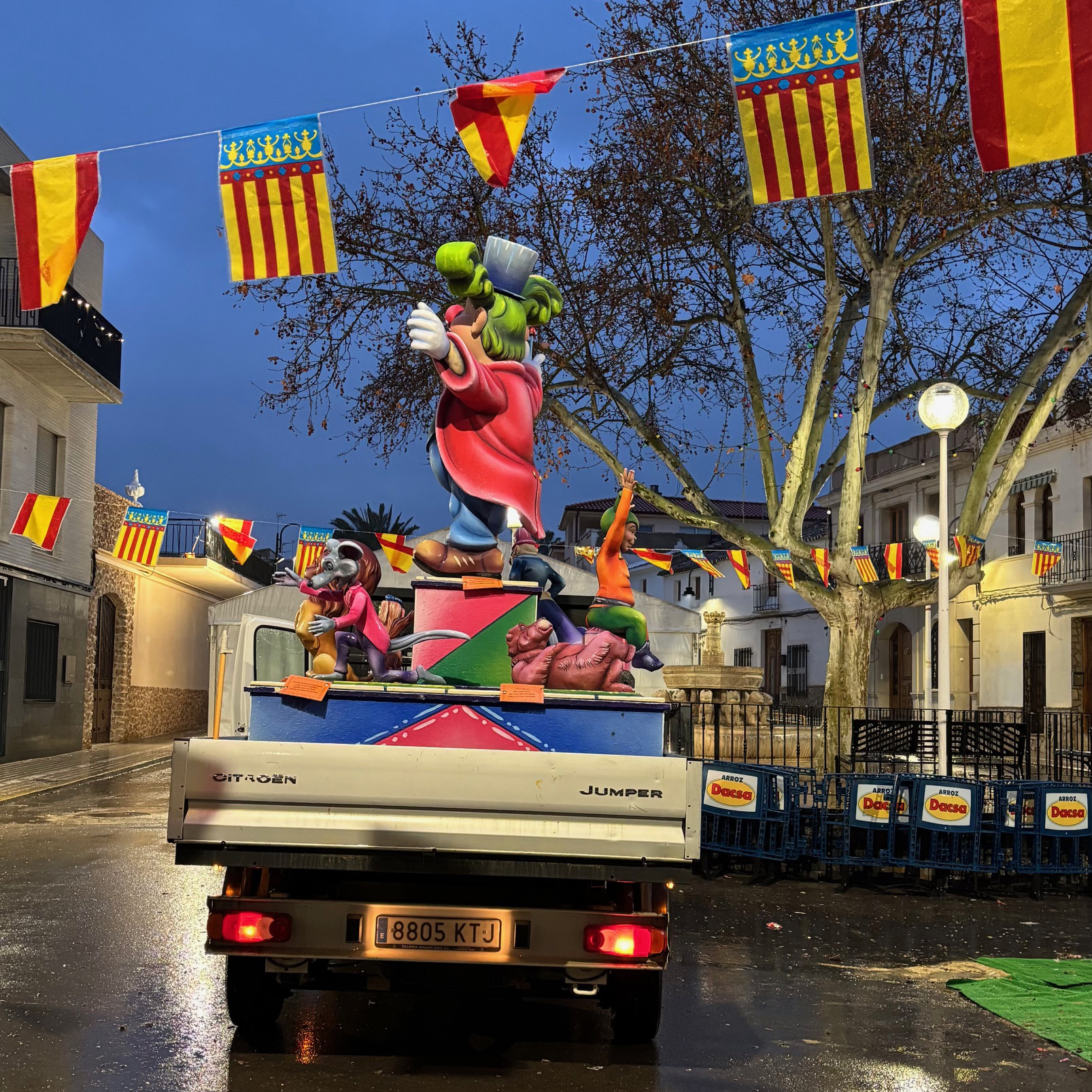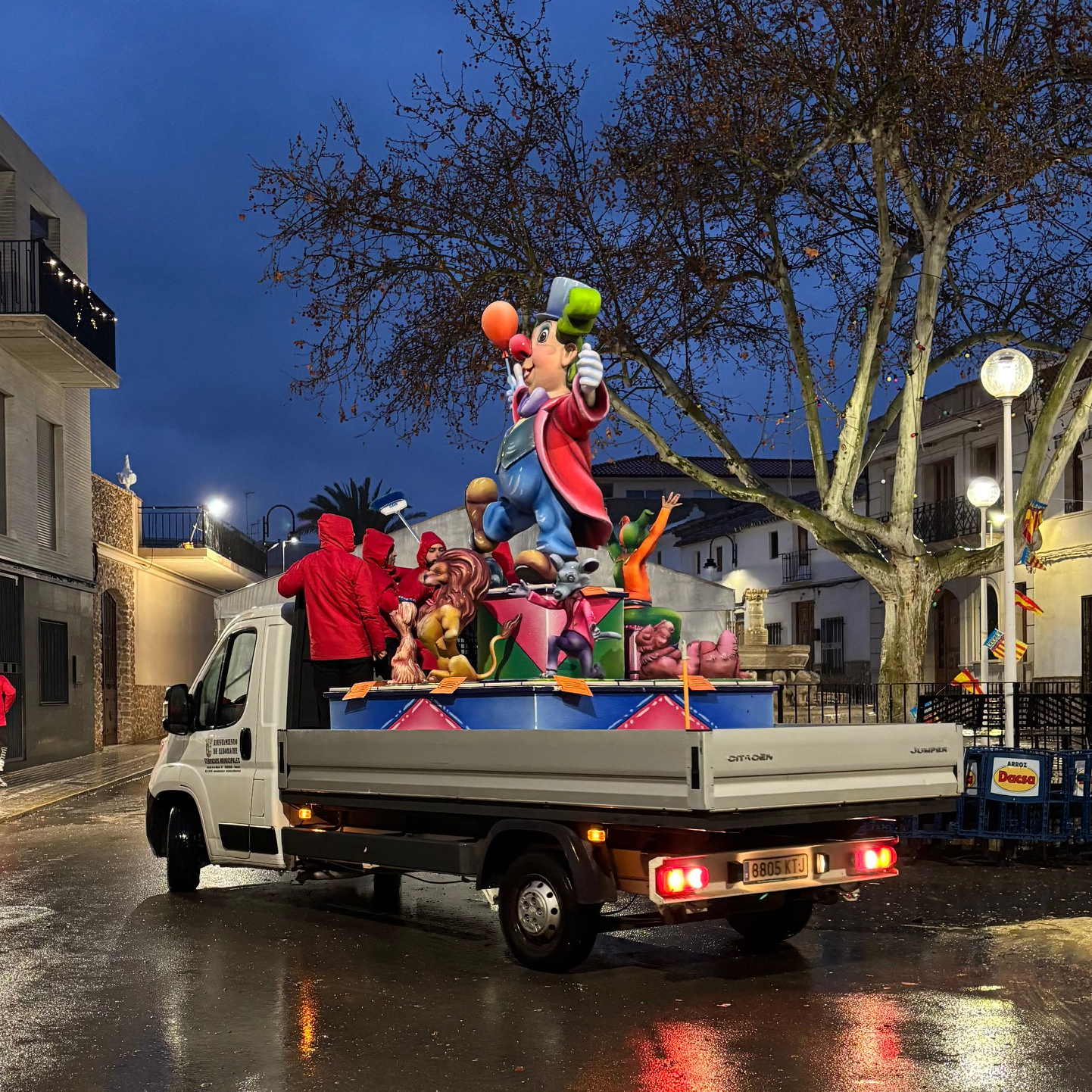 El mal tiempo no solo alteró el programa festivo, sino que dejó una gran tristeza en las Falleras Mayores y en toda la comisión. “Mi hija lloraba pidiendo que no la quemaran porque no lo estaba disfrutando”, nos cuentan desde la Falla. Ante esta difícil situación, la decisión final fue aplazar la cremà y trasladar la falla al taller del artista fallero Salvador Espert, en Buñol, para su conservación.