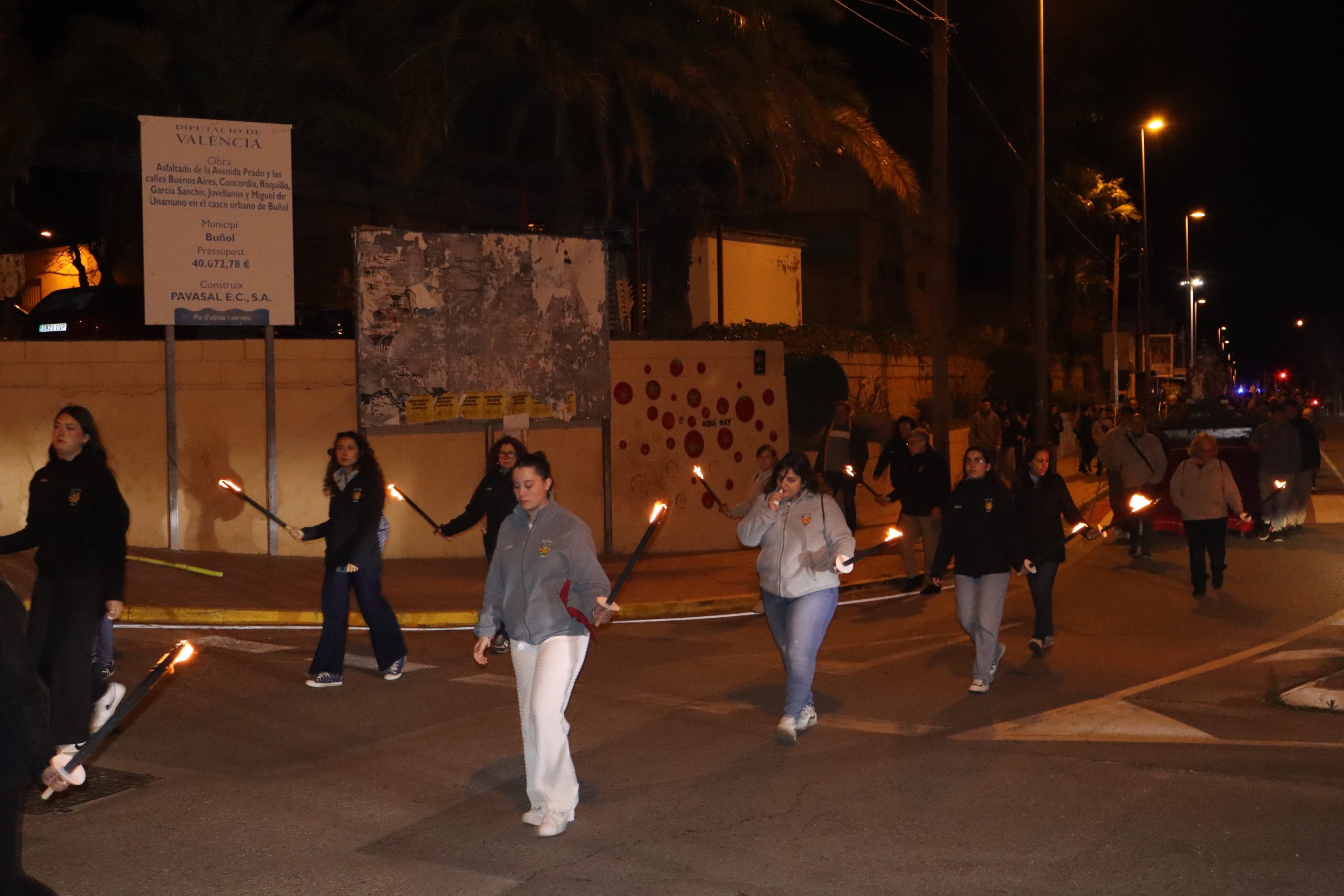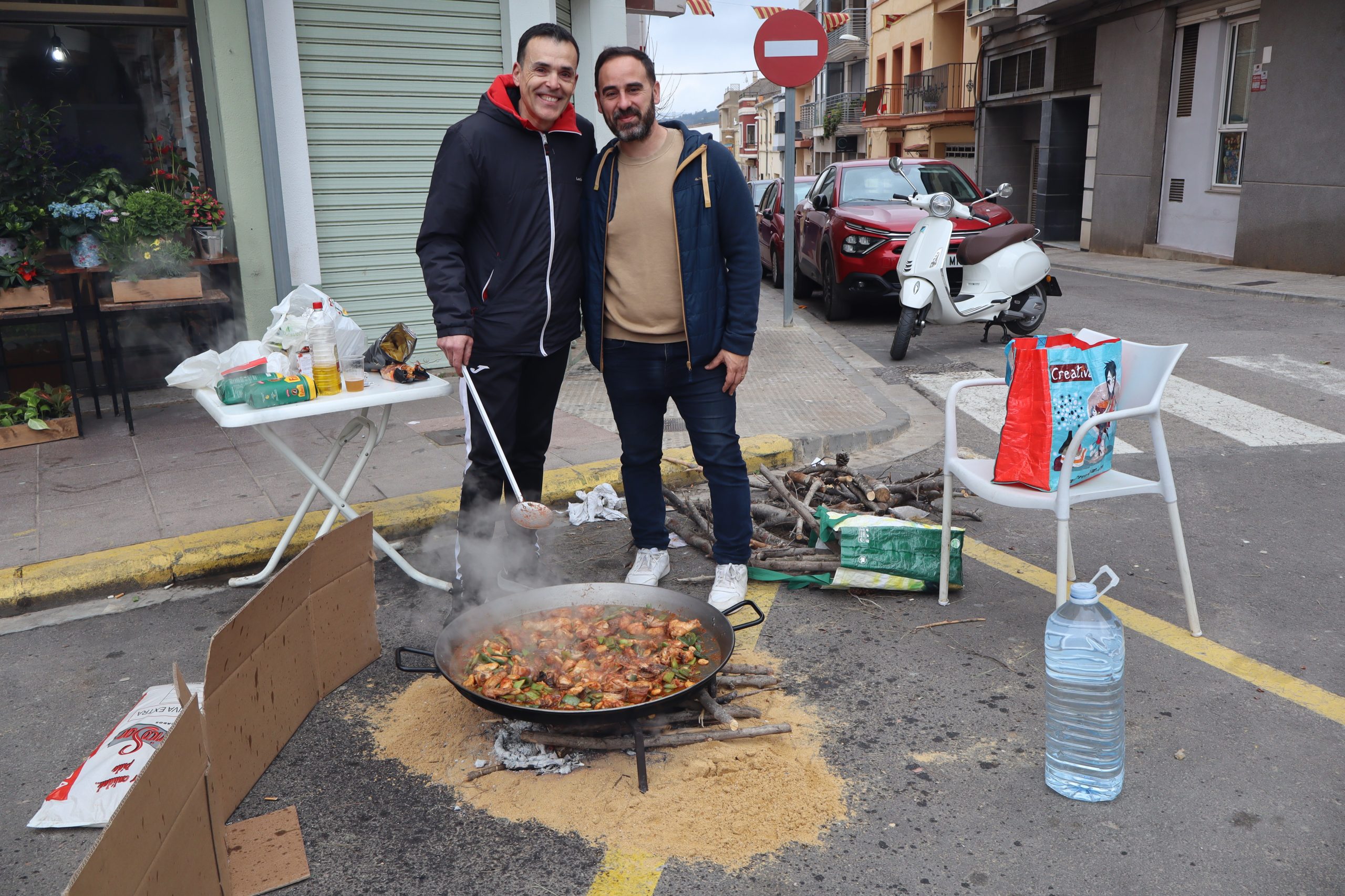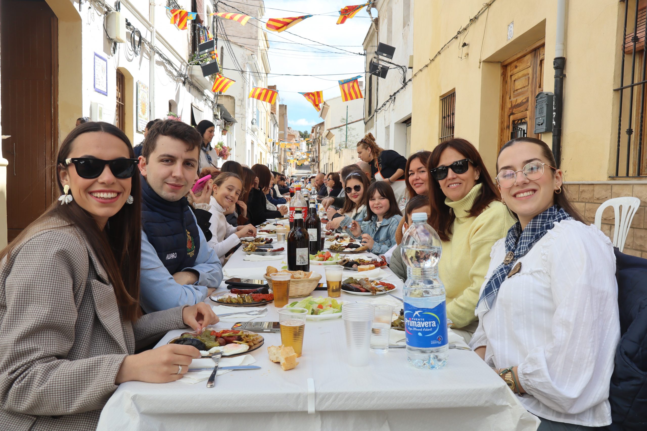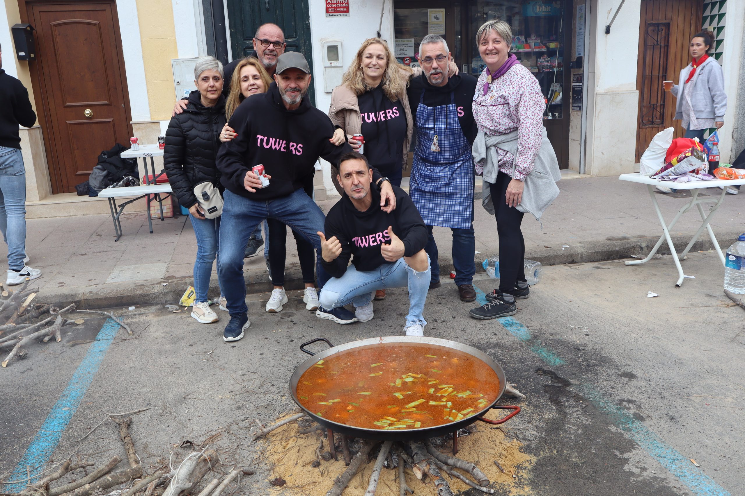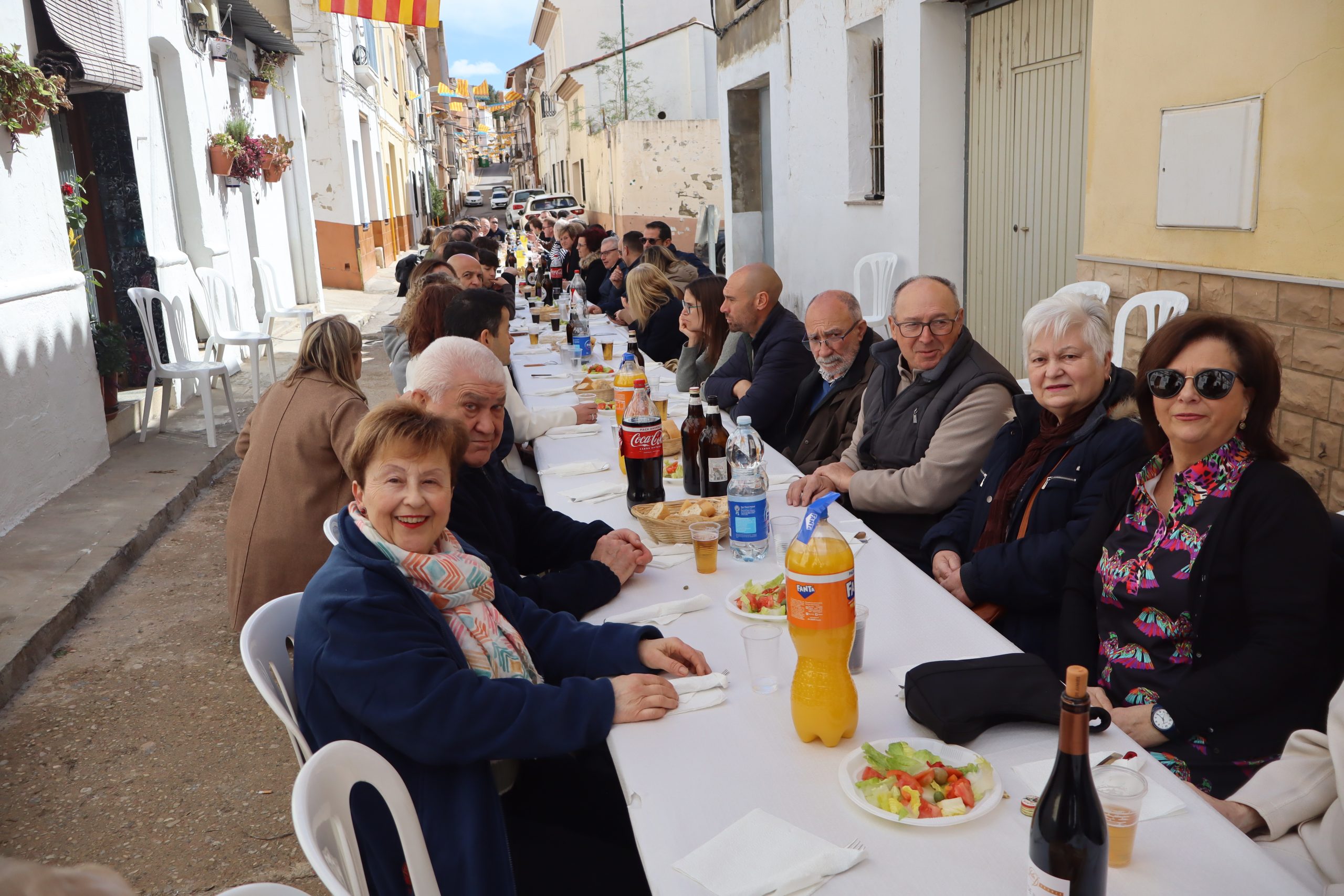 Por su parte, la comisión de Buñol Pueblo celebró una comida de hermandad en el barracón, después de adornar las calles con los tradicionales banderines con la Senyera.