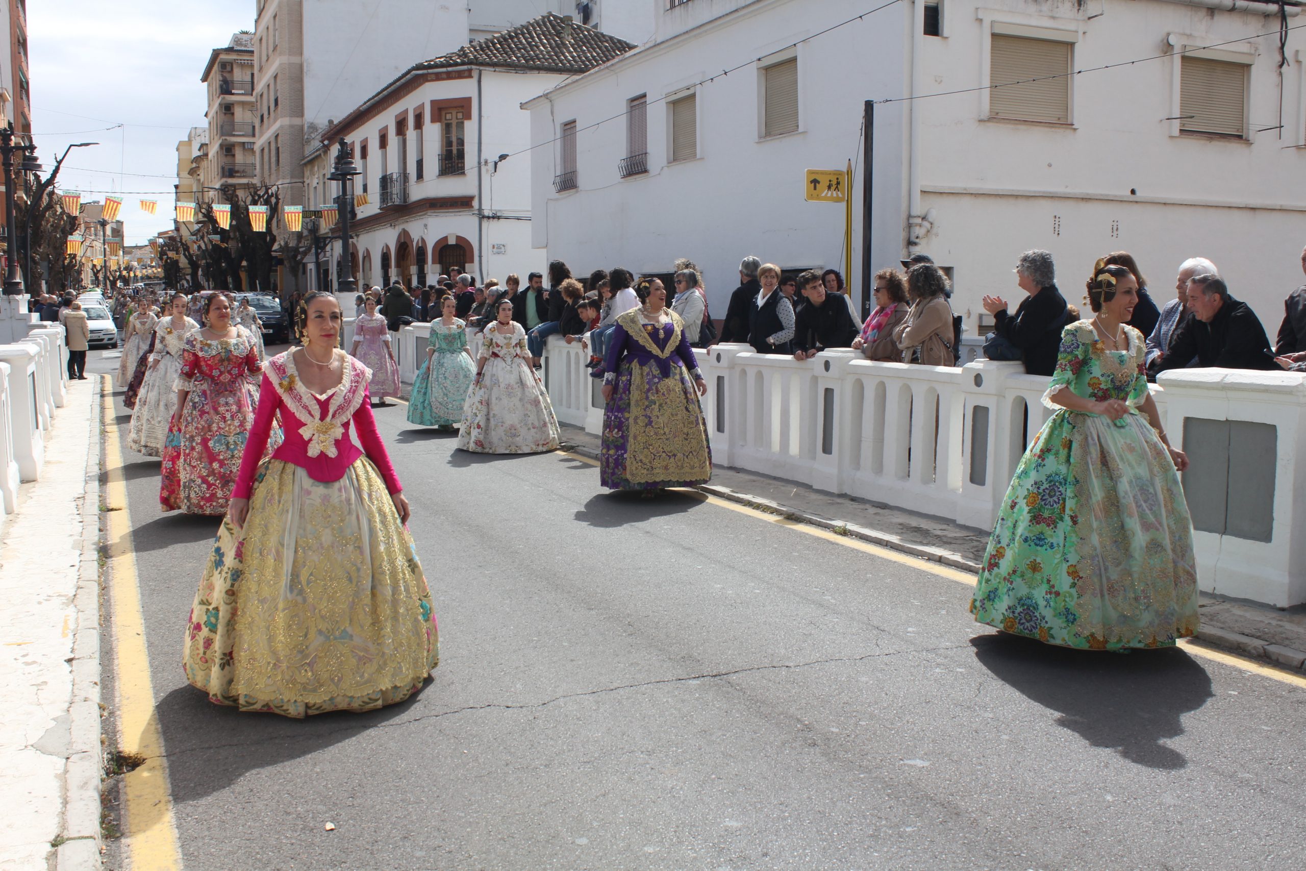 Al día siguiente, el orden de visita se invirtió. Fueron las fallas de la Venta, las que devolvieron la visita a las del pueblo. Y se produjo la misma estampa. Cientos de falleras y falleros devolviendo esa alegría que dan estas fiestas a unas calles que necesitaban jolgorio y movimiento después de un inverno muy crudo. Por la tarde, la tradicional Ofrenda, tanto en la Venta como en el pueblo -de la que vamos a sacar noticia a parte-.