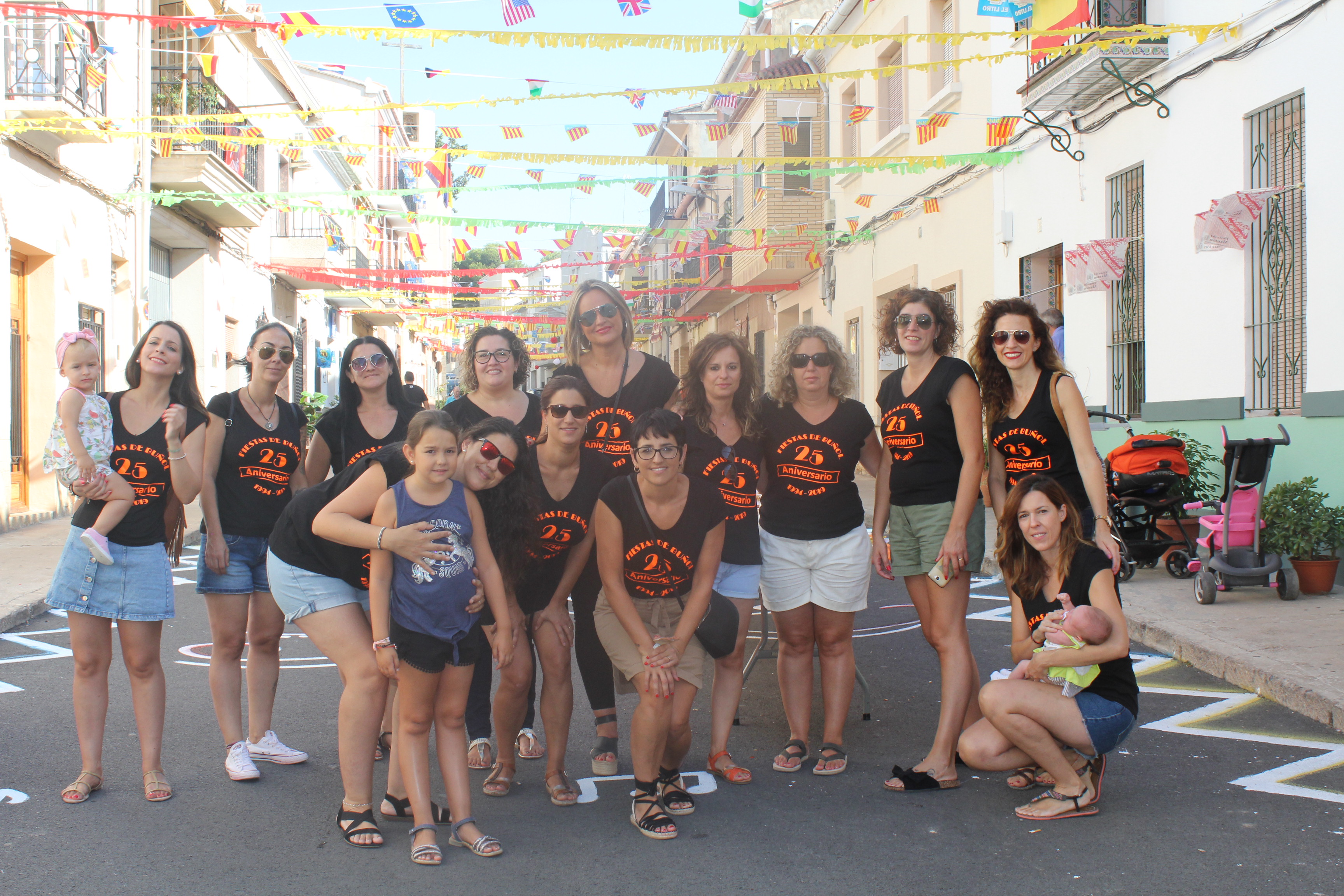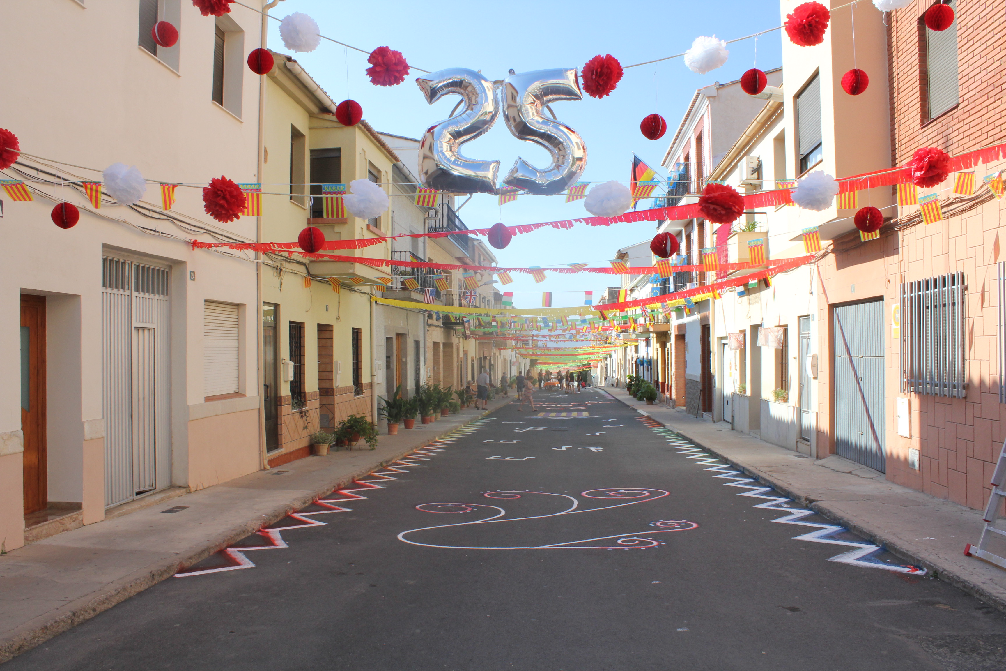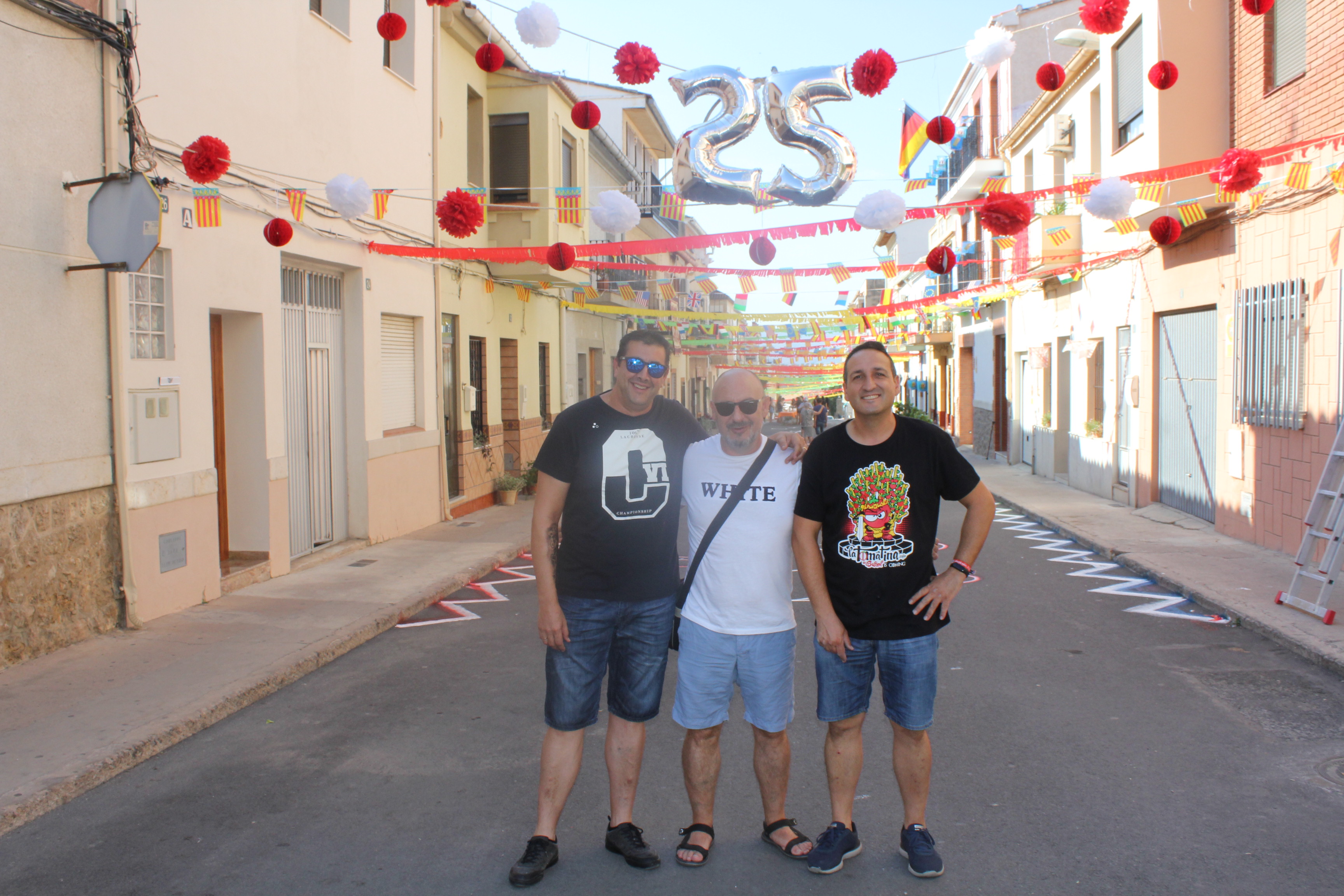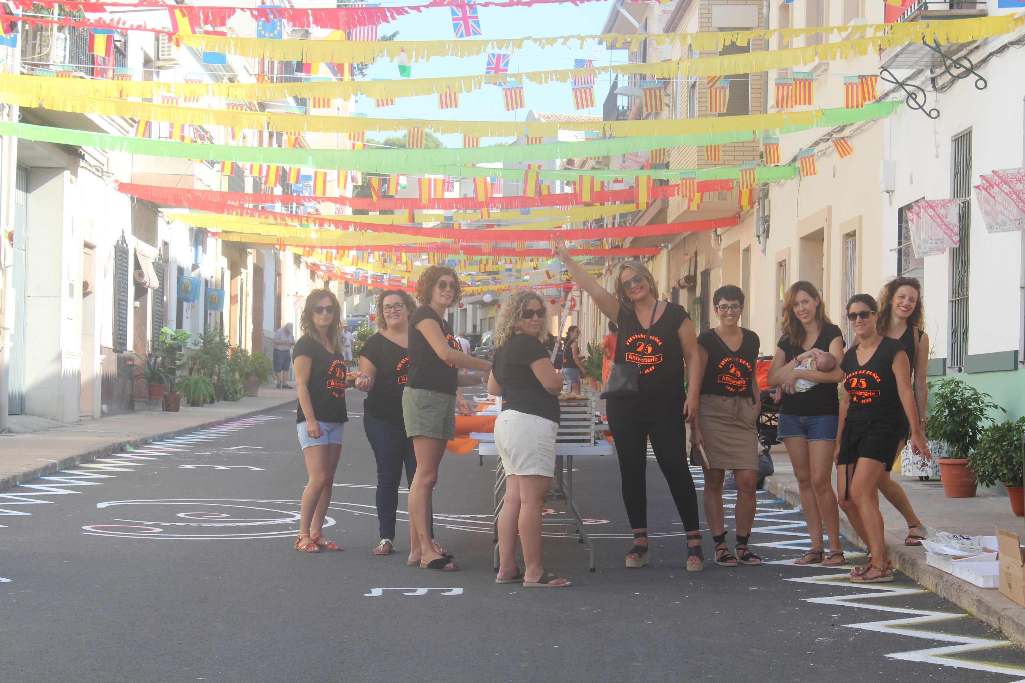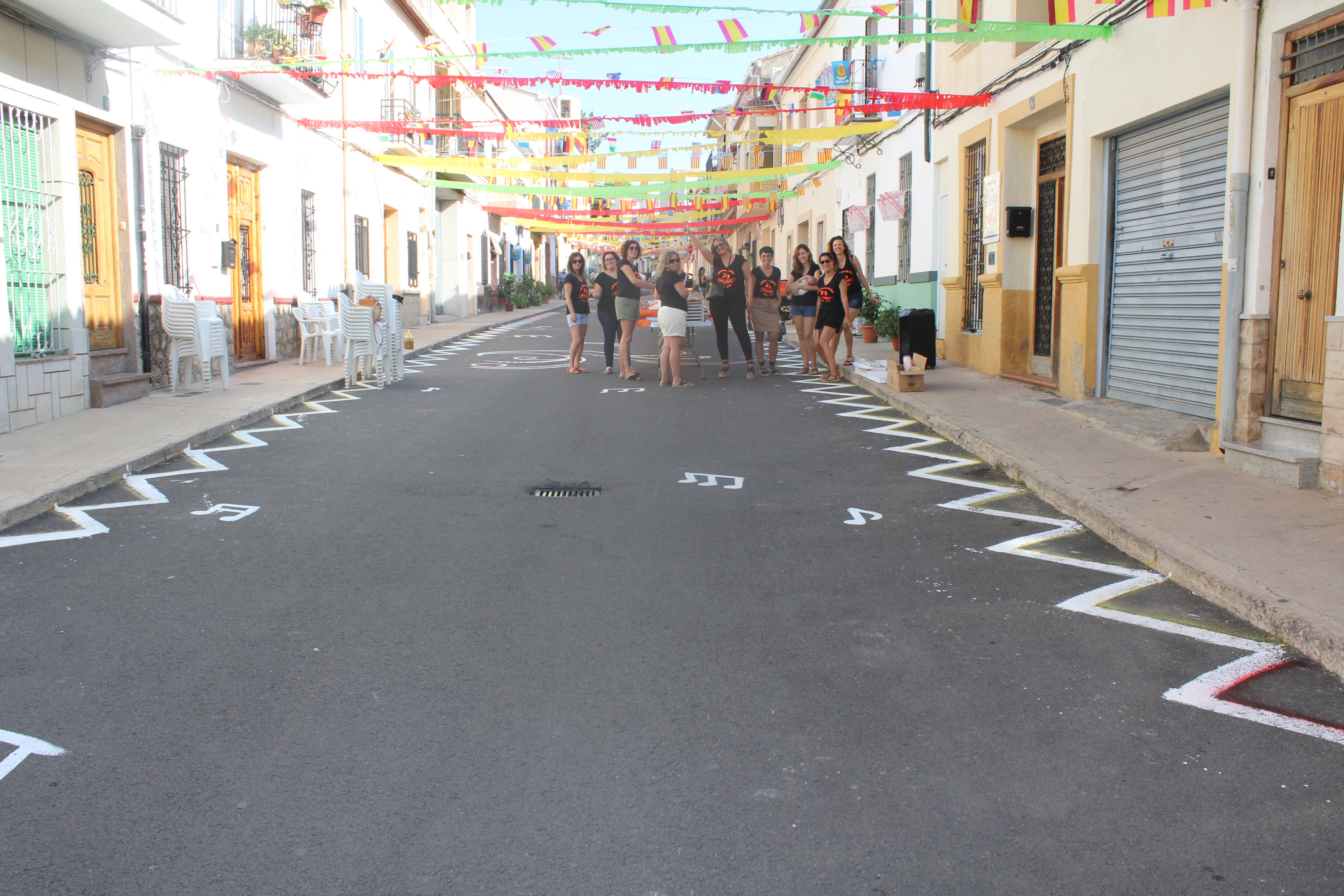 Decoraron con banderines y guirnaldas colgadas de los balcones. También pintaron la propia calle, como se solía hacer hace más o menos 30 años. Y disfrutaron, después de terminar su obra, de un gran almuerzo acompañadas de los vecinos y vecinas de la calle y también del edil de Fiestas, Rafael Pérez, la alcaldesa de Buñol, Juncal Carrascosa y de la edil de Turismo y Tomatina, María Vallés.