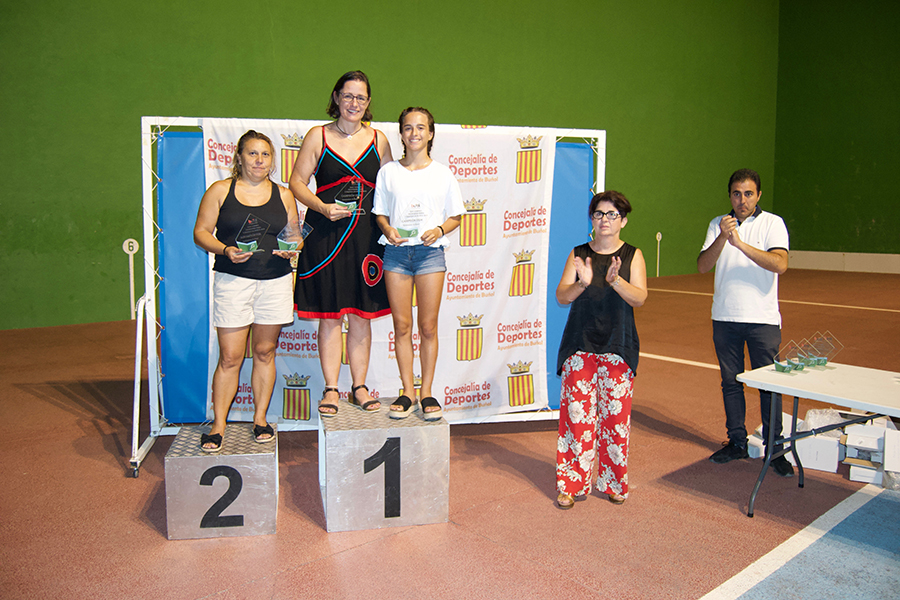 El XLVI Torneo de Frontenis contó con un mini-torneo femenino de cuatro parejas, que se enfrentaron entre sí, clasificando a las dos primeras para la final. La joven buñolense Inés Giménez, que jugó junto a Virginia, del Frontenis Paterna, se impuso en una emocionante final a las jugadoras de Torrent, Amparo y Carla. El partido se decidió en el tercer set, al igual que la final masculina, que estuvo en todo momento muy igualada, mostrando un espectacular nivel. Juan García y J.M. Blanes, del Frontenis Cheste, se llevaron la victoria frente a Ángel Sánchez y Tonet. Emilio Tamarit fue el jugador local mejor clasificado, quedando en cuarta posición.
