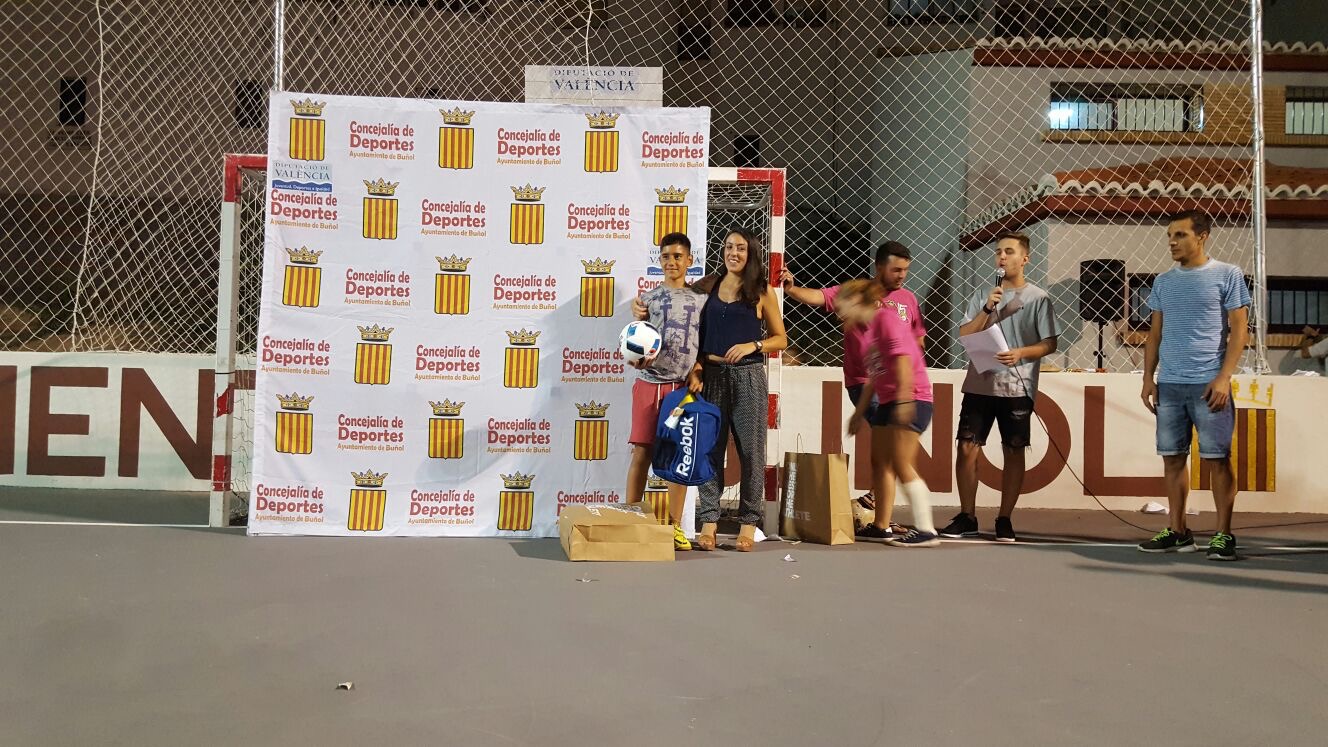 Y para cerrar las finales, el esperado duelo entre Bacon Blackcape y El Club, dos equipos que juegan un fútbol sala de mucho nivel. El encuentro fue muy emocionante y terminó con empate a uno, lo que dio paso a la tanda de penaltis. Tras una primera ronda en la que también hubo empate, El Club, equipo de Siete Aguas que no falta ningún año a la cita buñolense y que el año pasado fue sub-campeón, por fin logró hacerse con la victoria. Pizzería Buedo acabó como tercer clasificado.