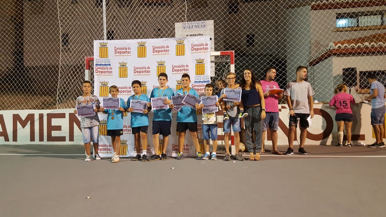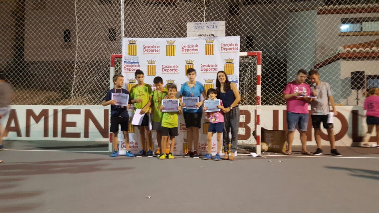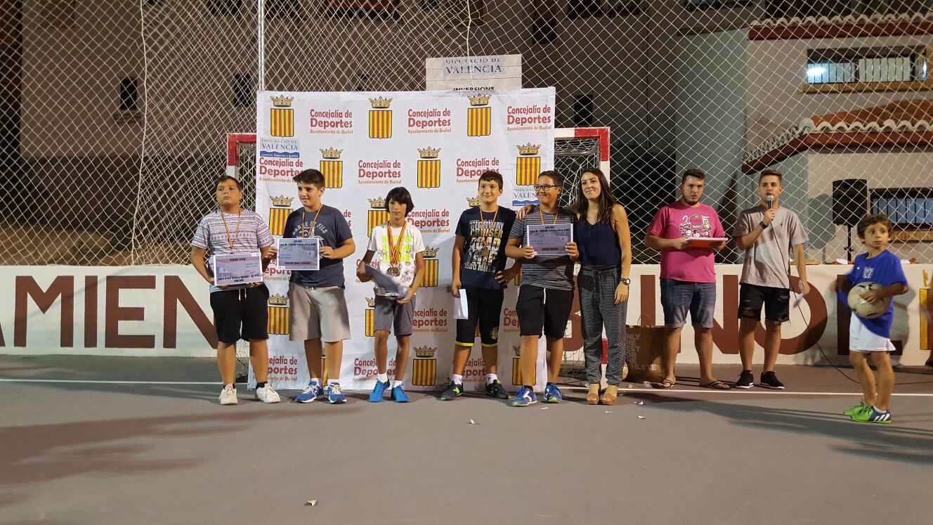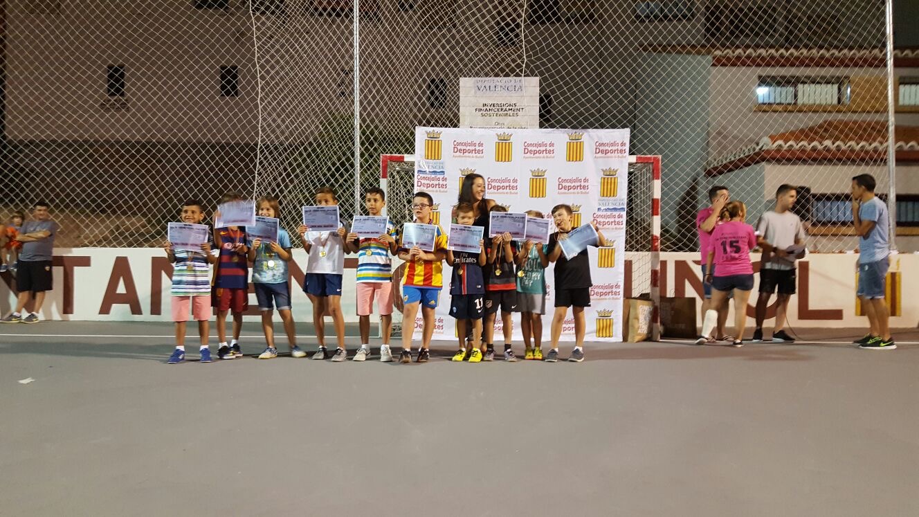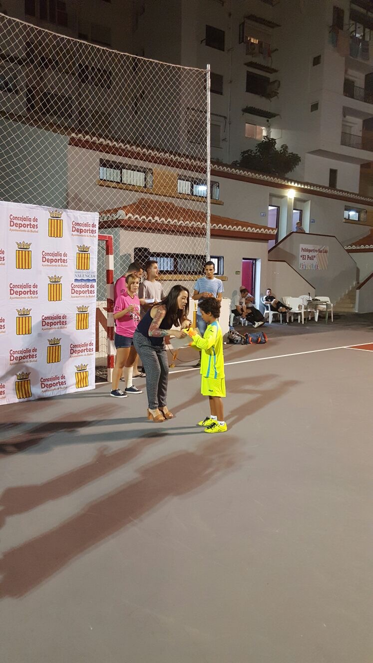 Tras los dos partidos se hizo entrega de medallas y diplomas para todos los participantes, además de dos premios (mochila y balón) para los mejores de cada categoría, Adrián Sierra (7-9) y Cristian Huercio (10-12), y otro como detalle para Manuel Solá, un niño que había sufrido una rotura de muñeca al principio del campeonato.
