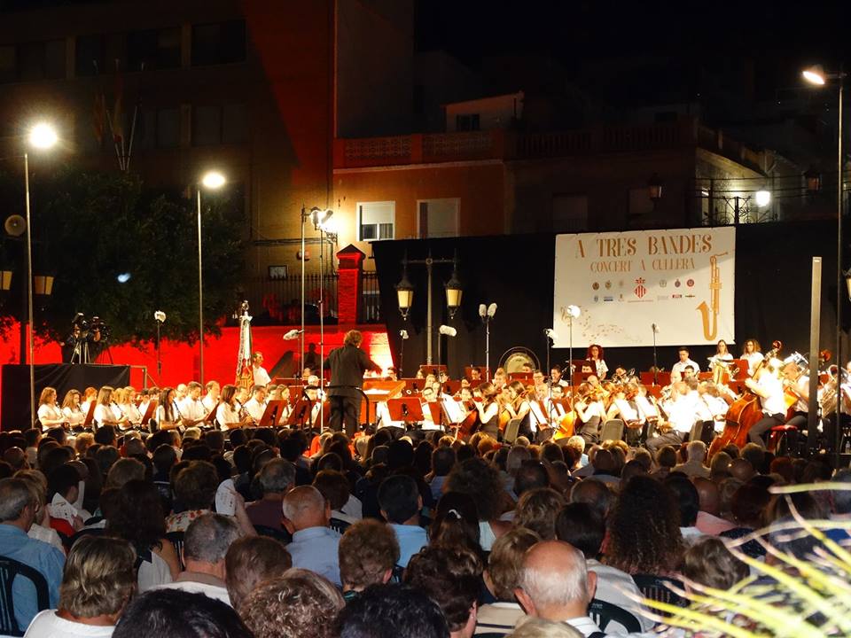 Cullera se convirtió este pasado sábado en la capital de la música de banda. Las bandas sinfónicas de «La Artística» de Buñol, la Unió Musical de Llíria y la anfitriona, el Ateneo Musical de Cullera se dieron en el segundo concierto «A tres Bandes».
