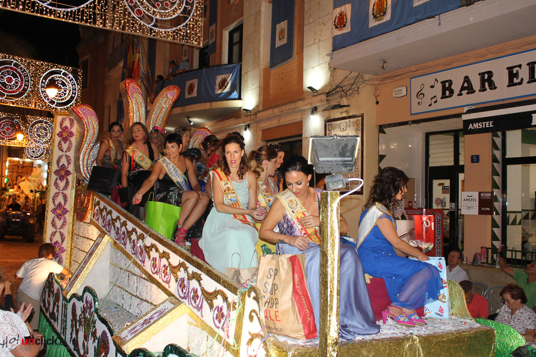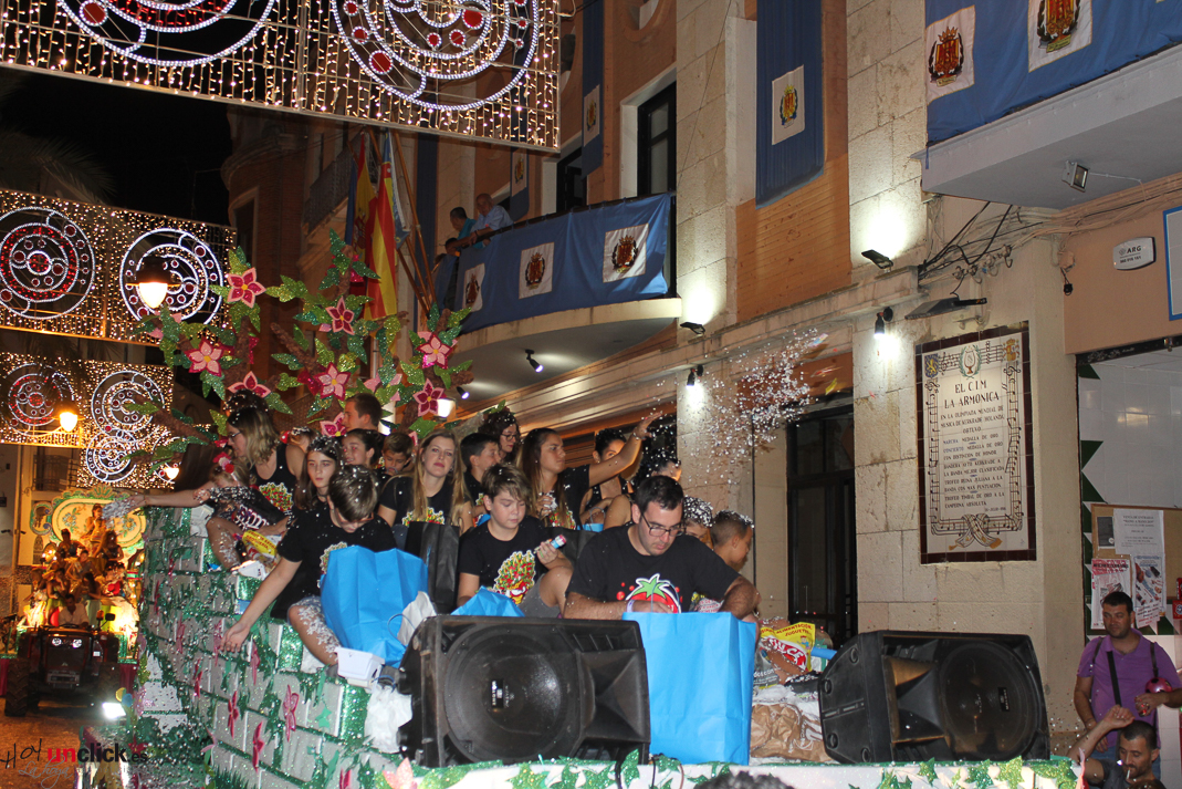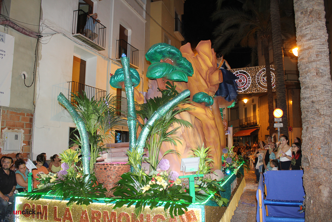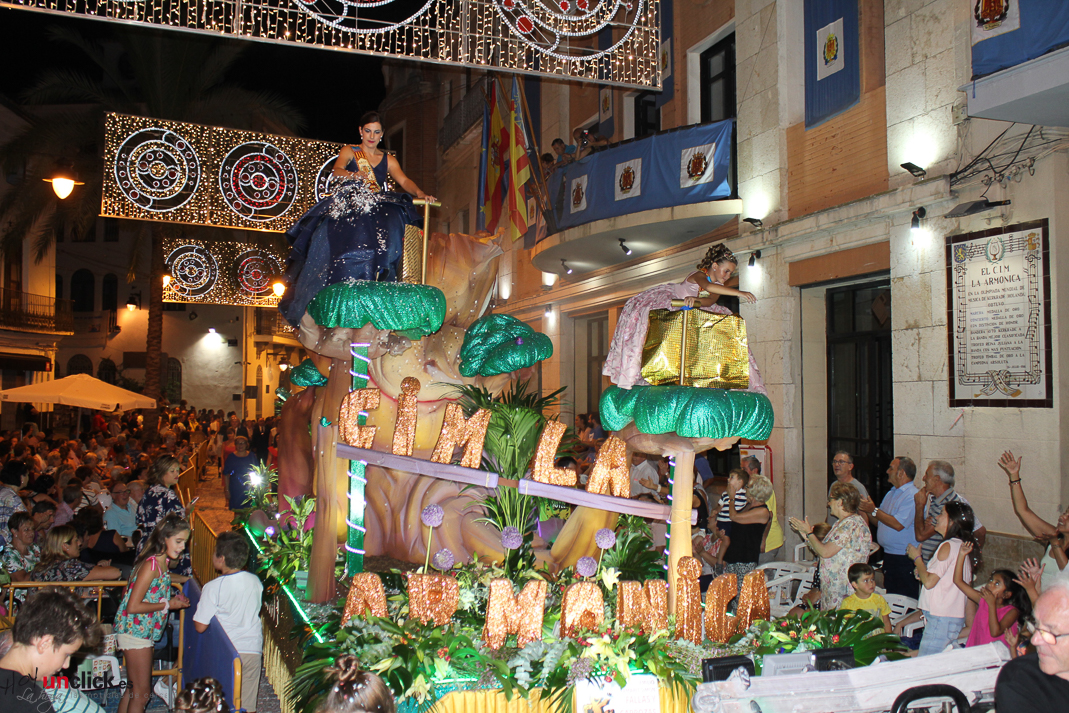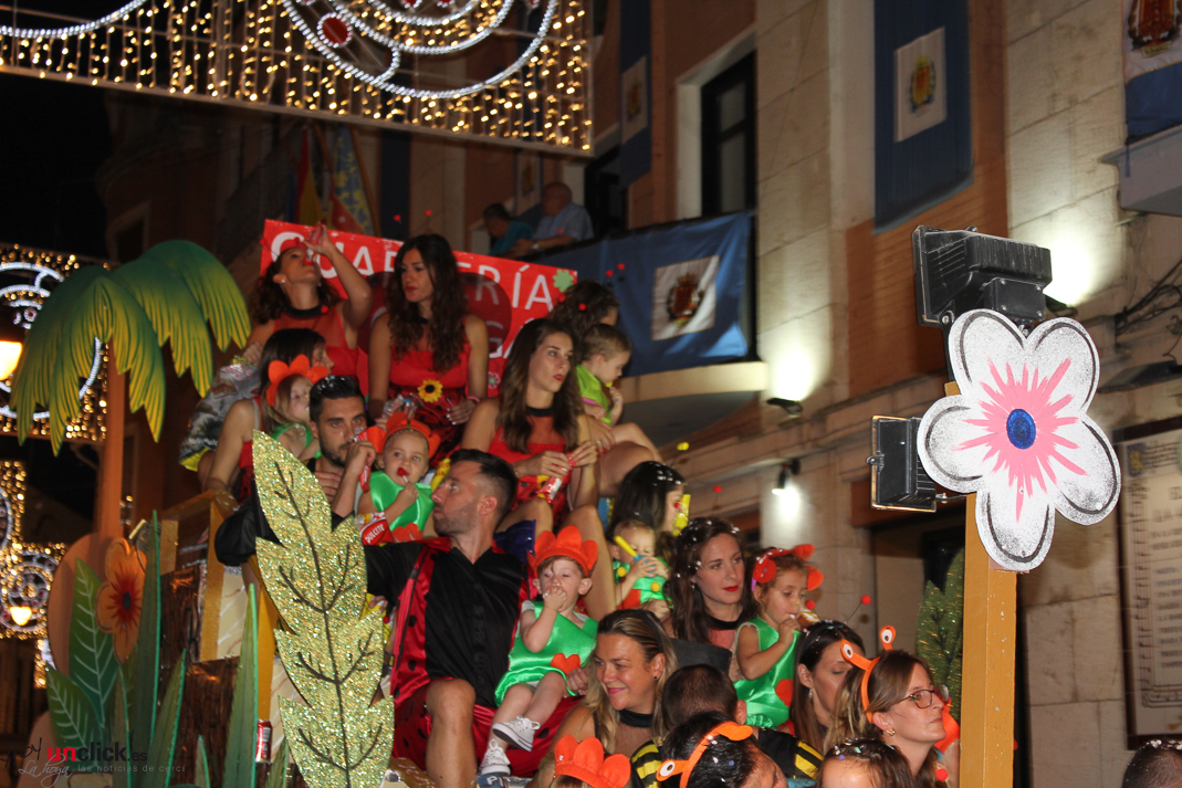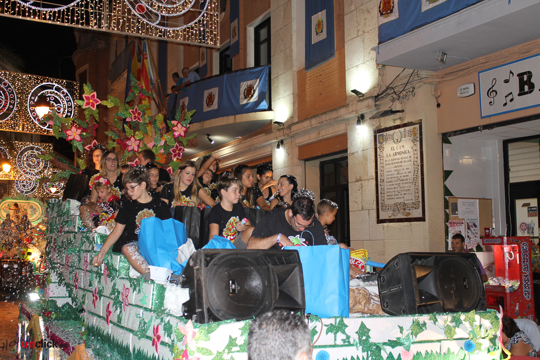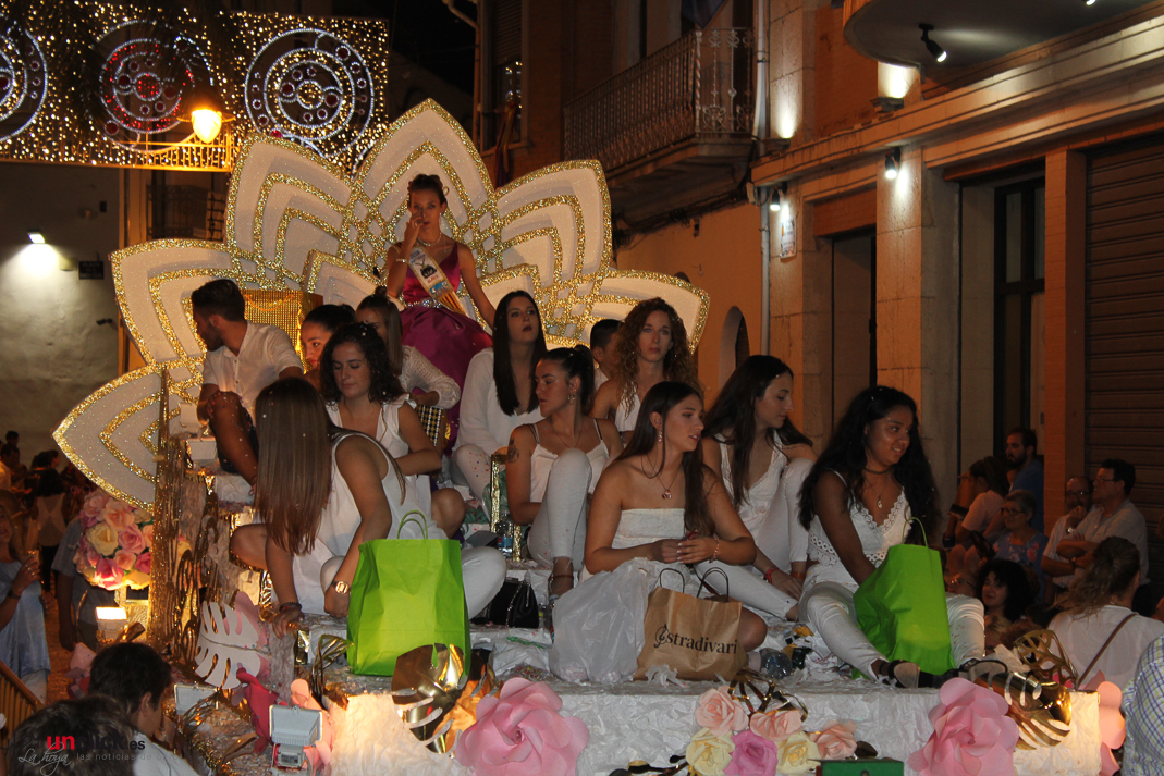 Desde a Avenida de La Violeta, partieron numerosas carrozas que portaban a las mujeres que han acompañado a Carmen en la Corte de Honor, con sus respectivos representantes y simpatizantes. También las Misses, Reinas y Representantes de las sociedades musicales. Y como no, las bandas que participaron por la mañana en el desfile del Día de las Músicas.