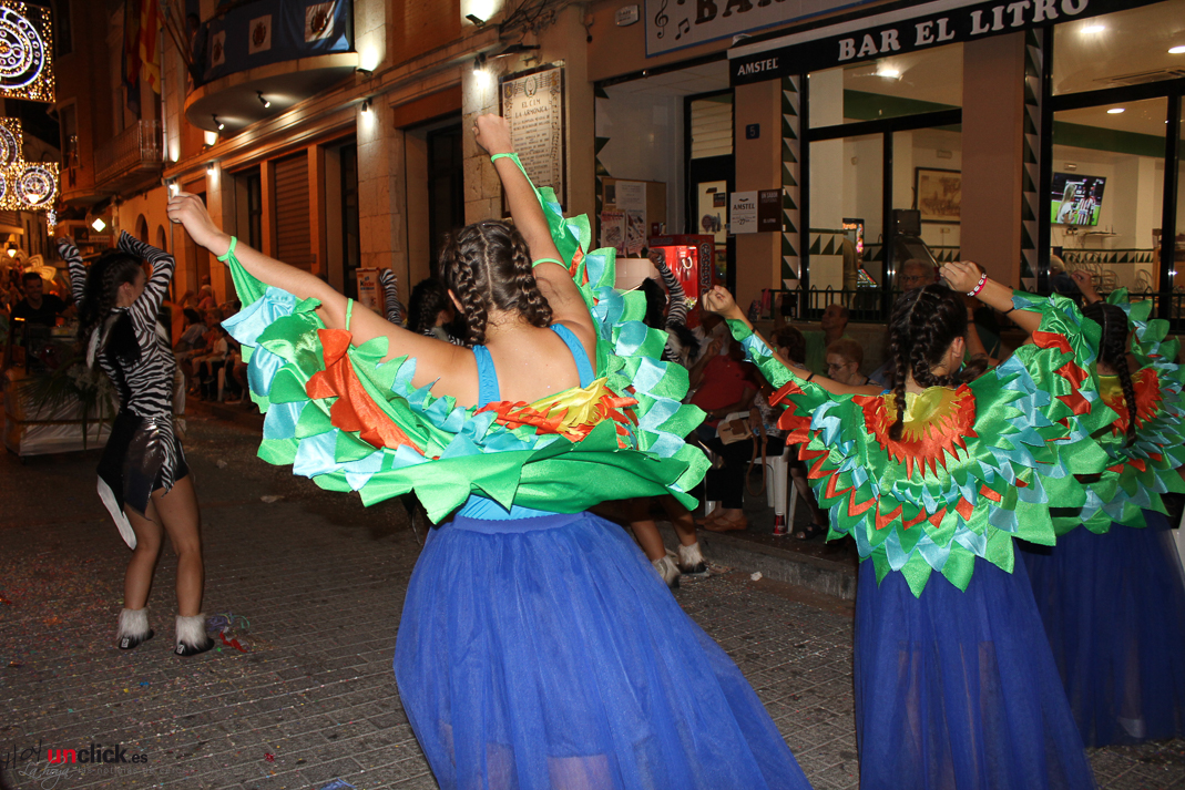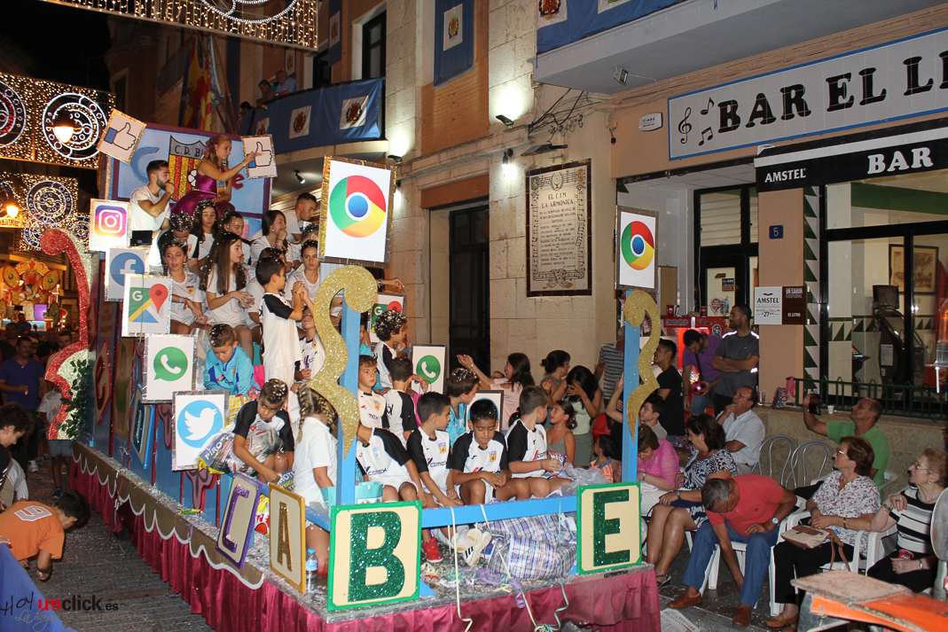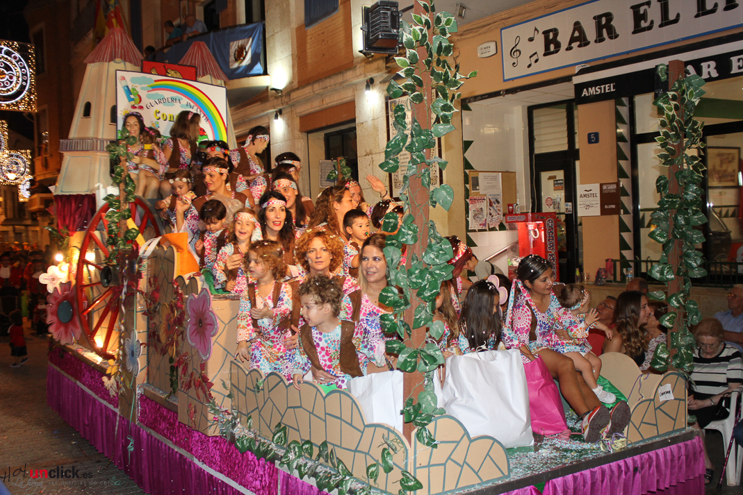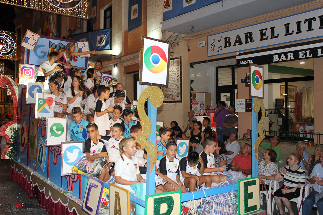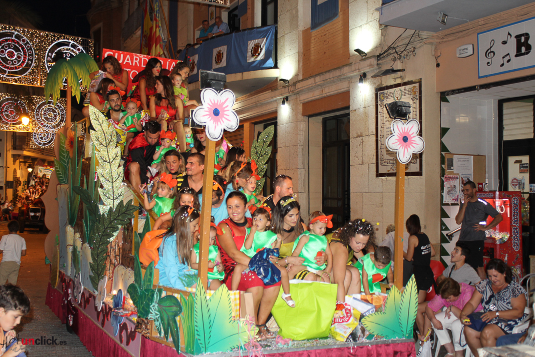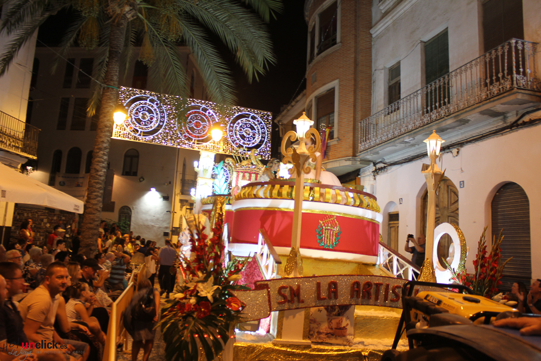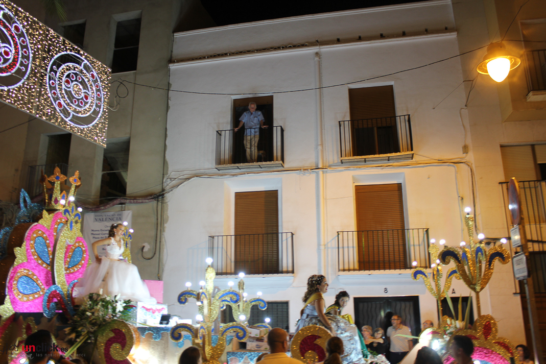 Desde a Avenida de La Violeta, partieron numerosas carrozas que portaban a las mujeres que han acompañado a Carmen en la Corte de Honor, con sus respectivos representantes y simpatizantes. También las Misses, Reinas y Representantes de las sociedades musicales. Y como no, las bandas que participaron por la mañana en el desfile del Día de las Músicas.