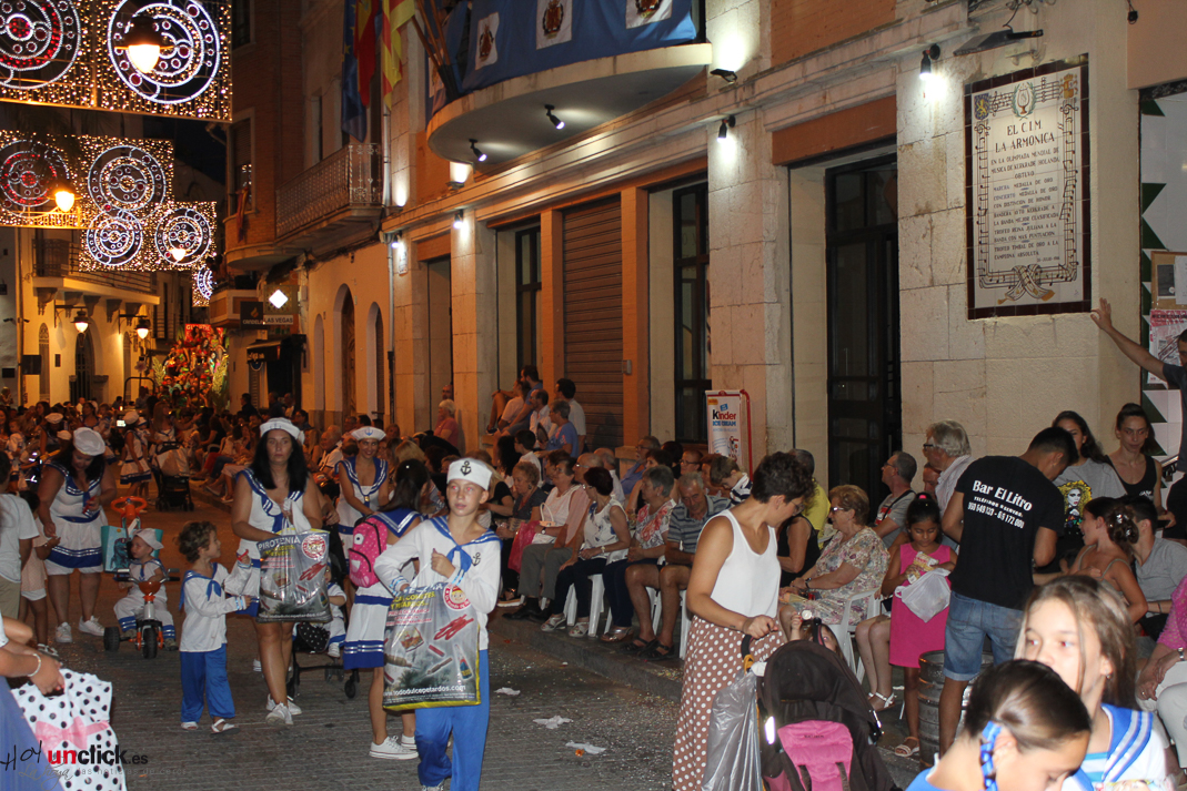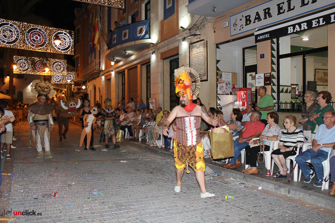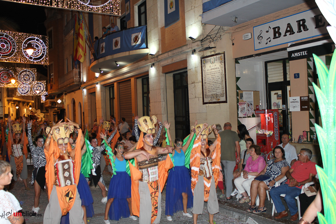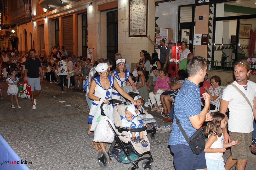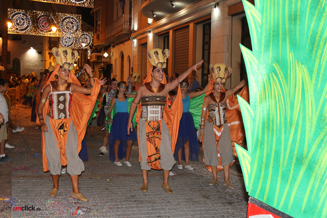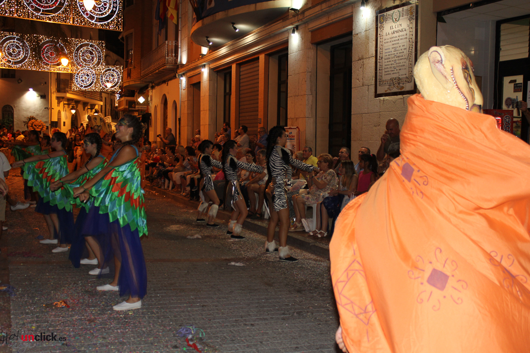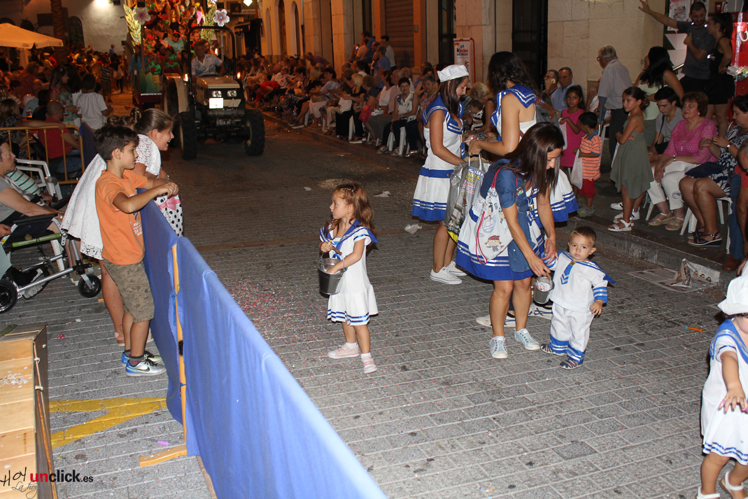 Desde a Avenida de La Violeta, partieron numerosas carrozas que portaban a las mujeres que han acompañado a Carmen en la Corte de Honor, con sus respectivos representantes y simpatizantes. También las Misses, Reinas y Representantes de las sociedades musicales. Y como no, las bandas que participaron por la mañana en el desfile del Día de las Músicas.
