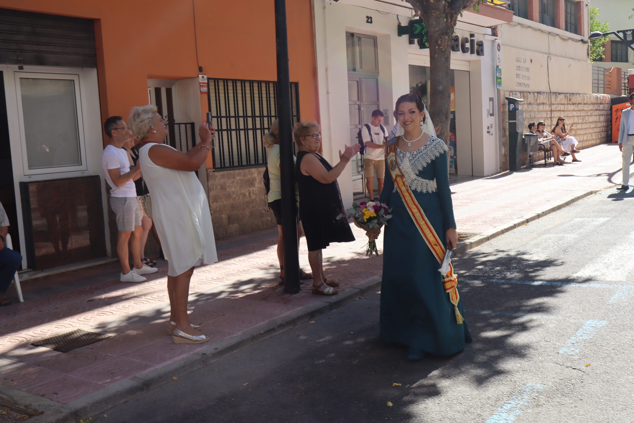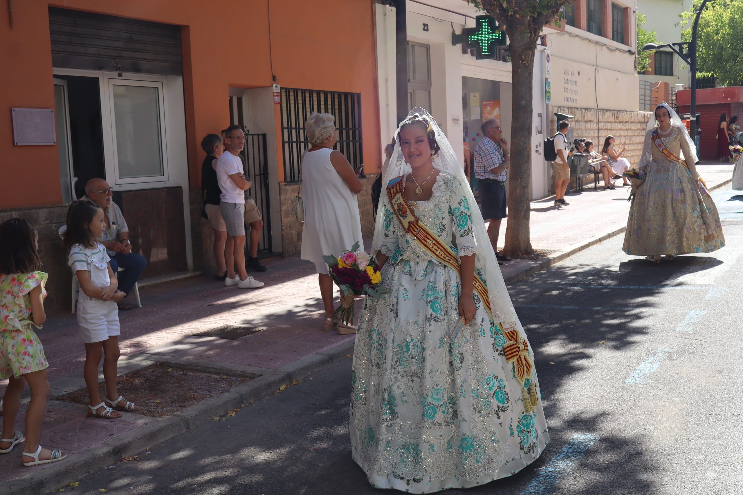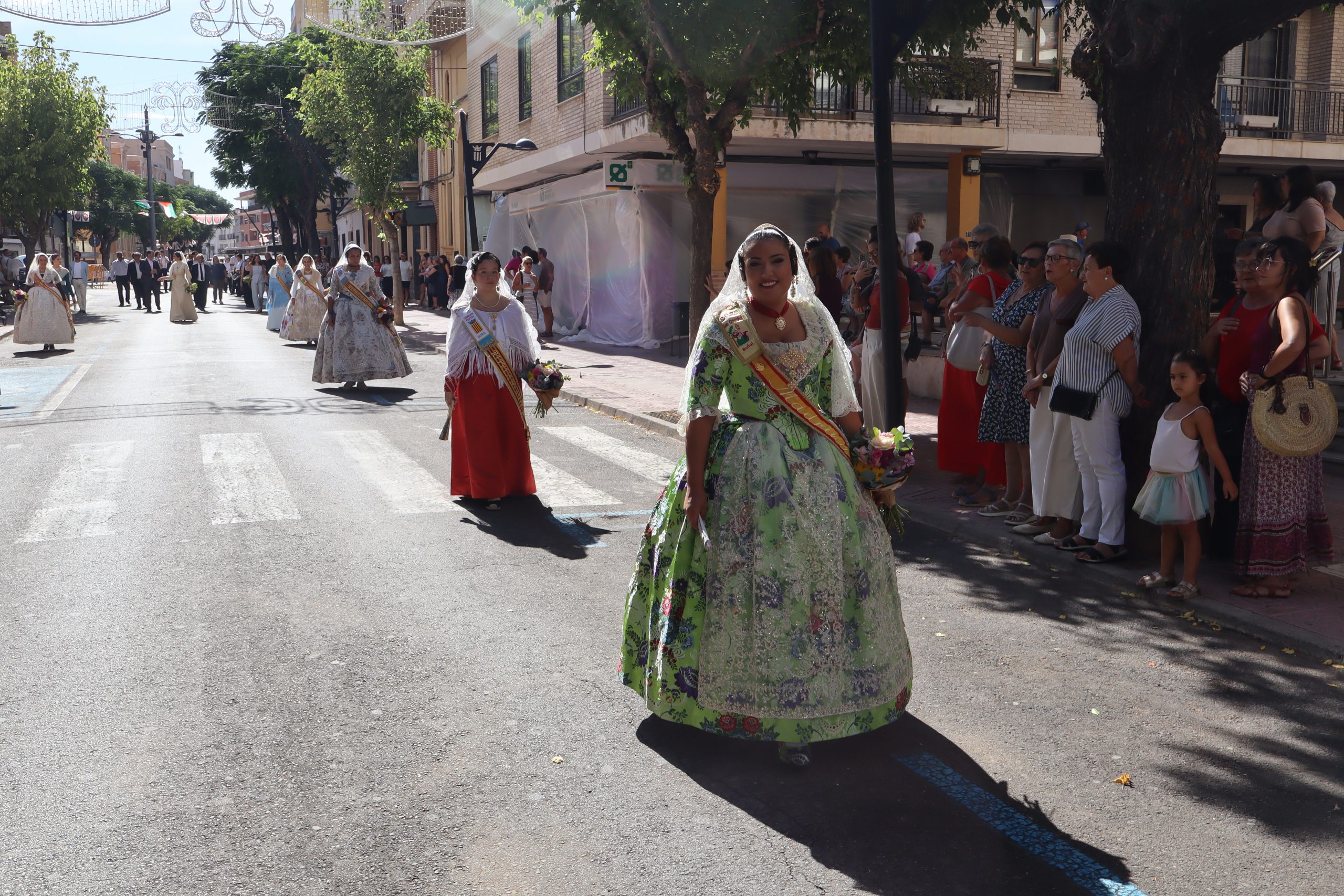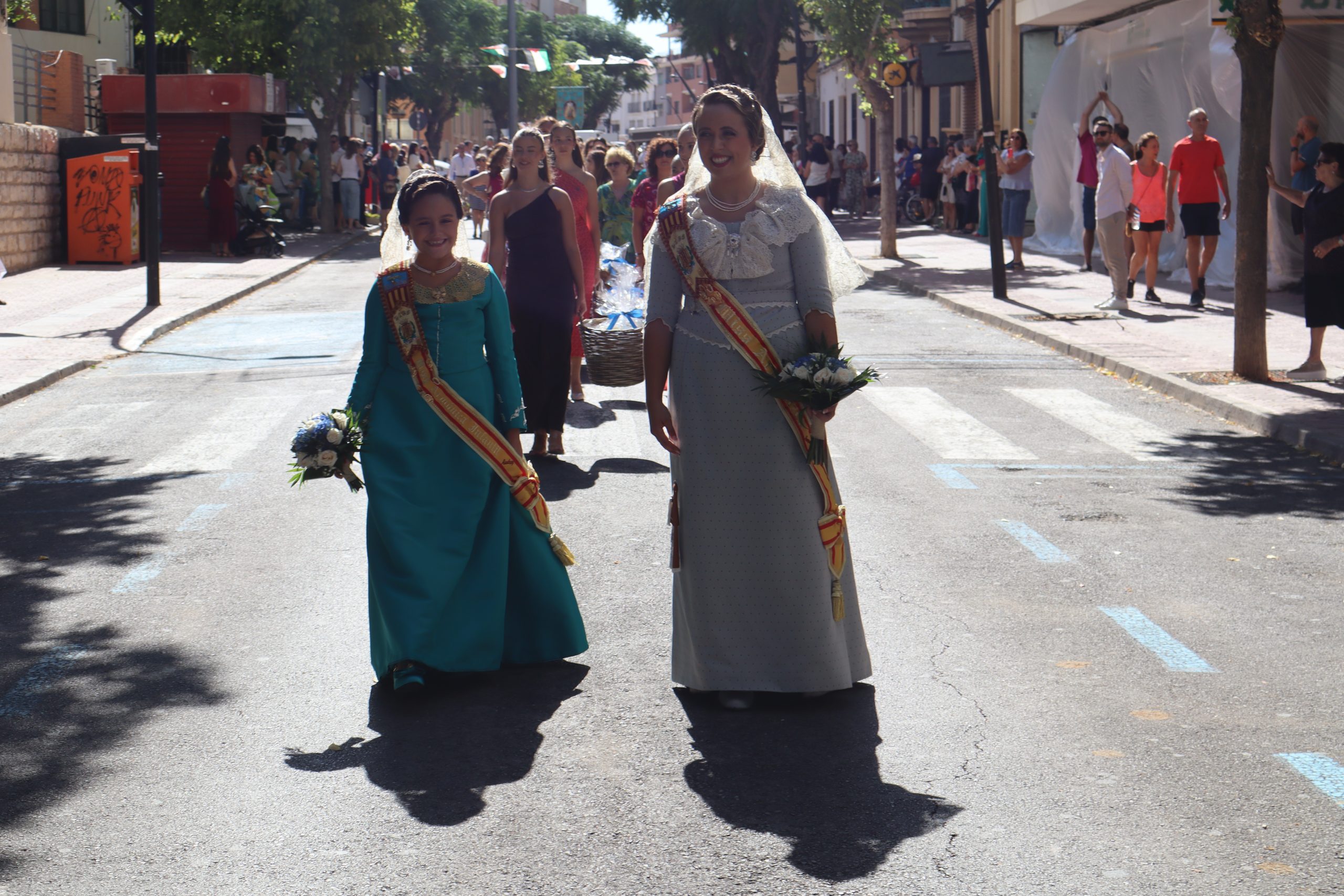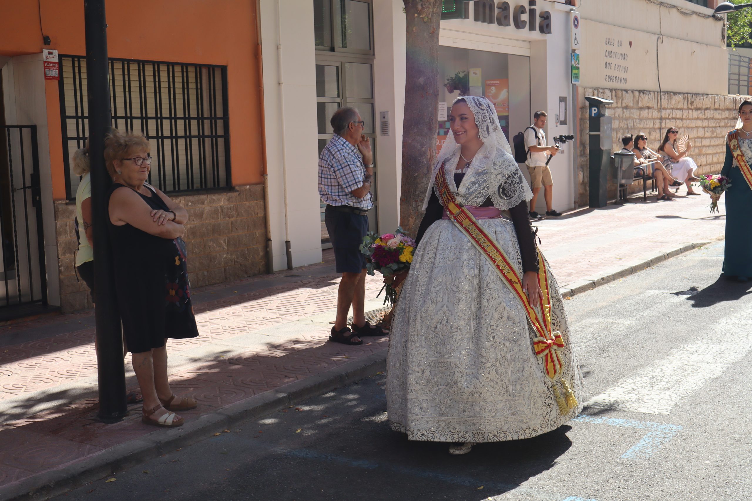 Por la mañana, como viene siendo habitual, se realizó un pasacalle y ofrenda desde la Avenida de la Violeta, en la que participaron la Reina de la Feria y Fiestas, Carmen Alís, acompañada por su Corte de Honor, así como la Junta Local Fallera, las Reinas y Misses de las sociedades musicales y los clavarios y clavarias de San Luis.