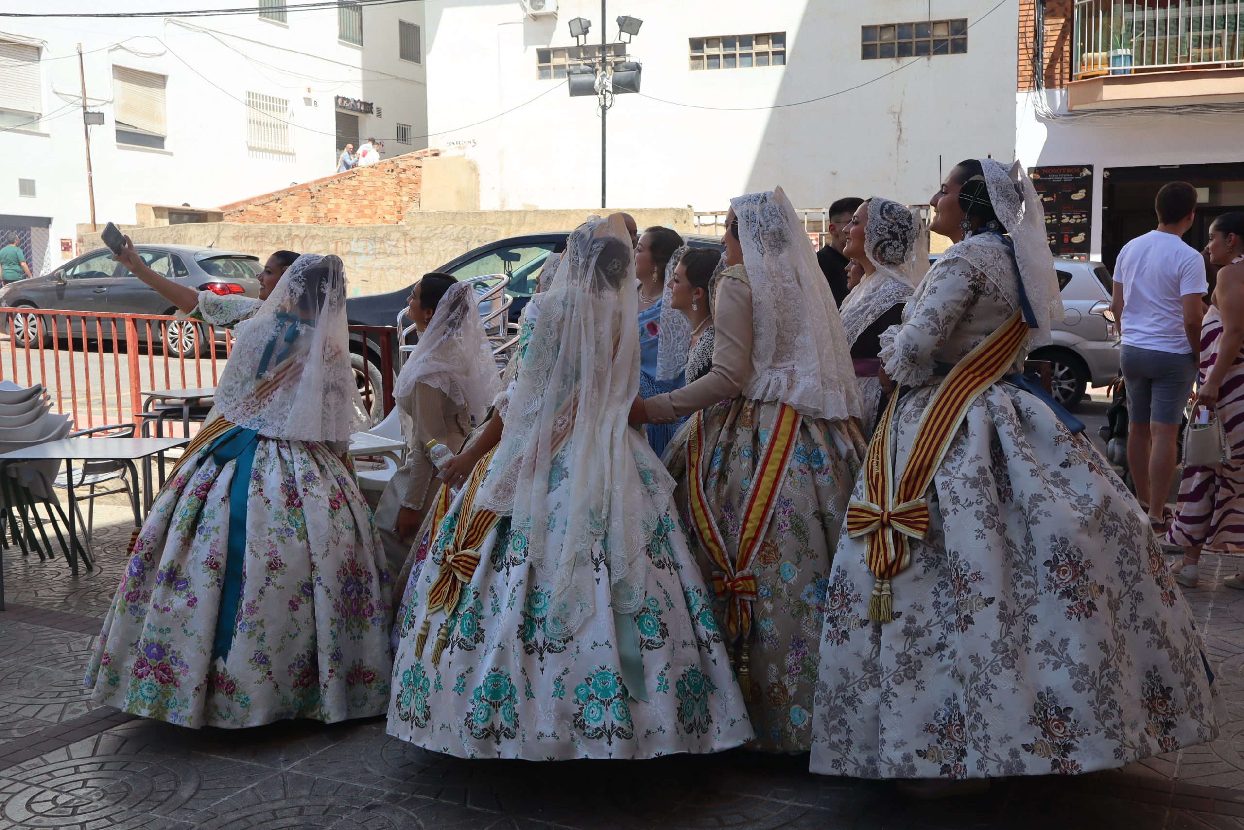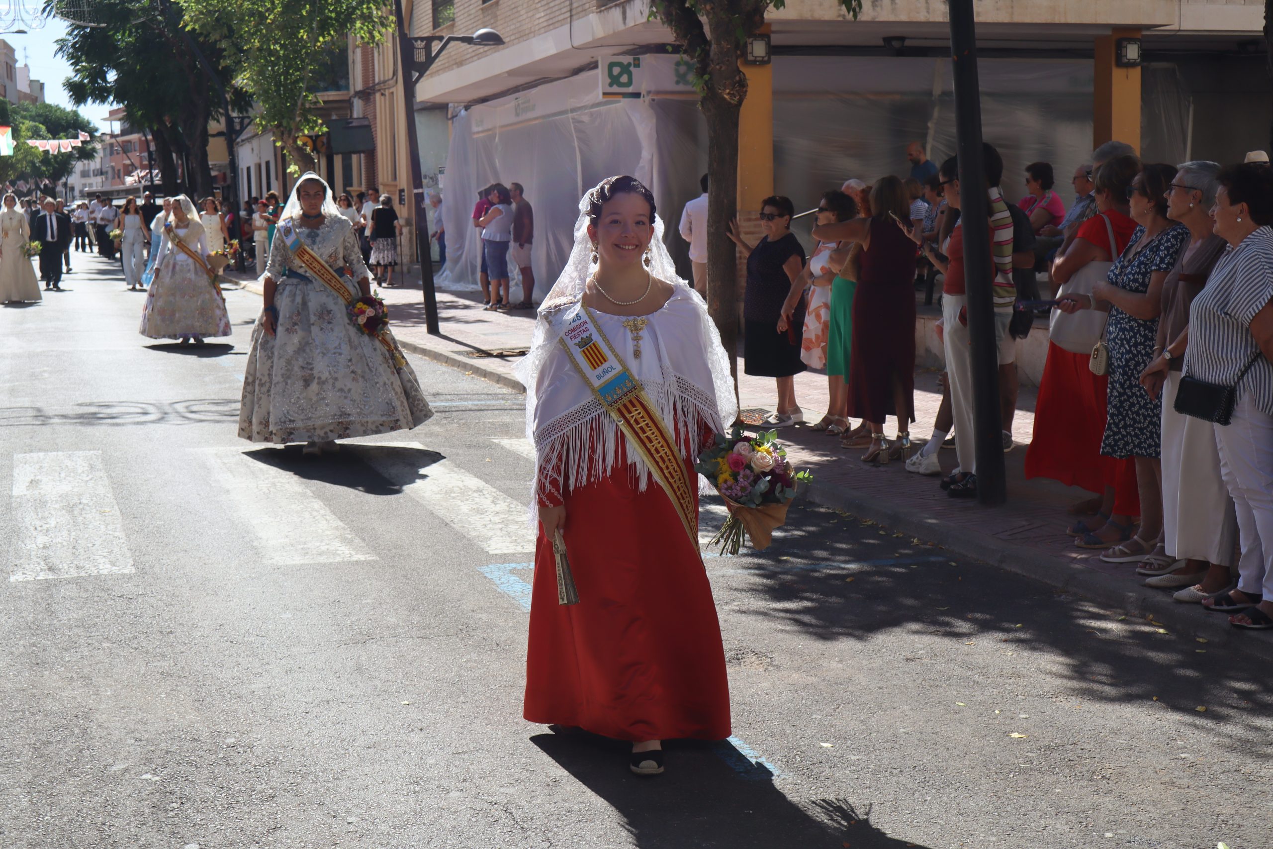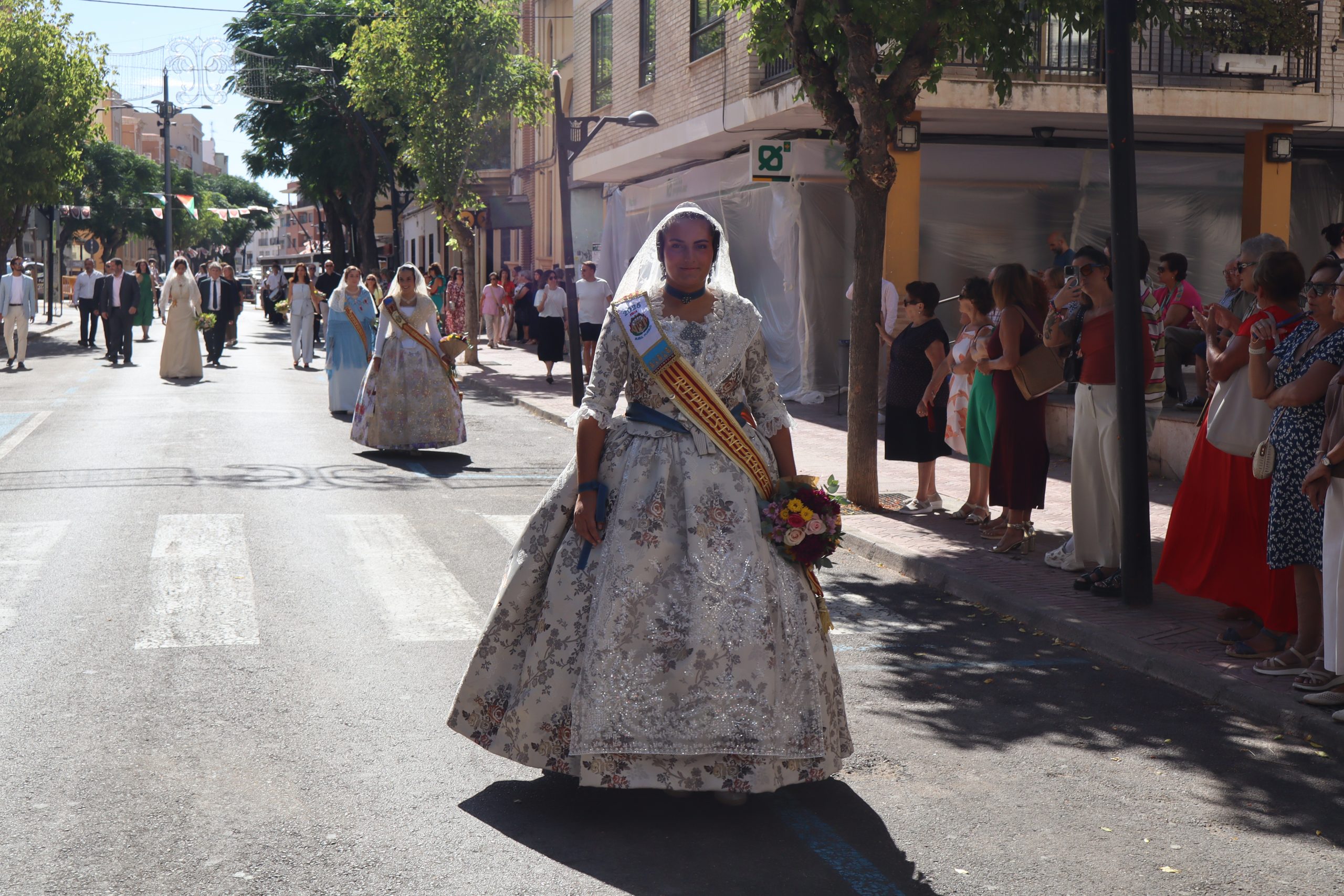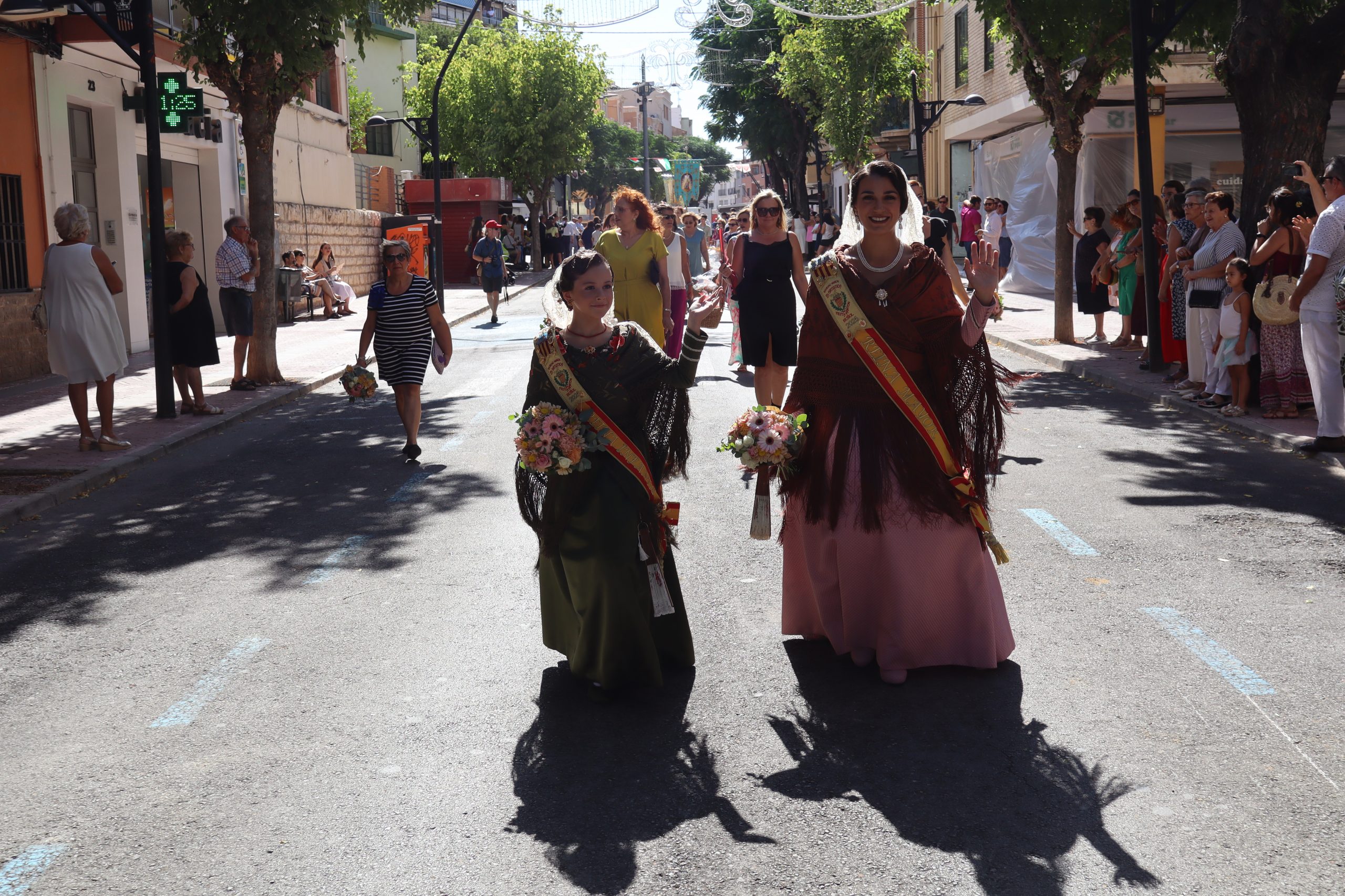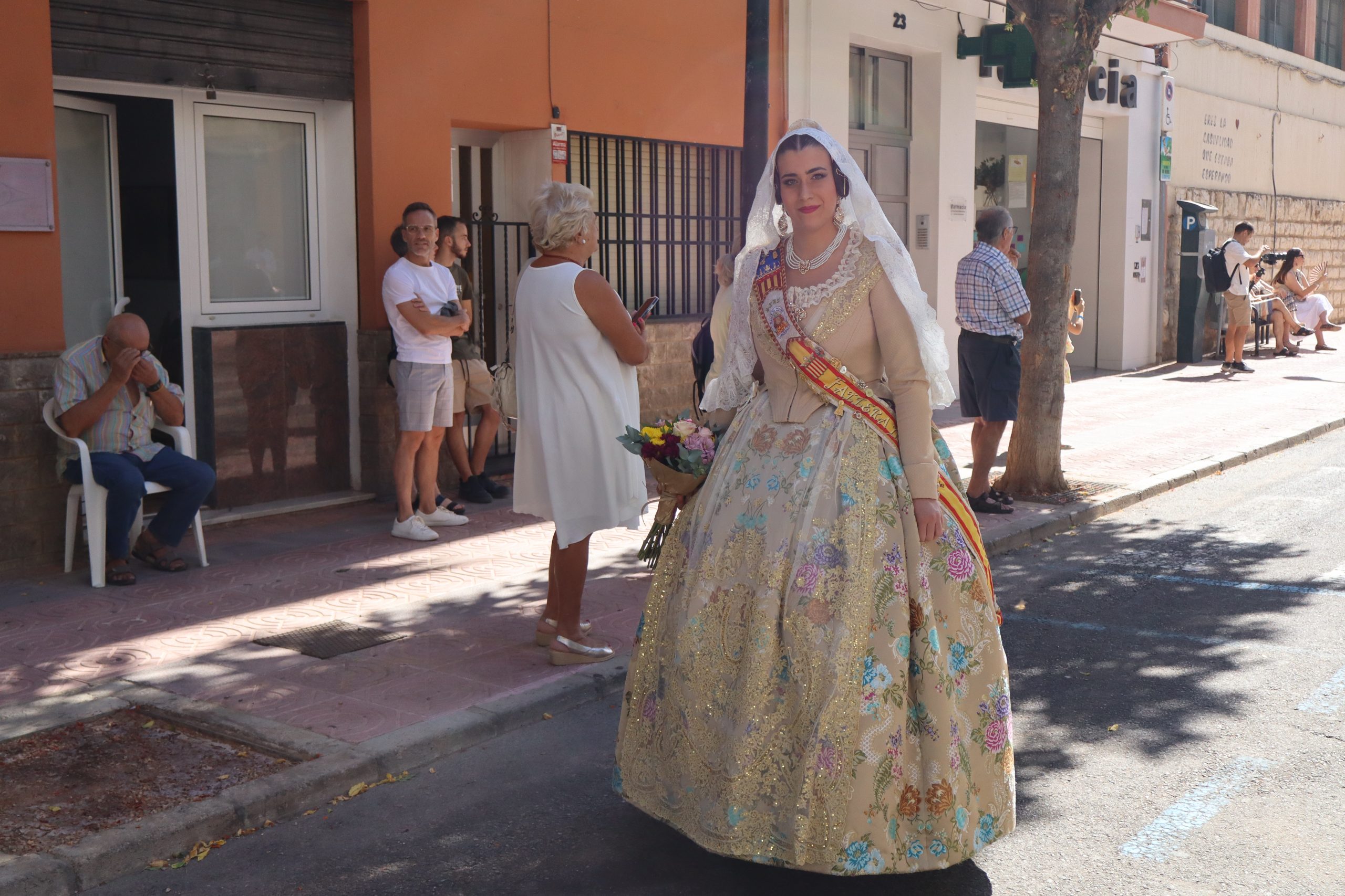 Por la mañana, como viene siendo habitual, se realizó un pasacalle y ofrenda desde la Avenida de la Violeta, en la que participaron la Reina de la Feria y Fiestas, Carmen Alís, acompañada por su Corte de Honor, así como la Junta Local Fallera, las Reinas y Misses de las sociedades musicales y los clavarios y clavarias de San Luis.