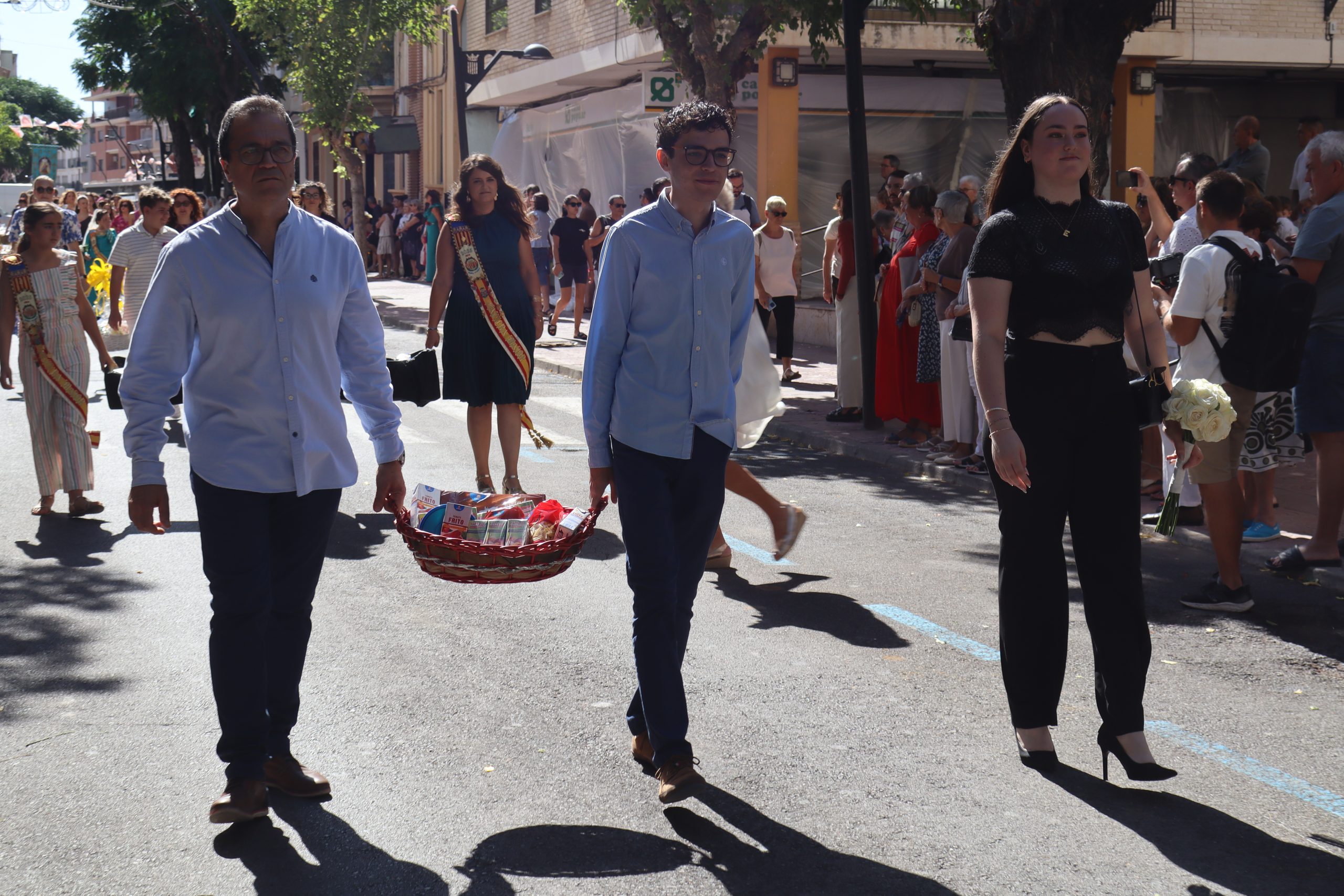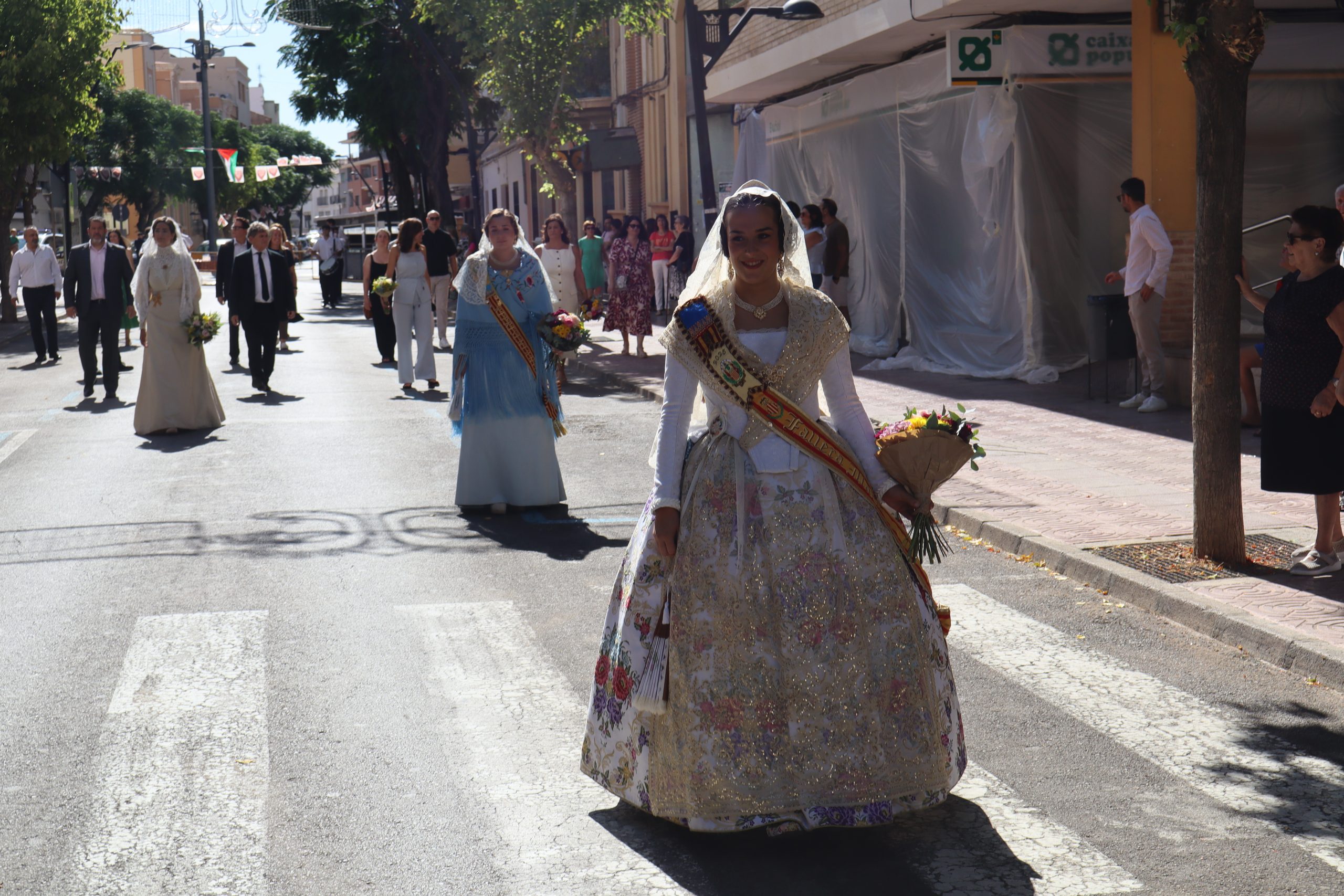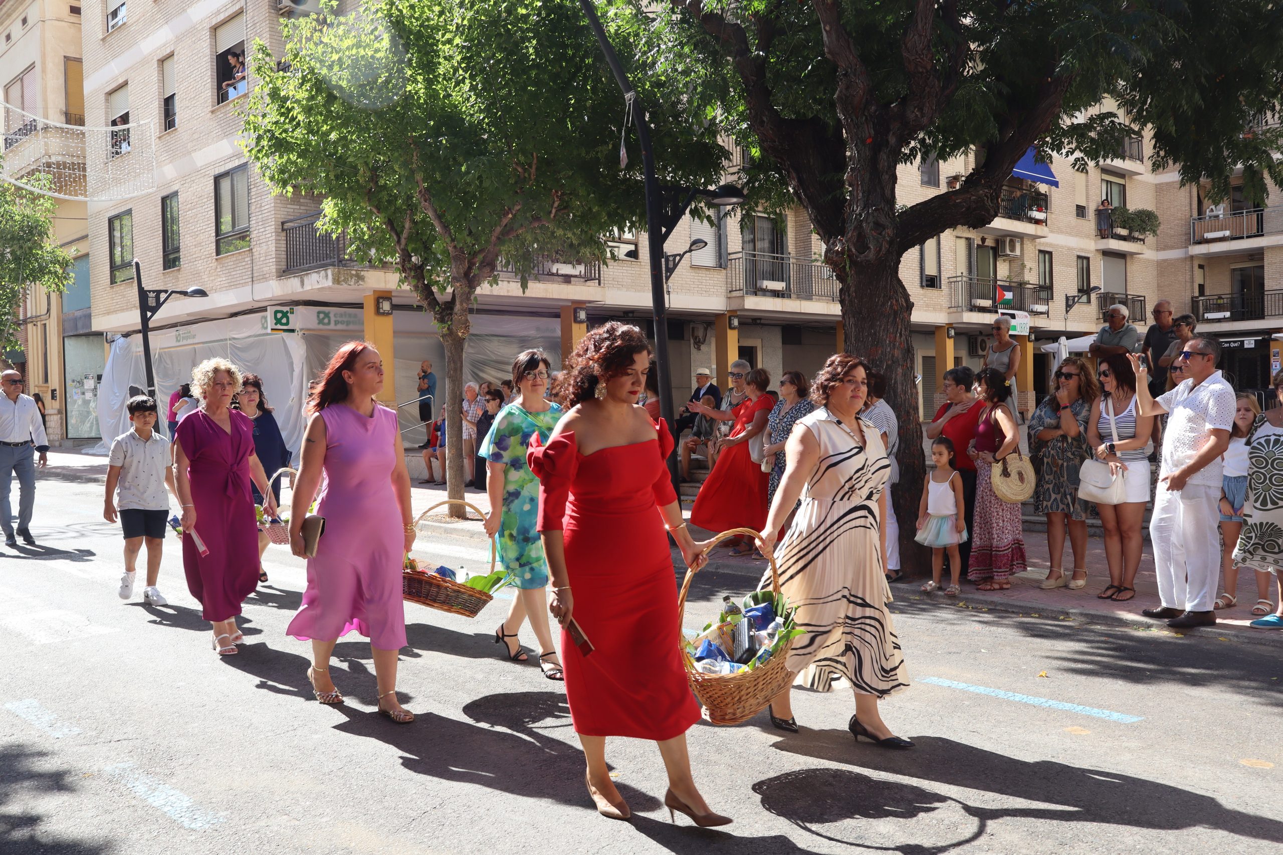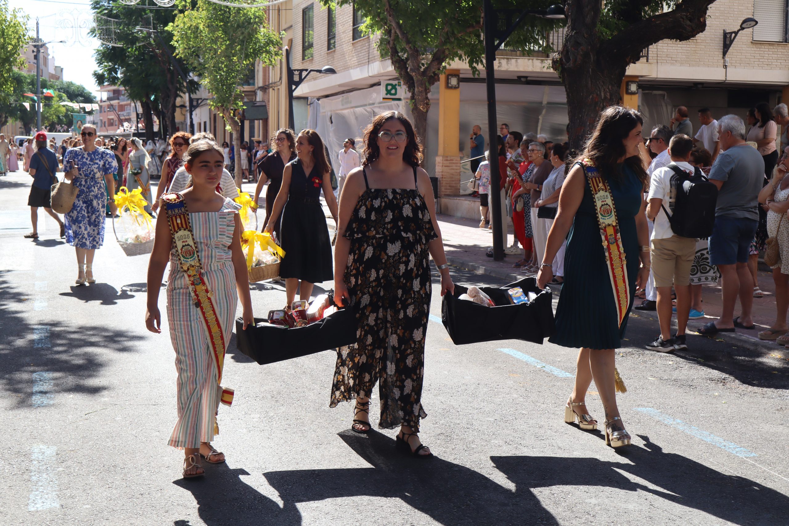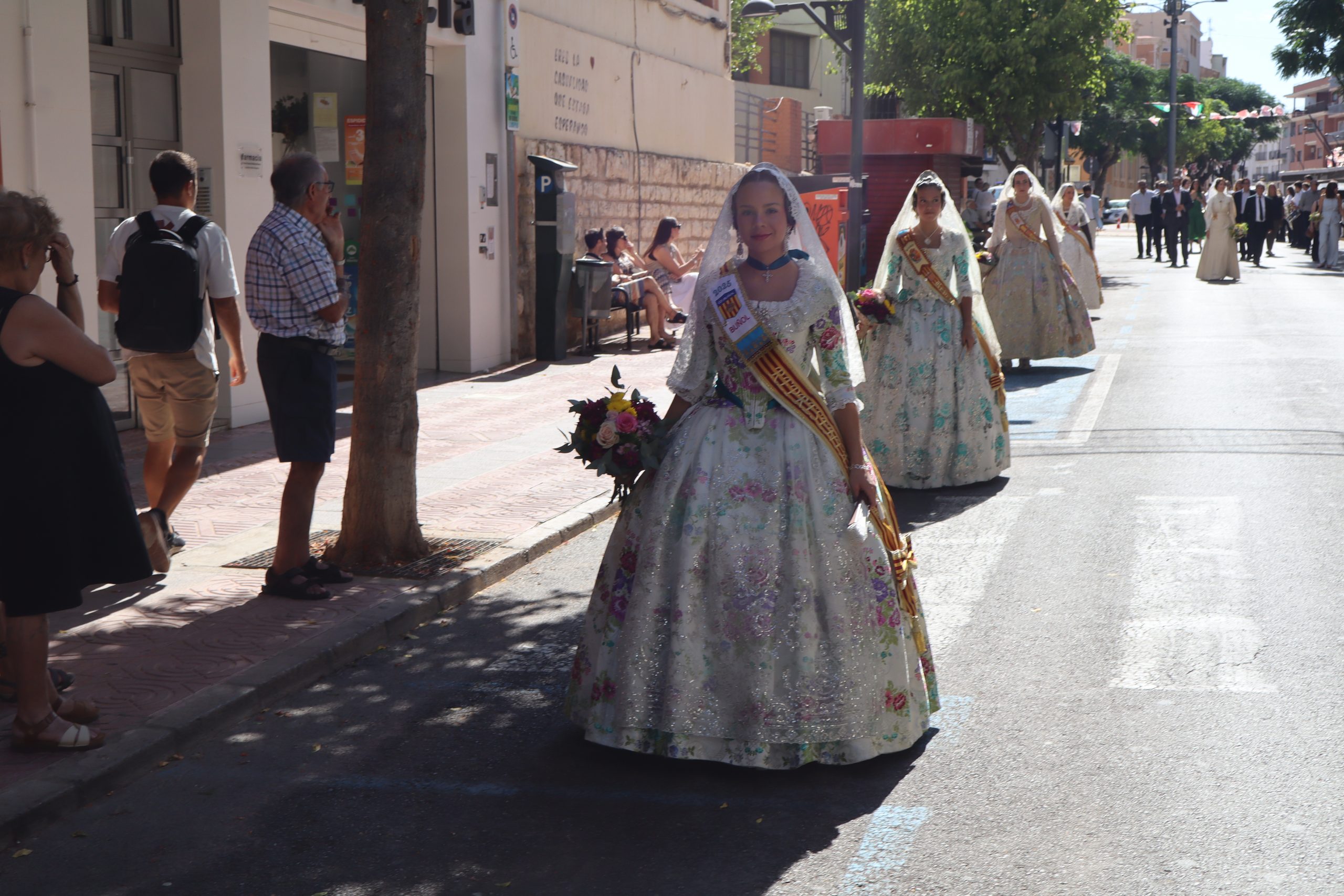 Por la mañana, como viene siendo habitual, se realizó un pasacalle y ofrenda desde la Avenida de la Violeta, en la que participaron la Reina de la Feria y Fiestas, Carmen Alís, acompañada por su Corte de Honor, así como la Junta Local Fallera, las Reinas y Misses de las sociedades musicales y los clavarios y clavarias de San Luis.