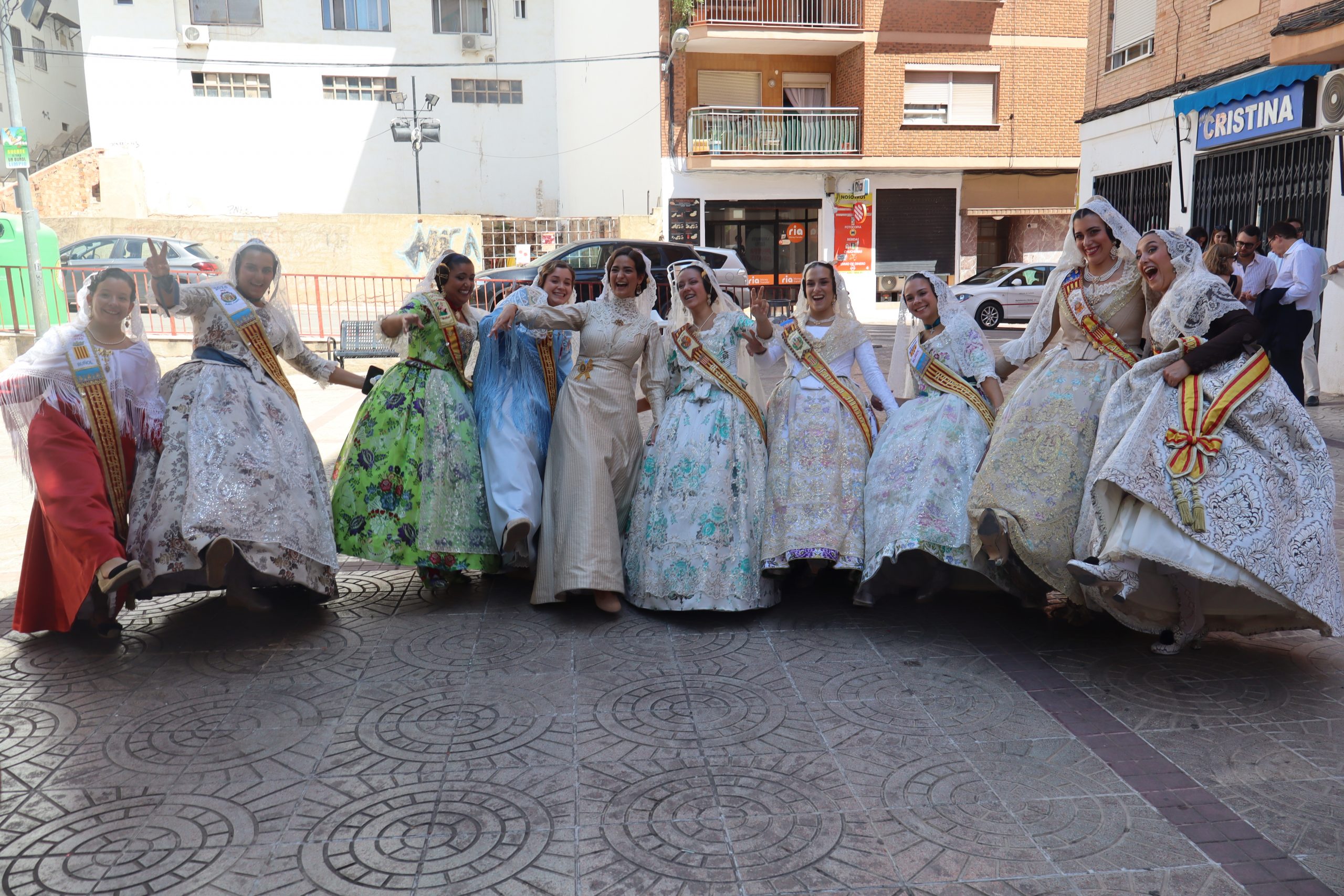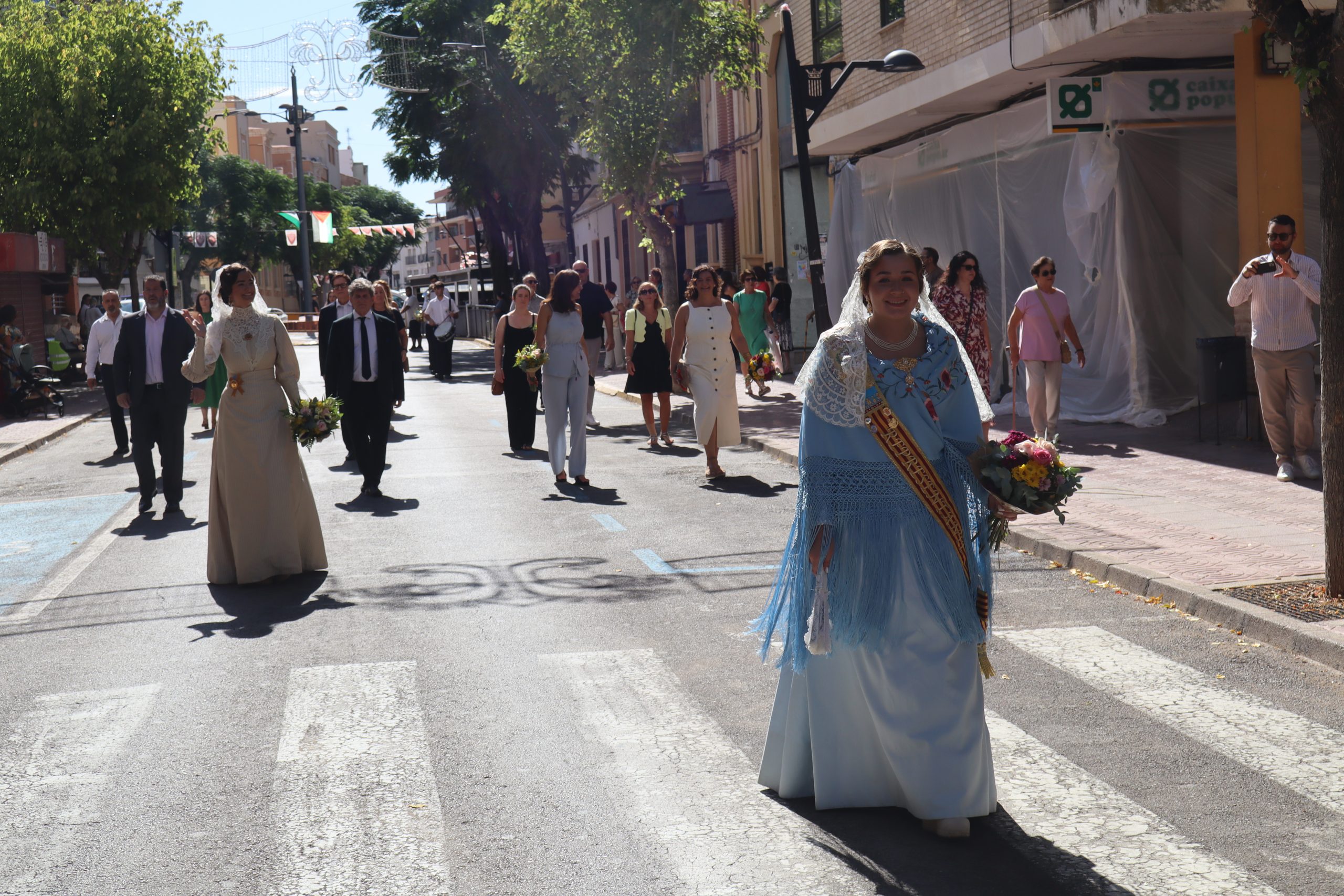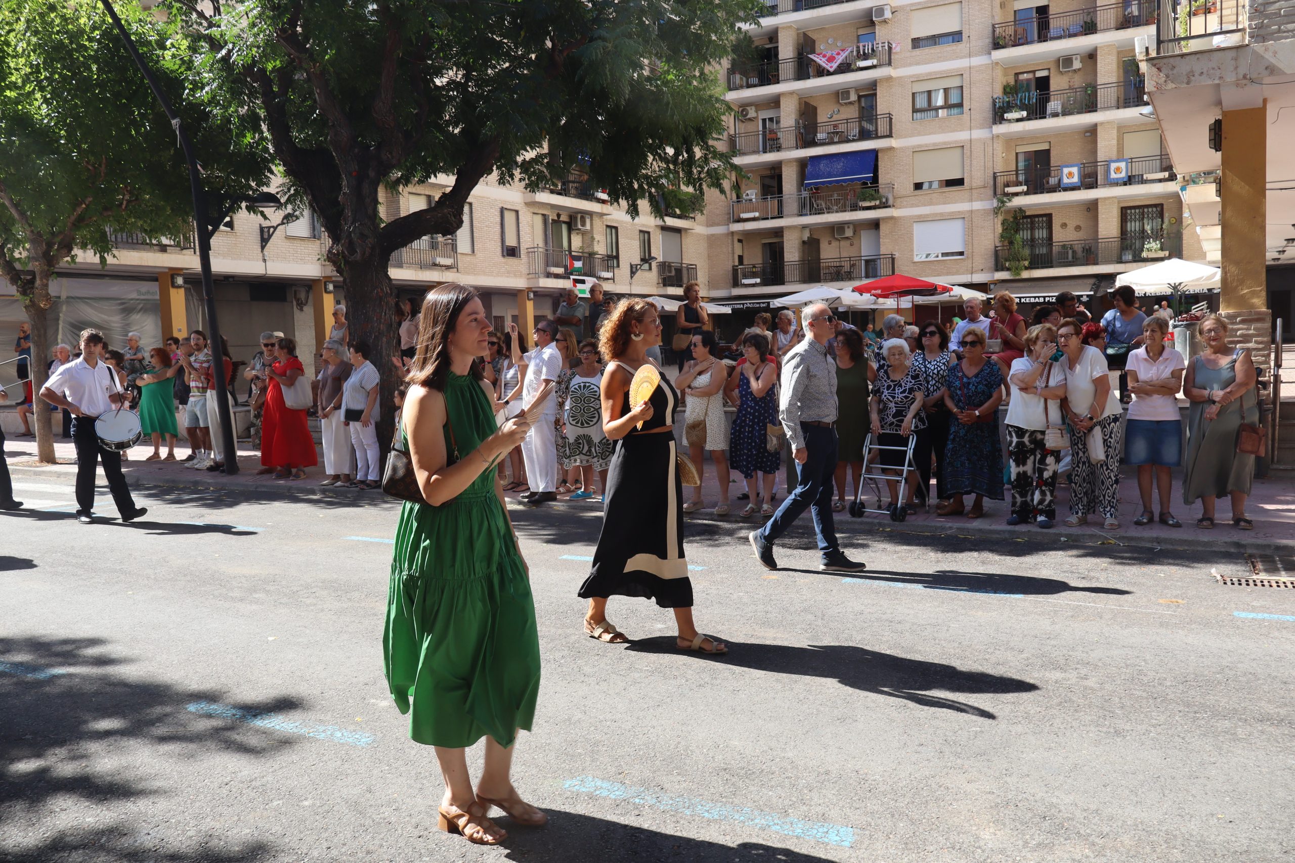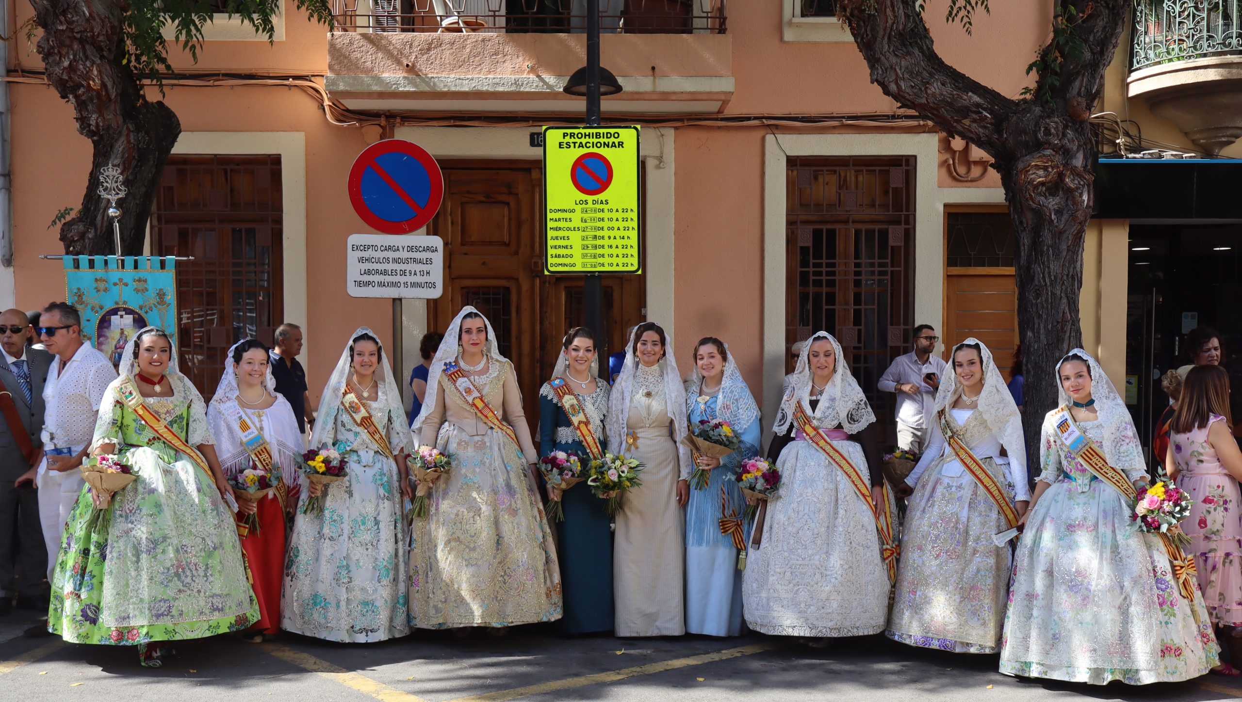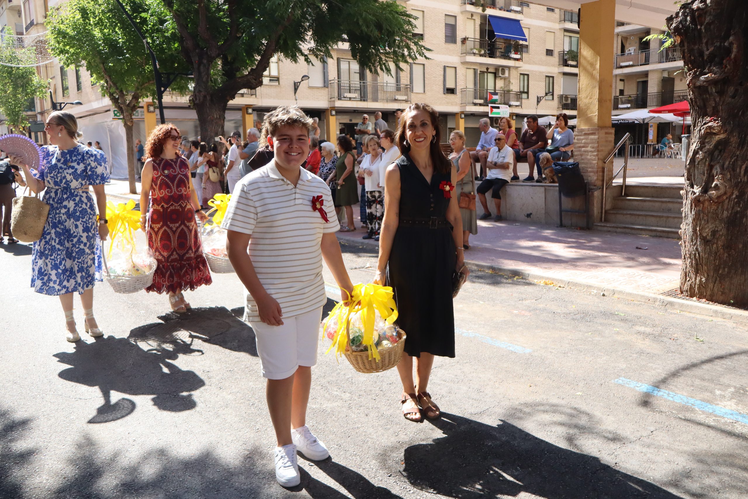 Por la mañana, como viene siendo habitual, se realizó un pasacalle y ofrenda desde la Avenida de la Violeta, en la que participaron la Reina de la Feria y Fiestas, Carmen Alís, acompañada por su Corte de Honor, así como la Junta Local Fallera, las Reinas y Misses de las sociedades musicales y los clavarios y clavarias de San Luis.