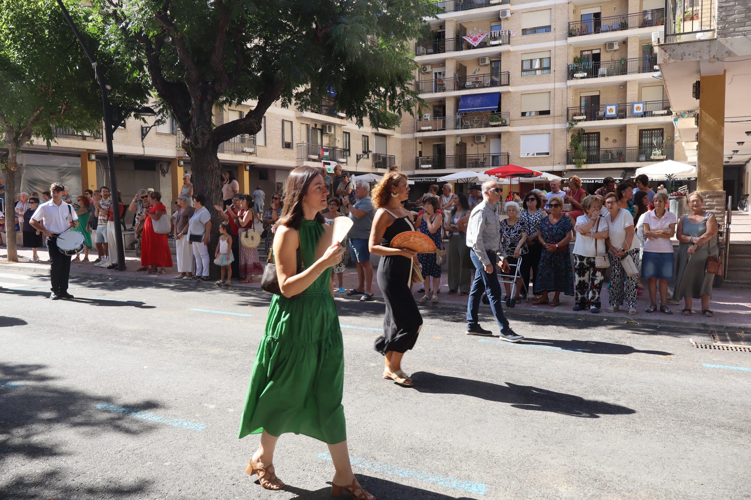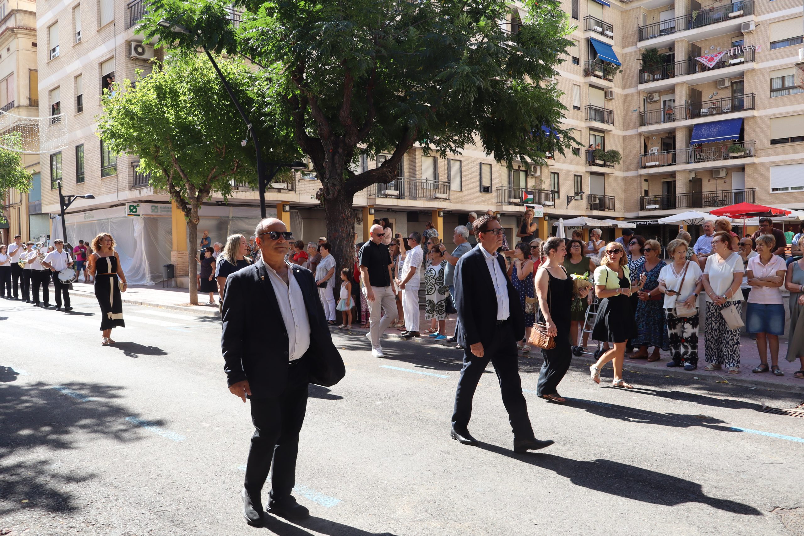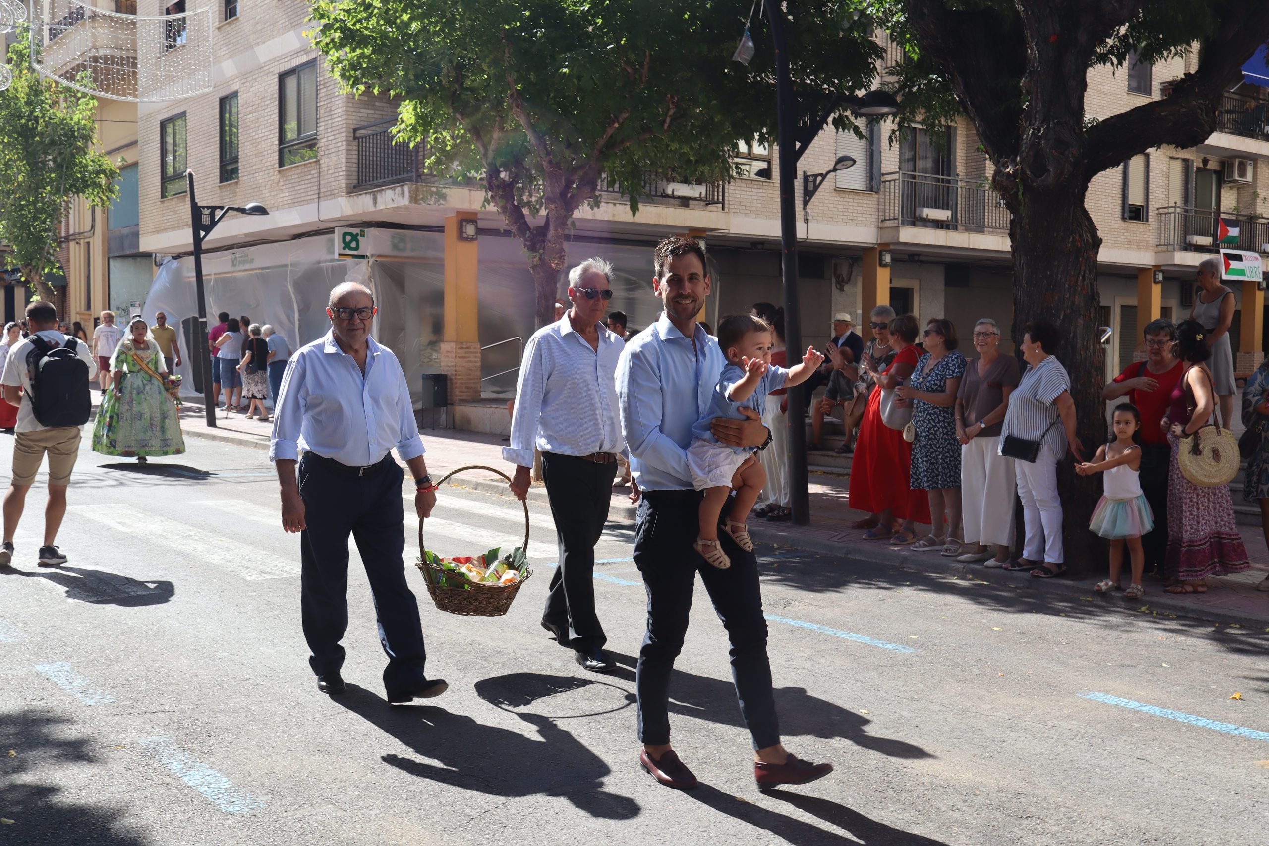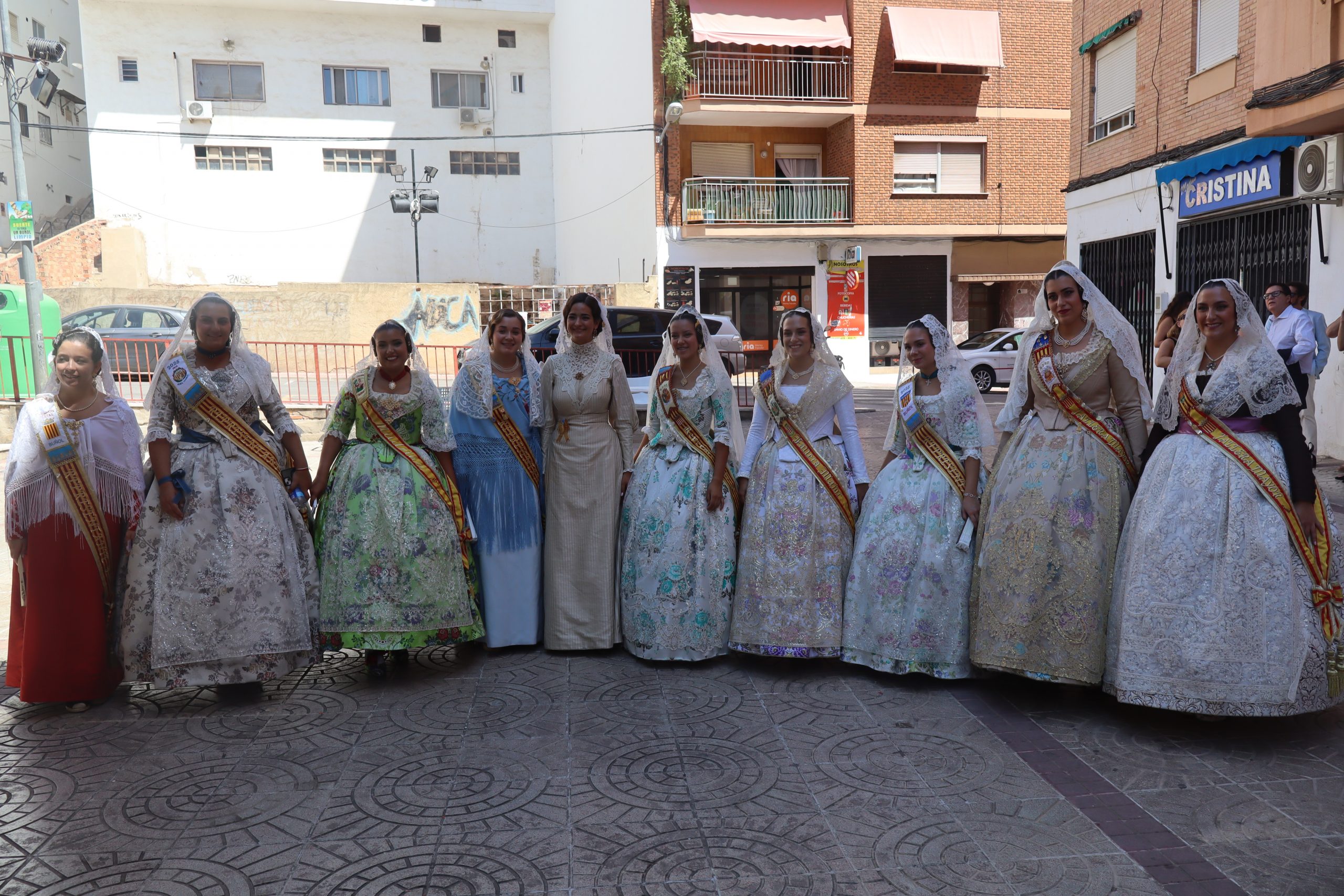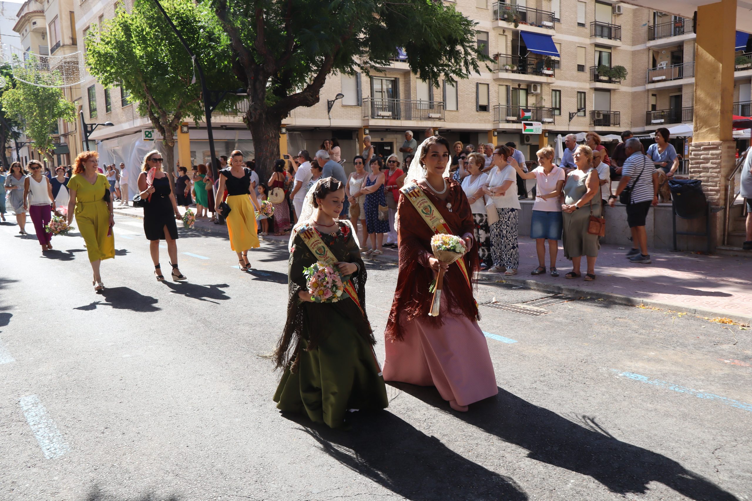 Por la mañana, como viene siendo habitual, se realizó un pasacalle y ofrenda desde la Avenida de la Violeta, en la que participaron la Reina de la Feria y Fiestas, Carmen Alís, acompañada por su Corte de Honor, así como la Junta Local Fallera, las Reinas y Misses de las sociedades musicales y los clavarios y clavarias de San Luis.