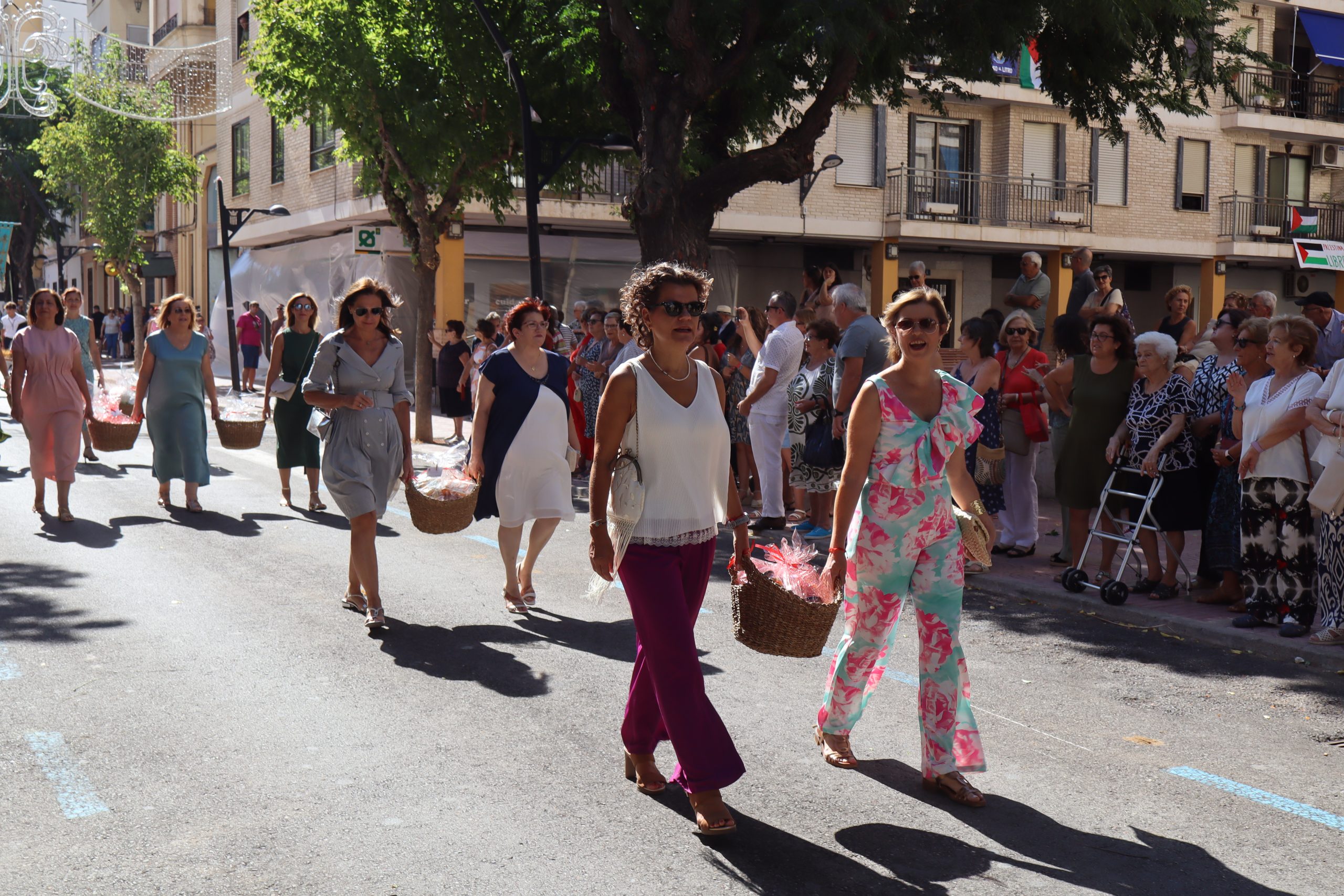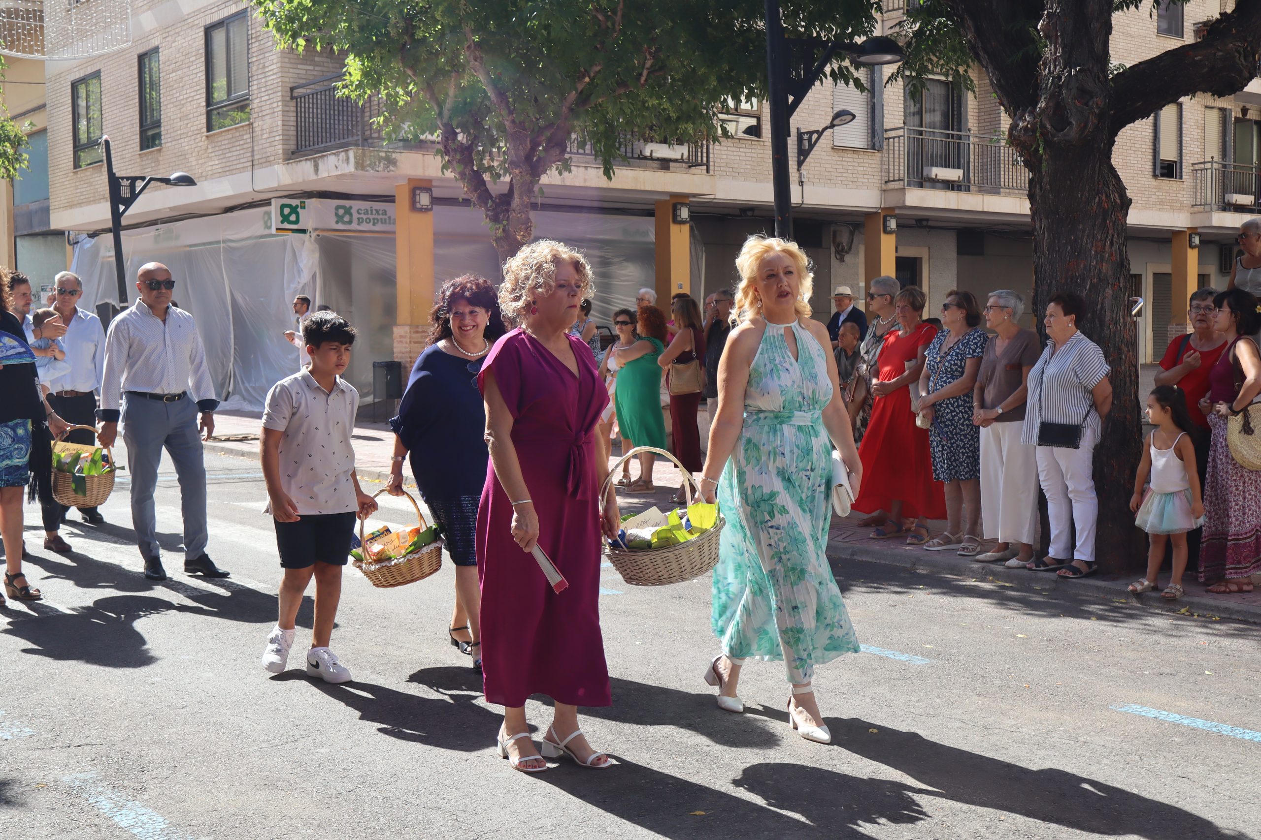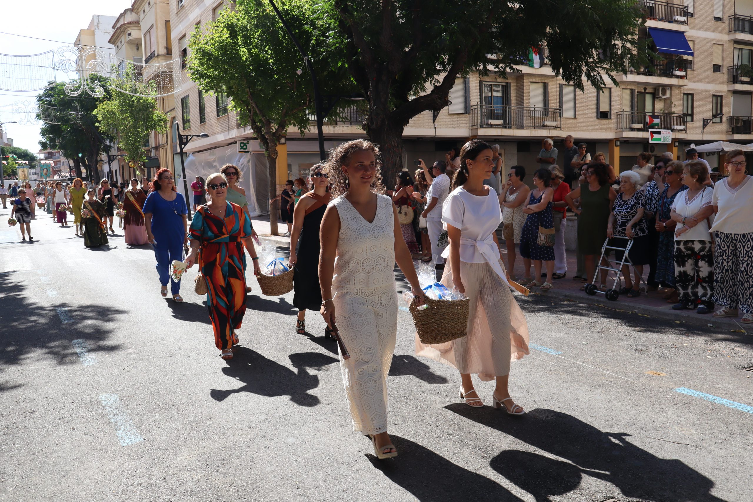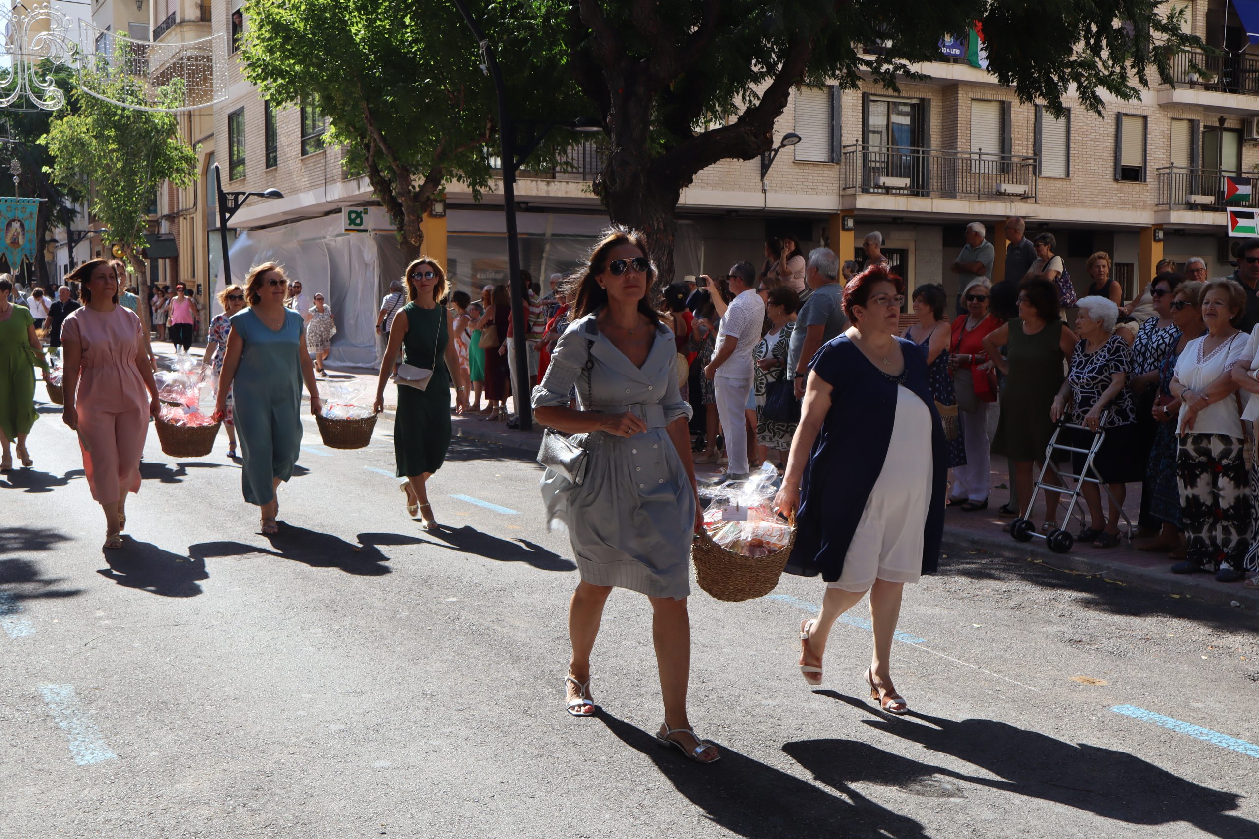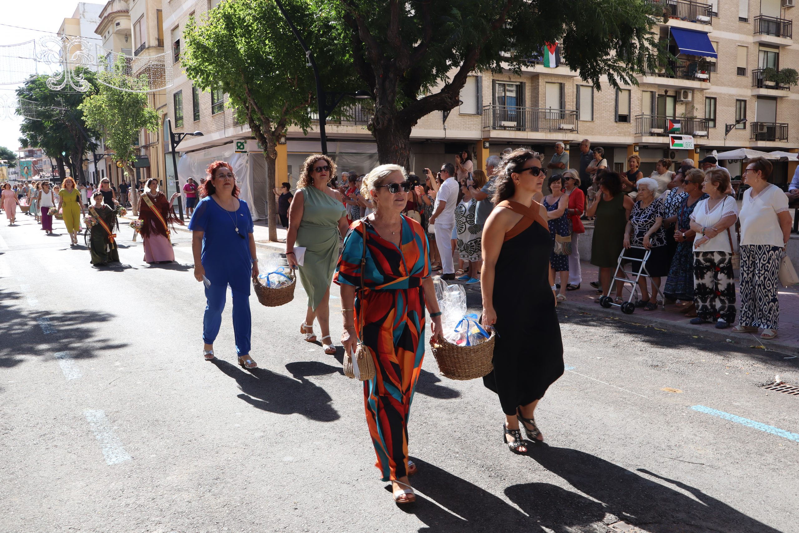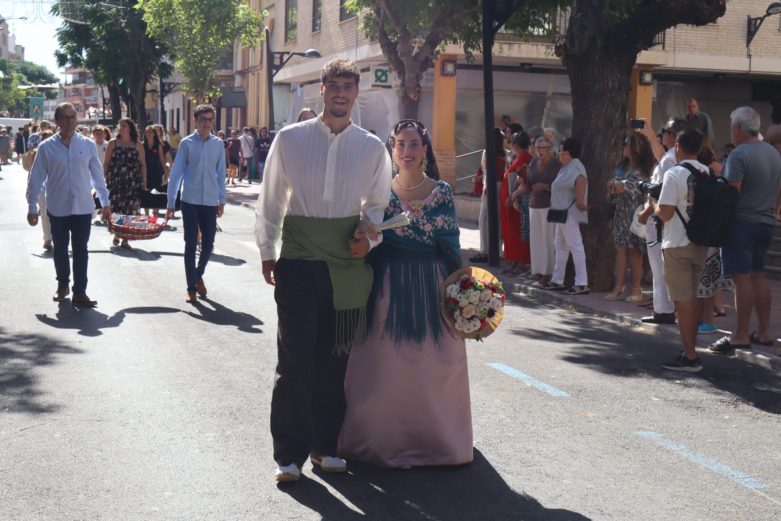 Por la mañana, como viene siendo habitual, se realizó un pasacalle y ofrenda desde la Avenida de la Violeta, en la que participaron la Reina de la Feria y Fiestas, Carmen Alís, acompañada por su Corte de Honor, así como la Junta Local Fallera, las Reinas y Misses de las sociedades musicales y los clavarios y clavarias de San Luis.
