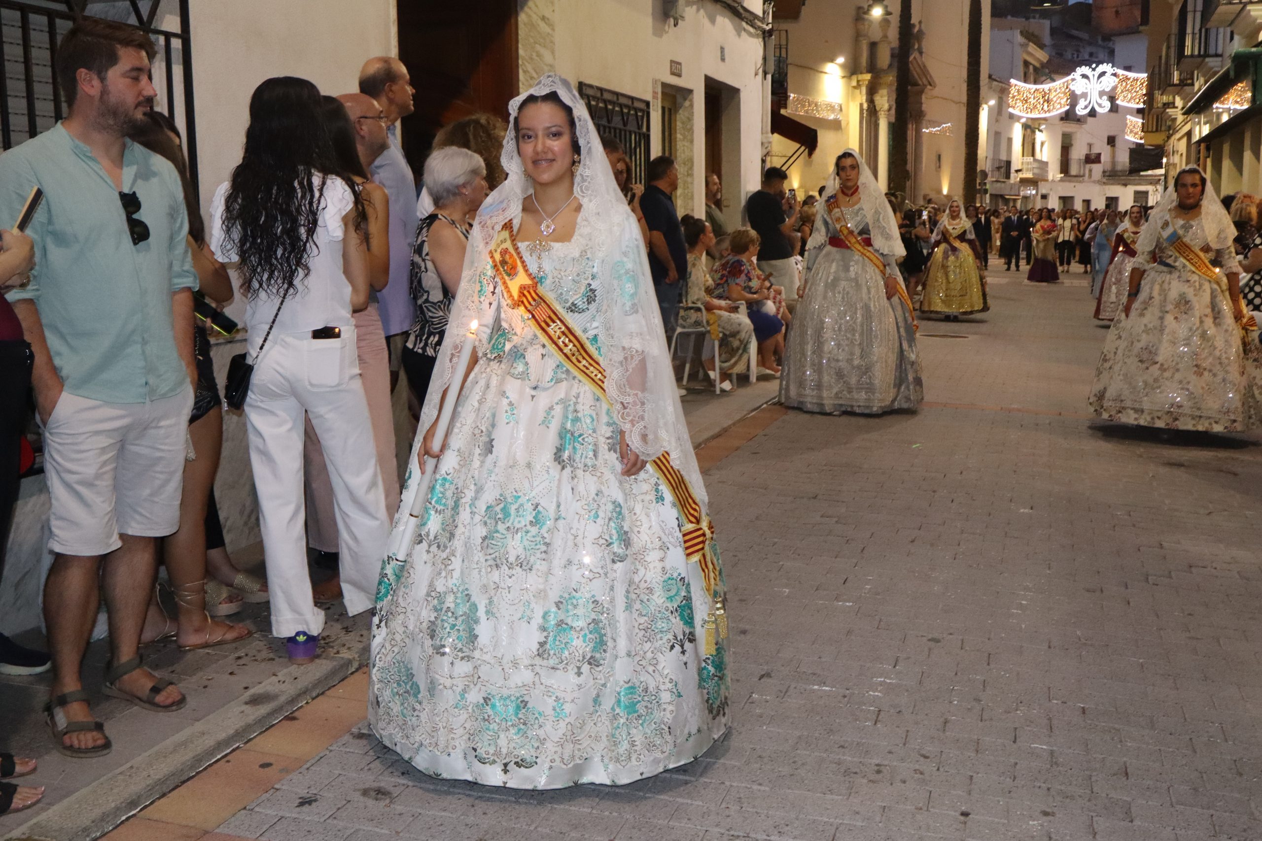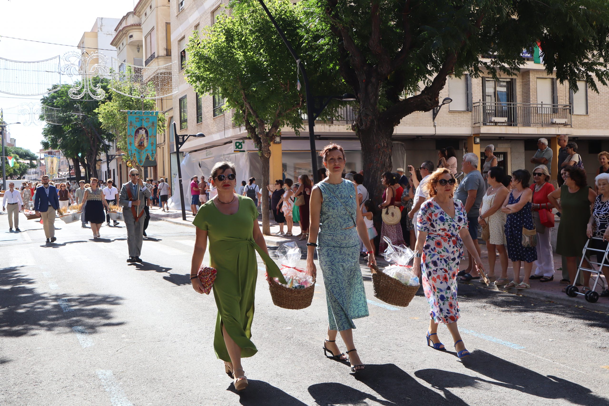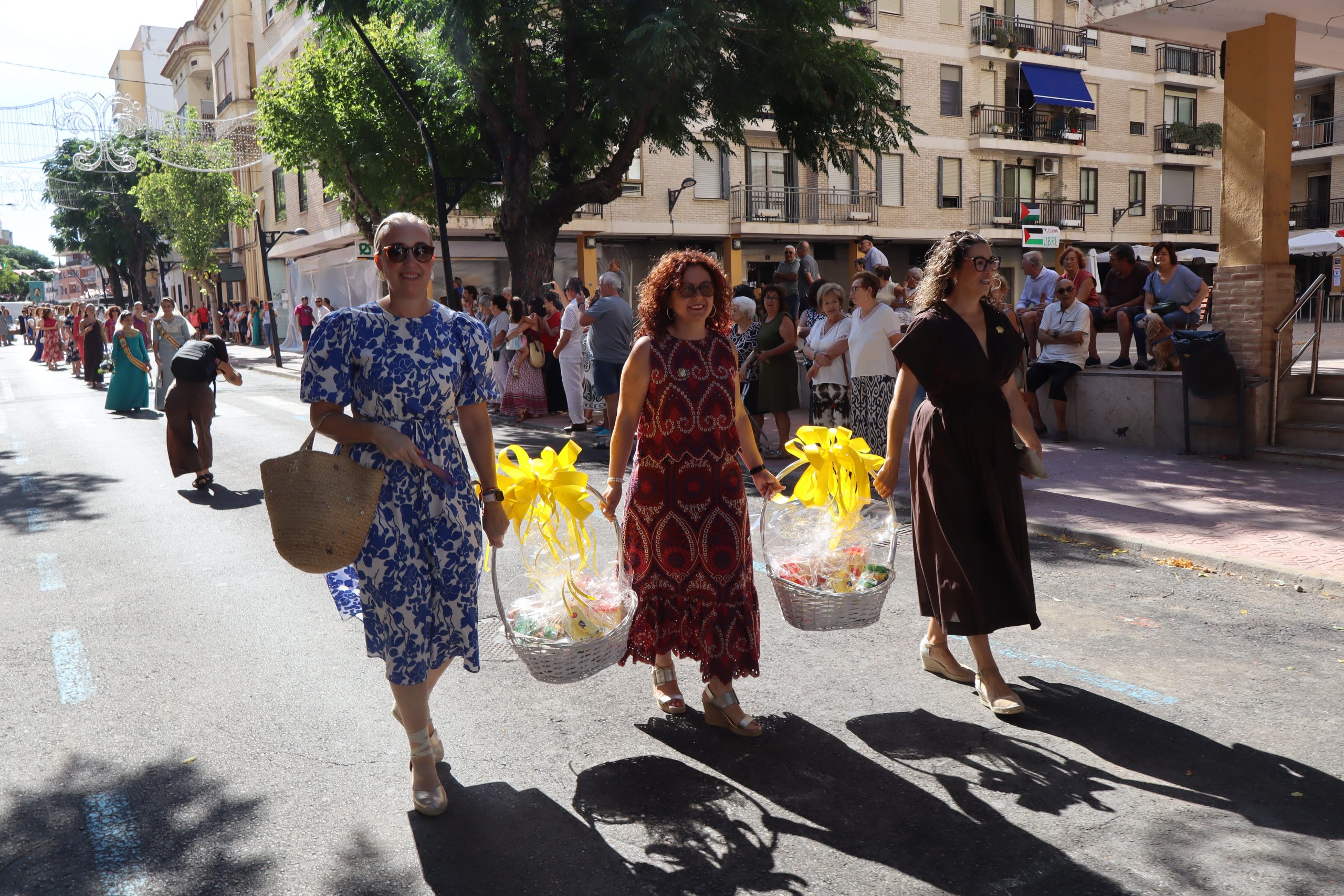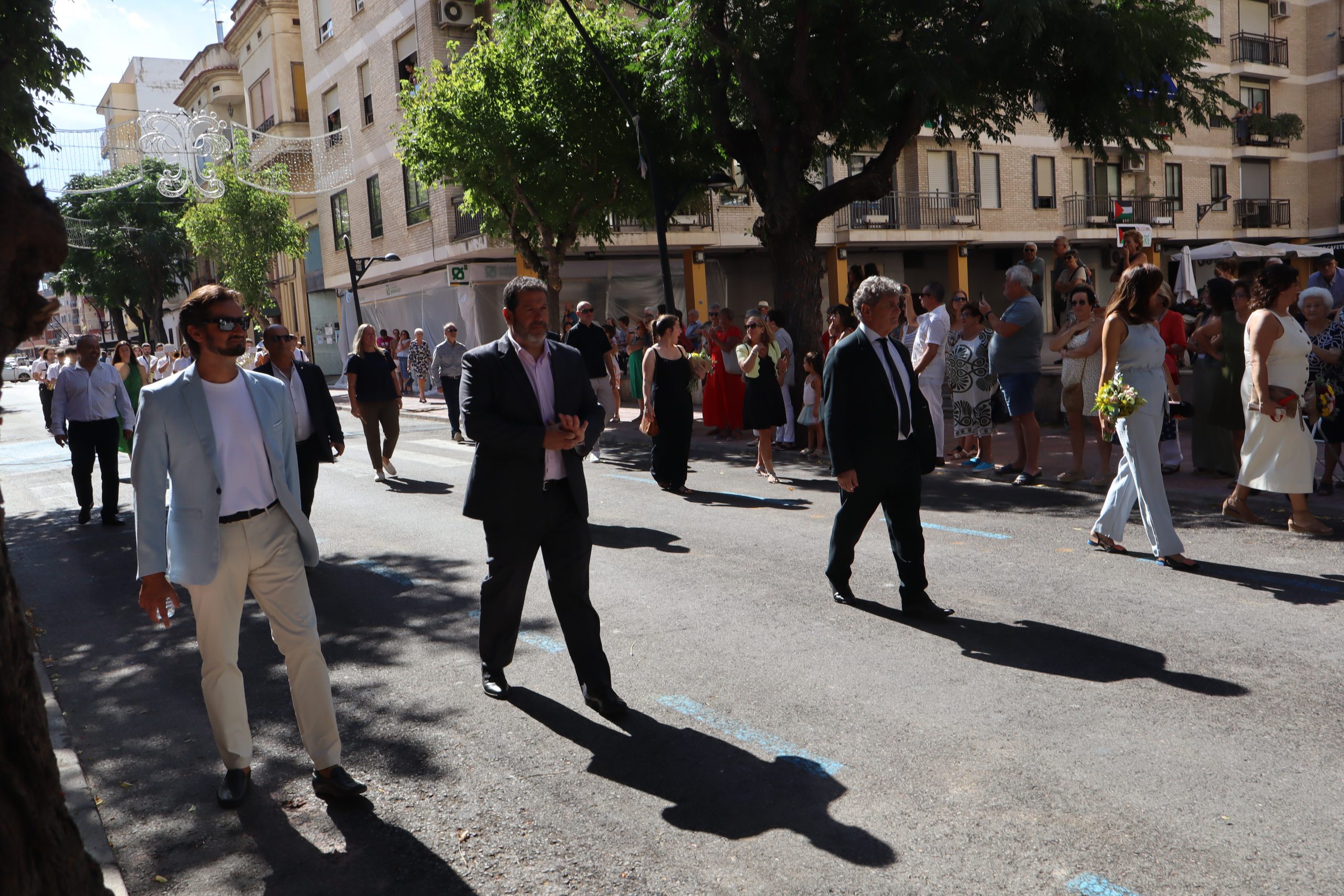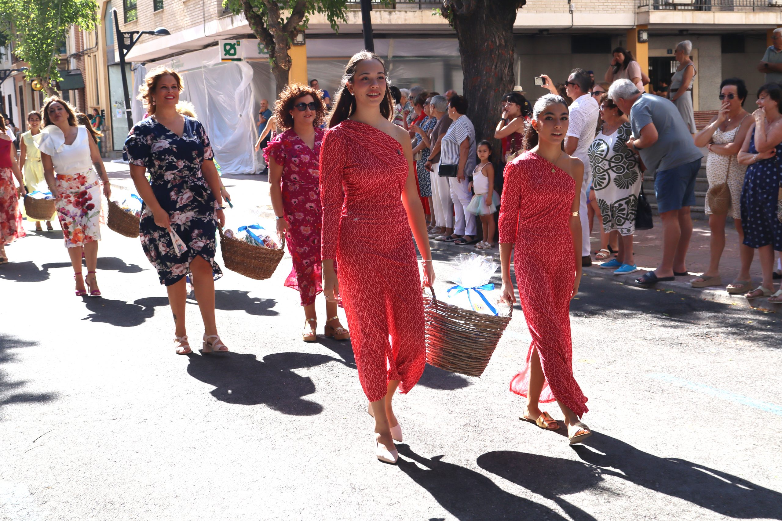 Por la mañana, como viene siendo habitual, se realizó un pasacalle y ofrenda desde la Avenida de la Violeta, en la que participaron la Reina de la Feria y Fiestas, Carmen Alís, acompañada por su Corte de Honor, así como la Junta Local Fallera, las Reinas y Misses de las sociedades musicales y los clavarios y clavarias de San Luis.