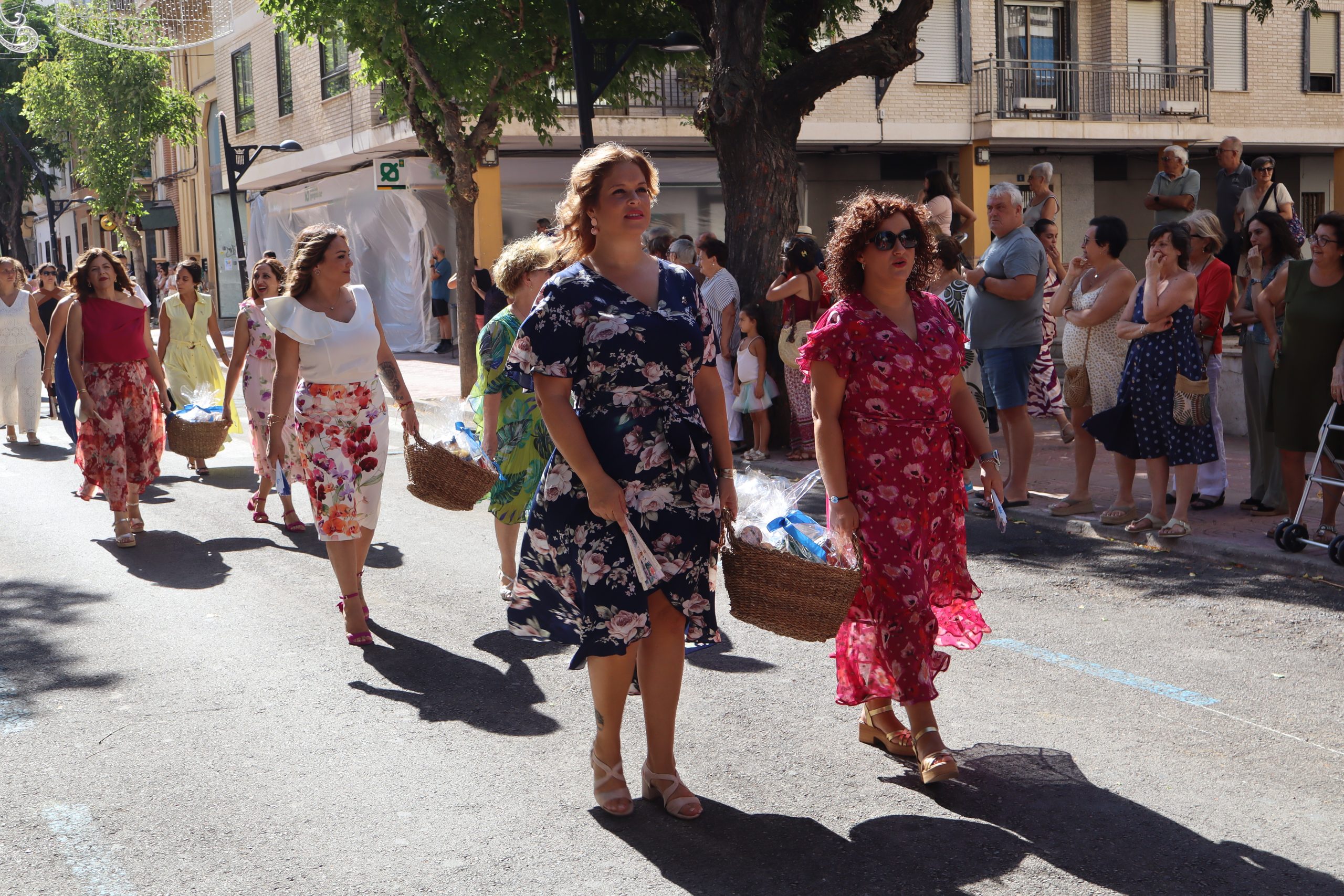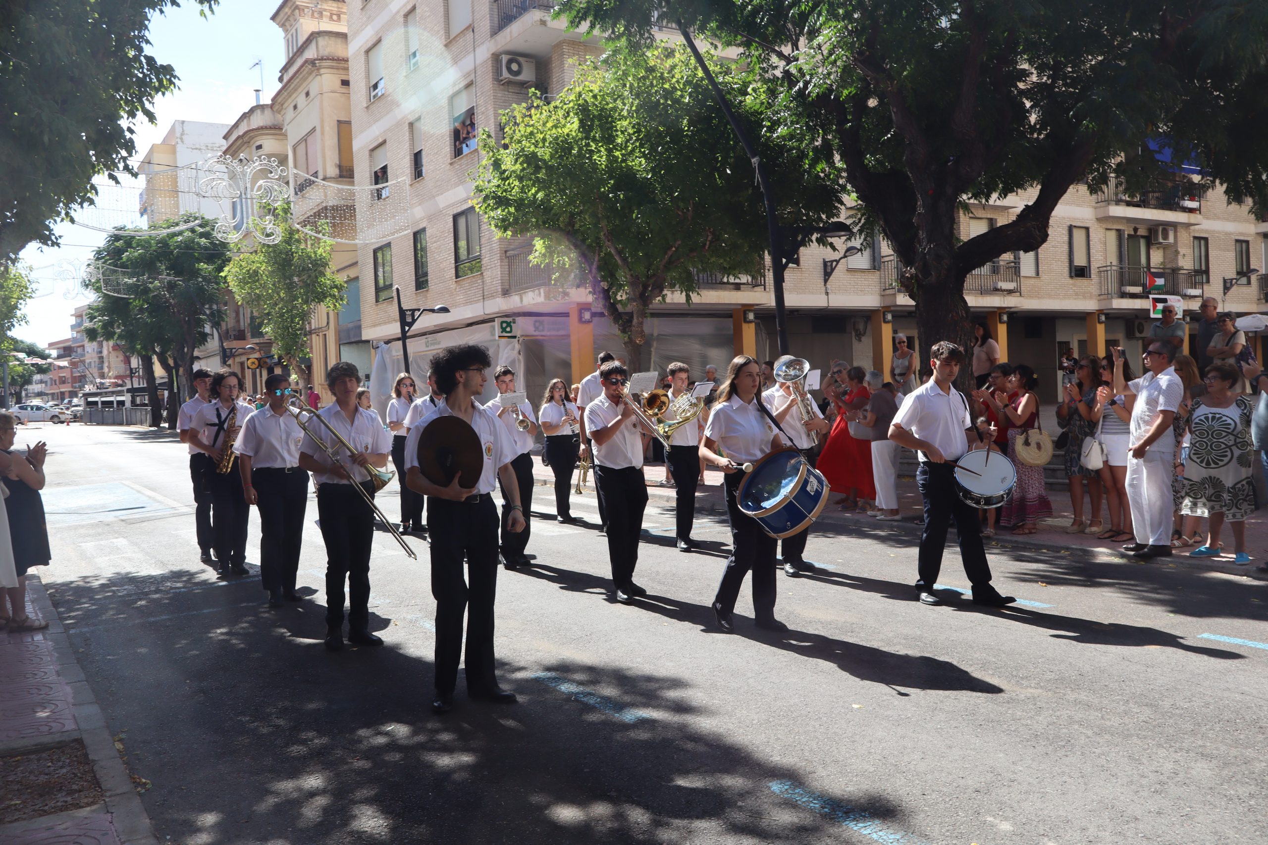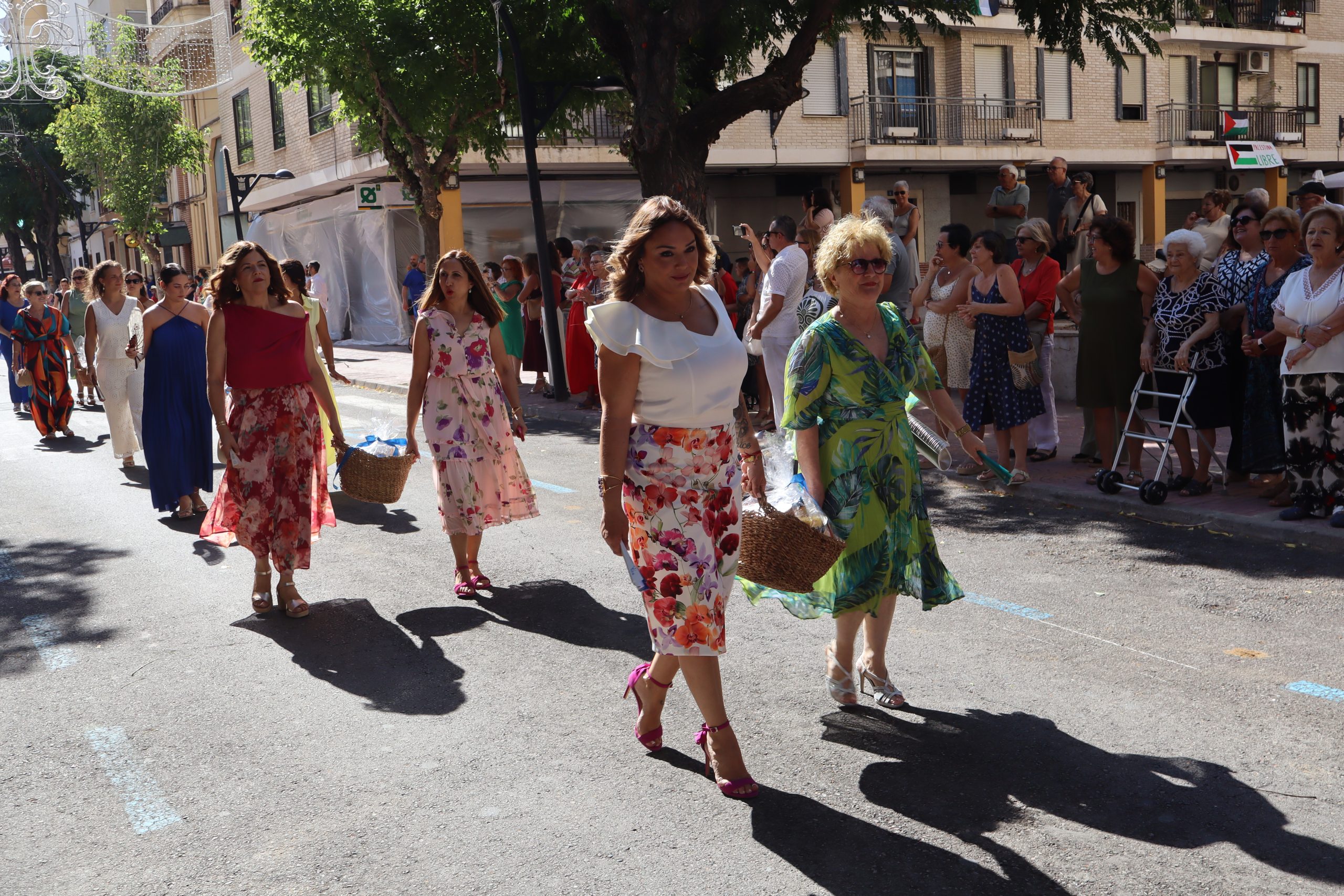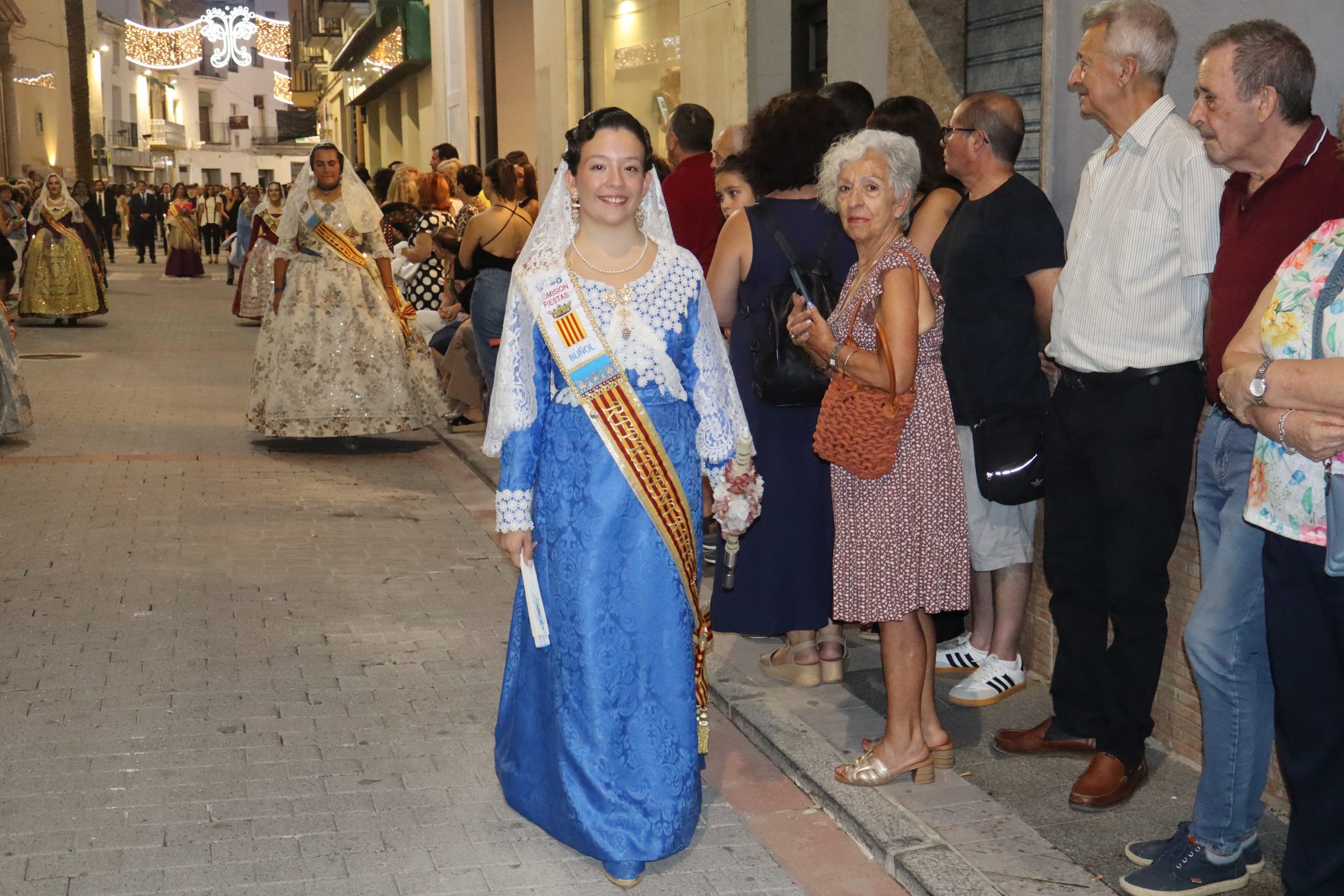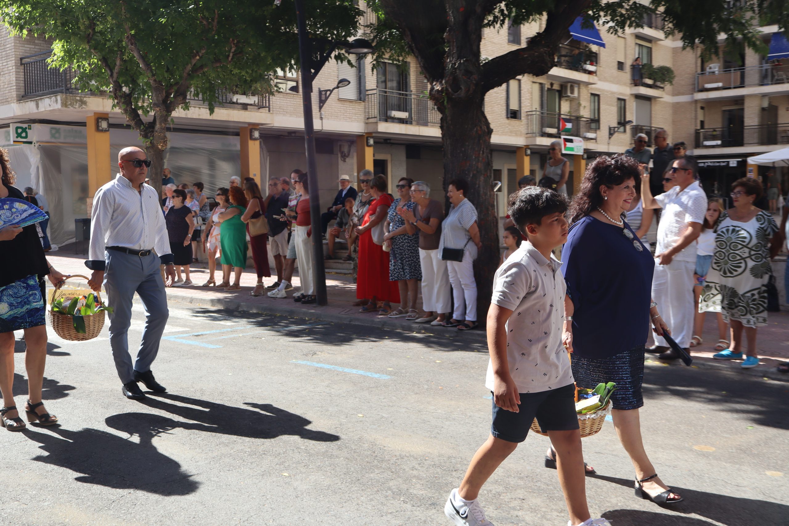 Por la mañana, como viene siendo habitual, se realizó un pasacalle y ofrenda desde la Avenida de la Violeta, en la que participaron la Reina de la Feria y Fiestas, Carmen Alís, acompañada por su Corte de Honor, así como la Junta Local Fallera, las Reinas y Misses de las sociedades musicales y los clavarios y clavarias de San Luis.