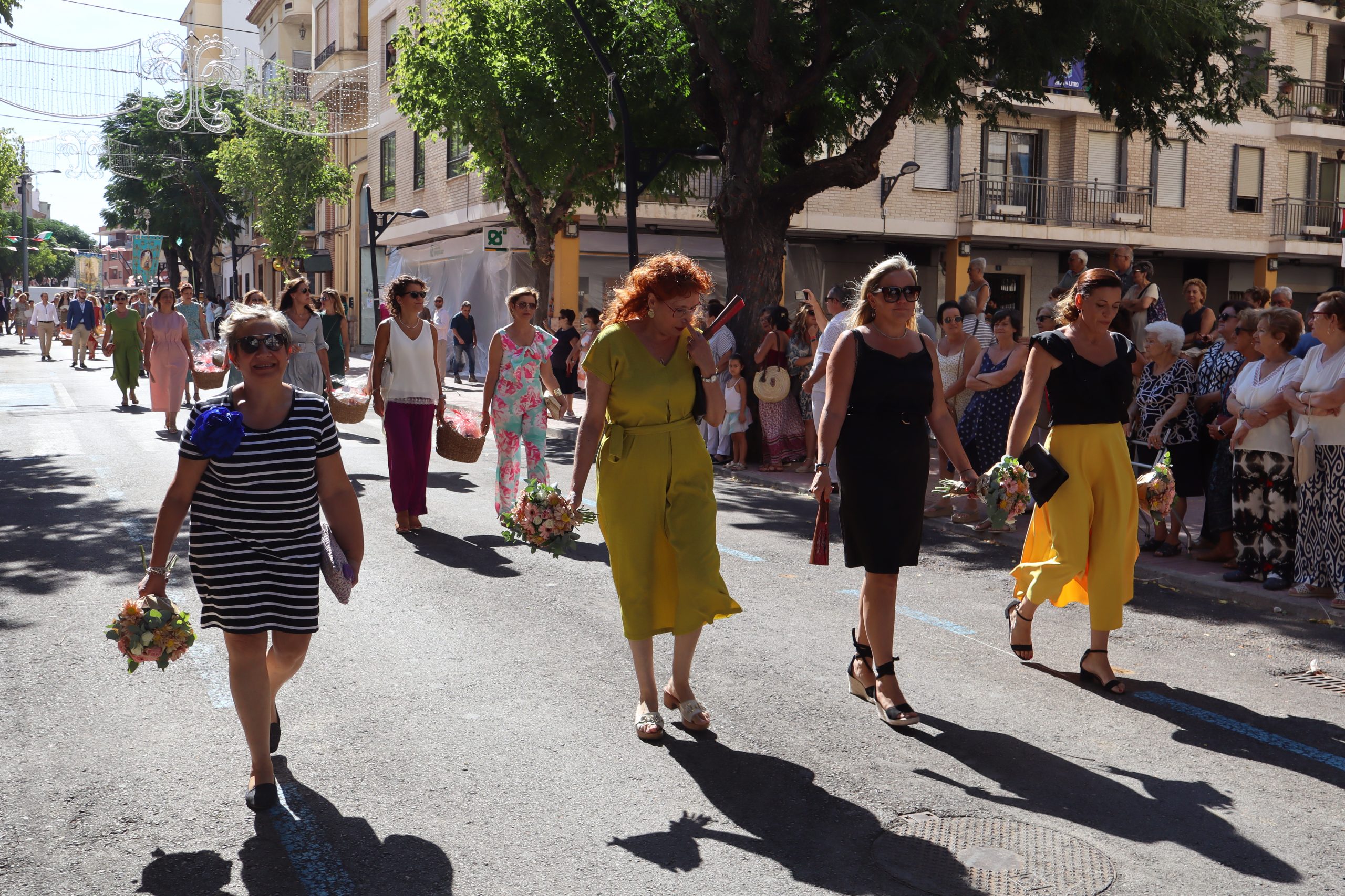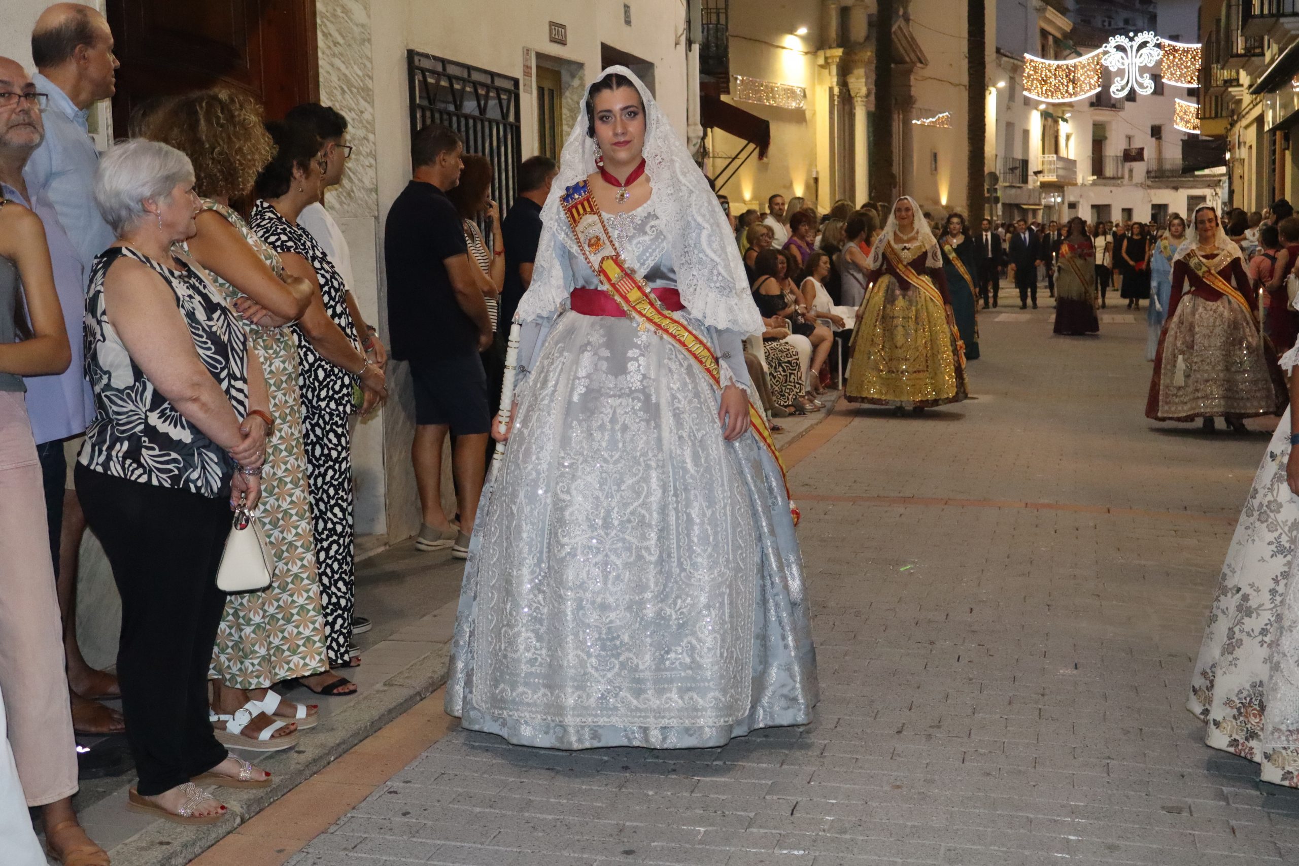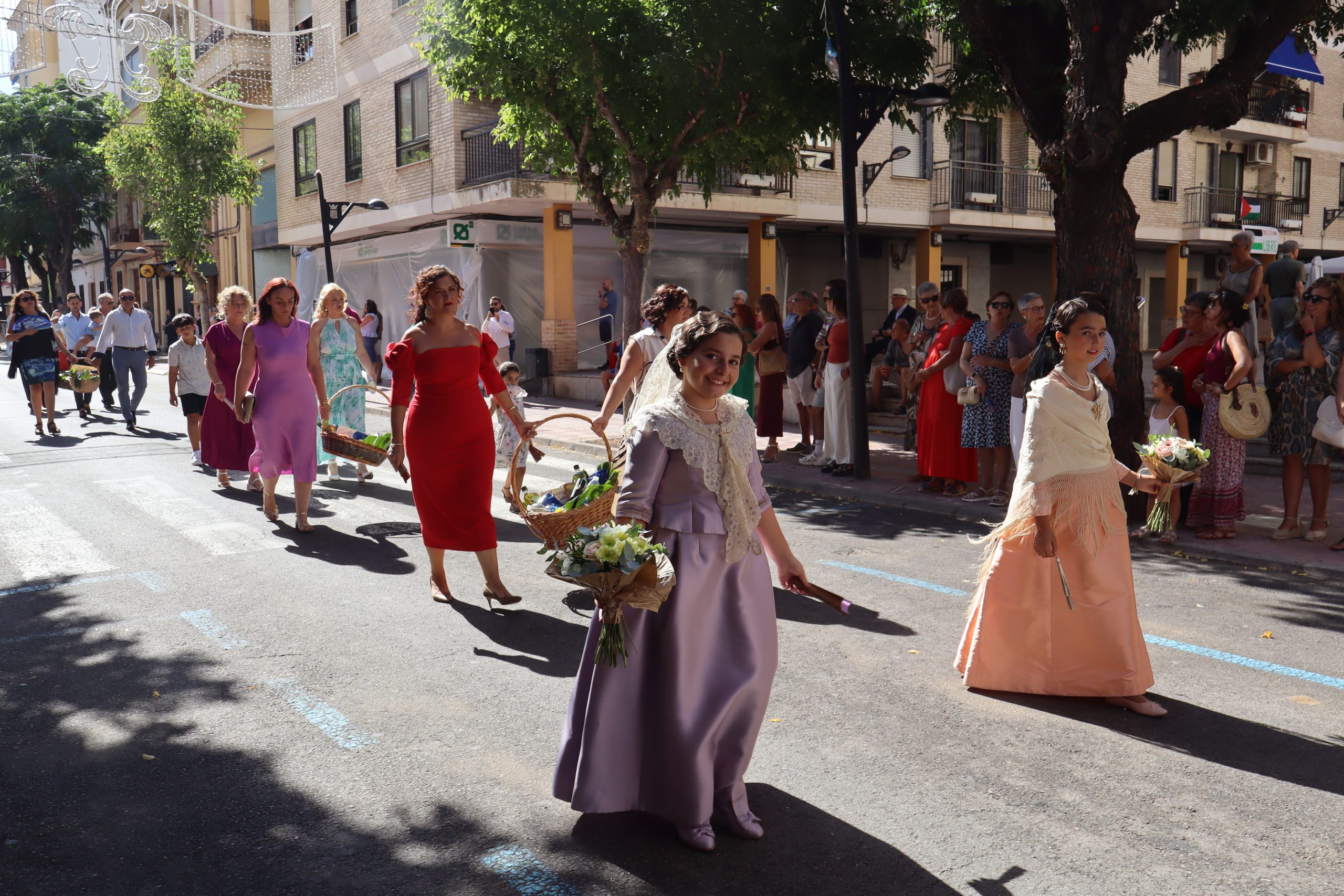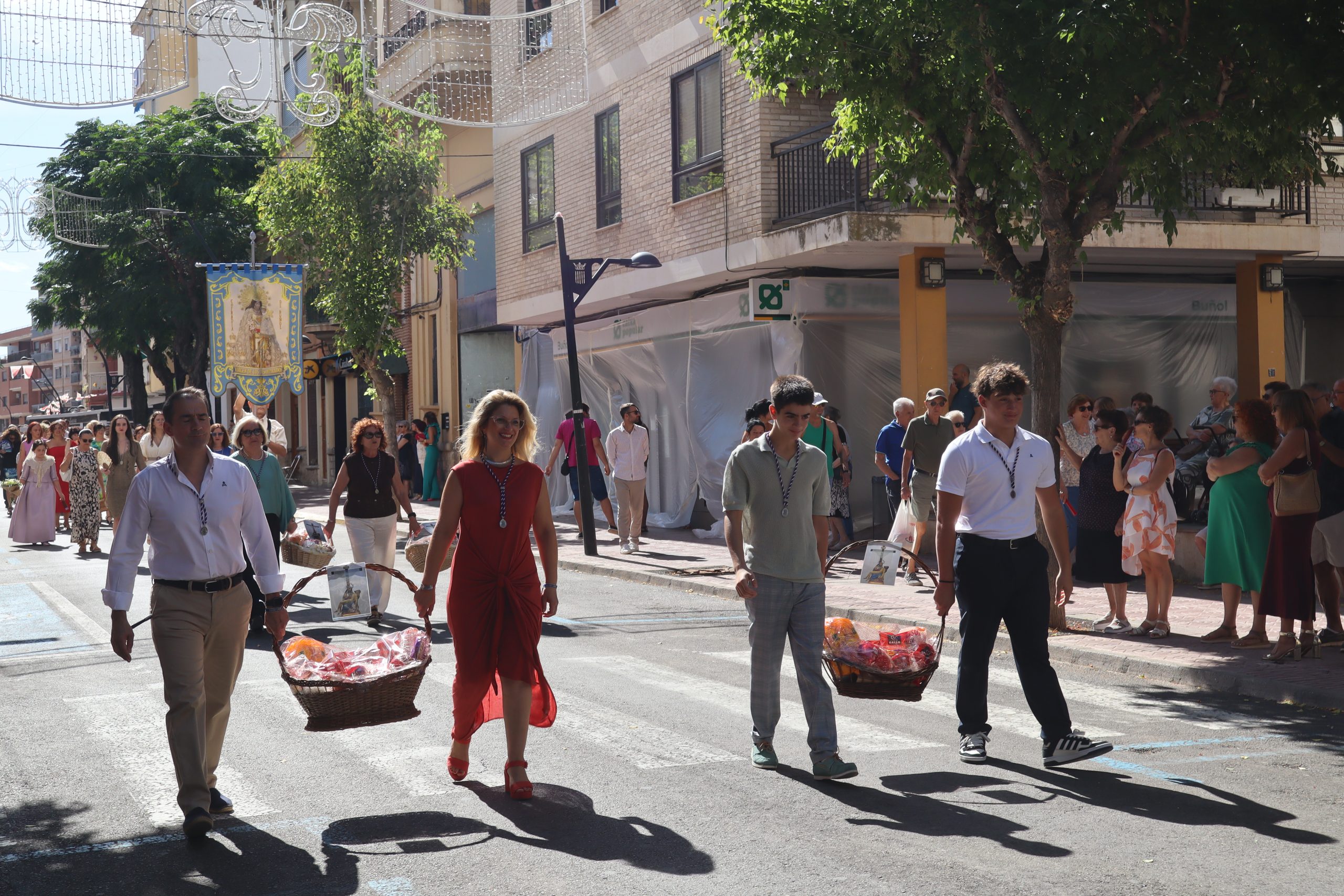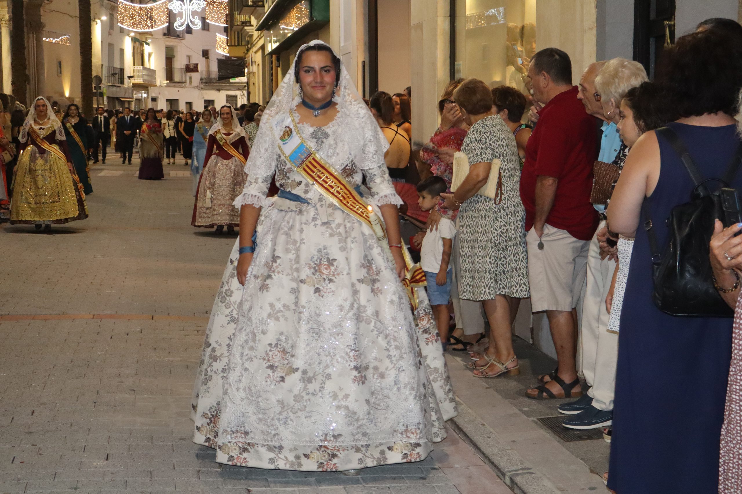 Por la mañana, como viene siendo habitual, se realizó un pasacalle y ofrenda desde la Avenida de la Violeta, en la que participaron la Reina de la Feria y Fiestas, Carmen Alís, acompañada por su Corte de Honor, así como la Junta Local Fallera, las Reinas y Misses de las sociedades musicales y los clavarios y clavarias de San Luis.