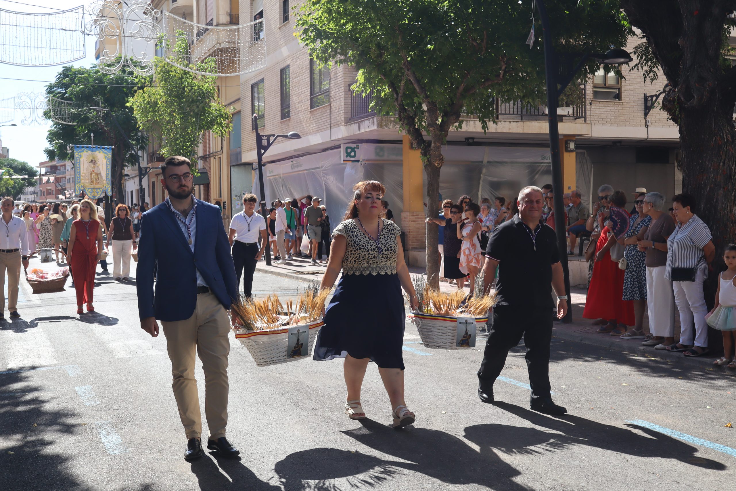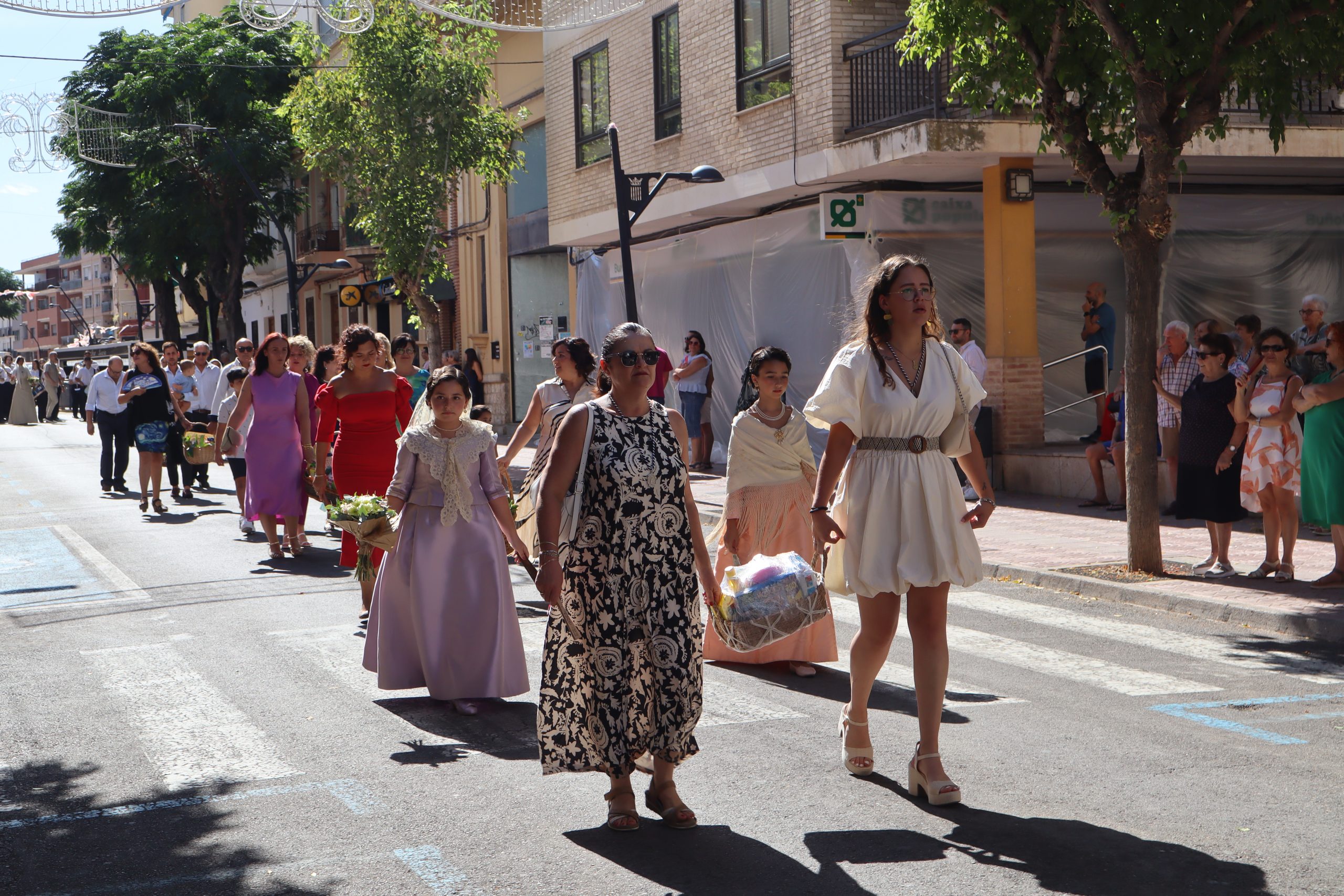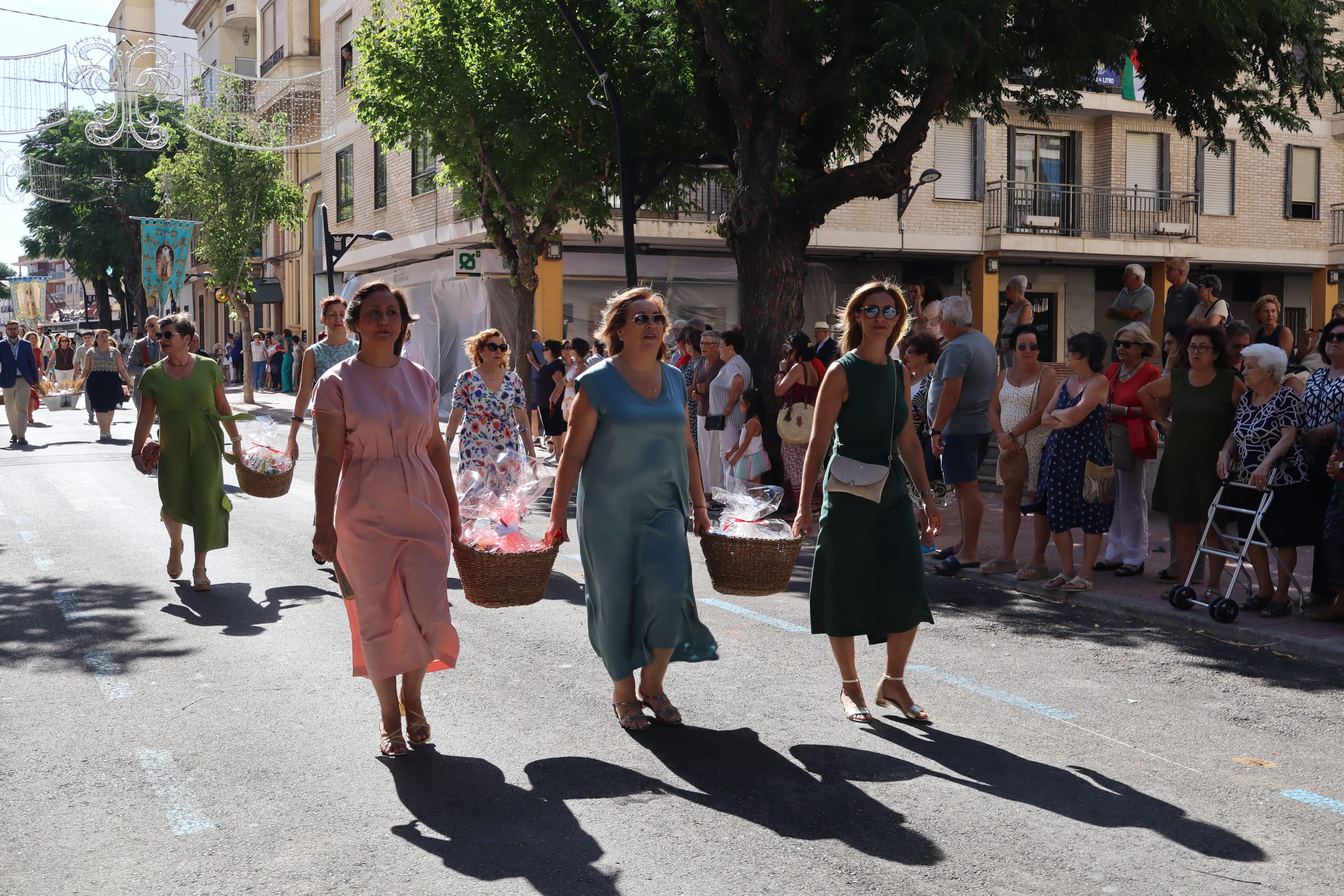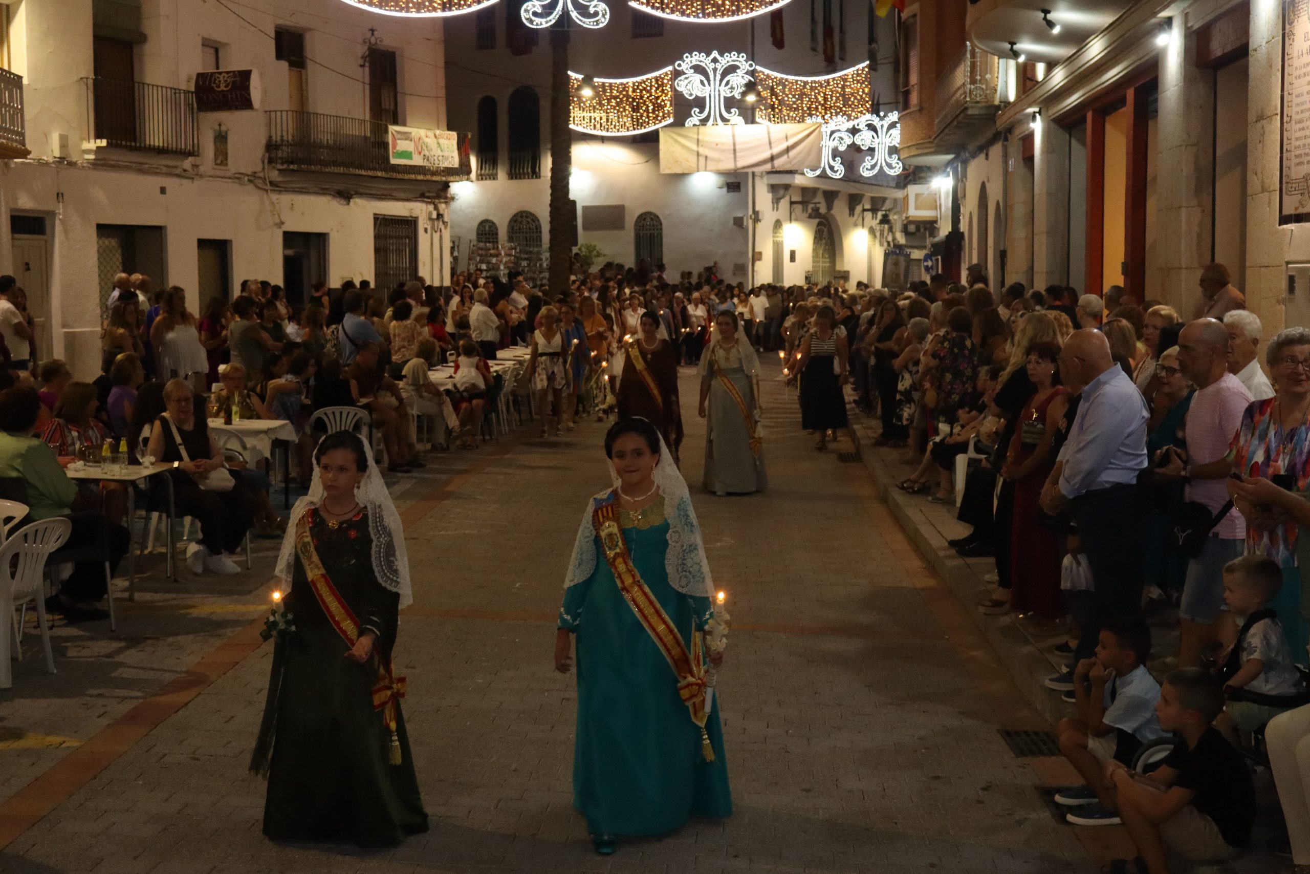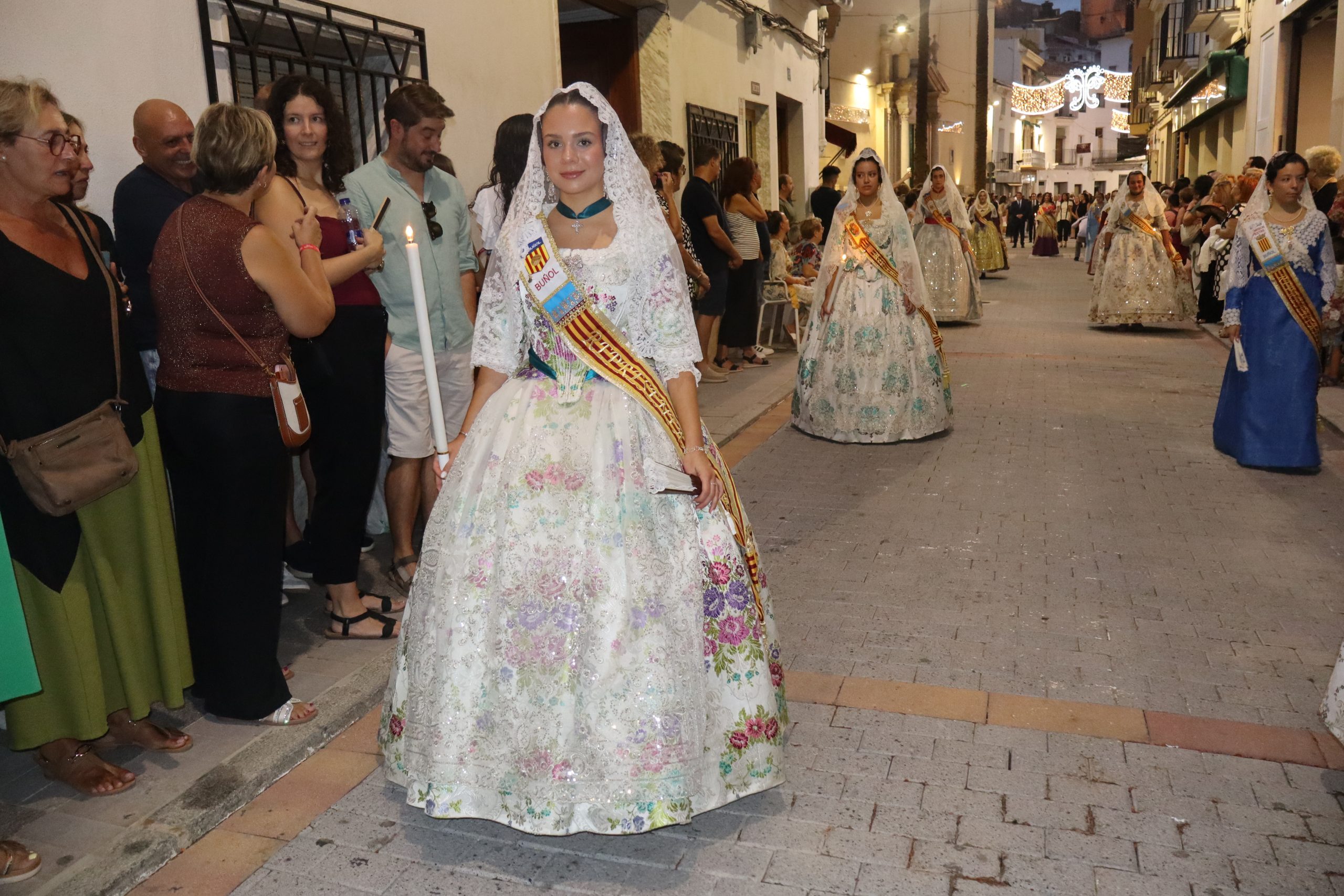 Por la mañana, como viene siendo habitual, se realizó un pasacalle y ofrenda desde la Avenida de la Violeta, en la que participaron la Reina de la Feria y Fiestas, Carmen Alís, acompañada por su Corte de Honor, así como la Junta Local Fallera, las Reinas y Misses de las sociedades musicales y los clavarios y clavarias de San Luis.