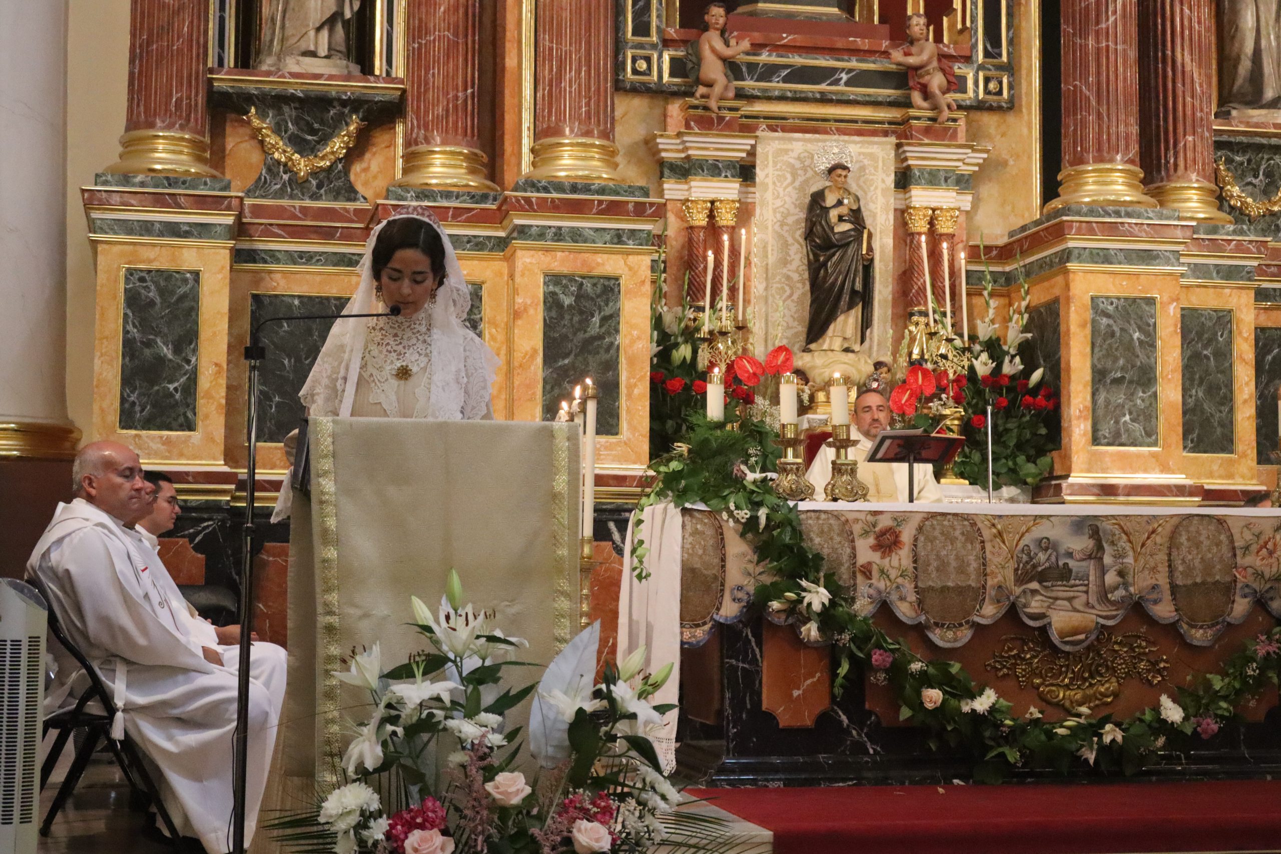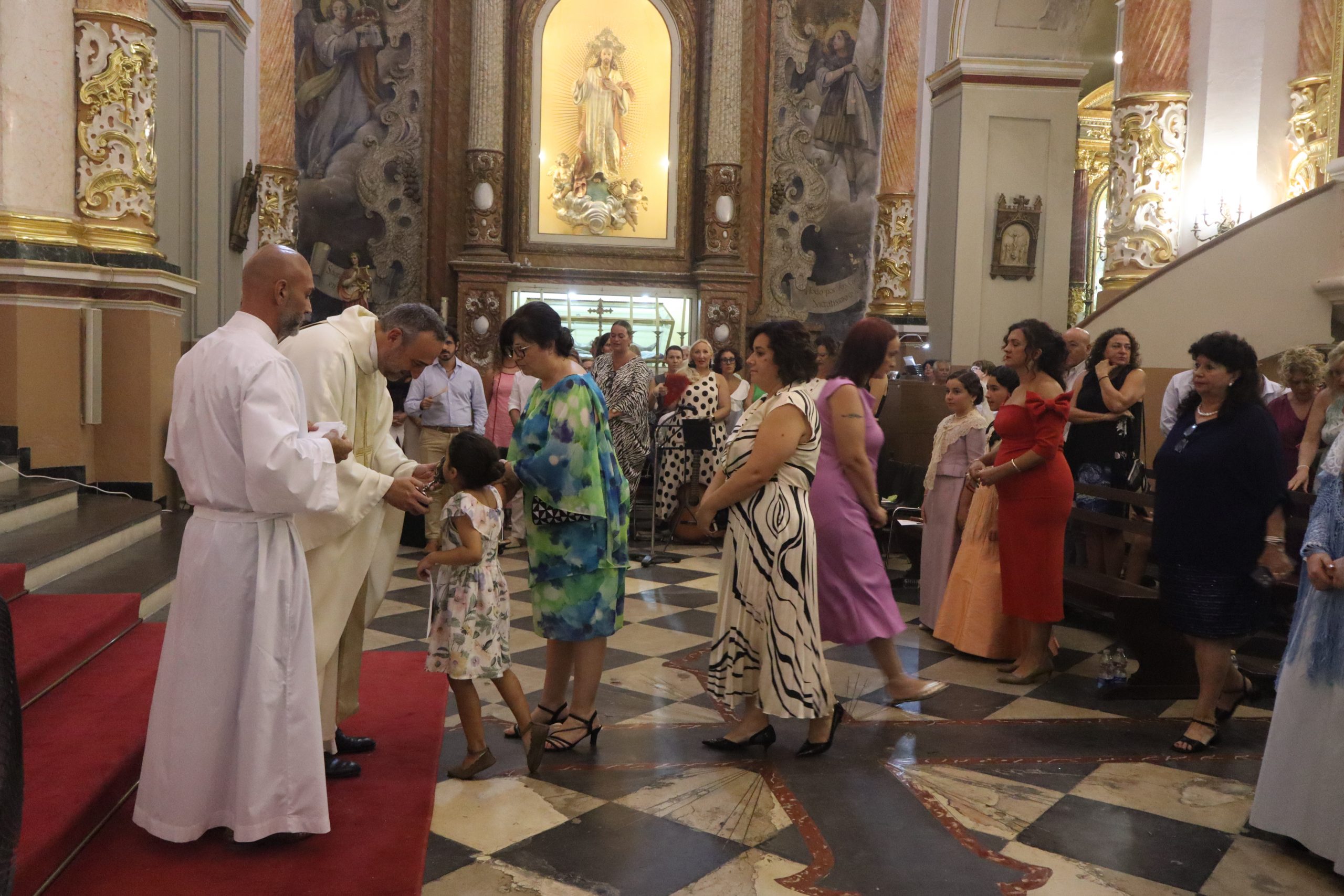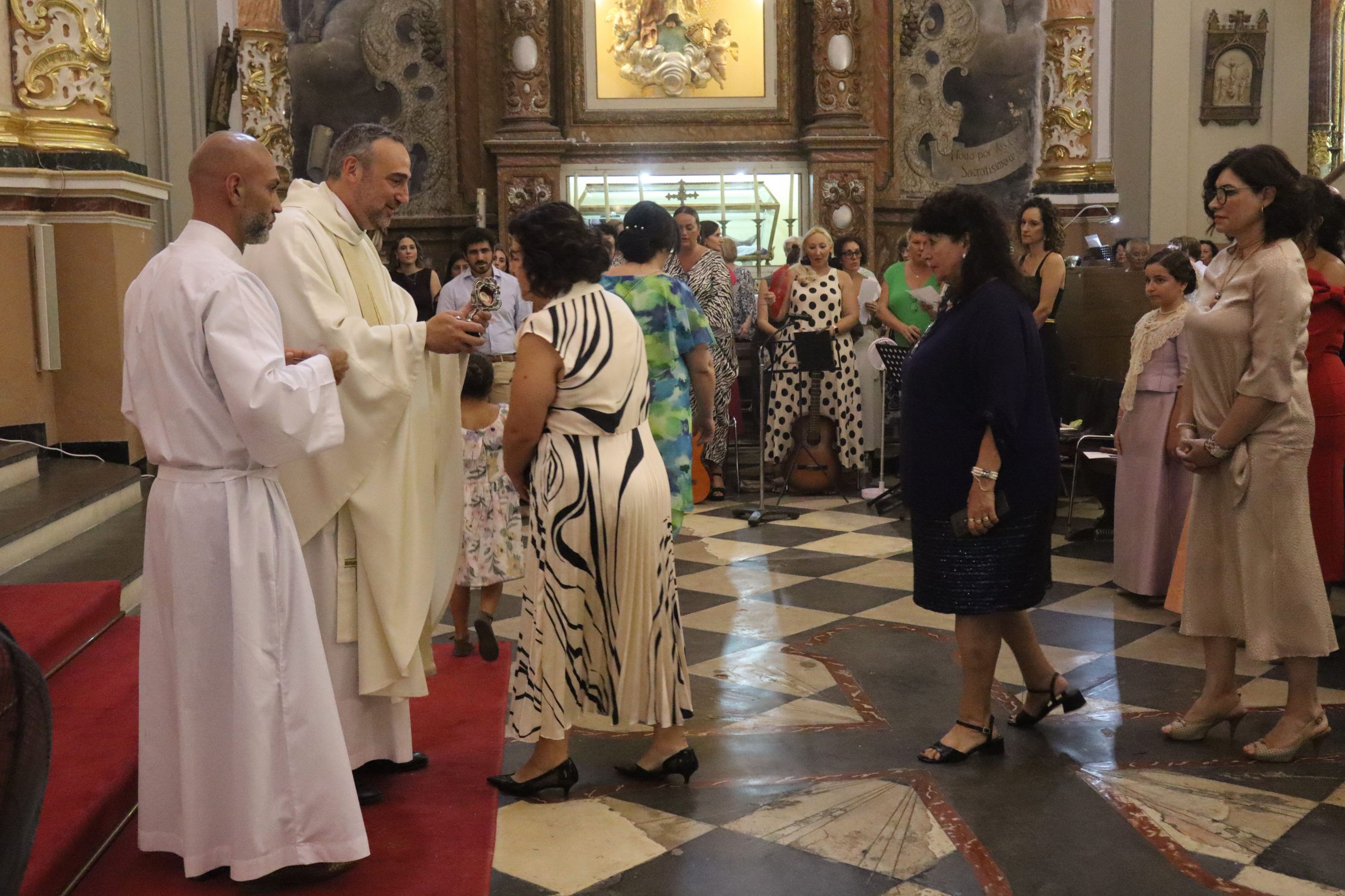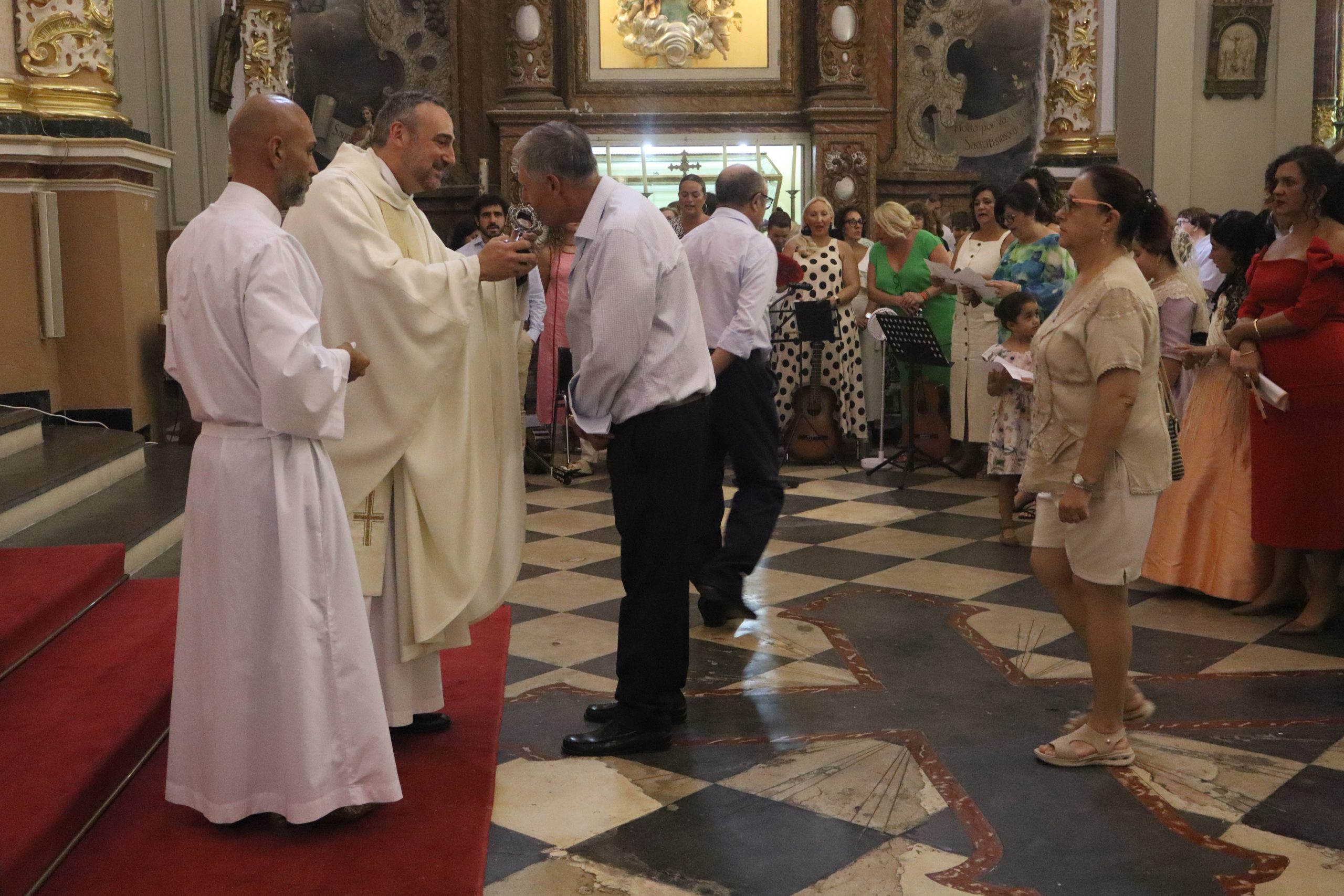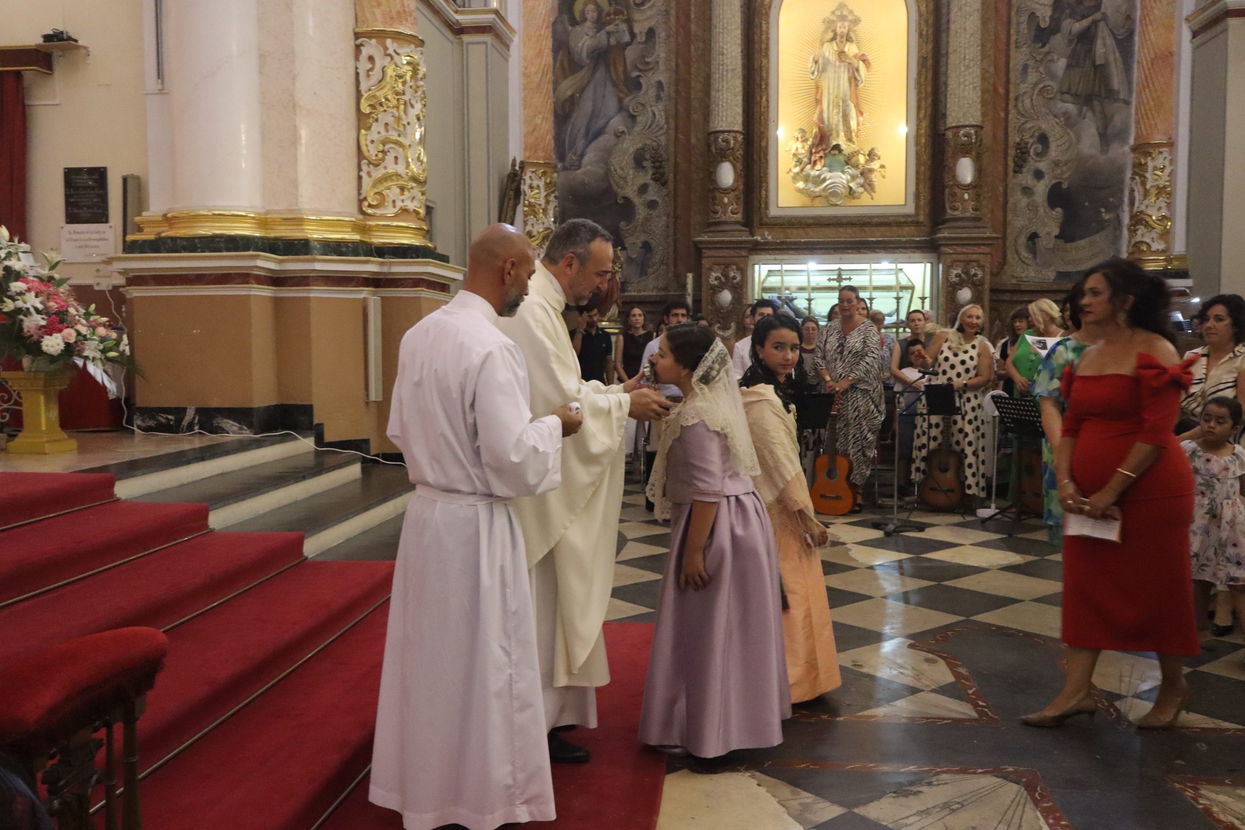 Una vez la comitiva llegó a la Iglesia de San Pedro, se celebró la misa oficiada por el párroco Enrique Boronat. Cuando terminó la misa, se volvió a desfilar hasta la Avenida de la Música, donde se disparó una mascletà.