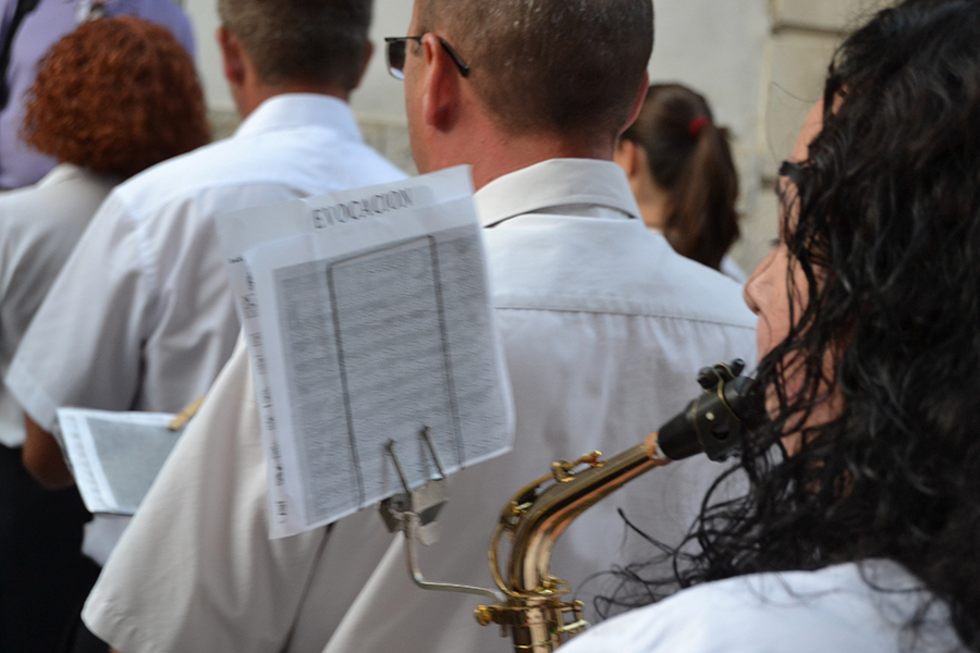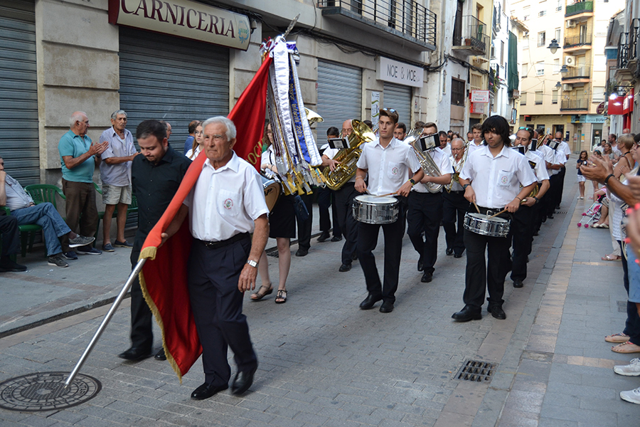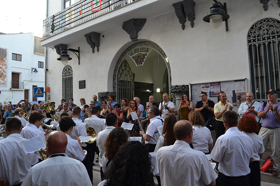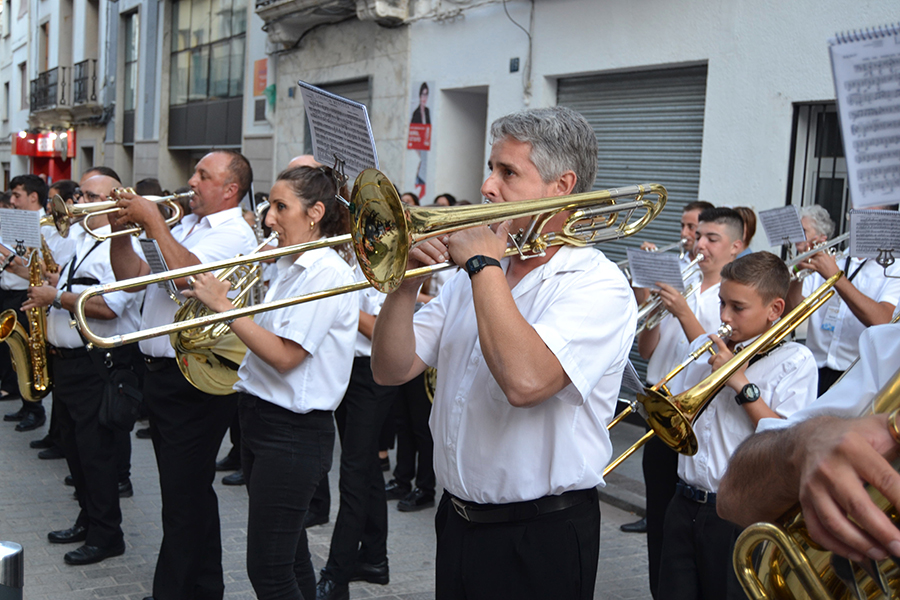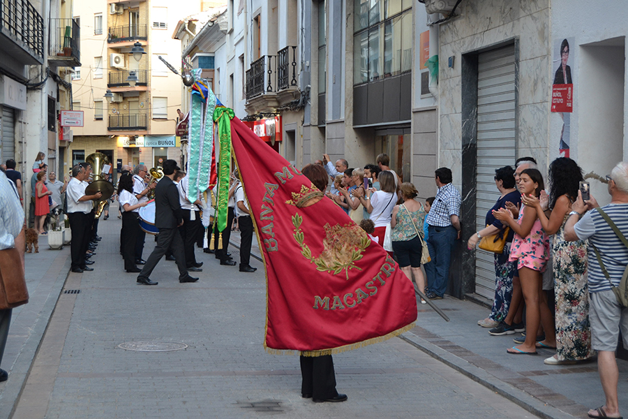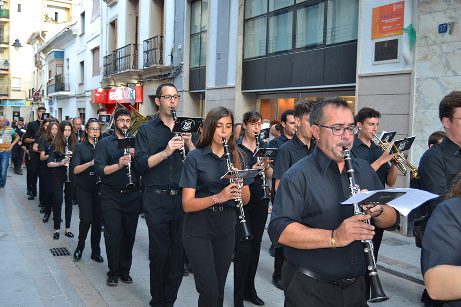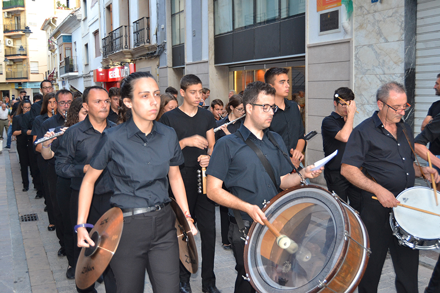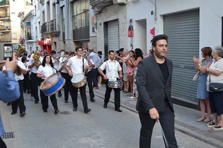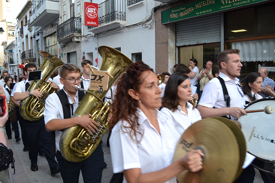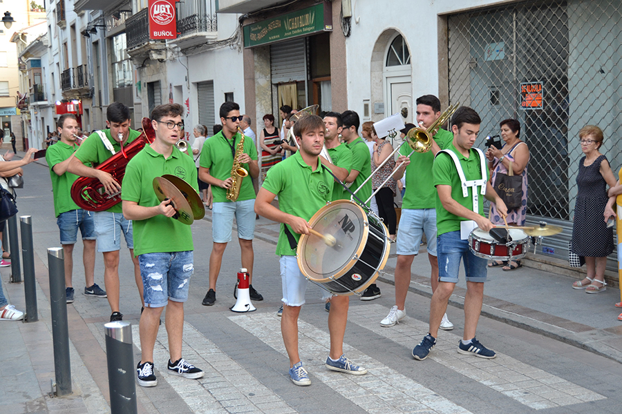 La comitiva, encabezada por la Alcaldesa de Buñol, Juncal Carrascosa, el primer teniente de alcalde, Rafael Pérez y el coordinador del evento, Óscar Fernández y el resto de representantes del Ayuntamiento y de las bandas de música, partieron desde la puerta del consistorio acompañados de una charanga y cuatro bandas invitadas, que en pasacalle llegaron hasta el Paseo de San Luis.