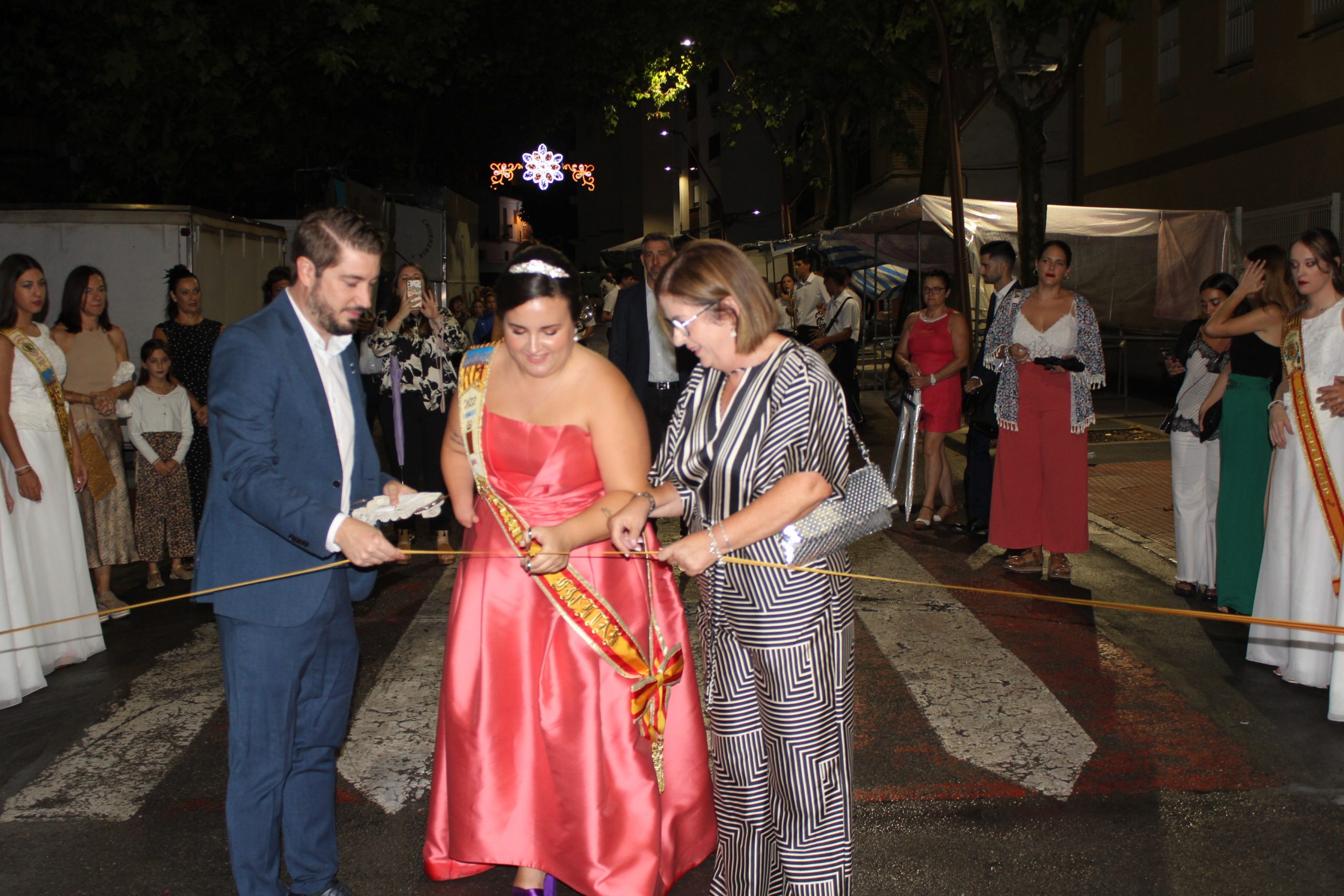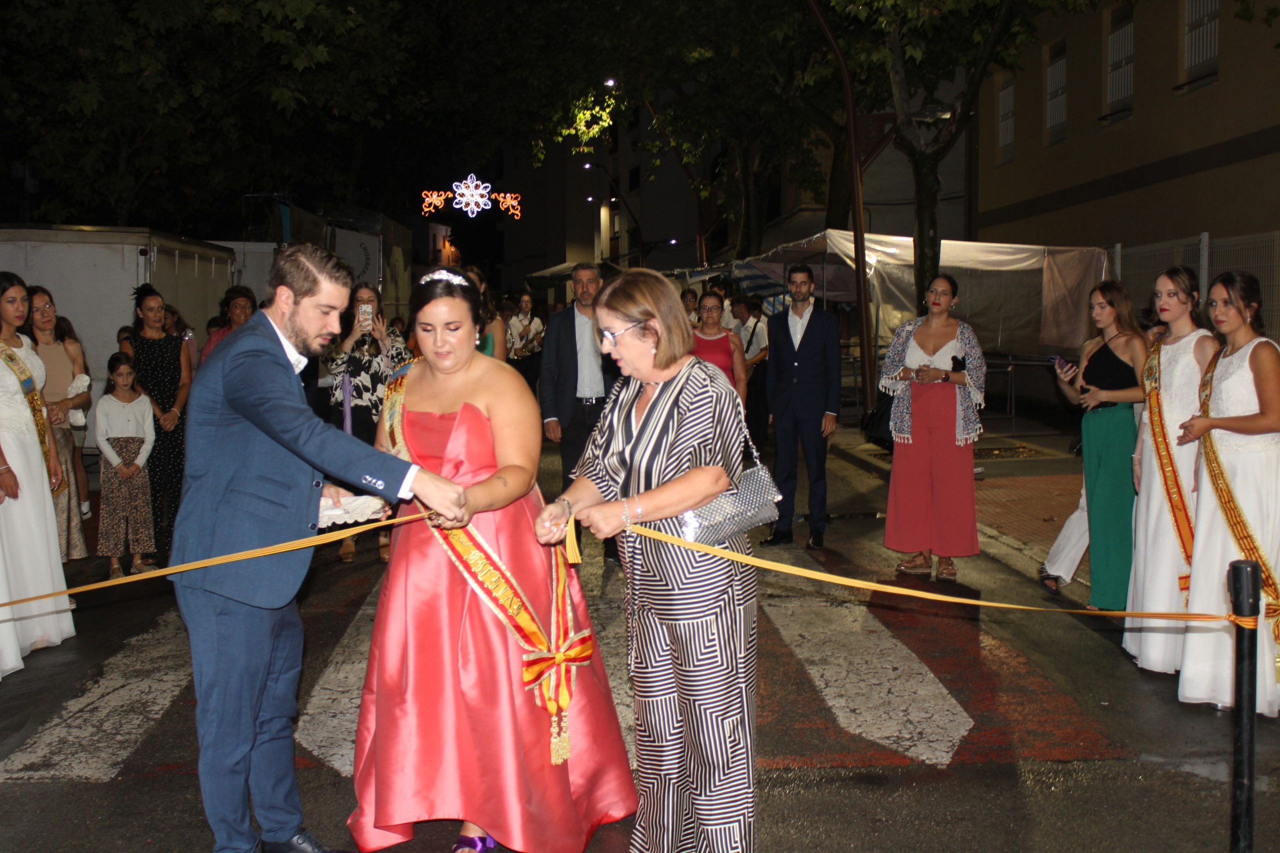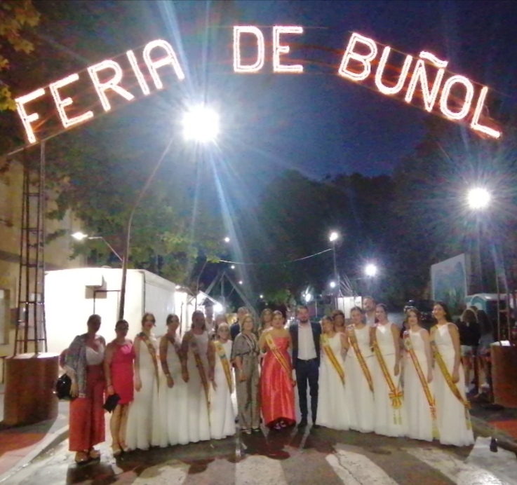 Posteriormente, y media hora después de lo previsto, la Reina de la Feria y Fiestas, Regina Martínez, acompañada de su Corte de Honor y del edil de Cultura Popular, Rafael Pérez, la alcaldesa de Buñol, Juncal Carrascosa y el resto de la corporación municipal, marcharon hasta el recinto ferial donde cortó la cinta y encendió las luces, que dieron inicio a las fiestas de este año. Previamente se inauguraron las distintas exposiciones de los artistas locales.