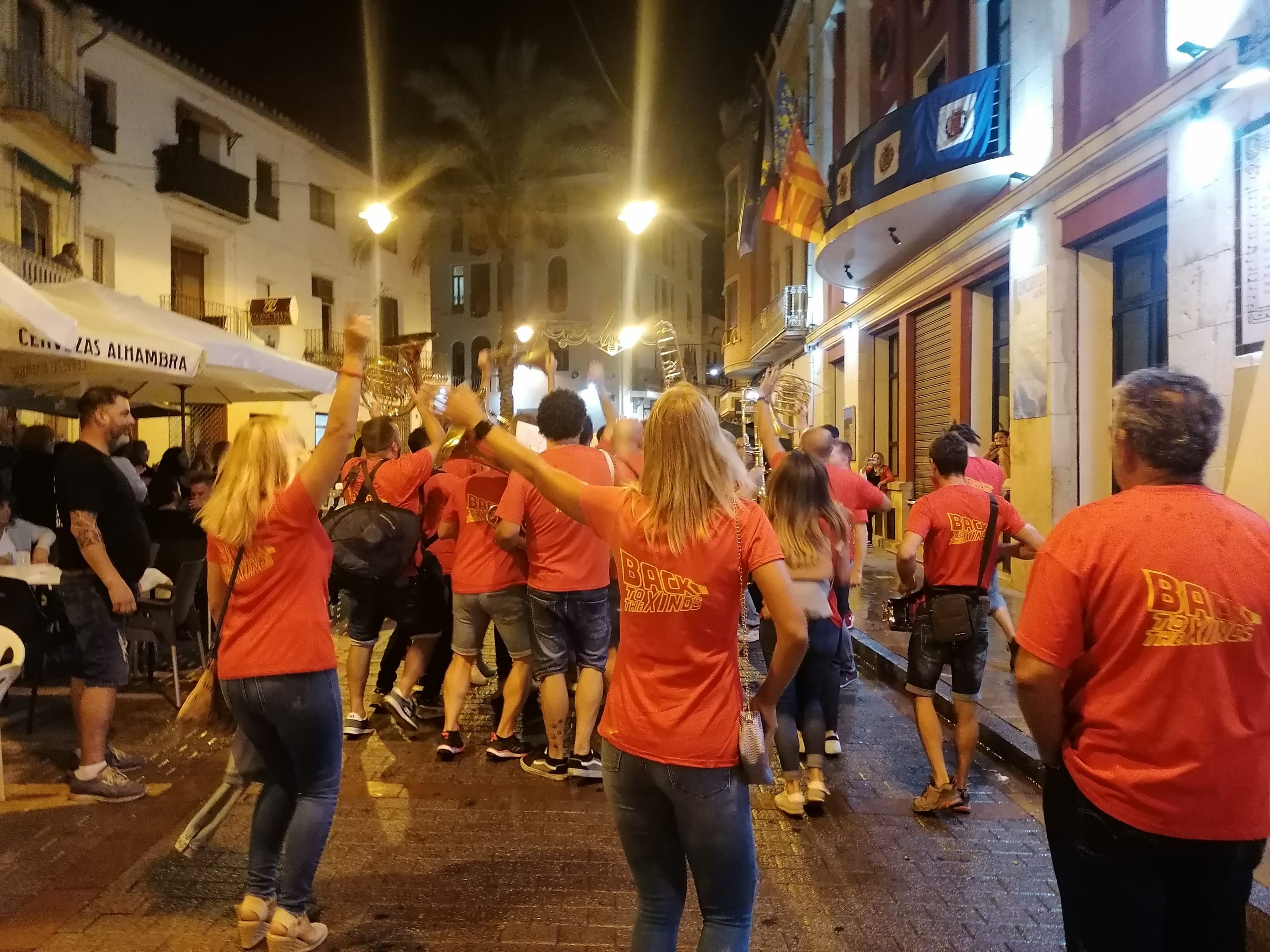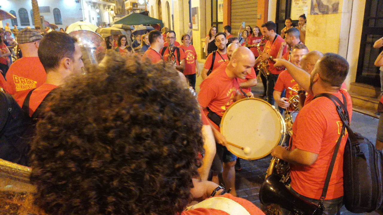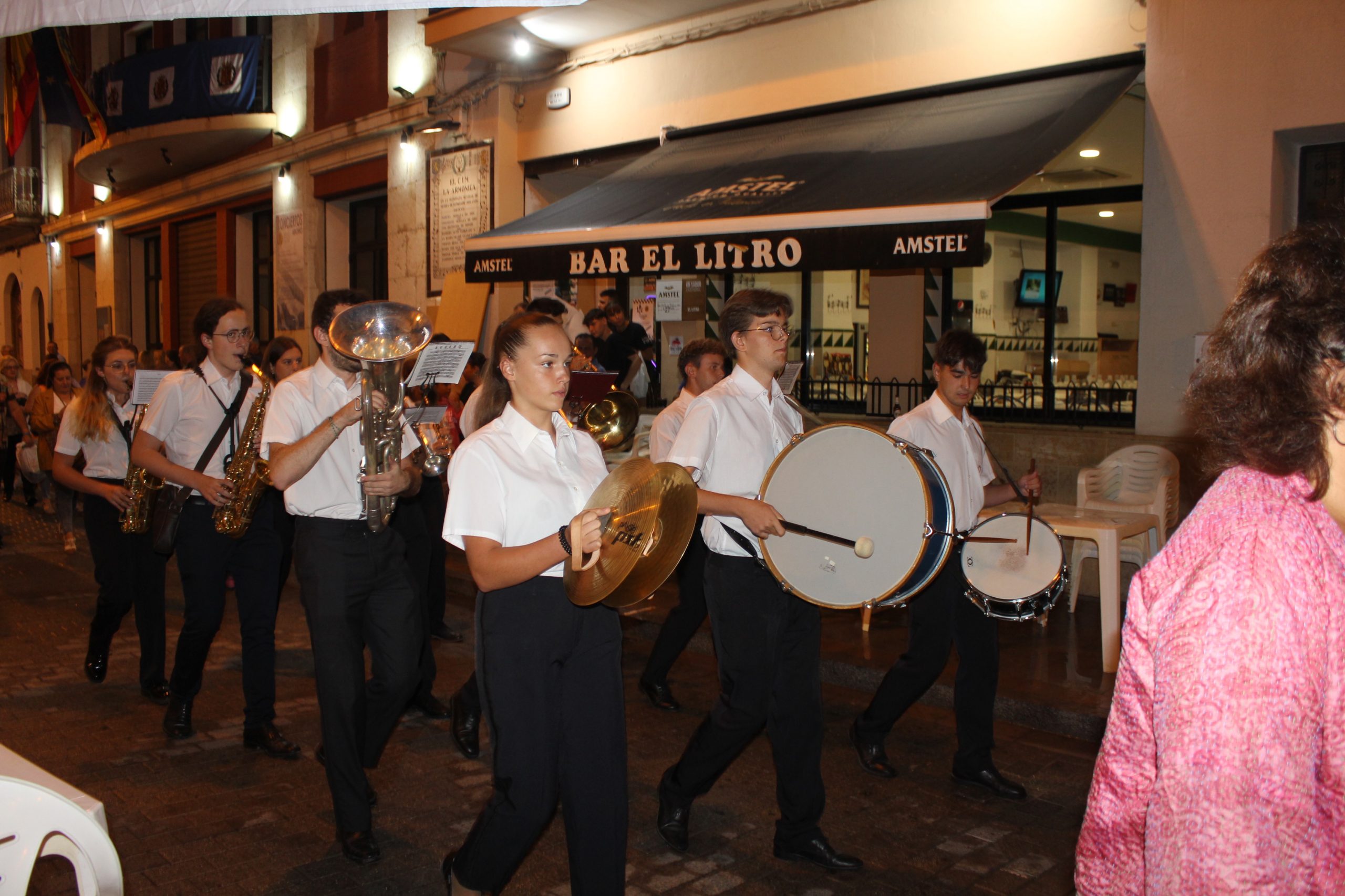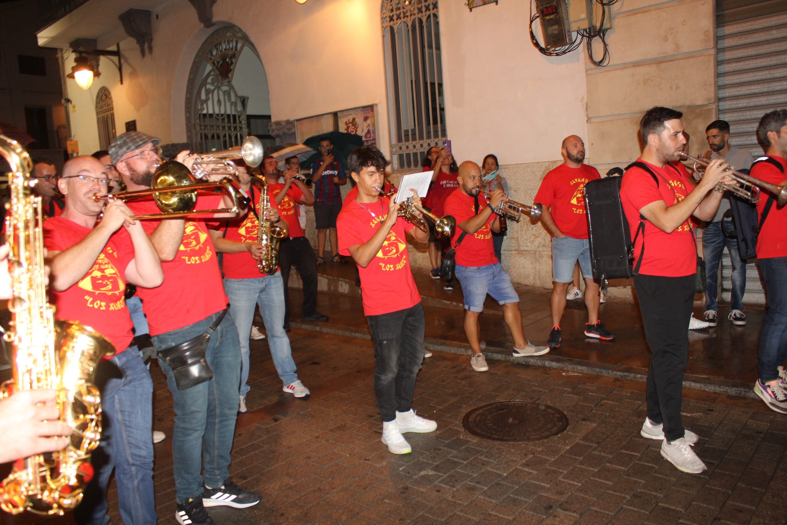 Ya por la noche, y como también es tradicional, la Xaranga «Los Xinos» de Buñol amenizaron la velada con la interpretación de varias piezas. Concluyeron con el «Himno a Buñol» que tocaron desde el balcón del Ayuntamiento.