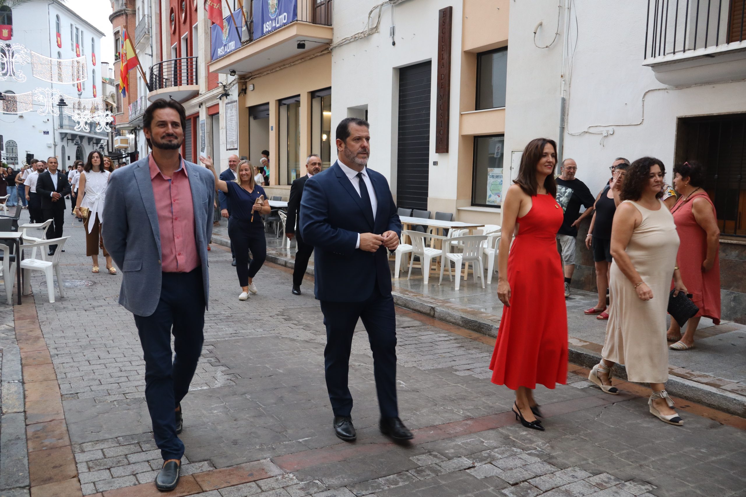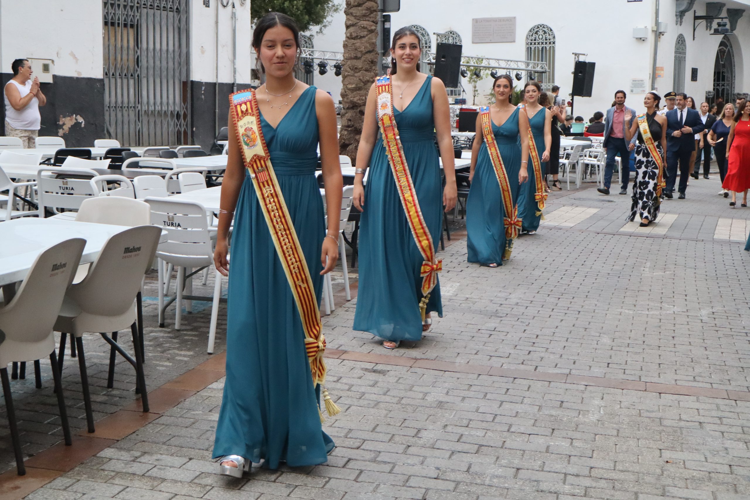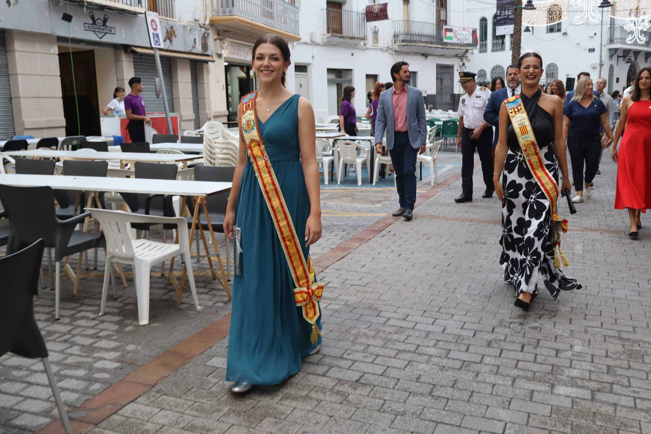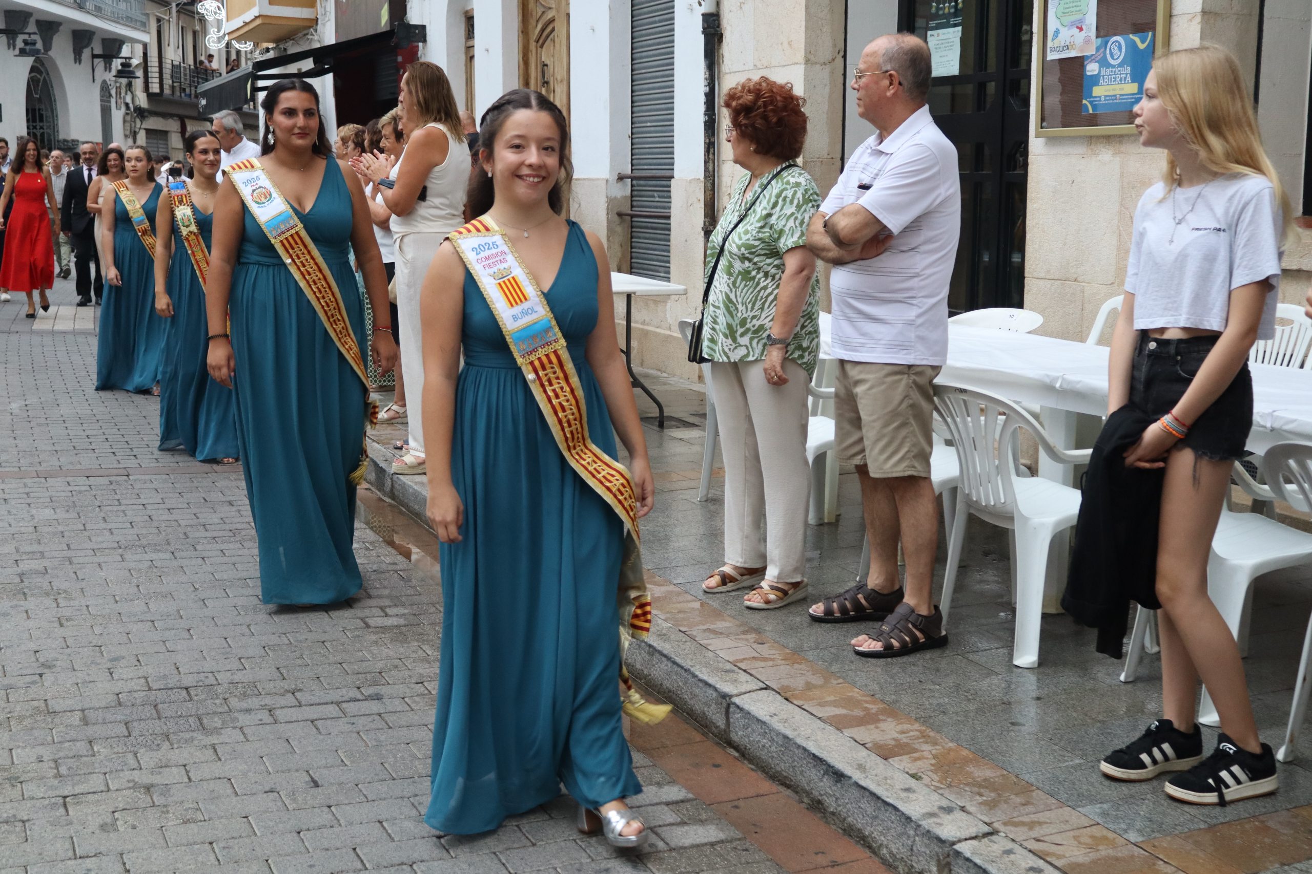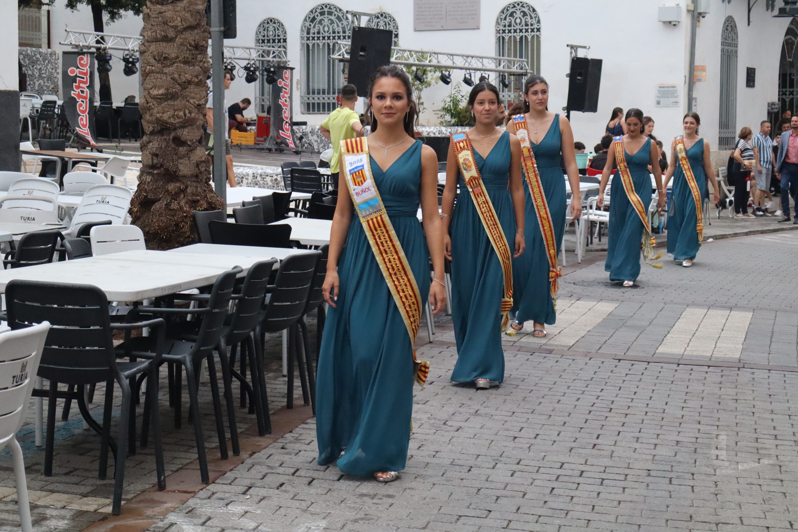 Redacción.- El pasado viernes la Feria y Fiestas de Buñol 2025 por fin, echaron a andar. A las 21h la Reina de la Feria y Fiestas acompañada de su Corte de Honor y la corporación municipal, encabezada por la Alcaldesa, Virginia Sanz y el edil de Fiestas, Sergio Galarza, marcharon hacia el Paseo de San Luis, donde se cortó la cinta con la que se abría el recinto ferial. Antes, Carmen Alís y su comitiva visitaron las exposiciones de pintura en la Sala Raga y en el antiguo kiosko de Juanjo.